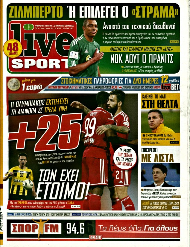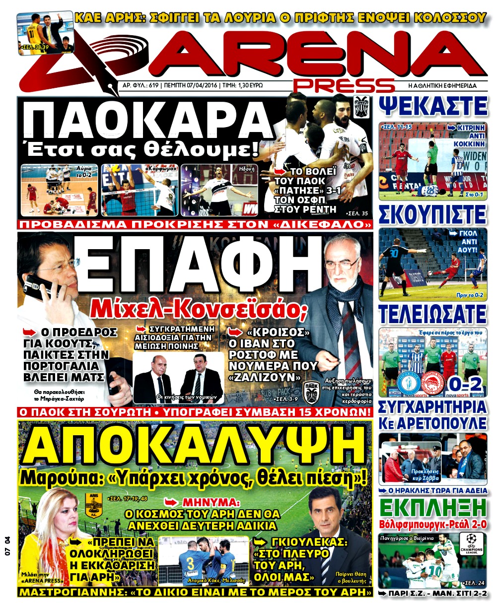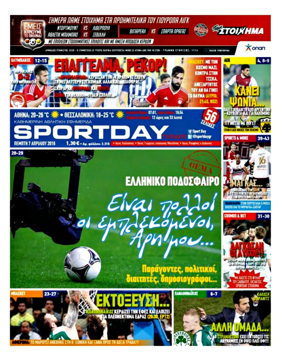 Οι αθλητικές εφημερίδες 7/4/2016 Enikos Newsroom 04:06, Πέμπτη 07 Απριλίου 2016 Media Διαβάστε τα σημερινά πρωτοσέλιδα των αθλητικών εφημερίδων: ΑΘΛΗΤΙΚΕΣ ΕΦΗΜΕΡΙΔΕΣ ΠΡΩΤΟΣΕΛΙΔΑ Μοιράσου το: σχολίασε κι εσύ (0 σχόλια) Ακολουθήστε το enikos.gr στο Google News και μάθετε πρώτοι όλες τις ειδήσεις Δείτε όλες τις τελευταίες ειδήσεις από την Ελλάδα και τον Κόσμο στο enikos.gr Ειδήσεις Ροή Ειδήσεων 2 λεπτά πριν Ευρωπαϊκή Ένωση: Συμφωνία για δάνειο 90 δισ. ευρώ στην Ουκρανία τη διετία 2026-2027 5 ώρες πριν ΟΠΕΚΕΠΕ: Προφυλακιστέος ο φερόμενος αρχηγός και ο λογιστής της εγκληματικής οργάνωσης 6 ώρες πριν Αυξάνουν την πίεση προς την κυβέρνηση οι αγρότες: Κλείνουν παρακαμπτήριους και ανοίγουν διόδια – Τι θα γίνει τις γιορτές 6 ώρες πριν Φοινικούντα: Το Σάββατο απολογείται ο 30χρονος γιος γνωστού επιχειρηματία της Πλάκας που παραδόθηκε – Όσα είπε στους αστυνομικούς και ο ρόλος του στο έγκλημα 4 ώρες πριν ΑΕΚ – Κραϊόβα 3-2: Επική ανατροπή και πρόκριση στους «16» του Conference League η Ένωση 5 ώρες πριν Αρχαιολόγοι ανακάλυψαν ρωμαϊκά τεχνουργήματα από μια πόλη που δεν υπήρξε ποτέ – Τα τρία εντυπωσιακά κτίρια και ο αμφορέας με τις… σαρδέλες 6 ώρες πριν Ύπνος: Η απλή βραδινή ρουτίνα για να προστατεύσετε τα μαλλιά σας από το κρύο κατά τη διάρκεια του χειμώνα 7 ώρες πριν Manifesting: Πώς να συναντήσετε τον σύντροφο της ζωής σας, ανάλογα με τον μήνα γέννησής σας 2 ημέρες πριν 20 χρόνια τα Χριστούγεννα ξεκινούν στα Public με μεγάλη ποικιλία σε δώρα! 2 λεπτά πριν Ευρωπαϊκή Ένωση: Συμφωνία για δάνειο 90 δισ. ευρώ στην Ουκρανία τη διετία 2026-2027 25 λεπτά πριν Αιματηρή βομβιστική επίθεση στην Υεμένη: Τουλάχιστον τρεις νεκροί και 13 τραυματίες 29 λεπτά πριν Στη Φλόριντα σήμερα οι διαβουλεύσεις σχετικά με τα επόμενα στάδια για τη Λωρίδα της Γάζας 33 λεπτά πριν Σίσσυ Τουμάση: «Είμαι ασθενοφοβική πάρα πολύ και με πιάνει μια παράνοια μ’ αυτό» 57 λεπτά πριν Ντόναλντ Τραμπ: Δεν χρειάζομαι την έγκριση του Κογκρέσου για να διατάξω στρατιωτικά πλήγματα στη Βενεζουέλα ENIKOS NETWORK Σε περίοδο αυξημένης δραστηριότητας η γρίπη στην Ελλάδα-Μέτρα προστασίας από τον ΕΟΔΥ Σκέφτεστε συνέχεια συζητήσεις που έχετε κάνει; Τι σημαίνει αυτό, σύμφωνα με ειδικό Στεγαστικό: Τι λέει η ΠΟΜΙΔΑ για τα νέα μέτρα που ανακοίνωσε ο Κυριάκος Μητσοτάκης Λαγκάρντ: Αισιόδοξη για την ανάπτυξη της Ευρωζώνης, αβέβαιη για τον πληθωρισμό Χαρτογραφώντας το «σημείο χωρίς επιστροφή»: Για πρώτη φορά αποκαλύπτεται με λεπτομέρεια το ακανθώδες όριο της ατμόσφαιρας τ... Η Google καταργεί τη λειτουργία «dark web report» – Πώς θα μπορούν οι χρήστες να διαγράφουν τα δεδομένα τους περισσότερα 02:50 , Παρασκευή 19 Δεκεμβρίου 2025 GNTM: «Κλείδωσαν» οι τέσσερις φιναλίστ – Μεγάλη ανατροπή στις τελευταίες αποχωρήσεις Για προτελευταία φορά εμφανίστηκαν στο πλατό του GNTM οι φιναλίστ του φετινού κύκλου, το βράδυ... 17:45 , Πέμπτη 18 Δεκεμβρίου 2025 ROUK ZOUK: Εορταστικό επεισόδιο με καλεσμένους τους πρωταγωνιστές του «Γιατί ρε πατέρα» Το Σάββατο 20 Δεκεμβρίου στις 21:00, η Ζέτα Μακρυπούλια υποδέχεται εκλεκτούς ηθοποιούς που όλο... 17:20 , Πέμπτη 18 Δεκεμβρίου 2025 Άγιος έρωτας: Η Χριστίνα εξομολογείται στον πατέρα Νικόλαο, απόψε στις 21:00 στον Alpha Η Νότα αποφασίζει να εκδικηθεί τον Πέτρο και τον Στέφανο, για χάρη του Λούη, όμως τα πράγματα ... 16:50 , Πέμπτη 18 Δεκεμβρίου 2025 Να μ’ αγαπάς: Ζωή και Φωτεινή συμφιλιώνονται ως μάνα με κόρη, απόψε στις 20:00 Η ταυτότητα του Άγγελου αποκαλύπτεται στο νέο επεισόδιο της σειράς “Να μ’ αγαπάς... ΤΕΛ