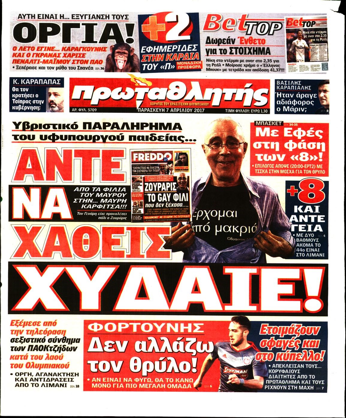 Οι αθλητικές εφημερίδες 7/4/2017 Enikos Newsroom 07:40, Παρασκευή 07 Απριλίου 2017 Media Διαβάστε τα σημερινά πρωτοσέλιδα των αθλητικών εφημερίδων: ΑΘΛΗΤΙΚΕΣ ΕΦΗΜΕΡΙΔΕΣ ΠΡΩΤΟΣΕΛΙΔΑ Μοιράσου το: σχολίασε κι εσύ (0 σχόλια) Ακολουθήστε το enikos.gr στο Google News και μάθετε πρώτοι όλες τις ειδήσεις Δείτε όλες τις τελευταίες ειδήσεις από την Ελλάδα και τον Κόσμο στο enikos.gr Ειδήσεις Ροή Ειδήσεων 1 ώρα πριν Νίκος Παππάς: «Είχα λάθος αντίδραση στη δική του δράση-πρόκληση – Δεν θα αναλύσω σε τι κατάσταση ήταν ο δημοσιογράφος» 12 λεπτά πριν Αλεξανδρούπολη: Πολυοργανική ανεπάρκεια λόγω υποσιτισμού η αιτία θανάτου του 3χρονου αγοριού 50 λεπτά πριν Δημοσκόπηση Pulse: Η διαφορά ΝΔ-ΠΑΣΟΚ – Με ποια κριτήρια θα ψηφίσουν οι πολίτες στις επόμενες εκλογές 1 ώρα πριν Αγρότες: Άνοιξαν τον μεθοριακό σταθμό του Προμαχώνα – Κανονικά περνούν τα φορτηγά 2 ώρες πριν Συγκλονιστικό βίντεο: Τρόμος για τουρίστες που σώθηκαν την τελευταία στιγμή από λεωφορείο που κατρακυλούσε σε φαράγγι 43 λεπτά πριν Αριθμολογία: Οι άνθρωποι που έχουν γεννηθεί αυτές τις 4 ημερομηνίες, είναι τρυφεροί και αγαπούν ανιδιοτελώς 3 ώρες πριν Οι άνθρωποι που θυμούνται τα όνειρά τους, συνήθως μοιράζονται αυτά τα 6 σπάνια χαρακτηριστικά 2 ώρες πριν Καθρέφτες μπάνιου: Το απλό κόλπο με την οδοντόκρεμα για να μην θολώνουν 12 ώρες πριν 20 χρόνια τα Χριστούγεννα ξεκινούν στα Public με μεγάλη ποικιλία σε δώρα! 4 λεπτά πριν Δημοσκόπηση MRB: Πρώτη η ΝΔ με 22,6%, στο 10,9% το ΠΑΣΟΚ – Το 80% των πολιτών στηρίζει τους αγρότες, τι λένε για Τσίπρα και Καρυστιανού 12 λεπτά πριν Αλεξανδρούπολη: Πολυοργανική ανεπάρκεια λόγω υποσιτισμού η αιτία θανάτου του 3χρονου αγοριού 19 λεπτά πριν LEFT: Ξεκίνησαν οι διαδικασίες για τη διαγραφή του Νίκου Παππά από την ομάδα της Αριστεράς στο Ευρωκοινοβούλιο 25 λεπτά πριν Λεωφόρος Αλεξάνδρας: Απειλή για βόμβα έξω από κολέγιο – Στο σημείο το ΤΕΕΜ 30 λεπτά πριν Παιχνίδια Εκδίκησης: Θα καταφέρει ο Χρήστος να κλονίσει την εμπιστοσύνη της Μάγιας απέναντι στον Άγη; ENIKOS NETWORK Αϋπνία: Το κόλπο που θα σας βοηθήσει να κοιμηθείτε απόψε – Είναι απλό και έχει αποτέλεσμα 2,6 εκατομμύρια πολίτες έχουν ήδη εμβολιαστεί κατά της γρίπης Πώς θα γίνει η πληρωμή αγροτεμαχίων έως 20 στρέμματα παρά τα ζητήματα ΚΑΕΚ ΟΠΕΚΕΠΕ – ΕΛΓΑ: Ολοκληρώθηκαν πληρωμές 487,9 εκατ. ευρώ – Θα καταβληθούν ακόμα 600 εκατ. έως τις 31 Δεκεμβρίου Χαρτογραφώντας το «σημείο χωρίς επιστροφή»: Για πρώτη φορά αποκαλύπτεται με λεπτομέρεια το ακανθώδες όριο της ατμόσφαιρας τ... Η Google καταργεί τη λειτουργία «dark web report» – Πώς θα μπορούν οι χρήστες να διαγράφουν τα δεδομένα τους περισσότερα 21:14 , Τετάρτη 17 Δεκεμβρίου 2025 Παιχνίδια Εκδίκησης: Θα καταφέρει ο Χρήστος να κλονίσει την εμπιστοσύνη της Μάγιας απέναντι στον Άγη; Τα «Παιχνίδια Εκδίκησης» έρχονται απόψε στις 22:30, στον Αντ1, με το τελευταίο επεισόδιο της χ... 20:57 , Τετάρτη 17 Δεκεμβρίου 2025 Άγιος Έρωτας: Η Χλόη καταθέτει εναντίον του πατέρα της και ο Χάρης αποκαλύπτει στον Κλεάνθη ότι δεν είναι ο βιολογικός του πατέρας. Γεμάτο αποκαλύψεις είναι το νέο επεισόδιο της σειράς “Άγιος Έρωτας” απόψε στις 21:... 20:15 , Τετάρτη 17 Δεκεμβρίου 2025 Η ανακοίνωση της ΕΣΗΕΑ για την επίθεση του Ευρωβουλευτή Νίκου Παππά κατά του δημοσιογράφου Νίκου Γιαννόπουλου «Το Δ.Σ. της ΕΣΗΕΑ καταδικάζει απερίφραστα την ενέργεια του Ευρωβουλευτή του ΣΥΡΙΖΑ Νίκου Παππ... 12:35 , Τετάρτη 17 Δεκεμβρίου 2025 Μίρκα Παπακωνσταντίνου: «Δεν ήμουν αισιόδοξη για τα νούμερα – Είμαι ρεαλίσ