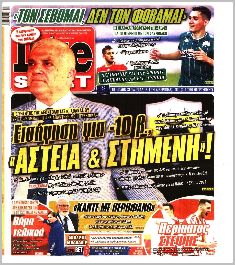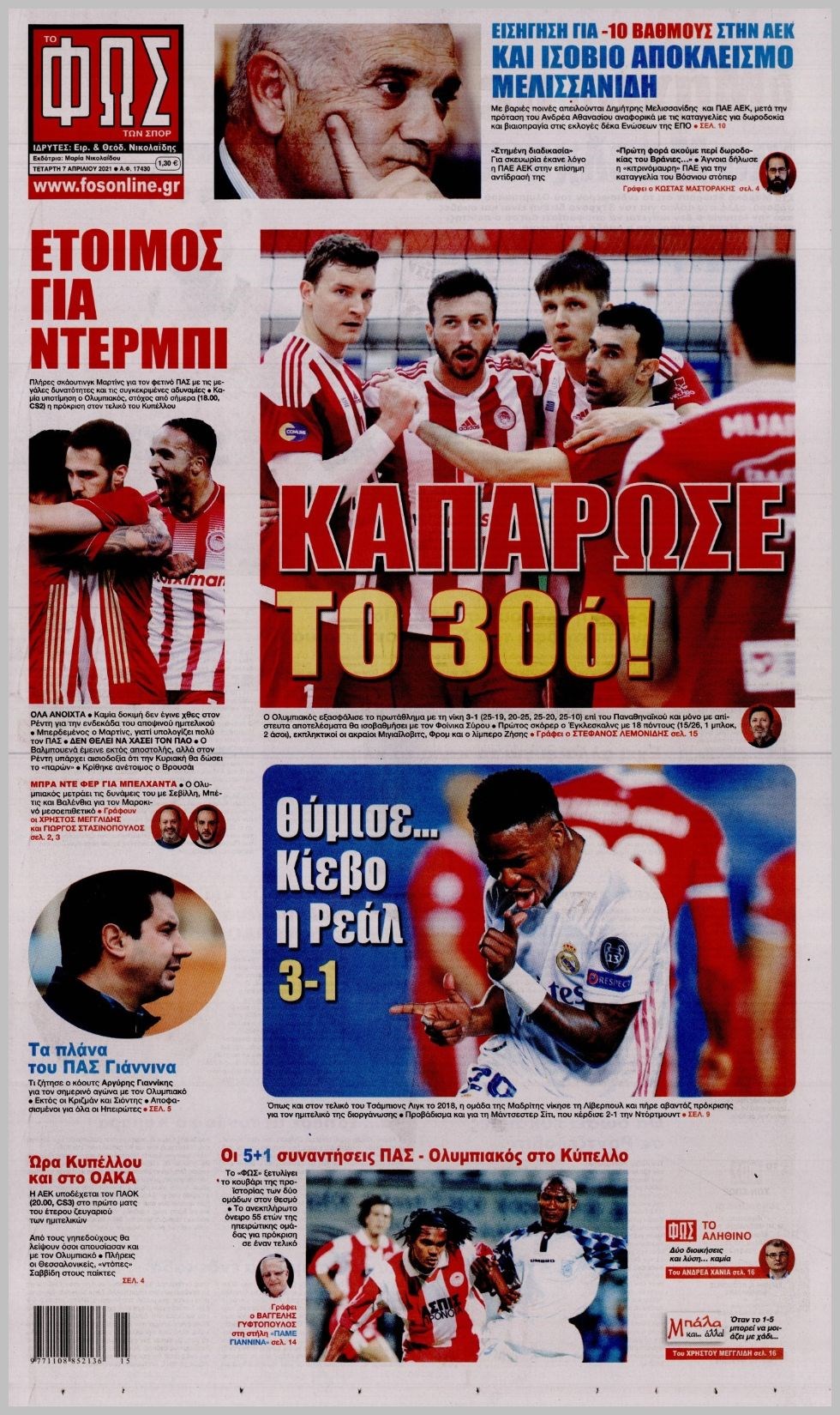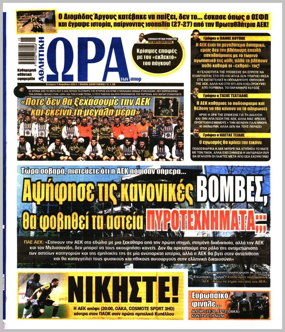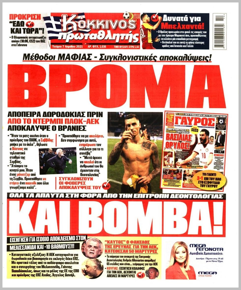 Οι αθλητικές εφημερίδες 7/4/2021 Διονύσης Νίκκας 06:53, Τετάρτη 07 Απριλίου 2021 Media Διαβάστε τα πρωτοσέλιδα των αθλητικών εφημερίδων… ΑΘΛΗΤΙΚΕΣ ΕΦΗΜΕΡΙΔΕΣ Μοιράσου το: σχολίασε κι εσύ (0 σχόλια) Ακολουθήστε το enikos.gr στο Google News και μάθετε πρώτοι όλες τις ειδήσεις Δείτε όλες τις τελευταίες ειδήσεις από την Ελλάδα και τον Κόσμο στο enikos.gr Ειδήσεις Ροή Ειδήσεων 3 ώρες πριν Χριστούγεννα στα μπλόκα: Επιμένουν στις κινητοποιήσεις τους οι αγρότες – Ανοίγουν τα διόδια το Σαββατοκύριακο 3 ώρες πριν Ουκρανία: Η άνευ προηγουμένου επίθεση σε ρωσικό τάνκερ στη Μεσόγειο και το μήνυμα προς στον Πούτιν – Το «μακρύ χέρι» του Κιέβου 2 ώρες πριν Πούτιν: Τα μηνύματα σε Ευρώπη και ΝΑΤΟ από το μαραθώνιο «σόου» του – Η απαίτηση για «σεβασμό» και η ειρήνη «με τους όρους» της Μόσχας 3 ώρες πριν Τραμπ: Δεν αποκλείει την πιθανότητα ενός πολέμου στη Βενεζουέλα – «Ο Μαδούρο ξέρει καλύτερα από τον καθένα τι ακριβώς θέλω» 4 ώρες πριν Συνεχίζει να προκαλεί ο Μίτσκοσκι: «Για μένα το όνομα Μακεδονία είναι ιερό» 2 ώρες πριν Ανακαλύφθηκαν αρχαία χρυσά νομίσματα 2.200 ετών που απεικονίζουν τον θεό Απόλλωνα – Η άγνωστη σύνδεση με τον Φίλιππο Β΄ της Μακεδονίας 3 ώρες πριν Ύπνος: Μια κρυφή κατάσταση του εγκεφάλου πριν από τον ύπνο μπορεί να είναι το “κλειδί” για υψηλή ευφυΐα και δημιουργικότητα 4 ώρες πριν Αριθμολογία: Οι άνθρωποι που έχουν γεννηθεί αυτές τις 4 ημερομηνίες, συχνά παρεξηγούνται – «Η καλοσύνη τους κρύβει τεράστια δύναμη» 5 ώρες πριν Ξεχάστε το καθάρισμα το Σαββατοκύριακο: Ο «κανόνας των 20 λεπτών» που θα σας λύσει τα χέρια 3 λεπτά πριν Συρία: Μαζικά πλήγματα των ΗΠΑ σε θέσεις του Ισλαμικού Κράτους – Χέγκσεθ: «Δεν είναι αρχή πολέμου, είναι μια δήλωση εκδίκησης» για το θάνατο των στρατιωτών μας 16 λεπτά πριν Ουκρανία: Ολοκληρώθηκαν οι συνομιλίες με τους Αμερικανούς κι Ευρωπαίους διαπραγματευτές 31 λεπτά πριν Μπαρτσελόνα – Μπασκόνια 134-124: Οι «μπλαουγκράνα» πήραν το ματς της χρονιάς ύστερα από τρεις παρατάσεις 46 λεπτά πριν Φαίη Σκορδά: «Παλιότερα τα κομπλιμέντα τα προσπερνούσα, τώρα τα έχω ανάγκη» 1 ώρα πριν Βασίλης Σπανούλης: Δεν εμφανίστηκε ούτε ένας δημοσιογράφος στην συνέντευξη Τύπου – «Καλησπέρα στον… κανέναν», δείτε βίντεο ENIKOS NETWORK Το ΕΚΑΒ τιμήθηκε από την Ακαδημία Αθηνών για τα 40 χρόνια προσφοράς του Έχετε πραγματικά μεγάλη καρδιά; 10 χαρακτηριστικά όσων έχουν καλοσύνη Αναστολή μέτρων αναγκαστικής εκτέλεσης για κτηνοτρόφους που πλήττονται από την ευλογιά των αιγοπροβάτων Πλήρης επάρκεια προϊόντων στις λαϊκές της Αττικής, παρά τις αγροτικές κινητοποιήσεις – Τι απαντούν οι πωλητές Χαρτογραφώντας το «σημείο χωρίς επιστροφή»: Για πρώτη φορά αποκαλύπτεται με λεπτομέρεια το ακανθώδες όριο της ατμόσφαιρας τ... Η Google καταργεί τη λειτουργία «dark web report» – Πώς θα μπορούν οι χρήστες να διαγράφουν τα δεδομένα τους περισσότερα 22:42 , Παρασκευή 19 Δεκεμβρίου 2025 Γιώργος Γιαννόπουλος για “Το σόι σου”: “Είναι ευτυχία και ευλογία αυτή η σειρά” «Είναι ευτυχία και ευλογία η συγκυρία αυτής της σειράς», θα πει ο Γιώργος Γιαννόπουλος -ο αγαπ... 20:37 , Παρασκευή 19 Δεκεμβρίου 2025 Don’t Forget The Lyrics: Η Έλλη Κοκκίνου υποδέχεται 4 παίκτες που θα κάνουν τα πάντα για να μη χάσουν ούτε… μισή λέξη από τους στίχους Το «Don’t Forget The Lyrics» επιστρέφει απόψε, Παρασκευή 19 Δεκεμβρίου, στις 21:00 με νέο επει... 19:31 , Παρασκευή 19 Δεκεμβρίου 2025 GNTM: Απόψε ο μεγάλος τελικός για τους 4 φιναλίστ Έπειτα από μήνες γεμάτους μόδα, δημ
