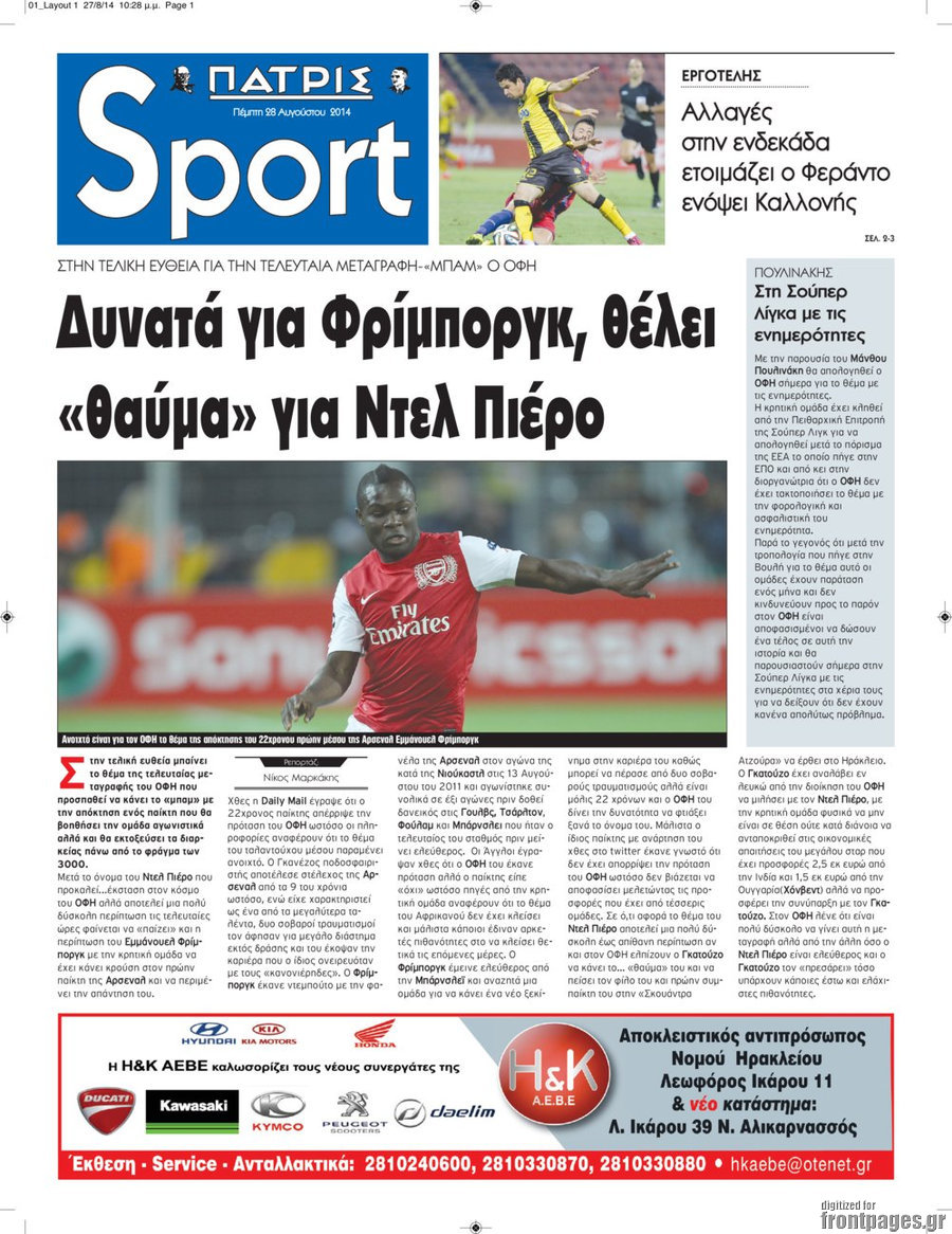 Οι αθλητικές εφημερίδες Enikos Newsroom 08:36, Πέμπτη 28 Αυγούστου 2014 Media Οι αθλητικές εφημερίδες Διαβάστε τα πρωτοσέλιδα των αθλητικών εφημερίδων: ΑΘΛΗΤΙΚΕΣ ΕΦΗΜΕΡΙΔΕΣ ΕΦΗΜΕΡΙΔΕΣ ΠΡΩΤΟΣΕΛΙΔΑ Μοιράσου το: σχολίασε κι εσύ (0 σχόλια) Ακολουθήστε το enikos.gr στο Google News και μάθετε πρώτοι όλες τις ειδήσεις Δείτε όλες τις τελευταίες ειδήσεις από την Ελλάδα και τον Κόσμο στο enikos.gr Ειδήσεις Ροή Ειδήσεων 4 ώρες πριν Μεσόγειος: Η διαδρομή του ρωσικού τάνκερ «Qendil» και η στοχευμένη επίθεση της Ουκρανίας με drone – Ο Πούτιν προειδοποίησε για αντίποινα 29 λεπτά πριν Αγρότες: Έκλεισαν για μία ώρα την παρακαμπτήρια της Ιόνιας Οδού στη θέση Χαλίκι 2 ώρες πριν Εμπλοκή και αερομαχίες με οπλισμένα τουρκικά F-16 στο Αιγαίο 2 ώρες πριν Πούτιν: «Ναι, είμαι ερωτευμένος» – Βίντεο από τη σπάνια προσωπική παραδοχή του 33 λεπτά πριν Ανδρέας Λυκουρέντζος: Υπέβαλε την παραίτησή του ο πρόεδρος του ΕΛΓΑ, αλλά δεν έγινε δεκτή – Όλο το παρασκήνιο 43 λεπτά πριν Αριθμολογία: Οι άνθρωποι που έχουν γεννηθεί αυτές τις 4 ημερομηνίες, συχνά παρεξηγούνται – «Η καλοσύνη τους κρύβει τεράστια δύναμη» 3 ώρες πριν Μήπως έχετε χάσει τον εαυτό σας στη σχέση σας; 7 «αθόρυβες» υποχωρήσεις που μάλλον κάνατε, χωρίς να το συνειδητοποιήσετε 2 ώρες πριν Ξεχάστε το καθάρισμα το Σαββατοκύριακο: Ο «κανόνας των 20 λεπτών» που θα σας λύσει τα χέρια 5 ώρες πριν Κουίζ για την παλιά Αθήνα: Αναγνωρίζετε την περιοχή; Έχετε περάσει 100% από εκεί 2 λεπτά πριν Τραγωδία στο Βελεστίνο: Πέθανε ο αντιδήμαρχος Γιάννης Παπαϊωάννου 6 λεπτά πριν Ολυμπιακός – Βιλερμπάν: Μάτωσε στο πρόσωπο ο Παπανικολάου έπειτα από αγκωνιά του Βοτιέ – ΦΩΤΟ 14 λεπτά πριν Συνεχίζει να προκαλεί ο Μίτσκοσκι: «Για μένα το όνομα Μακεδονία είναι ιερό» 24 λεπτά πριν Ο Γιάννης Κακλέας σκηνοθετεί Βερόνικα Δαβάκη και Ιβάν Σβιτάιλο στη «Locandiera» 29 λεπτά πριν Αγρότες: Έκλεισαν για μία ώρα την παρακαμπτήρια της Ιόνιας Οδού στη θέση Χαλίκι ENIKOS NETWORK Το ΕΚΑΒ τιμήθηκε από την Ακαδημία Αθηνών για τα 40 χρόνια προσφοράς του Έχετε πραγματικά μεγάλη καρδιά; 10 χαρακτηριστικά όσων έχουν καλοσύνη Έρχονται νέες προσλήψεις σε Δήμο – Όλες οι λεπτομέρειες Επίδομα παιδιού: Πότε ανοίγει ξανά η πλατφόρμα για τις αιτήσεις Χαρτογραφώντας το «σημείο χωρίς επιστροφή»: Για πρώτη φορά αποκαλύπτεται με λεπτομέρεια το ακανθώδες όριο της ατμόσφαιρας τ... Η Google καταργεί τη λειτουργία «dark web report» – Πώς θα μπορούν οι χρήστες να διαγράφουν τα δεδομένα τους περισσότερα 20:37 , Παρασκευή 19 Δεκεμβρίου 2025 Don’t Forget The Lyrics: Η Έλλη Κοκκίνου υποδέχεται 4 παίκτες που θα κάνουν τα πάντα για να μη χάσουν ούτε… μισή λέξη από τους στίχους Το «Don’t Forget The Lyrics» επιστρέφει απόψε, Παρασκευή 19 Δεκεμβρίου, στις 21:00 με νέο επει... 19:31 , Παρασκευή 19 Δεκεμβρίου 2025 GNTM: Απόψε ο μεγάλος τελικός για τους 4 φιναλίστ Έπειτα από μήνες γεμάτους μόδα, δημιουργία και έντονες αναμετρήσεις, το GNTM 2025 κορυφώνεται,... 18:11 , Παρασκευή 19 Δεκεμβρίου 2025 Το σόι σου: Ο Άρης έρχεται στην Ελλάδα για τις γιορτές των Χριστουγέννων – Τι θα δούμε στο αποψινό εορταστικό επεισόδιο Ένα απολαυστικό, εορταστικό επεισόδιο της σειράς “Το σόι σου”, γεμάτο ευτράπελα αλ... 15:15 , Παρασκευή 19 Δεκεμβρίου 2025 Την Κυριακή με τη Realnews: Ό,τι και αν αγοράσεις, σκανάρεις και κερδίζεις! Την Κυριακή με τη Realnews: Ό,τι και αν αγοράσεις, σκανάρεις και κερδίζεις! Με το PADU app, το... ΤΕΛΕΥΤΑΙΕΣ ΕΙΔΗΣΕΙΣ 2 λεπτά πριν Τραγωδία στο Βελεστίνο: Πέθανε ο αντιδήμαρχος Γιάννης... 6 λεπτά πριν Ολυμπιακός – Βι