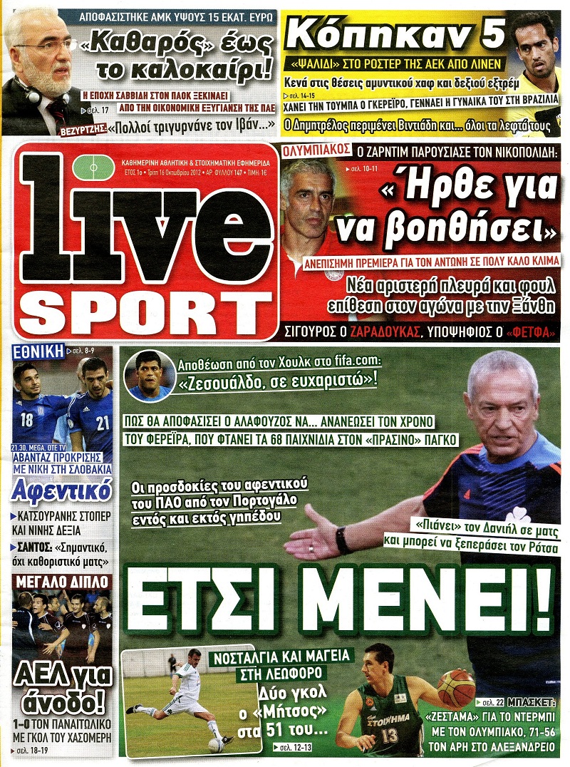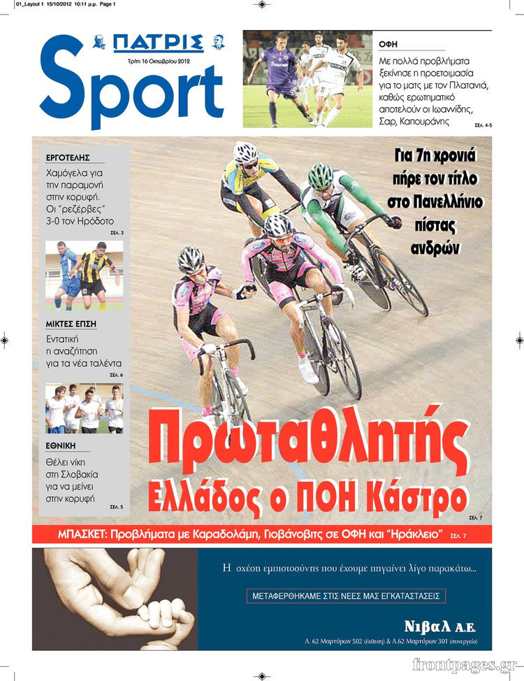 Οι αθλητικές εφημερίδες Enikos Newsroom 08:54, Τρίτη 16 Οκτωβρίου 2012 Media Δείτε τα σημερινά πρωτοσέλιδα των αθλητικών εφημερίδων. ΑΘΛΗΤΙΚΕΣ ΕΦΗΜΕΡΙΔΕΣ Μοιράσου το: σχολίασε κι εσύ (0 σχόλια) Ακολουθήστε το enikos.gr στο Google News και μάθετε πρώτοι όλες τις ειδήσεις Δείτε όλες τις τελευταίες ειδήσεις από την Ελλάδα και τον Κόσμο στο enikos.gr Ειδήσεις Ροή Ειδήσεων 3 ώρες πριν Ακίλα Σάλεχ: «Άκυρο» το τουρκολιβυκό μνημόνιο λέει ο πρόεδρος της λιβυκής Βουλής – Ανοίγει ο διάλογος με Ελλάδα, Αίγυπτο και Τουρκία 7 ώρες πριν Αγρότες: Την Τρίτη η απόφαση για διάλογο ή κλιμάκωση των κινητοποιήσεών τους – Πώς χαρακτηρίζουν τις ανακοινώσεις Τσιάρα και οι επόμενες κινήσεις 7 ώρες πριν Τραμπ για Ουκρανία: «Είμαστε πιο κοντά σε συμφωνία από ποτέ» – «Πολυεθνική δύναμη» προτείνουν οι Ευρωπαίοι 7 ώρες πριν Κυψέλη: Η 16χρονη που μαχαίρωσε την 14χρονη είχε συλληφθεί 3 φορές στο παρελθόν – Έβριζε καθηγητές, έβαζε φωτιές σε κάδους και εκβίαζε συμμαθητές της 7 ώρες πριν Τρομοκρατική επίθεση στο Σίδνεϊ: Θλίψη για τα 15 θύματα – Οργή στην εβραϊκή κοινότητα που προειδοποιούσε επί δύο χρόνια 7 ώρες πριν Επιστήμονες ίσως έλυσαν το μυστήριο γύρω από τα Χόμπιτ – Νέα έρευνα αποκαλύπτει πώς εξαφανίστηκαν 8 ώρες πριν Ύπνος: Η αρχαία μορφή άσκησης που αποδεικνύεται αποτελεσματική στην αντιμετώπιση της αϋπνίας, σύμφωνα με μελέτη 9 ώρες πριν Αριθμολογία: Ο τυχερός σας αριθμός, ανάλογα με τον μήνα γέννησής σας 10 ώρες πριν Πώς να μην μαραίνονται γρήγορα τα κομμένα λουλούδια: Το λάθος στην τοποθέτηση του βάζου που πρέπει να αποφεύγετε 26 δευτερόλεπτα πριν Δώρο Χριστουγέννων 2025: Ποιοι εργαζόμενοι το δικαιούνται – Η online εφαρμογή της ΓΣΕΕ για να το υπολογίσετε 8 λεπτά πριν Υψηλή χοληστερίνη: Γιατρός αποκαλύπτει δύο τρόπους για να την μειώσετε χωρίς φαρμακευτική αγωγή 16 λεπτά πριν Σαν σήμερα 16 Δεκεμβρίου: Τα σημαντικότερα γεγονότα της ημέρας 21 λεπτά πριν Οι οικονομικές εφημερίδες 16/12/2025 26 λεπτά πριν Οι αθλητικές εφημερίδες 16/12/2025 ENIKOS NETWORK Πότε το χρόνιο ροχαλητό να αποτελέσει ένδειξη κινδύνου για την καρδιά; Τι λένε οι ειδικοί Μάριος Θεμιστοκλέους: Το ΕΣΥ ενισχύεται, εκσυγχρονίζεται, αλλάζει ΕΒΕΠ για αγροτικές κινητοποιήσεις: Κάθε επιπλέον εβδομάδα προσθέτει περίπου 200 εκατ. ευρώ ζημιά Τι προβλέπει το νομοσχέδιο του υπουργείου Εθνικής Άμυνας – Oι αλλαγές στους μισθούς Σύγχρονος Νοστράδαμος: Προειδοποιεί για «μεγάλο γεγονός» τους επόμενους μήνες που θα συγκλονίσει τη Βρετανία και τον κόσμο Τεστ παρατηρητικότητας: Μπορείτε να βρείτε τις 3 διαφορές στις εικόνες με έναν πιγκουίνο σε 14 δευτερόλεπτα περισσότερα 05:48 , Τρίτη 16 Δεκεμβρίου 2025 Οι οικονομικές εφημερίδες 16/12/2025 Διαβάστε τα πρωτοσέλιδα από τις οικονομικές εφημερίδες, σήμερα 16/12/2025. 05:43 , Τρίτη 16 Δεκεμβρίου 2025 Οι αθλητικές εφημερίδες 16/12/2025 Διαβάστε τα πρωτοσέλιδα από τις αθλητικές εφημερίδες, σήμερα 16/12/2025. 05:38 , Τρίτη 16 Δεκεμβρίου 2025 Οι πολιτικές εφημερίδες 16/12/2025 Διαβάστε τα πρωτοσέλιδα από τις πολιτικές εφημερίδες, σήμερα 16/12/2025. 21:35 , Δευτέρα 15 Δεκεμβρίου 2025 Το Σπίτι Δίπλα Στο Ποτάμι: Η Ιουλία και ο Φωκάς μετακομίζουν στη Ρόδο – Δύο νέοι χαρακτήρες μπαίνουν στη σειρά Δύο νέοι, κομβικοί χαρακτήρες κάνουν την εμφάνισή τους αυτή την εβδομάδα στην αγαπημένη σειρά ... ΤΕΛΕΥΤΑΙΕΣ ΕΙΔΗΣΕΙΣ 8 λεπτά πριν Υψηλή χοληστερίνη: Γιατρός αποκαλύπτει δύο τρόπους... 16 λεπτά πριν Σαν σήμερα 16 Δεκεμβρίου: Τα σημαντικότερα γεγονότα... 21 λεπτά πριν Οι οικονομικές εφημερ