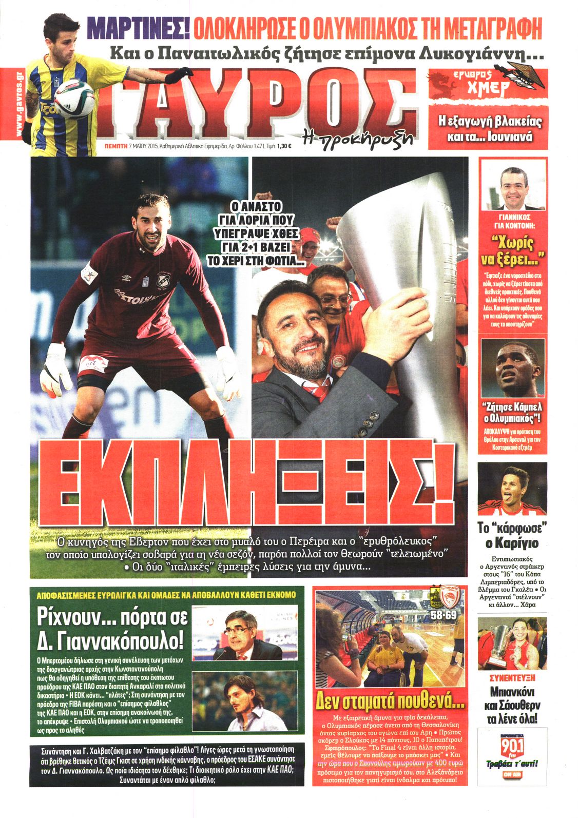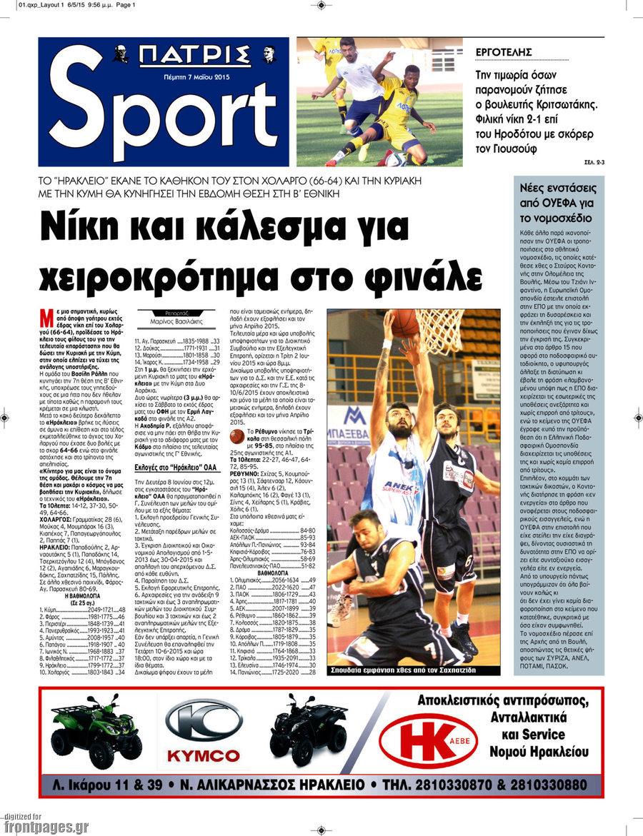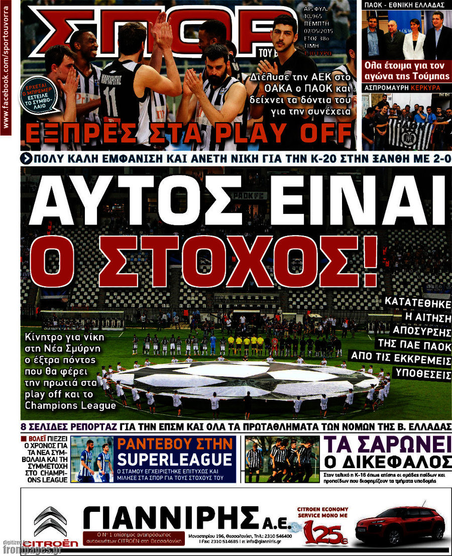 Οι αθλητικές εφημερίδες 7/5/2015 Enikos Newsroom 07:16, Πέμπτη 07 Μαΐου 2015 Media Διαβάστε τα σημερινά πρωτοσέλιδα των αθλητικών εφημερίδων: ΑΘΛΗΤΙΚΕΣ ΕΦΗΜΕΡΙΔΕΣ ΠΡΩΤΟΣΕΛΙΔΑ Μοιράσου το: σχολίασε κι εσύ (0 σχόλια) Ακολουθήστε το enikos.gr στο Google News και μάθετε πρώτοι όλες τις ειδήσεις Δείτε όλες τις τελευταίες ειδήσεις από την Ελλάδα και τον Κόσμο στο enikos.gr Ειδήσεις Ροή Ειδήσεων 3 ώρες πριν Μεσόγειος: Η διαδρομή του ρωσικού τάνκερ «Qendil» και η στοχευμένη επίθεση της Ουκρανίας με drone – Ο Πούτιν προειδοποίησε για αντίποινα 5 λεπτά πριν Αγρότες: Έκλεισαν την παρακαμπτήρια της Ιόνιας Οδού στη θέση Χαλίκι 2 ώρες πριν Εμπλοκή και αερομαχίες με οπλισμένα τουρκικά F-16 στο Αιγαίο 3 ώρες πριν Αττική: Θρίλερ με νεκρό βρέφος 5 μηνών – Κοιμόταν στο ίδιο κρεβάτι με τους γονείς του 2 ώρες πριν Πούτιν: «Ναι, είμαι ερωτευμένος» – Βίντεο από τη σπάνια προσωπική παραδοχή του 19 λεπτά πριν Αριθμολογία: Οι άνθρωποι που έχουν γεννηθεί αυτές τις 4 ημερομηνίες, συχνά παρεξηγούνται – «Η καλοσύνη τους κρύβει τεράστια δύναμη» 2 ώρες πριν Μήπως έχετε χάσει τον εαυτό σας στη σχέση σας; 7 «αθόρυβες» υποχωρήσεις που μάλλον κάνατε, χωρίς να το συνειδητοποιήσετε 1 ώρα πριν Ξεχάστε το καθάρισμα το Σαββατοκύριακο: Ο «κανόνας των 20 λεπτών» που θα σας λύσει τα χέρια 4 ώρες πριν Κουίζ για την παλιά Αθήνα: Αναγνωρίζετε την περιοχή; Έχετε περάσει 100% από εκεί 5 λεπτά πριν Αγρότες: Έκλεισαν την παρακαμπτήρια της Ιόνιας Οδού στη θέση Χαλίκι 9 λεπτά πριν Ανδρέας Λυκουρέντζος: Υπέβαλε την παραίτησή του ο πρόεδρος του ΕΛΓΑ, αλλά δεν έγινε δεκτή – Όλο το παρασκήνιο 14 λεπτά πριν Ηράκλειο: «Ιπτάμενοι» Άγιοι Βασίληδες μοίρασαν δώρα και χαμόγελα στα παιδιά στο ΠΑΓΝΗ – Δείτε βίντεο 19 λεπτά πριν Αριθμολογία: Οι άνθρωποι που έχουν γεννηθεί αυτές τις 4 ημερομηνίες, συχνά παρεξηγούνται – «Η καλοσύνη τους κρύβει τεράστια δύναμη» 26 λεπτά πριν Ρύθμιση του ΥΠΑΑΤ για τους αγρότες που δεν έλαβαν τη βασική ενίσχυση λόγω εκκρεμοτήτων στο Κτηματολόγιο ENIKOS NETWORK Το ΕΚΑΒ τιμήθηκε από την Ακαδημία Αθηνών για τα 40 χρόνια προσφοράς του Έχετε πραγματικά μεγάλη καρδιά; 10 χαρακτηριστικά όσων έχουν καλοσύνη Έρχονται νέες προσλήψεις σε Δήμο – Όλες οι λεπτομέρειες Επίδομα παιδιού: Πότε ανοίγει ξανά η πλατφόρμα για τις αιτήσεις Χαρτογραφώντας το «σημείο χωρίς επιστροφή»: Για πρώτη φορά αποκαλύπτεται με λεπτομέρεια το ακανθώδες όριο της ατμόσφαιρας τ... Η Google καταργεί τη λειτουργία «dark web report» – Πώς θα μπορούν οι χρήστες να διαγράφουν τα δεδομένα τους περισσότερα 20:37 , Παρασκευή 19 Δεκεμβρίου 2025 Don’t Forget The Lyrics: Η Έλλη Κοκκίνου υποδέχεται 4 παίκτες που θα κάνουν τα πάντα για να μη χάσουν ούτε… μισή λέξη από τους στίχους Το «Don’t Forget The Lyrics» επιστρέφει απόψε, Παρασκευή 19 Δεκεμβρίου, στις 21:00 με νέο επει... 19:31 , Παρασκευή 19 Δεκεμβρίου 2025 GNTM: Απόψε ο μεγάλος τελικός για τους 4 φιναλίστ Έπειτα από μήνες γεμάτους μόδα, δημιουργία και έντονες αναμετρήσεις, το GNTM 2025 κορυφώνεται,... 18:11 , Παρασκευή 19 Δεκεμβρίου 2025 Το σόι σου: Ο Άρης έρχεται στην Ελλάδα για τις γιορτές των Χριστουγέννων – Τι θα δούμε στο αποψινό εορταστικό επεισόδιο Ένα απολαυστικό, εορταστικό επεισόδιο της σειράς “Το σόι σου”, γεμάτο ευτράπελα αλ... 15:15 , Παρασκευή 19 Δεκεμβρίου 2025 Την Κυριακή με τη Realnews: Ό,τι και αν αγοράσεις, σκανάρεις και κερδίζεις! Την Κυριακή με τη Realnews: Ό,τι και αν αγοράσεις, σκανάρεις και κερδίζεις! Με το PADU app, το... ΤΕΛΕΥΤΑΙΕΣ ΕΙΔΗΣΕΙΣ 5 λεπτά πριν Αγρότες: Έκλεισαν την παρα