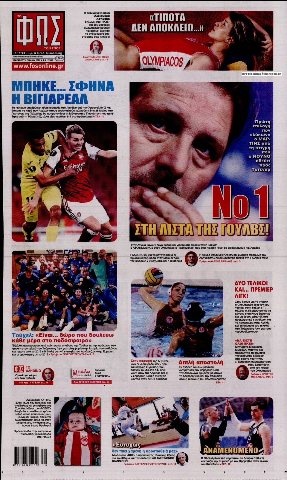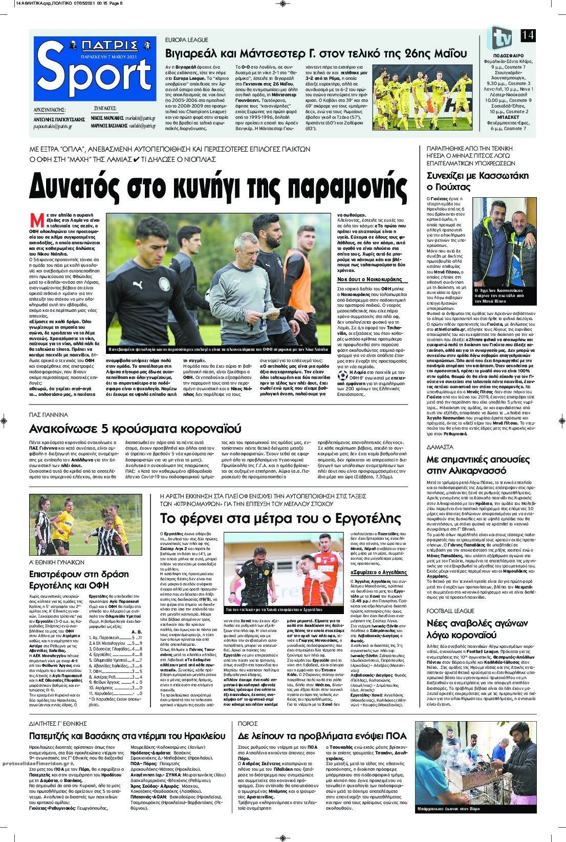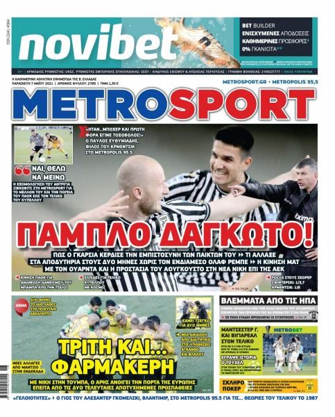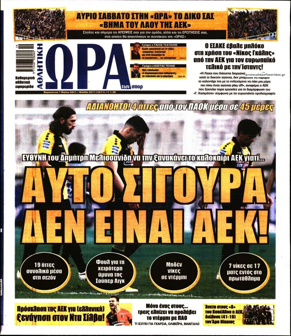 Οι αθλητικές εφημερίδες 7/5/2021 Σήφης Γαρυφαλάκης 06:21, Παρασκευή 07 Μαΐου 2021 Media Διαβάστε τα πρωτοσέλιδα των αθλητικών εφημερίδων. ΕΦΗΜΕΡΙΔΕΣ ΠΡΩΤΟΣΕΛΙΔΑ Μοιράσου το: σχολίασε κι εσύ (0 σχόλια) Ακολουθήστε το enikos.gr στο Google News και μάθετε πρώτοι όλες τις ειδήσεις Δείτε όλες τις τελευταίες ειδήσεις από την Ελλάδα και τον Κόσμο στο enikos.gr Ειδήσεις Ροή Ειδήσεων 33 λεπτά πριν Χριστούγεννα στα μπλόκα οι αγρότες: Άνοιξαν στα διόδια και μοίρασαν προϊόντα στους πολίτες – Νέα σύσκεψη την Κυριακή στη Νίκαια 54 λεπτά πριν Κύκλωμα διακίνησης ναρκωτικών σε σχολεία: Τηλεφωνούσαν στους ανηλίκους την ώρα του μαθήματος – Οι διάλογοι-σοκ, τα «ψευδώνυμα» και τα βασανιστήρια 23 λεπτά πριν Αρχεία Επστάιν: Οι 500 σελίδες που λείπουν, τα αναπάντητα ερωτήματα και οι επώνυμοι – Τι έπεται 2 ώρες πριν Ζελένσκι: Μόνο οι ΗΠΑ και ο Τραμπ μπορούν να πιέσουν τη Ρωσία να βάλει τέλος στον πόλεμο 2 ώρες πριν Φοινικούντα: Προφυλακιστέος ο 30χρονος για συνέργεια στη διπλή δολοφονία – Και άλλα πρόσωπα στο «μικροσκόπιο» 2 ώρες πριν Αριθμολογία: Ο αριθμός του φύλακα αγγέλου σας, με βάση τον μήνα γέννησής σας – «Έτσι σας στέλνει σημάδια το σύμπαν» 3 ώρες πριν Πώς να απαλλαγείτε από τη μυρωδιά του τηγανητού φαγητού: Το μυστικό βρίσκεται στην κουζίνα σας 14 ώρες πριν Enerwave: Το νέο «ρεύμα» στη λιανική ενέργειας που αλλάζει την εμπειρία του καταναλωτή 1 ώρα πριν Ύπνος: Η διατροφή που μπορεί να σας βοηθήσει να κοιμάστε καλύτερα και να ζήσετε περισσότερο 4 λεπτά πριν Super League: Η βαθμολογία, μετά την ισοπαλία του Ολυμπιακού 19 λεπτά πριν Αποκαλύφθηκε το άγνωστο «GPS» της αρχαιότητας – Πώς οι ναοί «φώτιζαν» τον δρόμο των ναυτικών πριν από την εφεύρεση των φάρων 23 λεπτά πριν Αρχεία Επστάιν: Οι 500 σελίδες που λείπουν, τα αναπάντητα ερωτήματα και οι επώνυμοι – Τι έπεται 33 λεπτά πριν Χριστούγεννα στα μπλόκα οι αγρότες: Άνοιξαν στα διόδια και μοίρασαν προϊόντα στους πολίτες – Νέα σύσκεψη την Κυριακή στη Νίκαια 43 λεπτά πριν Ολυμπιακός – Κηφισιά 1-1: Δεύτερη σερί ισοπαλία για τους Ερυθρόλευκους – Υπό… αμφισβήτηση η κορυφή της Super League ENIKOS NETWORK Οι γυναίκες αποκαλύπτουν το πιο ελκυστικό πράγμα που μπορεί να κάνει ένας άνδρας Ομορφιά και αντιγήρανση: Ειδικοί μιλούν για συσκευές περιποίησης του δέρματος Ακύρωση ΑΦΜ για απάτες – Ποιους βάζει στο στόχαστρο η ΑΑΔΕ Ρεύμα: Πώς μπορείτε να αλλάξετε πάροχο γρήγορα και εύκολα – Τα βήματα της διαδικασίας Χαρτογραφώντας το «σημείο χωρίς επιστροφή»: Για πρώτη φορά αποκαλύπτεται με λεπτομέρεια το ακανθώδες όριο της ατμόσφαιρας τ... Η Google καταργεί τη λειτουργία «dark web report» – Πώς θα μπορούν οι χρήστες να διαγράφουν τα δεδομένα τους περισσότερα 20:30 , Σάββατο 20 Δεκεμβρίου 2025 Αυτή την Κυριακή με τη Realnews: Instyle, μαζί Drive και Realnews Geopolitics Αυτή την Κυριακή με τη Realnews: Instyle, μαζί Drive και Realnews Geopolitics Instyle Η Άννα Ρ... 20:28 , Σάββατο 20 Δεκεμβρίου 2025 Ο ΑΝΤ1 γεμίζει τις γιορτές με μουσική – Ποιους καλλιτέχνες θα απολαύσουμε Φέτος στον ΑΝΤ1 γιορτάζουμε τις νύχτες μας παρέα με αγαπημένους καλλιτέχνες και μεγάλες μουσι... 18:19 , Σάββατο 20 Δεκεμβρίου 2025 HOTΕΛ ΕΛVIRA: Η Ελβίρα μαθαίνει πως ο Χάρι μένει κρυφά στο ξενοδοχείο του Παντελή Συνεχίζονται οι εκλογές για πρόεδρο, στο νέο επεισόδιο της κωμικής σειράς του MEGA, HOTΕΛ ΕΛVI... 14:04 , Σάββατο 20 Δεκεμβρίου 2025 Η Realnews αυτής της Κυριακής (21/12/2025) Με τίτλο: «Ασπίδα προστασίας για την Ελλάδα» κυκλοφορεί, αυτήν την Κυριακή, η Realnews. Σημαντ... ΤΕΛΕΥΤΑΙΕΣ ΕΙΔΗΣΕΙΣ 4 λεπτά πριν Super Leag