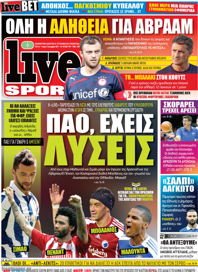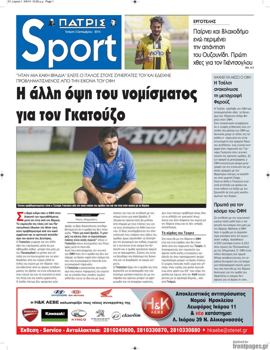 Οι αθλητικές εφημερίδες Enikos Newsroom 08:49, Τετάρτη 03 Σεπτεμβρίου 2014 Media Οι αθλητικές εφημερίδες Διαβάστε τα πρωτοσέλιδα των αθλητικών εφημερίδων: ΑΘΛΗΤΙΚΕΣ ΕΦΗΜΕΡΙΔΕΣ ΕΦΗΜΕΡΙΔΕΣ ΠΡΩΤΟΣΕΛΙΔΑ Μοιράσου το: σχολίασε κι εσύ (0 σχόλια) Ακολουθήστε το enikos.gr στο Google News και μάθετε πρώτοι όλες τις ειδήσεις Δείτε όλες τις τελευταίες ειδήσεις από την Ελλάδα και τον Κόσμο στο enikos.gr Ειδήσεις Ροή Ειδήσεων 29 λεπτά πριν Αγρότες: Πολύωροι αποκλεισμοί στα τελωνεία Προμαχώνα, Εξοχής, Ευζώνων και Νίκης – Κλείνουν τον κόμβο Φιλώτα οι παραγωγοί στη Δυτική Μακεδονία 2 ώρες πριν Ευρωπαϊκό Συμβούλιο: Όλες οι λεπτομέρειες για το δάνειο των 90 δισ. ευρώ στην Ουκρανία – Τα συμπεράσματα της Συνόδου Κορυφής 1 ώρα πριν Αίγιο: 22χρονη κατήγγειλε ότι έπεσε θύμα βιασμού και ληστείας από συγγενικά της πρόσωπα 2 ώρες πριν Νίκος Παππάς: Δρομολογήθηκαν οι διαδικασίες για τη διαγραφή του από τον ΣΥΡΙΖΑ μέσα στις γιορτές 1 ώρα πριν Σφοδρές βροχές και καταιγίδες πλήττουν τα Ηνωμένα Αραβικά Εμιράτα: Ακυρώσεις πτήσεων, προβλήματα στην κυκλοφορία 47 λεπτά πριν Αλλαγή σελίδας για 3 ζώδια – «Μία δύσκολη περίοδος φτάνει στο τέλος της» 3 ώρες πριν Πώς το αρχαίο DNA του κυνηγού – συλλέκτη ξεκλείδωσε τα μυστικά της μακροζωίας 2 ημέρες πριν 20 χρόνια τα Χριστούγεννα ξεκινούν στα Public με μεγάλη ποικιλία σε δώρα! 2 ώρες πριν Ο σύζυγός της συμπεριφέρεται όπως το παιδί τους – «Χρησιμοποιεί αστείες δικαιολογίες για να μην κάνει δουλειές και να ξοδεύει λεφτά» 32 δευτερόλεπτα πριν Κολομβία: Δεκάδες τραυματίες σε επεισόδια στον τελικό κυπέλλου 7 λεπτά πριν Τρομακτικό βίντεο: Η στιγμή της έκρηξης στο τζετ που μετέφερε τον οδηγό του NASCAR, Γκρεγκ Μπιφλ και την οικογένειά του 17 λεπτά πριν Έρχονται νέες κακοκαιρίες από αύριο – «Παρέλαση» βαρομετρικών χαμηλών φέρνει βροχές τα Χριστούγεννα και χιόνια την Πρωτοχρονιά 22 λεπτά πριν Εργατικό δυστύχημα στην Ελασσόνα – Νεκρός 59χρονος που έπεσε από ύψος 20 μέτρων 26 λεπτά πριν Ed Sheeran: Η εντυπωσιακή αλλαγή στο σώμα του – «Κάτω από όλα αυτά είμαι ένας καπνιστής που τρώει πίτσα και πίνει μπύρα» ENIKOS NETWORK Πότε μπορεί το χλωμό δέρμα να σχετίζεται με σοβαρή νόσο Ενίσχυση του μεταβολισμού: Η Νο1 άσκηση που πρέπει να κάνουν οι γυναίκες μετά τα 35 Απειλή για τον Προϋπολογισμό τα ληξιπρόθεσμα χρέη των ιδιωτών προς την εφορία – Τι δείχνουν τα στοιχεία Συντάξεις: Οι κερδισμένοι και οι χαμένοι από τις αυξήσεις – Αναλυτικός οδηγός Χαρτογραφώντας το «σημείο χωρίς επιστροφή»: Για πρώτη φορά αποκαλύπτεται με λεπτομέρεια το ακανθώδες όριο της ατμόσφαιρας τ... Η Google καταργεί τη λειτουργία «dark web report» – Πώς θα μπορούν οι χρήστες να διαγράφουν τα δεδομένα τους περισσότερα 08:00 , Παρασκευή 19 Δεκεμβρίου 2025 Την Κυριακή με τη Realnews: Δωροεπιταγή 10€ Δωροεπιταγή αξίας 10€ για αγορές άνω των 60€ από τα πολυκαταστήματα FactoryOutlet H προσφορά ι... 05:48 , Παρασκευή 19 Δεκεμβρίου 2025 Οι οικονομικές εφημερίδες 19/12/2025 Διαβάστε τα πρωτοσέλιδα από τις οικονομικές εφημερίδες, σήμερα 19/12/2025. 05:43 , Παρασκευή 19 Δεκεμβρίου 2025 Οι αθλητικές εφημερίδες 19/12/2025 Διαβάστε τα πρωτοσέλιδα από τις αθλητικές εφημερίδες, σήμερα 19/12/2025. 05:38 , Παρασκευή 19 Δεκεμβρίου 2025 Οι πολιτικές εφημερίδες 19/12/2025 Διαβάστε τα πρωτοσέλιδα από τις πολιτικές εφημερίδες, σήμερα 19/12/2025. ΤΕΛΕΥΤΑΙΕΣ ΕΙΔΗΣΕΙΣ 7 λεπτά πριν Τρομακτικό βίντεο: Η στιγμή της έκρηξης στο τζετ που... 17 λεπτά πριν Έρχονται νέες κακοκαιρίες από αύριο – «Παρέλαση»... 22 λεπτά πριν Εργατικό δυσ