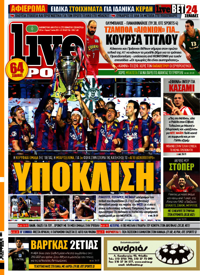 Οι αθλητικές εφημερίδες 7/6/2015 Enikos Newsroom 08:30, Κυριακή 07 Ιουνίου 2015 Media Διαβάστε τα σημερινά πρωτοσέλιδα των αθλητικών εφημερίδων. ΑΘΛΗΤΙΚΕΣ ΕΦΗΜΕΡΙΔΕΣ ΕΦΗΜΕΡΙΔΕΣ ΠΡΩΤΟΣΕΛΙΔΑ Μοιράσου το: σχολίασε κι εσύ (0 σχόλια) Ακολουθήστε το enikos.gr στο Google News και μάθετε πρώτοι όλες τις ειδήσεις Δείτε όλες τις τελευταίες ειδήσεις από την Ελλάδα και τον Κόσμο στο enikos.gr Ειδήσεις Ροή Ειδήσεων 3 ώρες πριν Μητσοτάκης σε αγρότες: Είμαστε ανοιχτοί στον διάλογο, αλλά όχι στο παράλογο – Η διεκδίκηση αιτημάτων οφείλει να γίνεται με σεβασμό στο κοινωνικό σύνολο 2 ώρες πριν Κηφισιά: Δύο συλλήψεις για ληστεία με λεία 180.000 ευρώ – Βίντεο ντοκουμέντα από τη δράση των συλληφθέντων 3 ώρες πριν Γρίπη: «Καμπανάκι» από τους επιστήμονες για έξαρση κρουσμάτων στις γιορτές – Ποιοι κινδυνεύουν και πώς προστατευόμαστε 4 ώρες πριν Γαλλία: Έτοιμοι για Χριστούγεννα στους δρόμους οι αγρότες – «Οι δεσμεύσεις της κυβέρνησης δεν είναι αρκετές» 4 ώρες πριν Η οικογενειακή διαμάχη των Μπέκαμ: Το block από τον Μπρούκλιν και η απόφαση να περάσει τα Χριστούγεννα με τους δισεκατομμυριούχους γονείς της συζύγου του 3 ώρες πριν Τα άστρα ευνοούν σκανδαλωδώς 4 ζώδια – «Εμφανίζονται ξαφνικά ευκαιρίες γιατί αποφασίζετε να αφήσετε πίσω το παρελθόν» 2 ώρες πριν Προπονήτρια γυμναστικής που έχασε 9 κιλά αποκαλύπτει: «Αυτοί είναι οι 5 παράγοντες που εμποδίζουν την απώλεια βάρους» 56 λεπτά πριν Οι άνθρωποι που στρώνουν το κρεβάτι τους κάθε πρωί, διαθέτουν αυτές τις 8 κρυφές δυνάμεις 1 ημέρα πριν Enerwave: Το νέο «ρεύμα» στη λιανική ενέργειας που αλλάζει την εμπειρία του καταναλωτή 3 λεπτά πριν Λειψυδρία: Πού βρισκόμαστε σήμερα και πώς προετοιμάζεται η ΕΥΔΑΠ για το επόμενο κρίσιμο διάστημα 11 λεπτά πριν Maestro – Χριστόφορος Παπακαλιάτης: Θα δείτε εκπλήξεις – Θα προβληθεί τον Οκτώβριο 20 λεπτά πριν ΣΥΡΙΖΑ για Μητσοτάκη: Ο κυνισμός και η αλαζονεία του δεν πείθει κανέναν πια – Ούτε τους αγροτοσυνδικαλιστές της παράταξης του 28 λεπτά πριν Athens Santa Run: Εκατοντάδες Άγιοι Βασίληδες έτρεξαν στο κέντρο της Αθήνες – Τα σκυλάκια έκλεψαν την παράσταση 36 λεπτά πριν Τσουκαλάς: Η διακυβέρνηση Μητσοτάκη διαιρεί την κοινωνία σε δύο Ελλάδες – Mια των λίγων που καλοπερνούν και μια των πολλών που αγκομαχούν ENIKOS NETWORK Φοράτε ψηλοτάκουνα παπούτσια; Ποδίατροι συμβουλεύουν πόσο ψηλά επιτρέπεται να είναι και πώς να τα επιλέξετε Άσκηση: η «ασπίδα» του εγκεφάλου απέναντι στη γήρανση Φοροδιαφυγή: Πώς τα ψηφιακά εργαλεία άλλαξαν τα δεδομένα το 2025 και έφεραν δισεκατομμύρια στα ταμεία του Δημοσίου “Προσβασιμότητα κατ’ Οίκον”: Έως αύριο η υποβολή των δικαιολογητικών για 3.000 δικαιούχους Χαρτογραφώντας το «σημείο χωρίς επιστροφή»: Για πρώτη φορά αποκαλύπτεται με λεπτομέρεια το ακανθώδες όριο της ατμόσφαιρας τ... Η Google καταργεί τη λειτουργία «dark web report» – Πώς θα μπορούν οι χρήστες να διαγράφουν τα δεδομένα τους περισσότερα 09:43 , Κυριακή 21 Δεκεμβρίου 2025 Το λάθος στην ταινία Die Hard που άφησε άναυδους τους θαυμαστές του Μπρους Γουίλις Ένας φανατικός των ταινιών άφησε άναυδους τους θαυμαστές του Die Hard, επισημαίνοντας τρία βασ... 08:13 , Κυριακή 21 Δεκεμβρίου 2025 Άγιος έρωτας: Ένας καταστροφικός σεισμός χτυπά τη Στέρνα Καταιγιστικές είναι οι εξελίξεις στα δυο τελευταία, συγκλονιστικά επεισόδια του 2025 της σειρά... 08:00 , Κυριακή 21 Δεκεμβρίου 2025 Σήμερα με τη Realnews: Ό,τι και αν αγοράσεις, σκανάρεις και κερδίζεις! Σήμερα με τη Realnews: Ό,τι και αν αγοράσεις, σκανάρεις κ