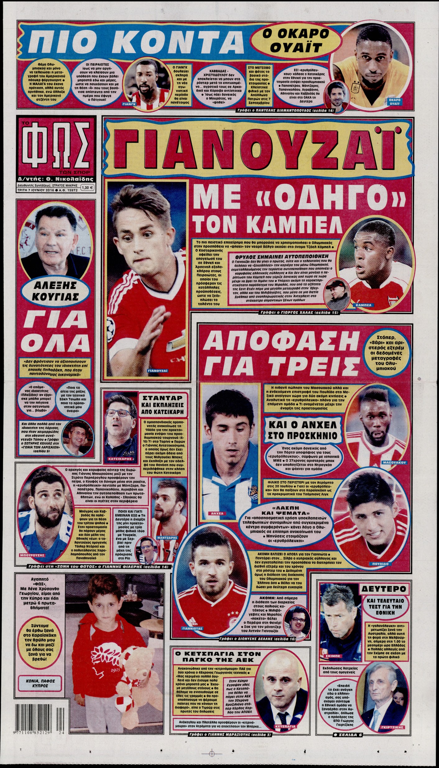 Οι αθλητικές εφημερίδες 7/6/2016 Enikos Newsroom 05:42, Τρίτη 07 Ιουνίου 2016 Media Διαβάστε τα σημερινά πρωτοσέλιδα των αθλητικών εφημερίδων: ΑΘΛΗΤΙΚΕΣ ΕΦΗΜΕΡΙΔΕΣ ΠΡΩΤΟΣΕΛΙΔΑ Μοιράσου το: σχολίασε κι εσύ (0 σχόλια) Ακολουθήστε το enikos.gr στο Google News και μάθετε πρώτοι όλες τις ειδήσεις Δείτε όλες τις τελευταίες ειδήσεις από την Ελλάδα και τον Κόσμο στο enikos.gr Ειδήσεις Ροή Ειδήσεων 4 ώρες πριν Αγρότες: «Όχι στον διάλογο, μας εμπαίζει η κυβέρνηση» – Αποφάσισαν κλιμάκωση των κινητοποιήσεων, τι θα γίνει τα Χριστούγεννα 1 ώρα πριν Αθήνα: Εξαρθρώθηκε εγκληματική οργάνωση που διακινούσε ναρκωτικά σε μορφή σοκολάτας – Δύο τράπερ ανάμεσα στους 4 συλληφθέντες – ΒΙΝΤΕΟ 1 ώρα πριν Στη φυλακή ο «Έλληνας Εσκομπάρ» και τρεις συνεργοί του για το φορτίο με την κοκαΐνη – Τι υποστήριξε στην απολογία του 3 ώρες πριν Γιώργος Μαζωνάκης: «Έχει υποστεί ένα σωρό εκβιαστικές πρακτικές – Του είπαν ότι θα του βάλουν τον συγκεκριμένο άνθρωπο να τον καταγγείλει» 1 ώρα πριν Γεωργιάδης για Κωνσταντοπούλου: «Έχει καταφέρει να ξεπεράσει ακόμη και τον εαυτό της – Το ερώτημα είναι “γιατί τώρα;”» 5 ώρες πριν Τα 5 ζώδια που θα ευνοηθούν στα οικονομικά τους το 2026 – «Τραβούν το χρήμα σαν μαγνήτες» 2 ώρες πριν Γάμος: 11 ψυχρές αλλά ευγενικές φράσεις, που λέει ένας άνδρας όταν σκέφτεται τον χωρισμό 1 ώρα πριν Σφουγγάρισμα: Η συνήθεια που θα σας βοηθήσει να διατηρήσετε το σπίτι σας καθαρό και τακτοποιημένο 1 ημέρα πριν 20 χρόνια τα Χριστούγεννα ξεκινούν στα Public με μεγάλη ποικιλία σε δώρα! 13 δευτερόλεπτα πριν Δημοσκόπηση Metron Analysis: Στις 10 μονάδες η διαφορά ΝΔ-ΠΑΣΟΚ, στην 3η θέση η Πλεύση Ελευθερίας – 8 στους 10 στηρίζουν τον αγώνα των αγροτών 5 λεπτά πριν Ολυμπιακός: Τι ζήτησε από τον Άγιο Βασίλη ο Χοσέ Λουίς Μεντιλίμπαρ 11 λεπτά πριν Manifesting: Πώς να συναντήσετε τον σύντροφο της ζωής σας, ανάλογα με τον μήνα γέννησής σας 20 λεπτά πριν Hellenic Train: Καθυστερήσεις στον Προαστιακό λόγω φωτιάς κοντά στη σιδηροδρομική γραμμή 32 λεπτά πριν ΗΠΑ: Νέες φωτογραφίες από τον φάκελο Επστάιν έδωσαν στην δημοσιότητα οι Δημοκρατικοί ENIKOS NETWORK Σε περίοδο αυξημένης δραστηριότητας η γρίπη στην Ελλάδα-Μέτρα προστασίας από τον ΕΟΔΥ Σκέφτεστε συνέχεια συζητήσεις που έχετε κάνει; Τι σημαίνει αυτό, σύμφωνα με ειδικό Servicers: Μικρή μείωση στα κόκκινα δάνεια που διαχειρίζονται – Αναλυτικά τα στοιχεία ΑΑΔΕ: “Αλλάζει πρόσωπο” το Φορολογικό Μητρώο για πολίτες και επιχειρήσεις – Όλες οι λεπτομέρειες Χαρτογραφώντας το «σημείο χωρίς επιστροφή»: Για πρώτη φορά αποκαλύπτεται με λεπτομέρεια το ακανθώδες όριο της ατμόσφαιρας τ... Η Google καταργεί τη λειτουργία «dark web report» – Πώς θα μπορούν οι χρήστες να διαγράφουν τα δεδομένα τους περισσότερα 17:45 , Πέμπτη 18 Δεκεμβρίου 2025 ROUK ZOUK: Εορταστικό επεισόδιο με καλεσμένους τους πρωταγωνιστές του «Γιατί ρε πατέρα» Το Σάββατο 20 Δεκεμβρίου στις 21:00, η Ζέτα Μακρυπούλια υποδέχεται εκλεκτούς ηθοποιούς που όλο... 17:20 , Πέμπτη 18 Δεκεμβρίου 2025 Άγιος έρωτας: Η Χριστίνα εξομολογείται στον πατέρα Νικόλαο, απόψε στις 21:00 στον Alpha Η Νότα αποφασίζει να εκδικηθεί τον Πέτρο και τον Στέφανο, για χάρη του Λούη, όμως τα πράγματα ... 16:50 , Πέμπτη 18 Δεκεμβρίου 2025 Να μ’ αγαπάς: Ζωή και Φωτεινή συμφιλιώνονται ως μάνα με κόρη, απόψε στις 20:00 Η ταυτότητα του Άγγελου αποκαλύπτεται στο νέο επεισόδιο της σειράς “Να μ’ αγαπάς... 15:52 , Πέμπτη 18 Δεκεμβρίου 2025 Το Σπίτι Δίπλα Στο Ποτάμι: Το καθηλωτικό τελευταίο επεισόδιο για το 2025 απόψε στις 22:30 Καθηλώνει 