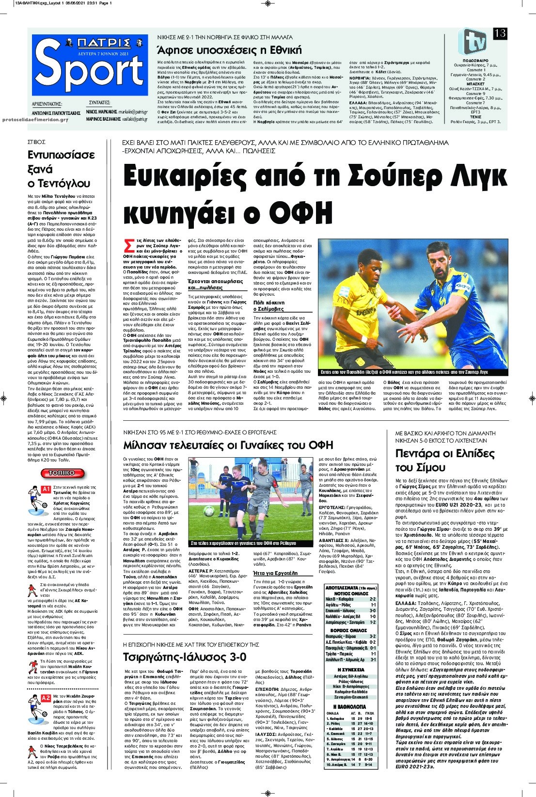 Οι αθλητικές εφημερίδες 7/6/2021 Σήφης Γαρυφαλάκης 06:21, Δευτέρα 07 Ιουνίου 2021 Media Διαβάστε τα πρωτοσέλιδα των αθλητικών εφημερίδων. ΑΘΛΗΤΙΚΕΣ ΕΦΗΜΕΡΙΔΕΣ ΕΦΗΜΕΡΙΔΕΣ ΠΡΩΤΟΣΕΛΙΔΑ ΠΡΩΤΟΣΕΛΙΔΑ ΕΦΗΜΕΡΙΔΩΝ Μοιράσου το: σχολίασε κι εσύ (0 σχόλια) Ακολουθήστε το enikos.gr στο Google News και μάθετε πρώτοι όλες τις ειδήσεις Δείτε όλες τις τελευταίες ειδήσεις από την Ελλάδα και τον Κόσμο στο enikos.gr Ειδήσεις Ροή Ειδήσεων 2 ώρες πριν Μητσοτάκης για αγρότες: Ελπίζω πως θα απομακρυνθούν σύντομα από τα μπλόκα 3 ώρες πριν Έρευνα MRB: Η πρόθεση ψήφου και τα σημαντικότερα προβλήματα – Οι «λέξεις» που εκφράζουν τους πολίτες 13 λεπτά πριν Αμοργός: «Θα προσπαθήσω να το κάνω κάθε μέρα» – Ποιος είναι ο αγρότης που έστησε μόνος του το πρώτο μπλόκο στο νησί 49 λεπτά πριν Μισέλ Ομπάμα: Εμφανώς αδυνατισμένη στην εκπομπή του Τζίμι Κίμελ – Οι φήμες για τη χρήση Ozempic και η «φιλία» της με τον Ρομπ Ράινερ 44 λεπτά πριν Αγρότες: Επ’ αόριστον μπλόκο στον σταθμό στον Προμαχώνα για τα φορτηγά – Κλείνει το ρεύμα εισόδου στα Μάλγαρα 3 ώρες πριν Τα 4 ζώδια που ξαναβρίσκουν τον εαυτό τους – «Μπαίνετε επιτέλους στην ουσία των πραγμάτων» 4 ώρες πριν 20 χρόνια τα Χριστούγεννα ξεκινούν στα Public με μεγάλη ποικιλία σε δώρα! 3 ώρες πριν «Δεν είχα κλάψει από τότε που διαγνώστηκα με καρκίνο, ώσπου ένα τηλεφώνημα με έκανε να λυγίσω» – Η συγκλονιστική εξομολόγηση ενός άνδρα 2 ώρες πριν Τα 7 σπάνια χαρακτηριστικά που κάνουν κάποιους ανθρώπους ακαταμάχητους 16 δευτερόλεπτα πριν Λάκης Γαβαλάς, Σουζάνα Κεγγίτση και Έλενα Γαλύφα μας περιμένουν σήμερα στο πιο stylish Χριστουγεννιάτικο ραντεβού στο Athens Metro Mall – Το Madwalk Gifting Lounge by ΣΚΡΑΤΣ επιστρέφει σήμερα από τις 14:00 έως τις 18:30 6 λεπτά πριν Αγρίνιο: Συνελήφθη μαθητής που απείλησε τον διευθυντή και εκπαιδευτικούς – Χειροπέδες και στη μητέρα του 11 λεπτά πριν Bloomberg: Οι ΗΠΑ ετοιμάζουν νέες κυρώσεις σε βάρος της Ρωσίας εάν ο Πούτιν απορρίψει μια ειρηνευτική συμφωνία 13 λεπτά πριν Αμοργός: «Θα προσπαθήσω να το κάνω κάθε μέρα» – Ποιος είναι ο αγρότης που έστησε μόνος του το πρώτο μπλόκο στο νησί 17 λεπτά πριν Βίντεο: Με γερανό απομακρύνθηκε αυτοκίνητο στο Μαρούσι – Η οδηγός… είχε αργήσει σε ραντεβού ENIKOS NETWORK Ανησυχητική αύξηση της υπέρτασης στα παιδιά – Πώς θα τα προστατέψουμε; Αδενώματα Υπόφυσης: Μια πάθηση καλοήθης, αλλά όχι αθώα Διεθνής Οργανισμός Ενέργειας (ΔΟΕ, IEA): Τι δείχνουν τα νέα στοιχεία για την παγκόσμια κατανάλωση άνθρακα Διευκρινίσεις από το ΥΠΑΑΤ και τον ΟΠΕΚΕΠΕ για την εξόφληση της βασικής ενίσχυσης στους αγρότες Σύγχρονος Νοστράδαμος: Προειδοποιεί για «μεγάλο γεγονός» τους επόμενους μήνες που θα συγκλονίσει τη Βρετανία και τον κόσμο Τεστ παρατηρητικότητας: Μπορείτε να βρείτε τις 3 διαφορές στις εικόνες με έναν πιγκουίνο σε 14 δευτερόλεπτα περισσότερα 12:35 , Τετάρτη 17 Δεκεμβρίου 2025 Μίρκα Παπακωνσταντίνου: «Δεν ήμουν αισιόδοξη για τα νούμερα – Είμαι ρεαλίστρια» Στα γυρίσματα του εορταστικού επεισοδίου της αγαπημένης σειράς “Το Σόι Σου”, βρέθηκε η κάμερα ... 12:12 , Τετάρτη 17 Δεκεμβρίου 2025 Ακούστε την εκπομπή του Νίκου Χατζηνικολάου 17/12/2025 Ακούστε την εκπομπή του Νίκου Χατζηνικολάου στον ραδιοφωνικό σταθμό RealFm 97,8, την Τετάρτη 1... 11:35 , Τετάρτη 17 Δεκεμβρίου 2025 Home Alone: Το σπίτι της ταινίας θα ανακαινιστεί – Επιστροφή στην αισθητική της δεκαετίας του ’90 Οι νέοι ιδιοκτήτες του πραγματικού σπιτιού που παρουσιάζεται στην κλασική ταινία του 1990 «Hom... 11:25 , Τετάρτη 17 Δεκεμβρίο