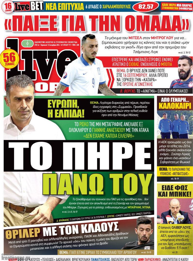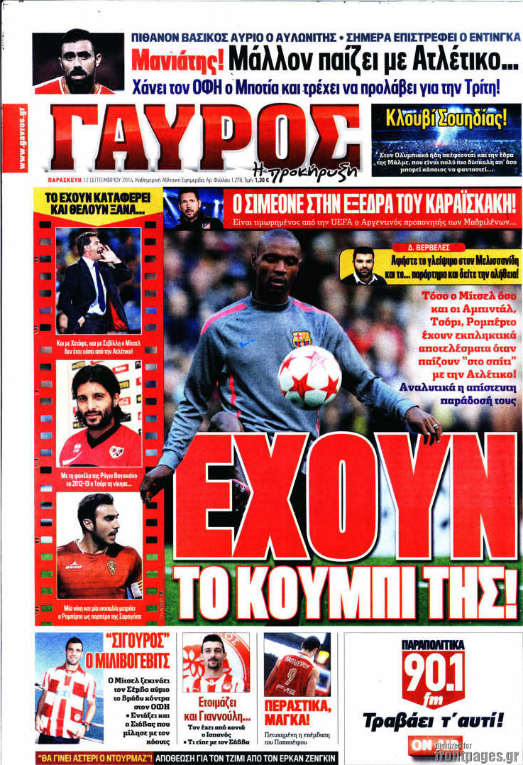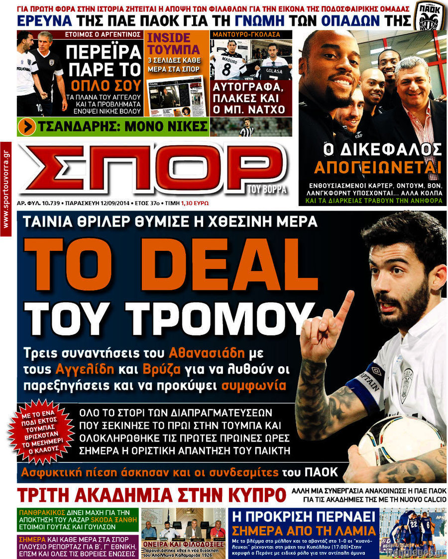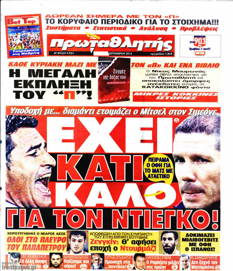 Οι αθλητικές εφημερίδες Enikos Newsroom 08:24, Παρασκευή 12 Σεπτεμβρίου 2014 Media Οι αθλητικές εφημερίδες Διαβάστε τα πρωτοσέλιδα των αθλητικών εφημερίδων: ΑΘΛΗΤΙΚΕΣ ΕΦΗΜΕΡΙΔΕΣ ΕΦΗΜΕΡΙΔΕΣ ΠΡΩΤΟΣΕΛΙΔΑ Μοιράσου το: σχολίασε κι εσύ (0 σχόλια) Ακολουθήστε το enikos.gr στο Google News και μάθετε πρώτοι όλες τις ειδήσεις Δείτε όλες τις τελευταίες ειδήσεις από την Ελλάδα και τον Κόσμο στο enikos.gr Ειδήσεις Ροή Ειδήσεων 1 ώρα πριν Αγρότες: Πολύωροι αποκλεισμοί στα τελωνεία Προμαχώνα, Εξοχής, Ευζώνων και Νίκης – Κλείνουν τον κόμβο Φιλώτα οι παραγωγοί στη Δυτική Μακεδονία 38 λεπτά πριν Νίκος Παππάς: Ζητώ συγγνώμη για αυτό το επεισόδιο – Δεν τον γρονθοκόπησα 3 ώρες πριν Ευρωπαϊκό Συμβούλιο: Όλες οι λεπτομέρειες για το δάνειο των 90 δισ. ευρώ στην Ουκρανία – Τα συμπεράσματα της Συνόδου Κορυφής 2 ώρες πριν Αίγιο: 22χρονη κατήγγειλε ότι έπεσε θύμα βιασμού και ληστείας από συγγενικά της πρόσωπα 2 ώρες πριν Σφοδρές βροχές και καταιγίδες πλήττουν τα Ηνωμένα Αραβικά Εμιράτα: Ακυρώσεις πτήσεων, προβλήματα στην κυκλοφορία 1 ώρα πριν Αλλαγή σελίδας για 3 ζώδια – «Μία δύσκολη περίοδος φτάνει στο τέλος της» 3 ώρες πριν Πώς το αρχαίο DNA του κυνηγού – συλλέκτη ξεκλείδωσε τα μυστικά της μακροζωίας 2 ημέρες πριν 20 χρόνια τα Χριστούγεννα ξεκινούν στα Public με μεγάλη ποικιλία σε δώρα! 2 ώρες πριν Ο σύζυγός της συμπεριφέρεται όπως το παιδί τους – «Χρησιμοποιεί αστείες δικαιολογίες για να μην κάνει δουλειές και να ξοδεύει λεφτά» 5 λεπτά πριν Βλαντίμιρ Πούτιν: LIVE η συνέντευξη Τύπου για τον απολογισμό της χρονιάς 10 λεπτά πριν Αλμπέρτο Εσκενάζυ: Υπό τους ήχους του τραγουδιού «Του Αιγαίου τα μπλουζ» το τελευταίο αντίο στο αποτεφρωτήριο της Ριτσώνας 15 λεπτά πριν TikTok: Ο ιδιοκτήτης του υπέγραψε συμφωνία για να αποφύγει την απαγόρευση στις ΗΠΑ 20 λεπτά πριν Τομ Κρουζ: Χορεύει με ένα φτυάρι στη νέα ταινία του Αλεχάντρο Γκονζάλες Ινιάριτου, «Digger» 25 λεπτά πριν Γεμάτος νεροχύτης; 5 σοβαρές ευθύνες που «φοβίζουν» όσους αφήνουν άπλυτα πιάτα ENIKOS NETWORK Καρκίνος του πνεύμονα: Έως 8.000 ζωές μπορούν να σωθούν με την έγκαιρη διάγνωση Καρδιοπαθείς: Οι νέες συστάσεις για τα εμβόλια που πρέπει να κάνουν τον χειμώνα Απειλή για τον Προϋπολογισμό τα ληξιπρόθεσμα χρέη των ιδιωτών προς την εφορία – Τι δείχνουν τα στοιχεία Συντάξεις: Οι κερδισμένοι και οι χαμένοι από τις αυξήσεις – Αναλυτικός οδηγός Χαρτογραφώντας το «σημείο χωρίς επιστροφή»: Για πρώτη φορά αποκαλύπτεται με λεπτομέρεια το ακανθώδες όριο της ατμόσφαιρας τ... Η Google καταργεί τη λειτουργία «dark web report» – Πώς θα μπορούν οι χρήστες να διαγράφουν τα δεδομένα τους περισσότερα 08:00 , Παρασκευή 19 Δεκεμβρίου 2025 Την Κυριακή με τη Realnews: Δωροεπιταγή 10€ Δωροεπιταγή αξίας 10€ για αγορές άνω των 60€ από τα πολυκαταστήματα FactoryOutlet H προσφορά ι... 05:48 , Παρασκευή 19 Δεκεμβρίου 2025 Οι οικονομικές εφημερίδες 19/12/2025 Διαβάστε τα πρωτοσέλιδα από τις οικονομικές εφημερίδες, σήμερα 19/12/2025. 05:43 , Παρασκευή 19 Δεκεμβρίου 2025 Οι αθλητικές εφημερίδες 19/12/2025 Διαβάστε τα πρωτοσέλιδα από τις αθλητικές εφημερίδες, σήμερα 19/12/2025. 05:38 , Παρασκευή 19 Δεκεμβρίου 2025 Οι πολιτικές εφημερίδες 19/12/2025 Διαβάστε τα πρωτοσέλιδα από τις πολιτικές εφημερίδες, σήμερα 19/12/2025. ΤΕΛΕΥΤΑΙΕΣ ΕΙΔΗΣΕΙΣ 5 λεπτά πριν Βλαντίμιρ Πούτιν: LIVE η συνέντευξη Τύπου για τον... 10 λεπτά πριν Αλμπέρτο Εσκενάζυ: Υπό τους ήχους του τραγουδιού «Του... 15 λεπτά πριν TikTok: Ο ιδιοκτήτης του υπέγραψε συμφωνία για να... 20 λεπτά πριν Τομ Κρουζ: Χορεύει με ένα φ