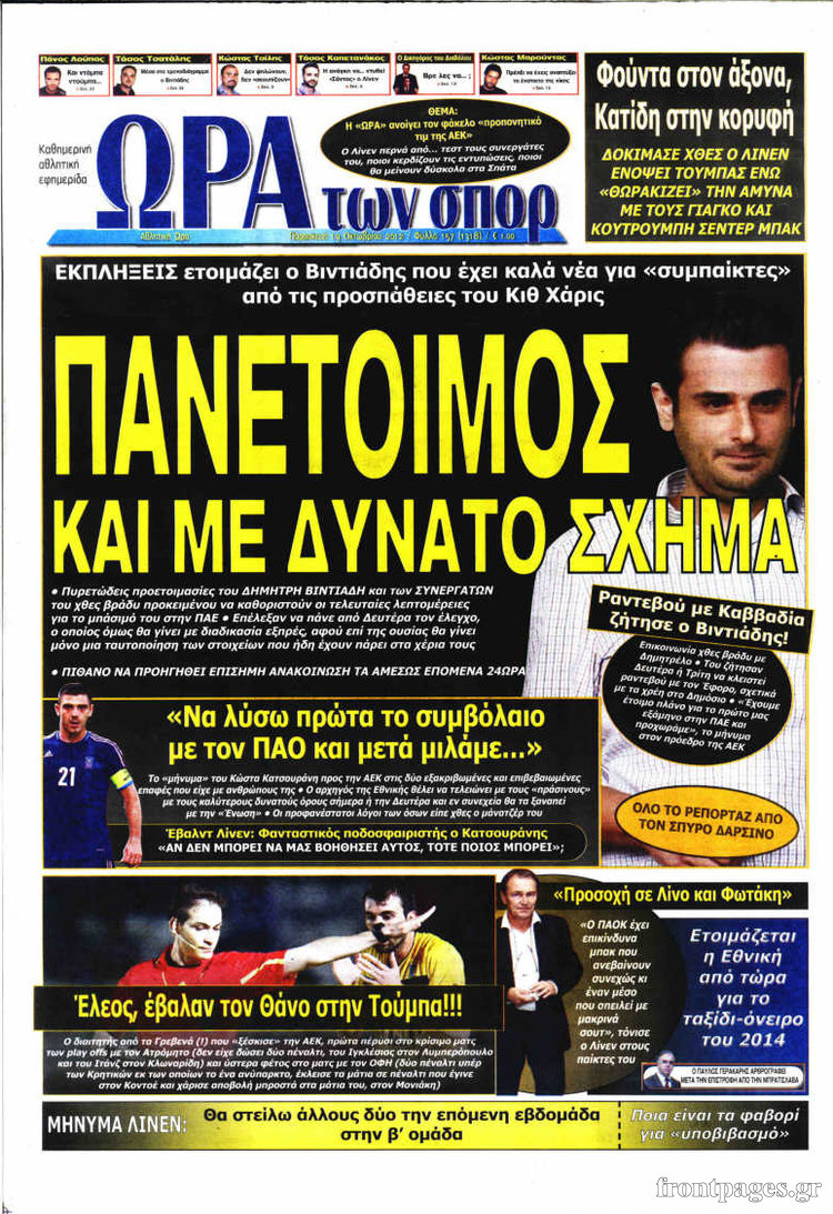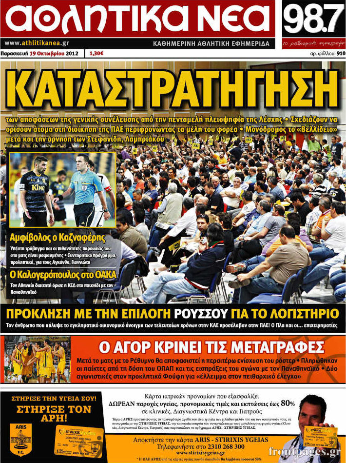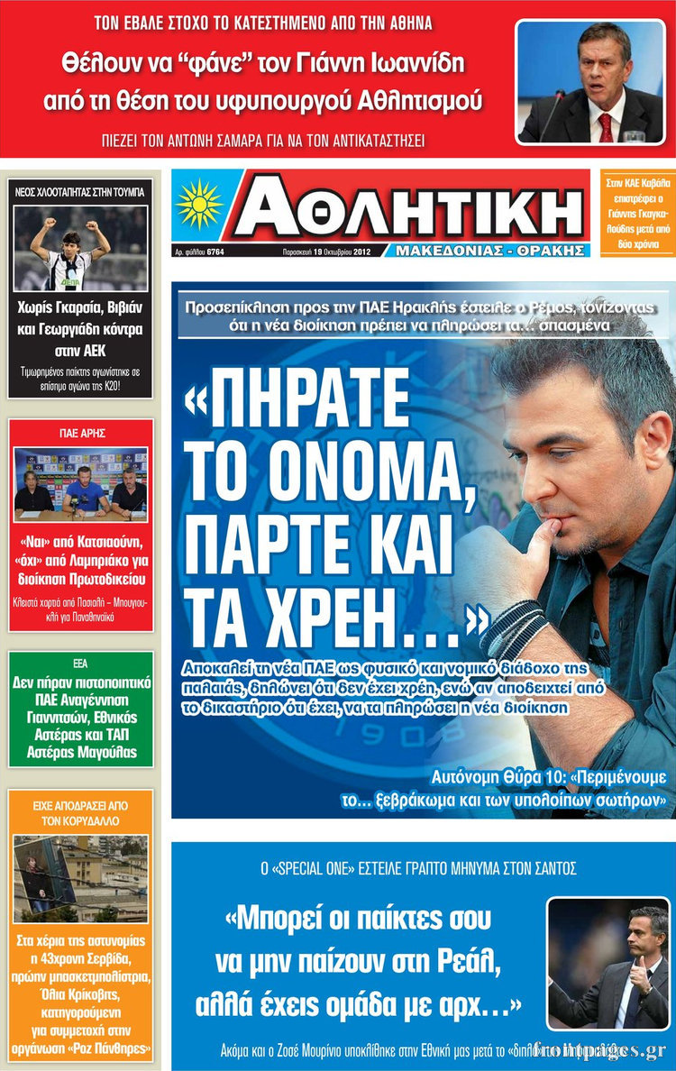 Οι αθλητικές εφημερίδες Enikos Newsroom 08:53, Παρασκευή 19 Οκτωβρίου 2012 Media Οι αθλητικές εφημερίδες Δείτε τα πρωτοσέλιδα των αθλητικών εφημερίδων. ΑΘΛΗΤΙΚΑ ΑΘΛΗΤΙΚΕΣ ΕΦΗΜΕΡΙΔΕΣ ΕΦΗΜΕΡΙΔΕΣ ΠΡΩΤΟΣΕΛΙΔΑ Μοιράσου το: σχολίασε κι εσύ (0 σχόλια) Ακολουθήστε το enikos.gr στο Google News και μάθετε πρώτοι όλες τις ειδήσεις Δείτε όλες τις τελευταίες ειδήσεις από την Ελλάδα και τον Κόσμο στο enikos.gr Ειδήσεις Ροή Ειδήσεων 1 ώρα πριν Ευρωπαϊκή Ένωση: Συμφωνία για δάνειο 90 δισ. ευρώ στην Ουκρανία τη διετία 2026-2027 6 ώρες πριν ΟΠΕΚΕΠΕ: Προφυλακιστέος ο φερόμενος αρχηγός και ο λογιστής της εγκληματικής οργάνωσης 7 ώρες πριν Αυξάνουν την πίεση προς την κυβέρνηση οι αγρότες: Κλείνουν παρακαμπτήριους και ανοίγουν διόδια – Τι θα γίνει τις γιορτές 7 ώρες πριν Φοινικούντα: Το Σάββατο απολογείται ο 30χρονος γιος γνωστού επιχειρηματία της Πλάκας που παραδόθηκε – Όσα είπε στους αστυνομικούς και ο ρόλος του στο έγκλημα 5 ώρες πριν ΑΕΚ – Κραϊόβα 3-2: Επική ανατροπή και πρόκριση στους «16» του Conference League η Ένωση 7 ώρες πριν Αρχαιολόγοι ανακάλυψαν ρωμαϊκά τεχνουργήματα από μια πόλη που δεν υπήρξε ποτέ – Τα τρία εντυπωσιακά κτίρια και ο αμφορέας με τις… σαρδέλες 8 ώρες πριν Ύπνος: Η απλή βραδινή ρουτίνα για να προστατεύσετε τα μαλλιά σας από το κρύο κατά τη διάρκεια του χειμώνα 9 ώρες πριν Manifesting: Πώς να συναντήσετε τον σύντροφο της ζωής σας, ανάλογα με τον μήνα γέννησής σας 2 ημέρες πριν 20 χρόνια τα Χριστούγεννα ξεκινούν στα Public με μεγάλη ποικιλία σε δώρα! 2 λεπτά πριν Τα ζώδια σήμερα, Παρασκευή 19 Δεκεμβρίου: Τοξότες, με τη Νέα Σελήνη έρχεται η προσωπική ανανέωσή σας 10 λεπτά πριν Εφημερεύοντα φαρμακεία σε Αθήνα και Θεσσαλονίκη (19/12) 17 λεπτά πριν Η TikTok στις ΗΠΑ πωλείται σε Oracle, Silver Lake και MGX – Οι λεπτομέρειες του «deal» 25 λεπτά πριν Αλεξάντερ Λουκασένκο: Η Λευκορωσία βρίσκεται κοντά στην αποκατάσταση των σχέσεών της με τις ΗΠΑ 40 λεπτά πριν Αυστραλία: Κήρυξε την Κυριακή (21/12) ημέρα εθνικού πένθους για τη φονική επίθεση στην παραλία Μπόνταϊ ENIKOS NETWORK Σε περίοδο αυξημένης δραστηριότητας η γρίπη στην Ελλάδα-Μέτρα προστασίας από τον ΕΟΔΥ Σκέφτεστε συνέχεια συζητήσεις που έχετε κάνει; Τι σημαίνει αυτό, σύμφωνα με ειδικό Στεγαστικό: Τι λέει η ΠΟΜΙΔΑ για τα νέα μέτρα που ανακοίνωσε ο Κυριάκος Μητσοτάκης Λαγκάρντ: Αισιόδοξη για την ανάπτυξη της Ευρωζώνης, αβέβαιη για τον πληθωρισμό Χαρτογραφώντας το «σημείο χωρίς επιστροφή»: Για πρώτη φορά αποκαλύπτεται με λεπτομέρεια το ακανθώδες όριο της ατμόσφαιρας τ... Η Google καταργεί τη λειτουργία «dark web report» – Πώς θα μπορούν οι χρήστες να διαγράφουν τα δεδομένα τους περισσότερα 02:50 , Παρασκευή 19 Δεκεμβρίου 2025 GNTM: «Κλείδωσαν» οι τέσσερις φιναλίστ – Μεγάλη ανατροπή στις τελευταίες αποχωρήσεις Για προτελευταία φορά εμφανίστηκαν στο πλατό του GNTM οι φιναλίστ του φετινού κύκλου, το βράδυ... 17:45 , Πέμπτη 18 Δεκεμβρίου 2025 ROUK ZOUK: Εορταστικό επεισόδιο με καλεσμένους τους πρωταγωνιστές του «Γιατί ρε πατέρα» Το Σάββατο 20 Δεκεμβρίου στις 21:00, η Ζέτα Μακρυπούλια υποδέχεται εκλεκτούς ηθοποιούς που όλο... 17:20 , Πέμπτη 18 Δεκεμβρίου 2025 Άγιος έρωτας: Η Χριστίνα εξομολογείται στον πατέρα Νικόλαο, απόψε στις 21:00 στον Alpha Η Νότα αποφασίζει να εκδικηθεί τον Πέτρο και τον Στέφανο, για χάρη του Λούη, όμως τα πράγματα ... 16:50 , Πέμπτη 18 Δεκεμβρίου 2025 Να μ’ αγαπάς: Ζωή και Φωτεινή συμφιλιώνονται ως μάνα με κόρη, απόψε στις 20:00 Η ταυτότητα του Άγγελου αποκαλύπτεται στο νέο επεισόδιο της σειράς “Να μ’ αγαπ