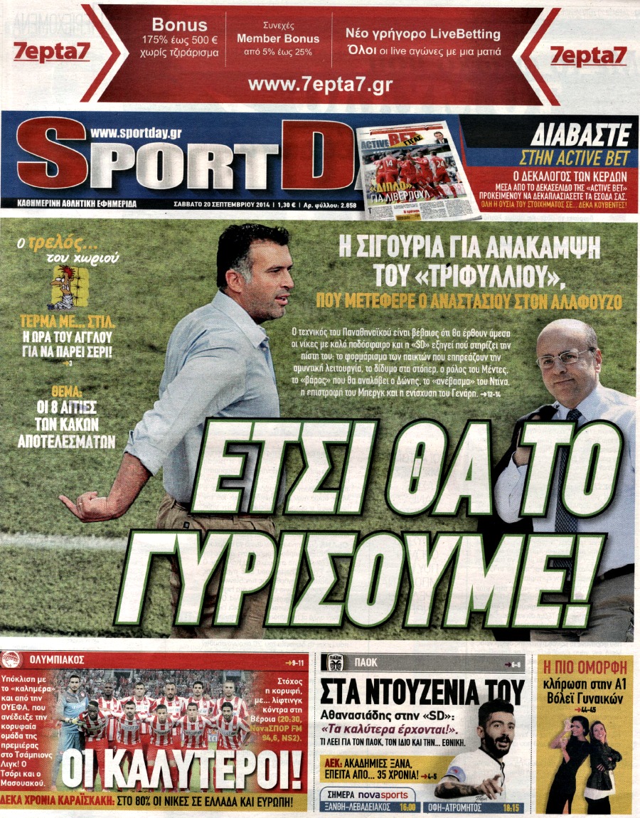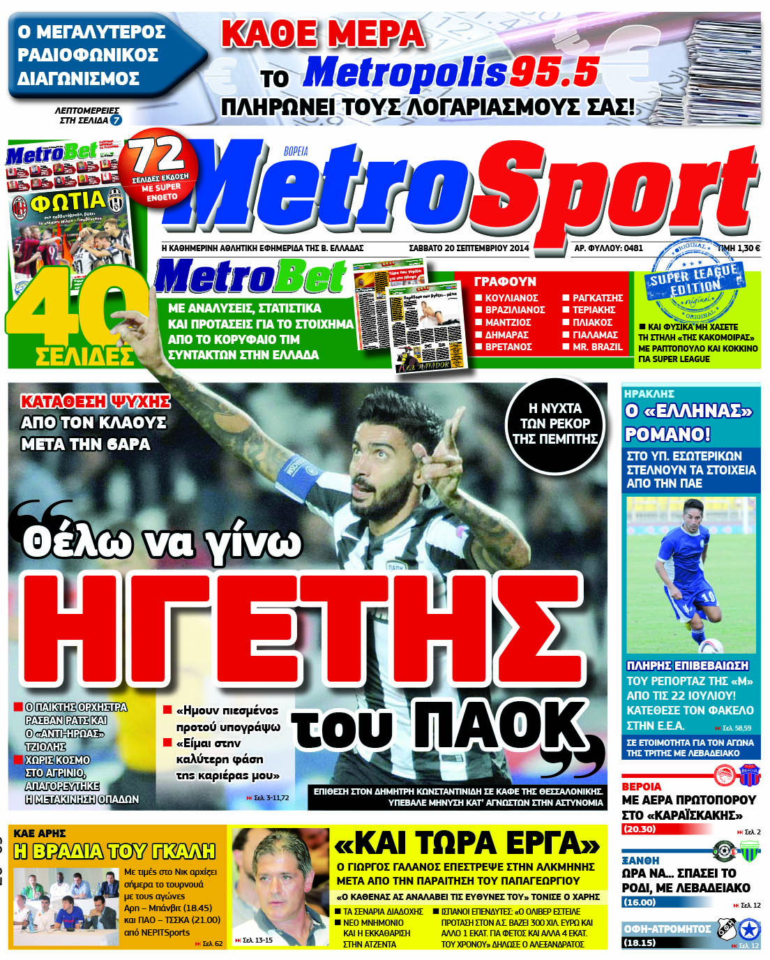 Οι αθλητικές εφημερίδες Enikos Newsroom 07:52, Σάββατο 20 Σεπτεμβρίου 2014 Media Οι αθλητικές εφημερίδες Διαβάστε τα πρωτοσέλιδα των αθλητικών εφημερίδων: ΑΘΛΗΤΙΚΕΣ ΕΦΗΜΕΡΙΔΕΣ ΕΦΗΜΕΡΙΔΕΣ ΠΡΩΤΟΣΕΛΙΔΑ Μοιράσου το: σχολίασε κι εσύ (0 σχόλια) Ακολουθήστε το enikos.gr στο Google News και μάθετε πρώτοι όλες τις ειδήσεις Δείτε όλες τις τελευταίες ειδήσεις από την Ελλάδα και τον Κόσμο στο enikos.gr Ειδήσεις Ροή Ειδήσεων 58 λεπτά πριν Ευρωπαϊκή Ένωση: Χωρίς συμφωνία, για την μακροπρόθεσμη χρηματοδότηση της Ουκρανίας, ολοκληρώθηκε η Σύνοδος Κορυφής στις Βρυξέλλες 4 ώρες πριν ΟΠΕΚΕΠΕ: Προφυλακιστέος ο φερόμενος αρχηγός και ο λογιστής της εγκληματικής οργάνωσης 5 ώρες πριν Αυξάνουν την πίεση προς την κυβέρνηση οι αγρότες: Κλείνουν παρακαμπτήριους και ανοίγουν διόδια – Τι θα γίνει τις γιορτές 5 ώρες πριν Φοινικούντα: Το Σάββατο απολογείται ο 30χρονος γιος γνωστού επιχειρηματία της Πλάκας που παραδόθηκε – Όσα είπε στους αστυνομικούς και ο ρόλος του στο έγκλημα 4 ώρες πριν ΑΕΚ – Κραϊόβα 3-2: Επική ανατροπή και πρόκριση στους «16» του Conference League η Ένωση 5 ώρες πριν Αρχαιολόγοι ανακάλυψαν ρωμαϊκά τεχνουργήματα από μια πόλη που δεν υπήρξε ποτέ – Τα τρία εντυπωσιακά κτίρια και ο αμφορέας με τις… σαρδέλες 6 ώρες πριν Ύπνος: Η απλή βραδινή ρουτίνα για να προστατεύσετε τα μαλλιά σας από το κρύο κατά τη διάρκεια του χειμώνα 7 ώρες πριν Manifesting: Πώς να συναντήσετε τον σύντροφο της ζωής σας, ανάλογα με τον μήνα γέννησής σας 2 ημέρες πριν 20 χρόνια τα Χριστούγεννα ξεκινούν στα Public με μεγάλη ποικιλία σε δώρα! 10 λεπτά πριν Αιματηρή βομβιστική επίθεση στην Υεμένη: Τουλάχιστον τρεις νεκροί και 13 τραυματίες 14 λεπτά πριν Στη Φλόριντα σήμερα οι διαβουλεύσεις σχετικά με τα επόμενα στάδια για τη Λωρίδα της Γάζας 18 λεπτά πριν Σίσσυ Τουμάση: «Είμαι ασθενοφοβική πάρα πολύ και με πιάνει μια παράνοια μ’ αυτό» 42 λεπτά πριν Ντόναλντ Τραμπ: Δεν χρειάζομαι την έγκριση του Κογκρέσου για να διατάξω στρατιωτικά πλήγματα στη Βενεζουέλα 58 λεπτά πριν Ευρωπαϊκή Ένωση: Χωρίς συμφωνία, για την μακροπρόθεσμη χρηματοδότηση της Ουκρανίας, ολοκληρώθηκε η Σύνοδος Κορυφής στις Βρυξέλλες ENIKOS NETWORK Σε περίοδο αυξημένης δραστηριότητας η γρίπη στην Ελλάδα-Μέτρα προστασίας από τον ΕΟΔΥ Σκέφτεστε συνέχεια συζητήσεις που έχετε κάνει; Τι σημαίνει αυτό, σύμφωνα με ειδικό Στεγαστικό: Τι λέει η ΠΟΜΙΔΑ για τα νέα μέτρα που ανακοίνωσε ο Κυριάκος Μητσοτάκης Λαγκάρντ: Αισιόδοξη για την ανάπτυξη της Ευρωζώνης, αβέβαιη για τον πληθωρισμό Χαρτογραφώντας το «σημείο χωρίς επιστροφή»: Για πρώτη φορά αποκαλύπτεται με λεπτομέρεια το ακανθώδες όριο της ατμόσφαιρας τ... Η Google καταργεί τη λειτουργία «dark web report» – Πώς θα μπορούν οι χρήστες να διαγράφουν τα δεδομένα τους περισσότερα 02:50 , Παρασκευή 19 Δεκεμβρίου 2025 GNTM: «Κλείδωσαν» οι τέσσερις φιναλίστ – Μεγάλη ανατροπή στις τελευταίες αποχωρήσεις Για προτελευταία φορά εμφανίστηκαν στο πλατό του GNTM οι φιναλίστ του φετινού κύκλου, το βράδυ... 17:45 , Πέμπτη 18 Δεκεμβρίου 2025 ROUK ZOUK: Εορταστικό επεισόδιο με καλεσμένους τους πρωταγωνιστές του «Γιατί ρε πατέρα» Το Σάββατο 20 Δεκεμβρίου στις 21:00, η Ζέτα Μακρυπούλια υποδέχεται εκλεκτούς ηθοποιούς που όλο... 17:20 , Πέμπτη 18 Δεκεμβρίου 2025 Άγιος έρωτας: Η Χριστίνα εξομολογείται στον πατέρα Νικόλαο, απόψε στις 21:00 στον Alpha Η Νότα αποφασίζει να εκδικηθεί τον Πέτρο και τον Στέφανο, για χάρη του Λούη, όμως τα πράγματα ... 16:50 , Πέμπτη 18 Δεκεμβρίου 2025 Να μ’ αγαπάς: Ζωή και Φωτει