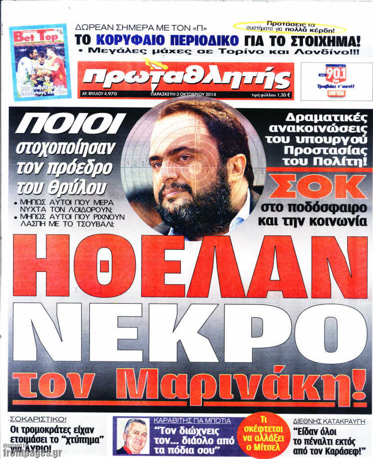 Οι αθλητικές εφημερίδες Enikos Newsroom 08:16, Παρασκευή 03 Οκτωβρίου 2014 Media Οι αθλητικές εφημερίδες Διαβάστε τα πρωτοσέλιδα των αθλητικών εφημερίδων: ΑΘΛΗΤΙΚΕΣ ΕΦΗΜΕΡΙΔΕΣ ΕΦΗΜΕΡΙΔΕΣ ΠΡΩΤΟΣΕΛΙΔΑ Μοιράσου το: σχολίασε κι εσύ (0 σχόλια) Ακολουθήστε το enikos.gr στο Google News και μάθετε πρώτοι όλες τις ειδήσεις Δείτε όλες τις τελευταίες ειδήσεις από την Ελλάδα και τον Κόσμο στο enikos.gr Ειδήσεις Ροή Ειδήσεων 2 ώρες πριν Αναθεώρηση του Συντάγματος: Οι 8 μεταρρυθμίσεις για την Ελλάδα του 2030 – Ο οδικός άξονας και το μήνυμα Μητσοτάκη 1 ώρα πριν Δολοφονία στη Νέα Πέραμο: Η διαδρομή που φέρεται να ακολούθησαν οι δράστες-απαγωγείς – «Θέλω να τους βρουν και να μου πουν γιατί τον σκότωσαν» 4 ώρες πριν Γροιλανδία: Το γεωπολιτικό «φιλέτο» που προκαλεί τριγμούς στο ΝΑΤΟ και στις σχέσεις ΗΠΑ – ΕΕ 23 λεπτά πριν Κεκλεισμένων των θυρών η δίκη του πρώην αστυνομικού της Βουλής και της εν διαστάσει συζύγου του – Αρνείται τις κατηγορίες ο 46χρονος 2 ώρες πριν Ιαπωνία: Ακραίο κύμα ψύχους με 30 νεκρούς και τείχη χιονιού μέτρων – Δείτε βίντεο 5 ώρες πριν Οπτική ψευδαίσθηση: Μόνο όσοι έχουν τέλεια όραση μπορούν να εντοπίσουν την τίγρη μέσα σε 14 δευτερόλεπτα 3 ώρες πριν Λατινικές χύτρες και ελληνικές κατσαρόλες: Τα κεραμικά αποκαλύπτουν τη συνύπαρξη της ρωμαϊκής και ελληνικής μαγειρικής σε ιταλική αποικία 2 ώρες πριν Ο πατέρας του ανακάλυψε πως δεν είναι το βιολογικό του παιδί – «Ελπίζαμε να ήταν ψέμα» 33 λεπτά πριν Τα 3 ζώδια που ευνοούνται στα ερωτικά τους – «Ανοίγει η πόρτα για μία ουσιαστική αγάπη και είστε έτοιμοι να ανταποκριθείτε σε αυτή την πρόκληση» 39 δευτερόλεπτα πριν Προσαγωγή μέλους του Ρουβίκωνα για την επίθεση σε επιχείρηση στις Αχαρνές – Τι είπε ο ιδιοκτήτης 6 λεπτά πριν Τηλεθέαση (2/2): Ανατροπή στους πίνακες για την πρωινή ψυχαγωγική ζώνη 10 λεπτά πριν Ένωση Δικαστών και Εισαγγελέων: Ώριμες οι συνθήκες για τη Συνταγματική Αναθεώρηση του άρθρου για τον τρόπο επιλογής της ηγεσίας της Δικαιοσύνης 15 λεπτά πριν Euroleague: Την 6η σερί νίκη θέλει στο Ντουμπάι ο Ολυμπιακός 21 λεπτά πριν Θεσσαλονίκη: 54χρονη περιέλουσε αυτοκίνητο με οινόπνευμα και επιχείρησε να βάλει φωτιά – Την έπιασε στα πράσα ο ιδιοκτήτης ENIKOS NETWORK ΕΙΝΑΠ: Καταγγελίες για απαράδεκτες συνθήκες νοσηλείας στο Ιπποκράτειο νοσοκομείο Ξεκινά την επόμενη εβδομάδα η διάθεση Φαρμάκων Υψηλού Κόστους από τα ιδιωτικά φαρμακεία Τι αλλάζει το 2026 για τις επιχειρήσεις – Οι 6 προκλήσεις Ελαιόλαδο: Πότε αναμένεται να αλλάξει η τιμή του- Πόσο πωλείται σήμερα ο «ελληνικός χρυσός» Ευπάθεια στο moltbook ai αποκαλύπτει email, tokens σύνδεσης και api keys Αυτός είναι ο ρόλος της μικρής τρύπας στους νυχοκόπτες – «Είμαι ο μόνος που δεν το ήξερε;»» περισσότερα 10:42 , Τρίτη 03 Φεβρουαρίου 2026 Τηλεθέαση (2/2): Ανατροπή στους πίνακες για την πρωινή ψυχαγωγική ζώνη Στις πρωινές εκπομπές, οι «Αταίριαστοι» του ΣΚΑΪ βρέθηκαν στην κορυφή της τηλεθέασης τόσο στο ... 05:48 , Τρίτη 03 Φεβρουαρίου 2026 Οι οικονομικές εφημερίδες 3/2/2026 Διαβάστε τα πρωτοσέλιδα από τις οικονομικές εφημερίδες, σήμερα 3/2/2026. 05:38 , Τρίτη 03 Φεβρουαρίου 2026 Οι πολιτικές εφημερίδες 3/2/2026 Διαβάστε τα πρωτοσέλιδα από τις πολιτικές εφημερίδες, σήμερα 3/2/2026. 18:18 , Δευτέρα 02 Φεβρουαρίου 2026 Άγιος Έρωτας: Η μικρή Ελευθερία δεν θέλει τους νέους της γονείς και η Χλόη καταφεύγει στον πατέρα Νικόλαο Όσα θα δούμε απόψε στο νέο επεισόδιο της σειράς “Άγιος Έρωτας” στις 22:00 στον Alp... ΤΕΛΕΥΤΑΙΕΣ ΕΙΔΗΣΕΙΣ 6 λεπτά πριν Τηλεθέαση