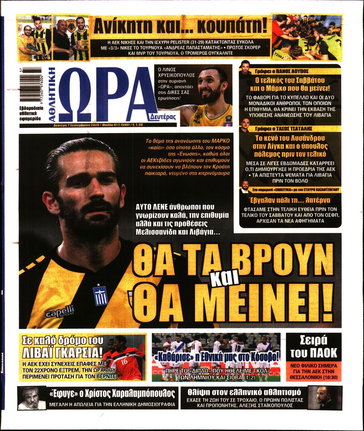 Οι αθλητικές εφημερίδες 7/9/2020 Διονύσης Νίκκας 06:52, Δευτέρα 07 Σεπτεμβρίου 2020 Media Διαβάστε τα πρωτοσέλιδα των αθλητικών εφημερίδων… ΑΘΛΗΤΙΚΕΣ ΕΦΗΜΕΡΙΔΕΣ Μοιράσου το: σχολίασε κι εσύ (0 σχόλια) Ακολουθήστε το enikos.gr στο Google News και μάθετε πρώτοι όλες τις ειδήσεις Δείτε όλες τις τελευταίες ειδήσεις από την Ελλάδα και τον Κόσμο στο enikos.gr Ειδήσεις Ροή Ειδήσεων 4 ώρες πριν Μεσόγειος: Η διαδρομή του ρωσικού τάνκερ «Qendil» και η στοχευμένη επίθεση της Ουκρανίας με drone – Ο Πούτιν προειδοποίησε για αντίποινα 43 λεπτά πριν Αγρότες: Έκλεισαν για μία ώρα την παρακαμπτήρια της Ιόνιας Οδού στη θέση Χαλίκι 2 ώρες πριν Εμπλοκή και αερομαχίες με οπλισμένα τουρκικά F-16 στο Αιγαίο 2 ώρες πριν Πούτιν: «Ναι, είμαι ερωτευμένος» – Βίντεο από τη σπάνια προσωπική παραδοχή του 46 λεπτά πριν Ανδρέας Λυκουρέντζος: Υπέβαλε την παραίτησή του ο πρόεδρος του ΕΛΓΑ, αλλά δεν έγινε δεκτή – Όλο το παρασκήνιο 56 λεπτά πριν Αριθμολογία: Οι άνθρωποι που έχουν γεννηθεί αυτές τις 4 ημερομηνίες, συχνά παρεξηγούνται – «Η καλοσύνη τους κρύβει τεράστια δύναμη» 3 ώρες πριν Μήπως έχετε χάσει τον εαυτό σας στη σχέση σας; 7 «αθόρυβες» υποχωρήσεις που μάλλον κάνατε, χωρίς να το συνειδητοποιήσετε 2 ώρες πριν Ξεχάστε το καθάρισμα το Σαββατοκύριακο: Ο «κανόνας των 20 λεπτών» που θα σας λύσει τα χέρια 5 ώρες πριν Κουίζ για την παλιά Αθήνα: Αναγνωρίζετε την περιοχή; Έχετε περάσει 100% από εκεί 2 λεπτά πριν ΕΕ: «Κάποια στιγμή θα χρησιμοποιήσουμε τα ρωσικά περιουσιακά στοιχεία» δήλωσε ο πρόεδρος του ΕΛΚ 6 λεπτά πριν Conference League: Καλύτερη επίθεση η ΑΕΚ στη διοργάνωση και 2η σε προσπάθειες στην εστία – Ξεχωρίζουν Πινέδα, Ελίασον και Ρότα 8 λεπτά πριν Έγκυος η Άννα Κορακάκη: «Η οικογένειά μας μεγαλώνει…» – Η αποκάλυψη για το φύλο του μωρού 15 λεπτά πριν Τραγωδία στο Βελεστίνο: Πέθανε ο αντιδήμαρχος Γιάννης Παπαϊωάννου 19 λεπτά πριν Ολυμπιακός – Βιλερμπάν: Μάτωσε στο πρόσωπο ο Παπανικολάου έπειτα από αγκωνιά του Βοτιέ – ΦΩΤΟ ENIKOS NETWORK Το ΕΚΑΒ τιμήθηκε από την Ακαδημία Αθηνών για τα 40 χρόνια προσφοράς του Έχετε πραγματικά μεγάλη καρδιά; 10 χαρακτηριστικά όσων έχουν καλοσύνη Έρχονται νέες προσλήψεις σε Δήμο – Όλες οι λεπτομέρειες Επίδομα παιδιού: Πότε ανοίγει ξανά η πλατφόρμα για τις αιτήσεις Χαρτογραφώντας το «σημείο χωρίς επιστροφή»: Για πρώτη φορά αποκαλύπτεται με λεπτομέρεια το ακανθώδες όριο της ατμόσφαιρας τ... Η Google καταργεί τη λειτουργία «dark web report» – Πώς θα μπορούν οι χρήστες να διαγράφουν τα δεδομένα τους περισσότερα 20:37 , Παρασκευή 19 Δεκεμβρίου 2025 Don’t Forget The Lyrics: Η Έλλη Κοκκίνου υποδέχεται 4 παίκτες που θα κάνουν τα πάντα για να μη χάσουν ούτε… μισή λέξη από τους στίχους Το «Don’t Forget The Lyrics» επιστρέφει απόψε, Παρασκευή 19 Δεκεμβρίου, στις 21:00 με νέο επει... 19:31 , Παρασκευή 19 Δεκεμβρίου 2025 GNTM: Απόψε ο μεγάλος τελικός για τους 4 φιναλίστ Έπειτα από μήνες γεμάτους μόδα, δημιουργία και έντονες αναμετρήσεις, το GNTM 2025 κορυφώνεται,... 18:11 , Παρασκευή 19 Δεκεμβρίου 2025 Το σόι σου: Ο Άρης έρχεται στην Ελλάδα για τις γιορτές των Χριστουγέννων – Τι θα δούμε στο αποψινό εορταστικό επεισόδιο Ένα απολαυστικό, εορταστικό επεισόδιο της σειράς “Το σόι σου”, γεμάτο ευτράπελα αλ... 15:15 , Παρασκευή 19 Δεκεμβρίου 2025 Την Κυριακή με τη Realnews: Ό,τι και αν αγοράσεις, σκανάρεις και κερδίζεις! Την Κυριακή με τη Realnews: Ό,τι και αν αγοράσεις, σκανάρεις και κερδίζεις! Με το PADU app, το... ΤΕΛΕΥΤΑΙΕΣ ΕΙΔΗΣΕΙΣ 2 λεπτά πριν ΕΕ: «Κάποια στιγμή θα χρησιμοποιήσουμε τα
