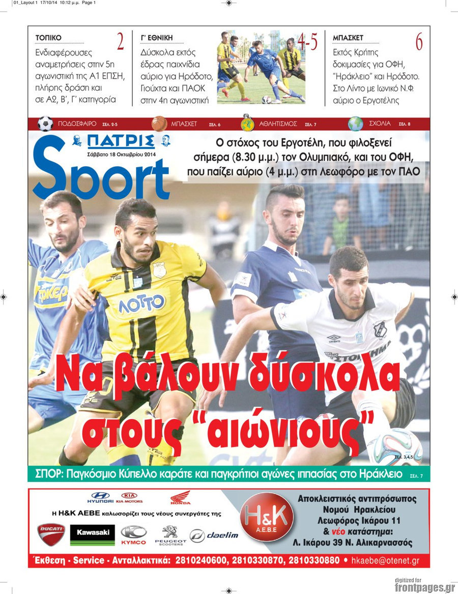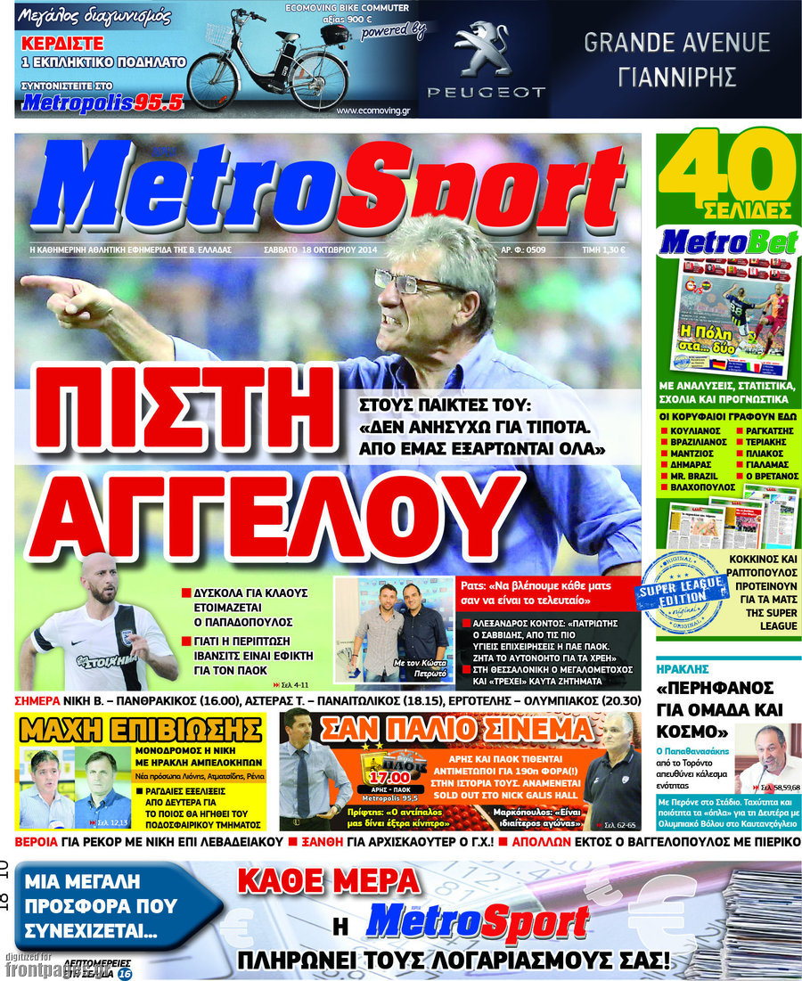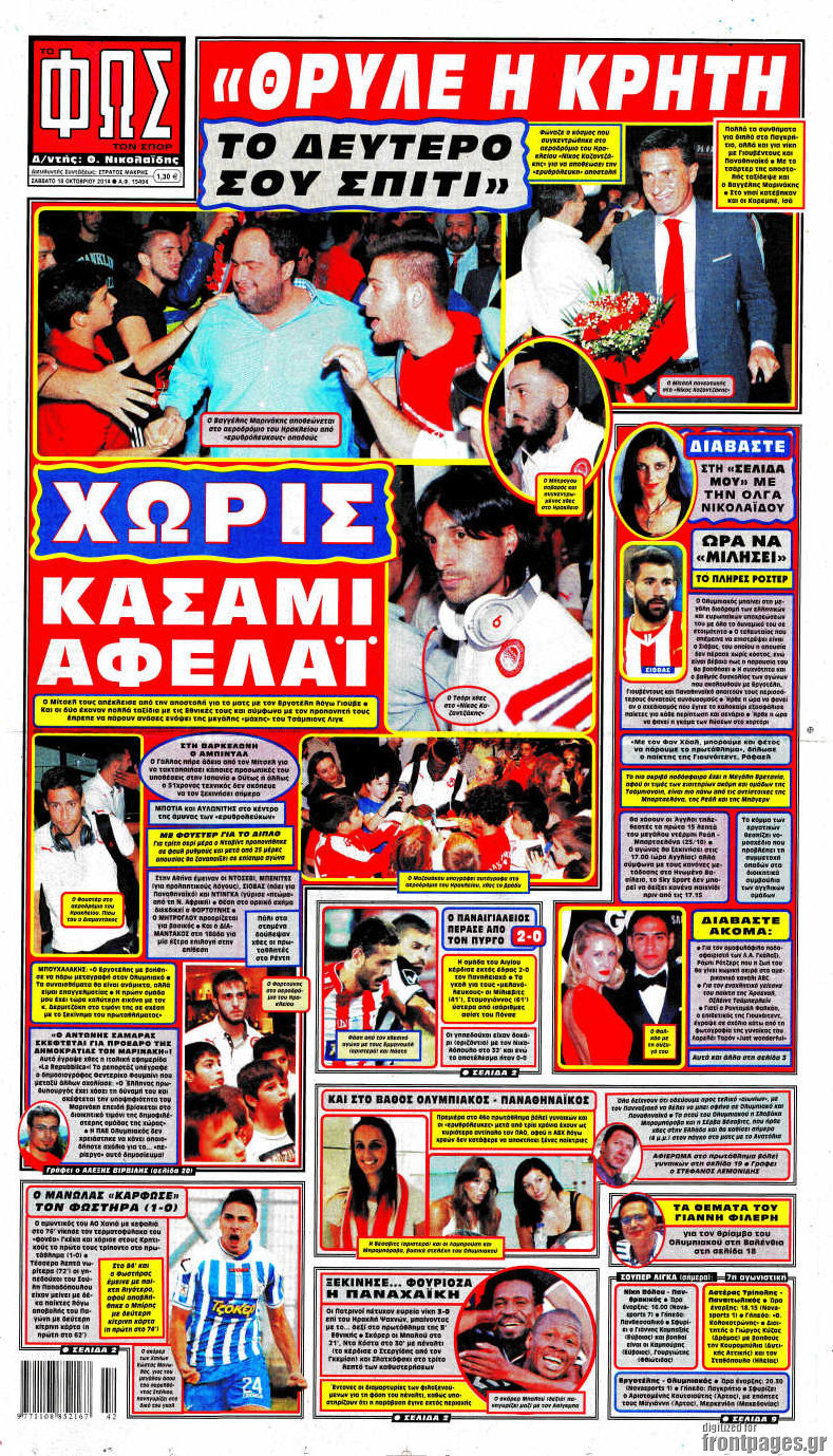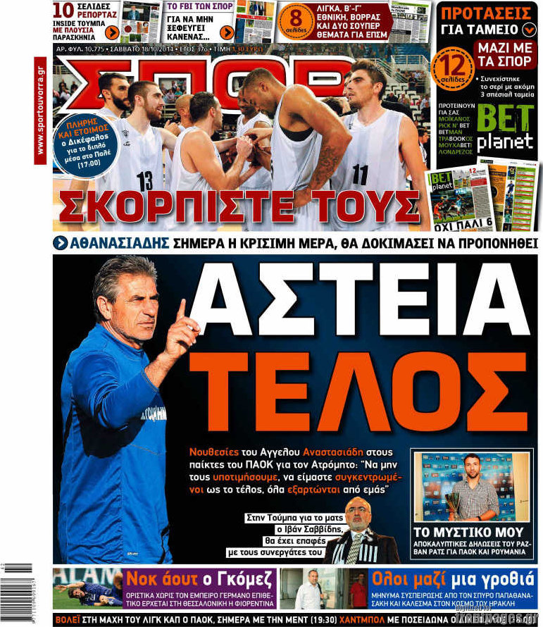 Οι αθλητικές εφημερίδες Enikos Newsroom 07:57, Σάββατο 18 Οκτωβρίου 2014 Media Οι αθλητικές εφημερίδες Διαβάστε τα πρωτοσέλιδα των αθλητικών εφημερίδων. ΑΘΛΗΤΙΚΕΣ ΕΦΗΜΕΡΙΔΕΣ ΠΡΩΤΟΣΕΛΙΔΑ Μοιράσου το: σχολίασε κι εσύ (0 σχόλια) Ακολουθήστε το enikos.gr στο Google News και μάθετε πρώτοι όλες τις ειδήσεις Δείτε όλες τις τελευταίες ειδήσεις από την Ελλάδα και τον Κόσμο στο enikos.gr Ειδήσεις Ροή Ειδήσεων 5 ώρες πριν Νέα Πέραμος: Πού στρέφονται οι έρευνες των αρχών για το άγριο έγκλημα με θύμα τον 27χρονο επιχειρηματία – «Δεν είχε πειράξει κανέναν» λένε οι γονείς του 5 ώρες πριν Μητσοτάκης για τη συνταγματική αναθεώρηση: «Φιλοδοξία μου είναι το 2030 να έχουμε κλείσει όλες τις εκκρεμότητες με το πελατειακό κράτος» 5 ώρες πριν Εξαφάνιση Λόρας: Ο πατέρας της ήταν αυτός που αποκάλυψε ότι ταξίδεψε στη Γερμανία – Το πρόσωπο-«κλειδί», η νέα μαρτυρία και οι «στοχευμένες» κινήσεις της ανήλικης 8 ώρες πριν Δημοσκόπηση Alco: Στις 13 μονάδες η διαφορά ΝΔ-ΠΑΣΟΚ – Πώς αξιολογούν οι πολίτες τις νέες πολιτικές κινήσεις; 4 ώρες πριν The Washington Post: Τι έχουμε μάθει ως τώρα από τα νέα στοιχεία στην υπόθεση Επστάιν – «Η αλήθεια να φτάσει στο κόκκαλο» 36 λεπτά πριν Τα ζώδια σήμερα, Τρίτη 3 Φεβρουαρίου 2026: Τοξότες, σας εξαντλεί να είστε συνεχώς «στην τσίτα» και ψάχνετε κάτι διαφορετικό 7 ώρες πριν Ποιος είναι ο έρωτας της ζωή σας; Ανακαλύψτε την αδελφή-ψυχή σας με βάση τον μήνα γέννησή σας 9 ώρες πριν Λευκές περσίδες ξανά: Η απλή μέθοδος για να εξαφανίσετε την κιτρινίλα χωρίς τρίψιμο 6 ώρες πριν Ύπνος: Η βραδινή ρουτίνα που εγγυάται 8 ώρες ξεκούρασης, σύμφωνα με ειδικό 17 λεπτά πριν Η Κούβα «αδειάζει» τον Τραμπ: Δεν υπάρχει επίσημος διάλογος με τις ΗΠΑ, μόνο διπλωματικές «ανταλλαγές» 36 λεπτά πριν Τα ζώδια σήμερα, Τρίτη 3 Φεβρουαρίου 2026: Τοξότες, σας εξαντλεί να είστε συνεχώς «στην τσίτα» και ψάχνετε κάτι διαφορετικό 41 λεπτά πριν Λαβρόφ: Θεμιτοί στόχοι οι ξένες στρατιωτικές δυνάμεις στην Ουκρανία 58 λεπτά πριν Δημήτρης Νατσιός: Η μονιμότητα των δημοσίων αποτελεί κόκκινη γραμμή για εμάς – Η «Νίκη» θα κατέβει αυτόνομα στις εκλογές 1 ώρα πριν Ουκρανία: Tο Κίεβο δέχεται πυραυλική επίθεση – Ισχυρές εκρήξεις ENIKOS NETWORK 5 πράγματα που κάνουν μαζί τα ευτυχισμένα ζευγάρια Δύο παιδιά με γρίπη στις ΜΕΘ – Συνεχίζεται η απειλή των εποχικών λοιμώξεων Επιθεώρηση Εργασίας: Αυξήθηκαν κατά 4% οι έλεγχοι το 2025 – Στα 53,4 εκατ. ευρώ τα πρόστιμα Τα ξενοδοχεία κατέθεσαν αγωγή κατά της Booking για παράνομες ρήτρες Ευπάθεια στο moltbook ai αποκαλύπτει email, tokens σύνδεσης και api keys Αυτός είναι ο ρόλος της μικρής τρύπας στους νυχοκόπτες – «Είμαι ο μόνος που δεν το ήξερε;»» περισσότερα 18:18 , Δευτέρα 02 Φεβρουαρίου 2026 Άγιος Έρωτας: Η μικρή Ελευθερία δεν θέλει τους νέους της γονείς και η Χλόη καταφεύγει στον πατέρα Νικόλαο Όσα θα δούμε απόψε στο νέο επεισόδιο της σειράς “Άγιος Έρωτας” στις 22:00 στον Alp... 18:07 , Δευτέρα 02 Φεβρουαρίου 2026 MasterChef 10: Το πρώτο Mystery Box έχει την παιχνιδιάρικη υπογραφή του Πάνου Ιωαννίδη Μετά τις πρώτες εβδομάδες και τις διαδικασίες, που προηγήθηκαν, 14 διαγωνιζόμενοι της πρώτης μ... 17:45 , Δευτέρα 02 Φεβρουαρίου 2026 Grand Hotel: Ο Πέτρος και η Αλίκη είναι και πάλι μαζί Καταιγιστικές οι εξελίξεις στο νέο διπλό επεισόδιο της σειράς “Grand Hotel” στις 2... 17:15 , Δευτέρα 02 Φεβρουαρίου 2026 Να μ’ αγαπάς: Η Φωτεινή ανακοινώνει στη Ζωή πως είναι έγκυος, απόψε στις 20:00, με διπλό επεισόδιο Ο Θεόφιλος λαμβάνει τα αποτελέσματα του τεστ DΝA, στο νέο διπλό επεισόδιο της σει