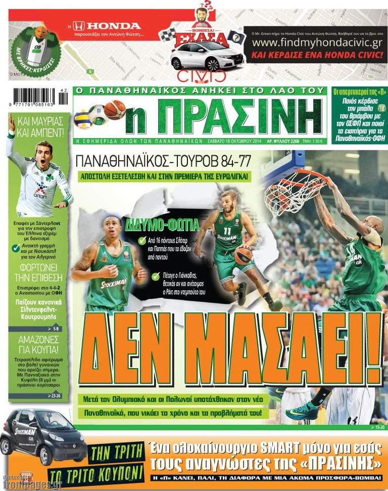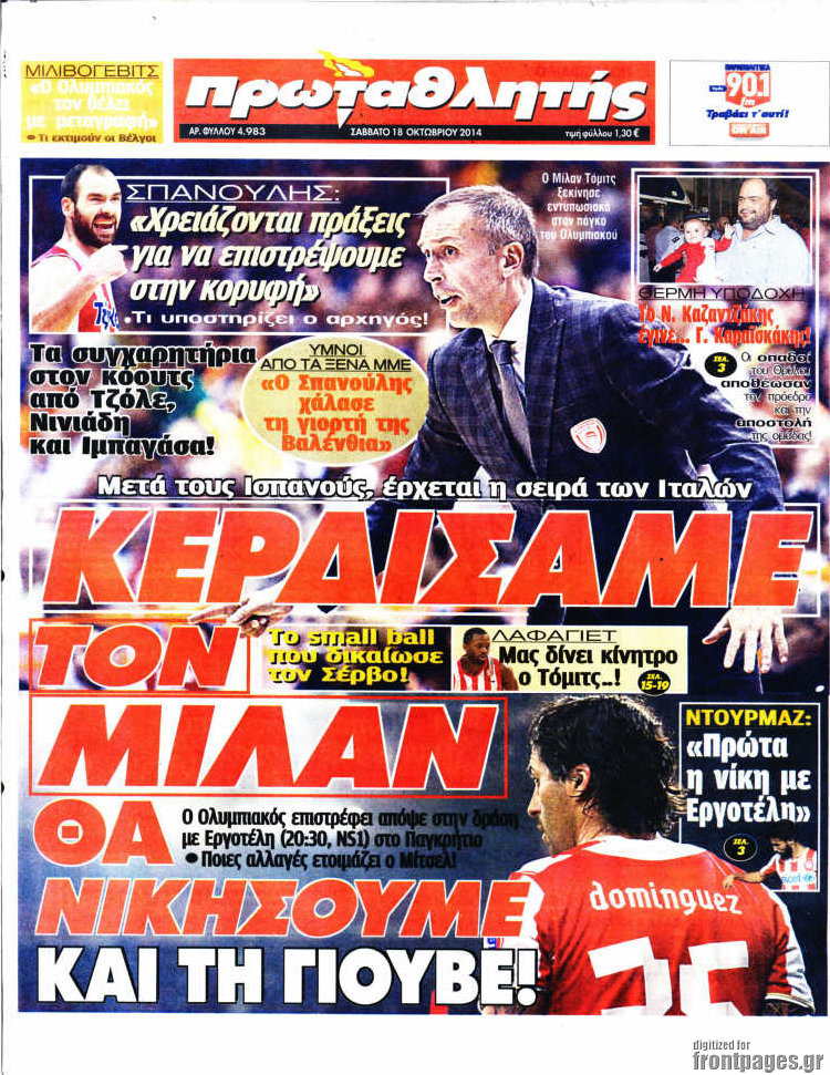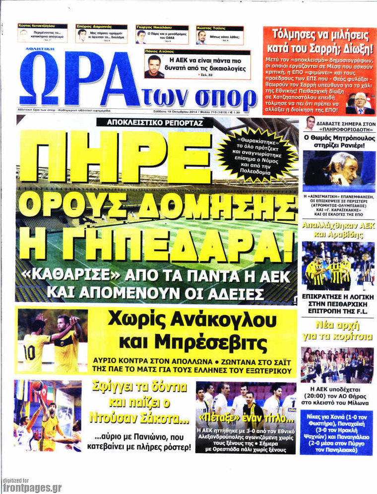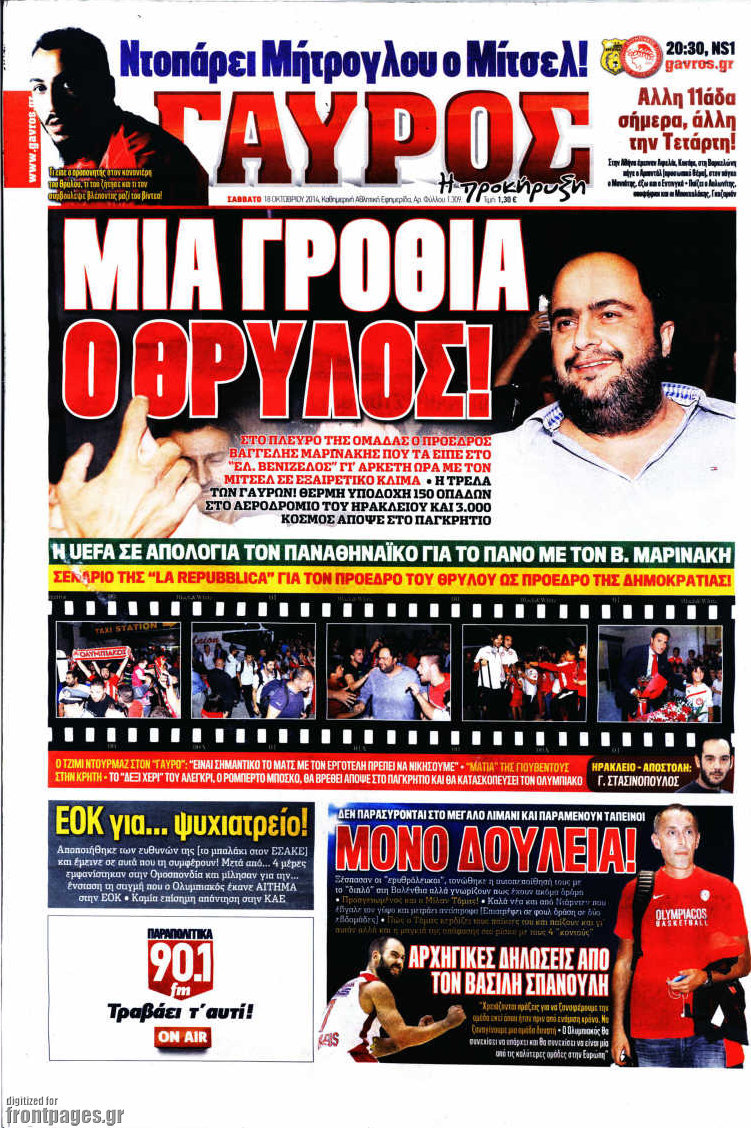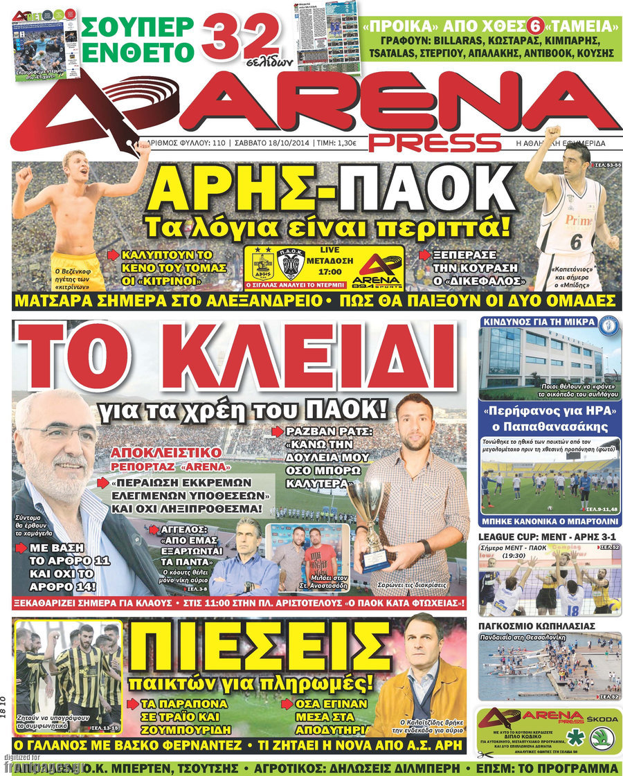 Οι αθλητικές εφημερίδες Enikos Newsroom 07:57, Σάββατο 18 Οκτωβρίου 2014 Media Οι αθλητικές εφημερίδες Διαβάστε τα πρωτοσέλιδα των αθλητικών εφημερίδων. ΑΘΛΗΤΙΚΕΣ ΕΦΗΜΕΡΙΔΕΣ ΠΡΩΤΟΣΕΛΙΔΑ Μοιράσου το: σχολίασε κι εσύ (0 σχόλια) Ακολουθήστε το enikos.gr στο Google News και μάθετε πρώτοι όλες τις ειδήσεις Δείτε όλες τις τελευταίες ειδήσεις από την Ελλάδα και τον Κόσμο στο enikos.gr Ειδήσεις Ροή Ειδήσεων 5 ώρες πριν Νέα Πέραμος: Πού στρέφονται οι έρευνες των αρχών για το άγριο έγκλημα με θύμα τον 27χρονο επιχειρηματία – «Δεν είχε πειράξει κανέναν» λένε οι γονείς του 5 ώρες πριν Μητσοτάκης για τη συνταγματική αναθεώρηση: «Φιλοδοξία μου είναι το 2030 να έχουμε κλείσει όλες τις εκκρεμότητες με το πελατειακό κράτος» 5 ώρες πριν Εξαφάνιση Λόρας: Ο πατέρας της ήταν αυτός που αποκάλυψε ότι ταξίδεψε στη Γερμανία – Το πρόσωπο-«κλειδί», η νέα μαρτυρία και οι «στοχευμένες» κινήσεις της ανήλικης 8 ώρες πριν Δημοσκόπηση Alco: Στις 13 μονάδες η διαφορά ΝΔ-ΠΑΣΟΚ – Πώς αξιολογούν οι πολίτες τις νέες πολιτικές κινήσεις; 4 ώρες πριν The Washington Post: Τι έχουμε μάθει ως τώρα από τα νέα στοιχεία στην υπόθεση Επστάιν – «Η αλήθεια να φτάσει στο κόκκαλο» 36 λεπτά πριν Τα ζώδια σήμερα, Τρίτη 3 Φεβρουαρίου 2026: Τοξότες, σας εξαντλεί να είστε συνεχώς «στην τσίτα» και ψάχνετε κάτι διαφορετικό 7 ώρες πριν Ποιος είναι ο έρωτας της ζωή σας; Ανακαλύψτε την αδελφή-ψυχή σας με βάση τον μήνα γέννησή σας 9 ώρες πριν Λευκές περσίδες ξανά: Η απλή μέθοδος για να εξαφανίσετε την κιτρινίλα χωρίς τρίψιμο 6 ώρες πριν Ύπνος: Η βραδινή ρουτίνα που εγγυάται 8 ώρες ξεκούρασης, σύμφωνα με ειδικό 17 λεπτά πριν Η Κούβα «αδειάζει» τον Τραμπ: Δεν υπάρχει επίσημος διάλογος με τις ΗΠΑ, μόνο διπλωματικές «ανταλλαγές» 36 λεπτά πριν Τα ζώδια σήμερα, Τρίτη 3 Φεβρουαρίου 2026: Τοξότες, σας εξαντλεί να είστε συνεχώς «στην τσίτα» και ψάχνετε κάτι διαφορετικό 41 λεπτά πριν Λαβρόφ: Θεμιτοί στόχοι οι ξένες στρατιωτικές δυνάμεις στην Ουκρανία 58 λεπτά πριν Δημήτρης Νατσιός: Η μονιμότητα των δημοσίων αποτελεί κόκκινη γραμμή για εμάς – Η «Νίκη» θα κατέβει αυτόνομα στις εκλογές 1 ώρα πριν Ουκρανία: Tο Κίεβο δέχεται πυραυλική επίθεση – Ισχυρές εκρήξεις ENIKOS NETWORK 5 πράγματα που κάνουν μαζί τα ευτυχισμένα ζευγάρια Δύο παιδιά με γρίπη στις ΜΕΘ – Συνεχίζεται η απειλή των εποχικών λοιμώξεων Επιθεώρηση Εργασίας: Αυξήθηκαν κατά 4% οι έλεγχοι το 2025 – Στα 53,4 εκατ. ευρώ τα πρόστιμα Τα ξενοδοχεία κατέθεσαν αγωγή κατά της Booking για παράνομες ρήτρες Ευπάθεια στο moltbook ai αποκαλύπτει email, tokens σύνδεσης και api keys Αυτός είναι ο ρόλος της μικρής τρύπας στους νυχοκόπτες – «Είμαι ο μόνος που δεν το ήξερε;»» περισσότερα 18:18 , Δευτέρα 02 Φεβρουαρίου 2026 Άγιος Έρωτας: Η μικρή Ελευθερία δεν θέλει τους νέους της γονείς και η Χλόη καταφεύγει στον πατέρα Νικόλαο Όσα θα δούμε απόψε στο νέο επεισόδιο της σειράς “Άγιος Έρωτας” στις 22:00 στον Alp... 18:07 , Δευτέρα 02 Φεβρουαρίου 2026 MasterChef 10: Το πρώτο Mystery Box έχει την παιχνιδιάρικη υπογραφή του Πάνου Ιωαννίδη Μετά τις πρώτες εβδομάδες και τις διαδικασίες, που προηγήθηκαν, 14 διαγωνιζόμενοι της πρώτης μ... 17:45 , Δευτέρα 02 Φεβρουαρίου 2026 Grand Hotel: Ο Πέτρος και η Αλίκη είναι και πάλι μαζί Καταιγιστικές οι εξελίξεις στο νέο διπλό επεισόδιο της σειράς “Grand Hotel” στις 2... 17:15 , Δευτέρα 02 Φεβρουαρίου 2026 Να μ’ αγαπάς: Η Φωτεινή ανακοινώνει στη Ζωή πως είναι έγκυος, απόψε στις 20:00, με διπλό επεισόδιο Ο Θεόφιλος λαμβάνει τα αποτελέσματα του τεστ DΝA, στο νέο διπλό επεισόδιο της σει