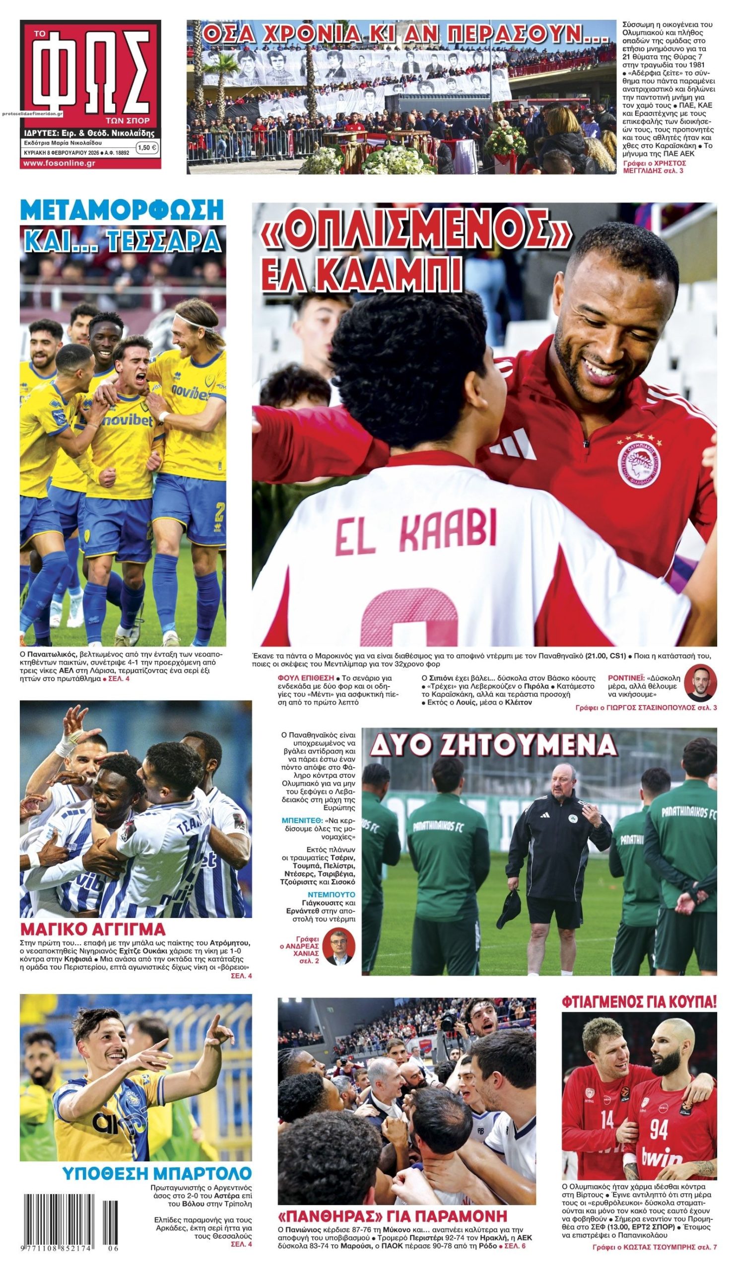 Διαβάστε τα πρωτοσέλιδα από τις αθλητικές εφημερίδες, σήμερα 8/2/2026.
