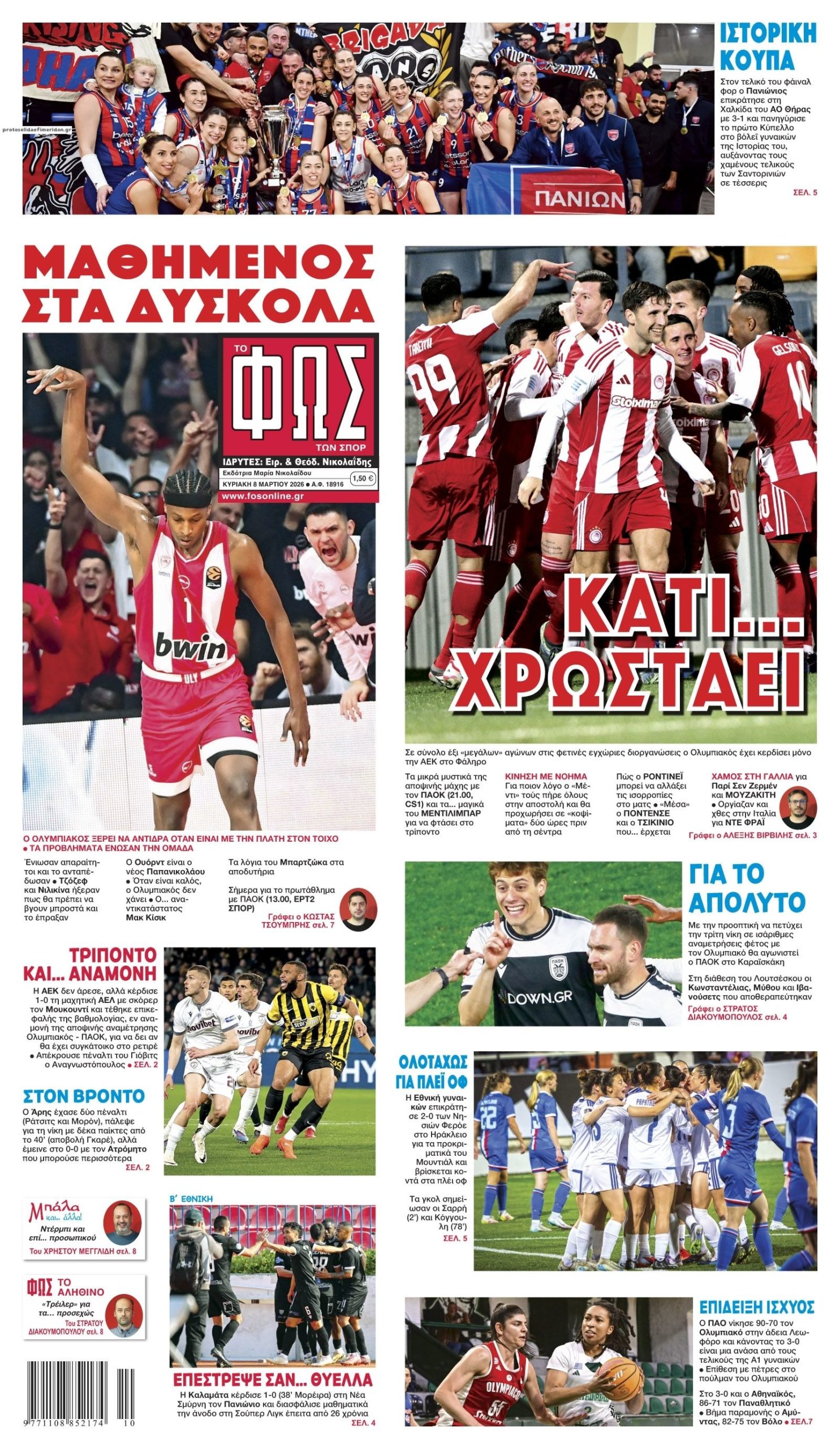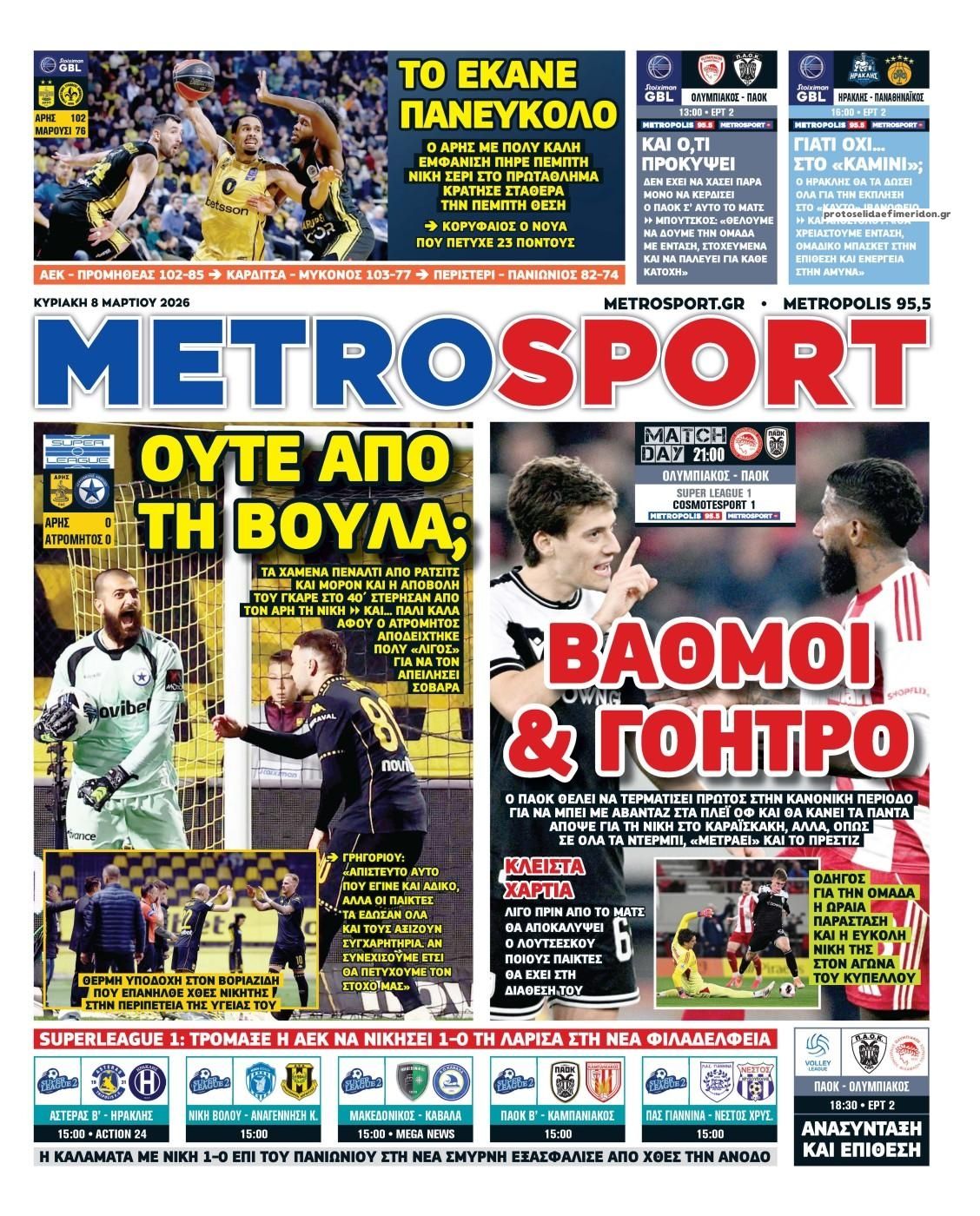 Διαβάστε τα πρωτοσέλιδα από τις αθλητικές εφημερίδες, σήμερα 8/3/2026.