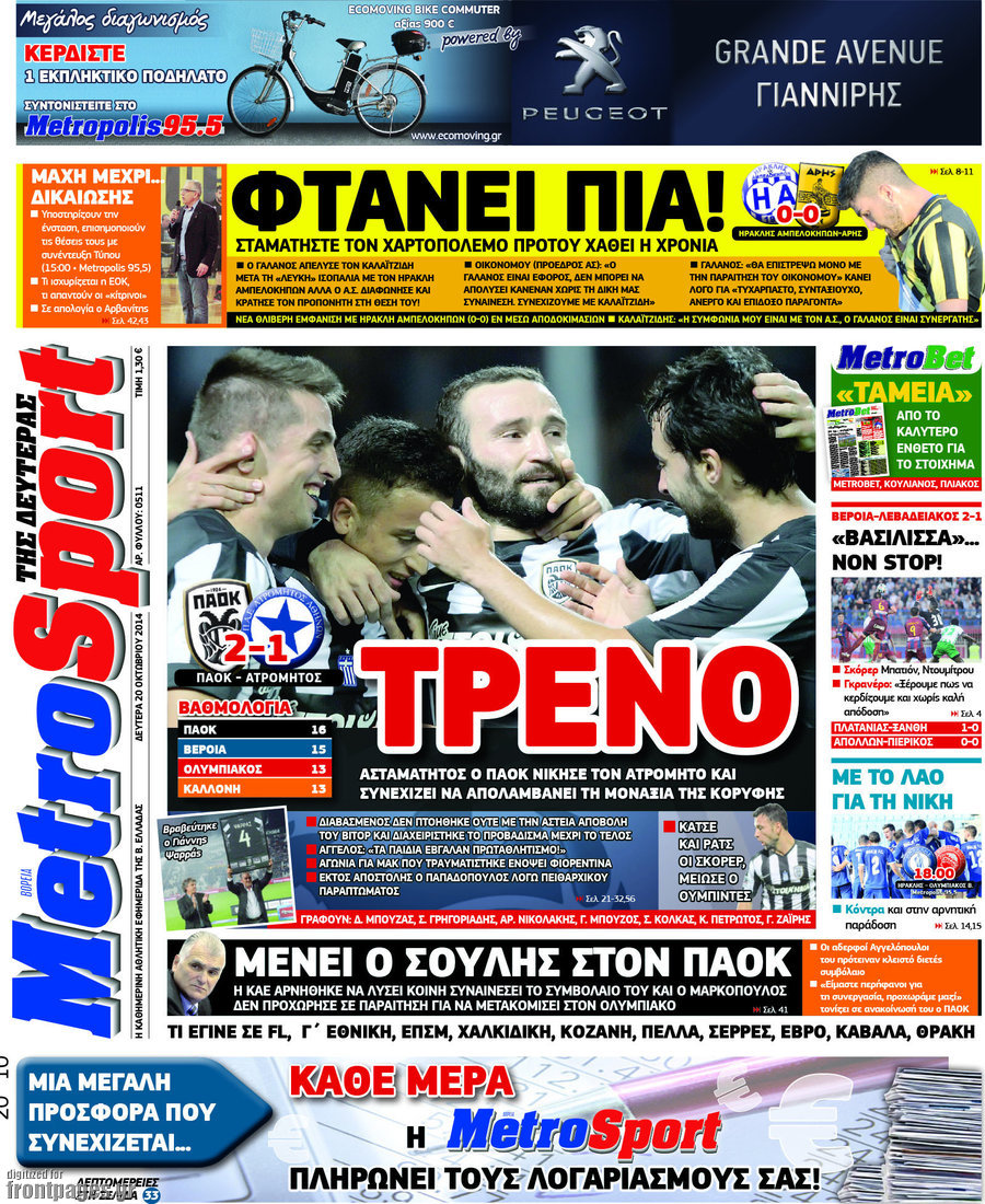 Οι αθλητικές εφημερίδες Enikos Newsroom 09:23, Δευτέρα 20 Οκτωβρίου 2014 Media Οι αθλητικές εφημερίδες Διαβάστε τα πρωτοσέλιδα των αθλητικών εφημερίδων: ΑΘΛΗΤΙΚΕΣ ΕΦΗΜΕΡΙΔΕΣ ΠΡΩΤΟΣΕΛΙΔΑ Μοιράσου το: σχολίασε κι εσύ (0 σχόλια) Ακολουθήστε το enikos.gr στο Google News και μάθετε πρώτοι όλες τις ειδήσεις Δείτε όλες τις τελευταίες ειδήσεις από την Ελλάδα και τον Κόσμο στο enikos.gr Ειδήσεις Ροή Ειδήσεων 6 ώρες πριν Εκτός ευρωομάδας ΣΥΡΙΖΑ ο Νίκος Παππάς μετά την επίθεση στον δημοσιογράφο Νίκο Γιαννόπουλο – Η μήνυση και οι νέες δηλώσεις 6 ώρες πριν «Αγριεύουν» οι αγρότες: «Δεν συντρέχει λόγος συνάντησης με τον πρωθυπουργό» – Ώρα αποφάσεων στη σύσκεψη της Πέμπτης 6 ώρες πριν Κυψέλη: Χωρίς την οικογένειά της δίπλα της απολογήθηκε η 16χρονη – «Της είχε επιτεθεί κάποιος για να την βιάσει, φοβήθηκε και κυκλοφορούσε με μαχαίρι» 5 ώρες πριν Politico: Το πρόβλημα της Ευρώπης δεν είναι το Βέλγιο αλλά ο Ντόναλντ Τραμπ 7 ώρες πριν Αλεξανδρούπολη: Πολυοργανική ανεπάρκεια λόγω υποσιτισμού η αιτία θανάτου του 3χρονου αγοριού 6 ώρες πριν Μυστήριο με τεράστιες κυκλικές πέτρες 200 κιλών – Ανακαλύφθηκαν τυχαία κατά τη διάρκεια οδικών έργων και κανείς δεν ξέρει από πού προέρχονται 7 ώρες πριν Ύπνος: Ειδικός εξηγεί τον πραγματικό λόγο που ξυπνάτε στις 4 τα ξημερώματα – Ο ρόλος των ορμονών και του κιρκάδιου ρυθμού 8 ώρες πριν Αριθμολογία: Οι άνθρωποι που έχουν γεννηθεί αυτές τις 4 ημερομηνίες, είναι τρυφεροί και αγαπούν ανιδιοτελώς 19 ώρες πριν 20 χρόνια τα Χριστούγεννα ξεκινούν στα Public με μεγάλη ποικιλία σε δώρα! 13 λεπτά πριν Κτηνοτρόφοι: Με δάκρυα στα μάτια ζουν τον εφιάλτη των άδειων στάβλων – «Καταστράφηκαν οι ζωές μας» 28 λεπτά πριν Νέο αμερικανικό πλήγμα σε σκάφος που φέρεται να μετέφερε ναρκωτικά στον Ειρηνικό – Τέσσερις νεκροί 43 λεπτά πριν Αλ Τσαντίρι Νιουζ: «Λύγισε» ο Δημήτρης Λάλος για τον Δημήτρη Ήμελλο – «Τον μνημονεύω, να ‘ναι καλά εκεί που είναι» 58 λεπτά πριν GNTM: Με δάκρυα τον αποχαιρέτησε η Ηλιάνα Παπαγεωργίου πριν από τον ημιτελικό – «Αισθάνομαι πολύ παράξενα» 1 ώρα πριν Αμερικανικά στρατεύματα στον Ισημερινό για «προσωρινή» επιχείρηση κατά των ναρκωτικών ENIKOS NETWORK Αϋπνία: Το κόλπο που θα σας βοηθήσει να κοιμηθείτε απόψε – Είναι απλό και έχει αποτέλεσμα 2,6 εκατομμύρια πολίτες έχουν ήδη εμβολιαστεί κατά της γρίπης ΕΛΣΤΑΤ: Τι δείχνουν τα νέα στοιχεία για τις ηλεκτρονικές παραγγελίες των επιχειρήσεων ΚΕΠΕ: Οι 3 διακριτές συμβολές των ΜμΕ και της μεταποίησης στην ελληνική οικονομία Χαρτογραφώντας το «σημείο χωρίς επιστροφή»: Για πρώτη φορά αποκαλύπτεται με λεπτομέρεια το ακανθώδες όριο της ατμόσφαιρας τ... Η Google καταργεί τη λειτουργία «dark web report» – Πώς θα μπορούν οι χρήστες να διαγράφουν τα δεδομένα τους περισσότερα 02:30 , Πέμπτη 18 Δεκεμβρίου 2025 Αλ Τσαντίρι Νιουζ: Η κόρη της Πάολα στο κοινό – Η ατάκα Λαζόπουλου που την έκανε να «κοκκινήσει» Γιορτινή διάθεση και ευχάριστες στιγμές γέμισε η αποψινή, τελευταία για το 2025, εκπομπή του «... 22:24 , Τετάρτη 17 Δεκεμβρίου 2025 Το Σπίτι Δίπλα Στο Ποτάμι: Σε κίνδυνο η υγεία του Απόστολου – Τι θα δούμε απόψε “Το Σπίτι Δίπλα στο Ποτάμι” ξετυλίγει το νήμα της ζωής των πέντε αδελφών με καταισ... 21:14 , Τετάρτη 17 Δεκεμβρίου 2025 Παιχνίδια Εκδίκησης: Θα καταφέρει ο Χρήστος να κλονίσει την εμπιστοσύνη της Μάγιας απέναντι στον Άγη; Τα «Παιχνίδια Εκδίκησης» έρχονται απόψε στις 22:30, στον Αντ1, με το τελευταίο επεισόδιο της χ... 20:57 , Τετάρτη 17 Δεκεμβρίου 2025 Άγιος Έρωτ