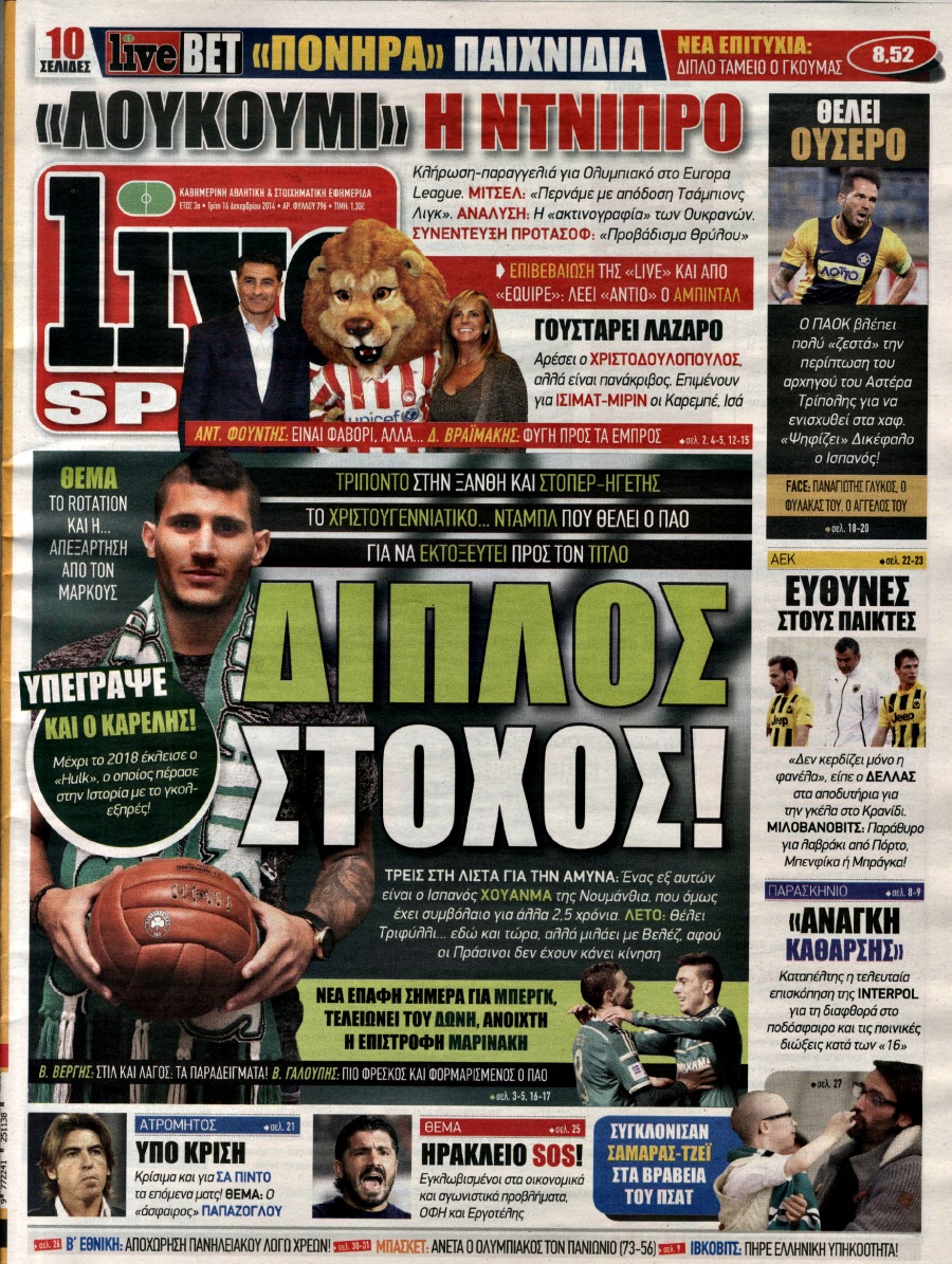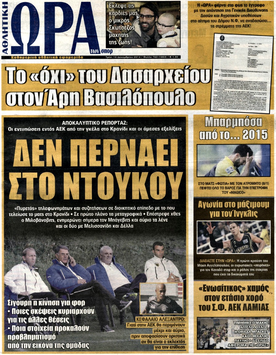 Οι αθλητικές εφημερίδες Enikos Newsroom 07:57, Τρίτη 16 Δεκεμβρίου 2014 Media Διαβάστε τα πρωτοσέλιδα των αθλητικών εφημερίδων: ΑΘΛΗΤΙΚΕΣ ΕΦΗΜΕΡΙΔΕΣ ΕΦΗΜΕΡΙΔΕΣ ΠΡΩΤΟΣΕΛΙΔΑ Μοιράσου το: σχολίασε κι εσύ (0 σχόλια) Ακολουθήστε το enikos.gr στο Google News και μάθετε πρώτοι όλες τις ειδήσεις Δείτε όλες τις τελευταίες ειδήσεις από την Ελλάδα και τον Κόσμο στο enikos.gr Ειδήσεις Ροή Ειδήσεων 51 λεπτά πριν Ευρωπαϊκή Ένωση: Χωρίς συμφωνία, για την μακροπρόθεσμη χρηματοδότηση της Ουκρανίας, ολοκληρώθηκε η Σύνοδος Κορυφής στις Βρυξέλλες 4 ώρες πριν ΟΠΕΚΕΠΕ: Προφυλακιστέος ο φερόμενος αρχηγός και ο λογιστής της εγκληματικής οργάνωσης 5 ώρες πριν Αυξάνουν την πίεση προς την κυβέρνηση οι αγρότες: Κλείνουν παρακαμπτήριους και ανοίγουν διόδια – Τι θα γίνει τις γιορτές 5 ώρες πριν Φοινικούντα: Το Σάββατο απολογείται ο 30χρονος γιος γνωστού επιχειρηματία της Πλάκας που παραδόθηκε – Όσα είπε στους αστυνομικούς και ο ρόλος του στο έγκλημα 4 ώρες πριν ΑΕΚ – Κραϊόβα 3-2: Επική ανατροπή και πρόκριση στους «16» του Conference League η Ένωση 5 ώρες πριν Αρχαιολόγοι ανακάλυψαν ρωμαϊκά τεχνουργήματα από μια πόλη που δεν υπήρξε ποτέ – Τα τρία εντυπωσιακά κτίρια και ο αμφορέας με τις… σαρδέλες 6 ώρες πριν Ύπνος: Η απλή βραδινή ρουτίνα για να προστατεύσετε τα μαλλιά σας από το κρύο κατά τη διάρκεια του χειμώνα 7 ώρες πριν Manifesting: Πώς να συναντήσετε τον σύντροφο της ζωής σας, ανάλογα με τον μήνα γέννησής σας 2 ημέρες πριν 20 χρόνια τα Χριστούγεννα ξεκινούν στα Public με μεγάλη ποικιλία σε δώρα! 4 λεπτά πριν Αιματηρή βομβιστική επίθεση στην Υεμένη: Τουλάχιστον τρεις νεκροί και 13 τραυματίες 7 λεπτά πριν Στη Φλόριντα σήμερα οι διαβουλεύσεις σχετικά με τα επόμενα στάδια για τη Λωρίδα της Γάζας 11 λεπτά πριν Σίσσυ Τουμάση: «Είμαι ασθενοφοβική πάρα πολύ και με πιάνει μια παράνοια μ’ αυτό» 35 λεπτά πριν Ντόναλντ Τραμπ: Δεν χρειάζομαι την έγκριση του Κογκρέσου για να διατάξω στρατιωτικά πλήγματα στη Βενεζουέλα 51 λεπτά πριν Ευρωπαϊκή Ένωση: Χωρίς συμφωνία, για την μακροπρόθεσμη χρηματοδότηση της Ουκρανίας, ολοκληρώθηκε η Σύνοδος Κορυφής στις Βρυξέλλες ENIKOS NETWORK Σε περίοδο αυξημένης δραστηριότητας η γρίπη στην Ελλάδα-Μέτρα προστασίας από τον ΕΟΔΥ Σκέφτεστε συνέχεια συζητήσεις που έχετε κάνει; Τι σημαίνει αυτό, σύμφωνα με ειδικό Στεγαστικό: Τι λέει η ΠΟΜΙΔΑ για τα νέα μέτρα που ανακοίνωσε ο Κυριάκος Μητσοτάκης Λαγκάρντ: Αισιόδοξη για την ανάπτυξη της Ευρωζώνης, αβέβαιη για τον πληθωρισμό Χαρτογραφώντας το «σημείο χωρίς επιστροφή»: Για πρώτη φορά αποκαλύπτεται με λεπτομέρεια το ακανθώδες όριο της ατμόσφαιρας τ... Η Google καταργεί τη λειτουργία «dark web report» – Πώς θα μπορούν οι χρήστες να διαγράφουν τα δεδομένα τους περισσότερα 02:50 , Παρασκευή 19 Δεκεμβρίου 2025 GNTM: «Κλείδωσαν» οι τέσσερις φιναλίστ – Μεγάλη ανατροπή στις τελευταίες αποχωρήσεις Για προτελευταία φορά εμφανίστηκαν στο πλατό του GNTM οι φιναλίστ του φετινού κύκλου, το βράδυ... 17:45 , Πέμπτη 18 Δεκεμβρίου 2025 ROUK ZOUK: Εορταστικό επεισόδιο με καλεσμένους τους πρωταγωνιστές του «Γιατί ρε πατέρα» Το Σάββατο 20 Δεκεμβρίου στις 21:00, η Ζέτα Μακρυπούλια υποδέχεται εκλεκτούς ηθοποιούς που όλο... 17:20 , Πέμπτη 18 Δεκεμβρίου 2025 Άγιος έρωτας: Η Χριστίνα εξομολογείται στον πατέρα Νικόλαο, απόψε στις 21:00 στον Alpha Η Νότα αποφασίζει να εκδικηθεί τον Πέτρο και τον Στέφανο, για χάρη του Λούη, όμως τα πράγματα ... 16:50 , Πέμπτη 18 Δεκεμβρίου 2025 Να μ’ αγαπάς: Ζωή και Φωτεινή συμφιλιώνονται ως μάνα με 