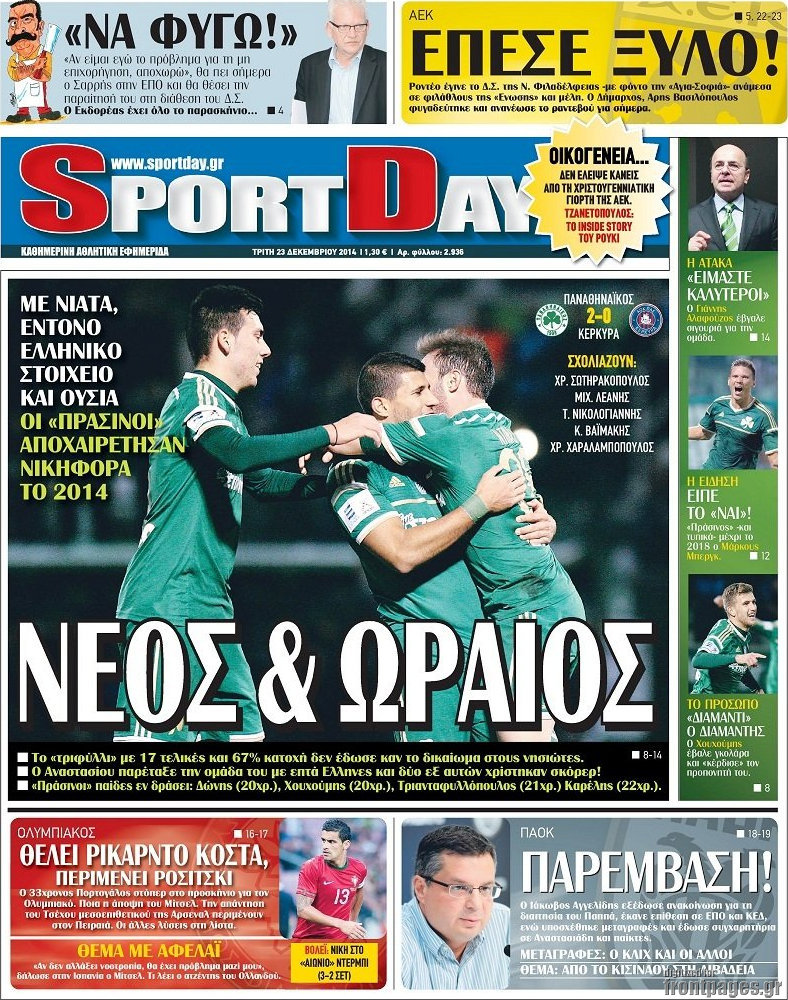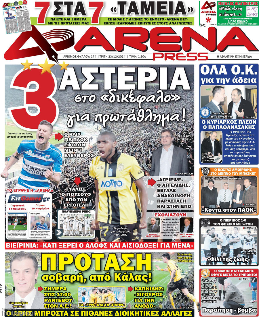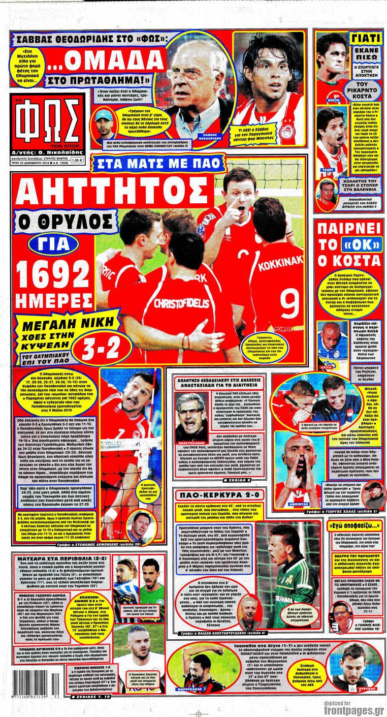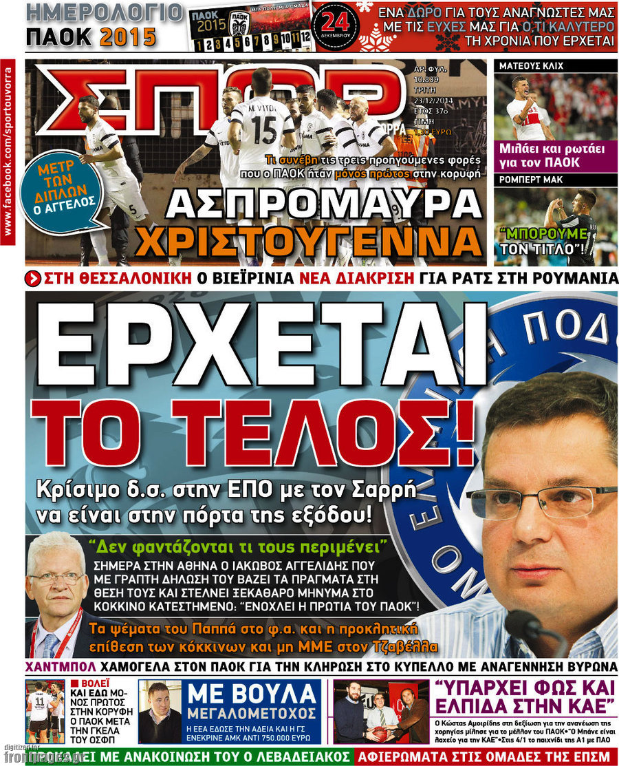 Οι αθλητικές εφημερίδες Enikos Newsroom 07:57, Τρίτη 23 Δεκεμβρίου 2014 Media Διαβάστε τα πρωτοσέλιδα των αθλητικών εφημερίδων: ΑΘΛΗΤΙΚΕΣ ΕΦΗΜΕΡΙΔΕΣ ΕΦΗΜΕΡΙΔΕΣ ΠΡΩΤΟΣΕΛΙΔΑ Μοιράσου το: σχολίασε κι εσύ (0 σχόλια) Ακολουθήστε το enikos.gr στο Google News και μάθετε πρώτοι όλες τις ειδήσεις Δείτε όλες τις τελευταίες ειδήσεις από την Ελλάδα και τον Κόσμο στο enikos.gr Ειδήσεις Ροή Ειδήσεων 2 ώρες πριν Αυξάνουν την πίεση προς την κυβέρνηση οι αγρότες: Κλείνουν παρακαμπτήριους και ανοίγουν διόδια – Τι θα γίνει τις γιορτές 45 λεπτά πριν ΟΠΕΚΕΠΕ: Προφυλακιστέος ο φερόμενος αρχηγός και ο λογιστής της εγκληματικής οργάνωσης 2 ώρες πριν Φοινικούντα: Το Σάββατο απολογείται ο 30χρονος γιος γνωστού επιχειρηματία της Πλάκας που παραδόθηκε – Όσα είπε στους αστυνομικούς και ο ρόλος του στο έγκλημα 1 ώρα πριν Μπορεί ο Μαδούρο να αντέξει τον αποκλεισμό του Τραμπ; Τι θα χρειαστεί η Ουάσινγκτον για να τον ανατρέψει 3 ώρες πριν Πρίγκιπας Ουίλιαμ – Κέιτ: Η νέα οικογενειακή φωτογραφία για τις Χριστουγεννιάτικες κάρτες του 2025 2 ώρες πριν Ύπνος: Η απλή βραδινή ρουτίνα για να προστατεύσετε τα μαλλιά σας από το κρύο κατά τη διάρκεια του χειμώνα 3 ώρες πριν Manifesting: Πώς να συναντήσετε τον σύντροφο της ζωής σας, ανάλογα με τον μήνα γέννησής σας 2 ημέρες πριν 20 χρόνια τα Χριστούγεννα ξεκινούν στα Public με μεγάλη ποικιλία σε δώρα! 1 ώρα πριν Αρχαιολόγοι ανακάλυψαν ρωμαϊκά τεχνουργήματα από μια πόλη που δεν υπήρξε ποτέ – Τα τρία εντυπωσιακά κτίρια και ο αμφορέας με τις… σαρδέλες 24 λεπτά πριν ΑΕΚ – Κραϊόβα 3-2: Επική ανατροπή και πρόκριση στους «16» του Conference League η Ένωση 45 λεπτά πριν ΟΠΕΚΕΠΕ: Προφυλακιστέος ο φερόμενος αρχηγός και ο λογιστής της εγκληματικής οργάνωσης 55 λεπτά πριν Αθηνά Μαξίμου: Η τρυφερή ανάρτηση για τα γενέθλια του Αιμίλιου Χειλάκη – «Είναι η εκλεκτική συγγένειά μου, η επιλογή και η ευθύνη μου» 1 ώρα πριν Παναθηναϊκός – Χάποελ Τελ Αβίβ 93-82: Με… φόρα από την Κωνσταντινούπολη 1 ώρα πριν Μπορεί ο Μαδούρο να αντέξει τον αποκλεισμό του Τραμπ; Τι θα χρειαστεί η Ουάσινγκτον για να τον ανατρέψει ENIKOS NETWORK Σε περίοδο αυξημένης δραστηριότητας η γρίπη στην Ελλάδα-Μέτρα προστασίας από τον ΕΟΔΥ Σκέφτεστε συνέχεια συζητήσεις που έχετε κάνει; Τι σημαίνει αυτό, σύμφωνα με ειδικό Στεγαστικό: Τι λέει η ΠΟΜΙΔΑ για τα νέα μέτρα που ανακοίνωσε ο Κυριάκος Μητσοτάκης Λαγκάρντ: Αισιόδοξη για την ανάπτυξη της Ευρωζώνης, αβέβαιη για τον πληθωρισμό Χαρτογραφώντας το «σημείο χωρίς επιστροφή»: Για πρώτη φορά αποκαλύπτεται με λεπτομέρεια το ακανθώδες όριο της ατμόσφαιρας τ... Η Google καταργεί τη λειτουργία «dark web report» – Πώς θα μπορούν οι χρήστες να διαγράφουν τα δεδομένα τους περισσότερα 17:45 , Πέμπτη 18 Δεκεμβρίου 2025 ROUK ZOUK: Εορταστικό επεισόδιο με καλεσμένους τους πρωταγωνιστές του «Γιατί ρε πατέρα» Το Σάββατο 20 Δεκεμβρίου στις 21:00, η Ζέτα Μακρυπούλια υποδέχεται εκλεκτούς ηθοποιούς που όλο... 17:20 , Πέμπτη 18 Δεκεμβρίου 2025 Άγιος έρωτας: Η Χριστίνα εξομολογείται στον πατέρα Νικόλαο, απόψε στις 21:00 στον Alpha Η Νότα αποφασίζει να εκδικηθεί τον Πέτρο και τον Στέφανο, για χάρη του Λούη, όμως τα πράγματα ... 16:50 , Πέμπτη 18 Δεκεμβρίου 2025 Να μ’ αγαπάς: Ζωή και Φωτεινή συμφιλιώνονται ως μάνα με κόρη, απόψε στις 20:00 Η ταυτότητα του Άγγελου αποκαλύπτεται στο νέο επεισόδιο της σειράς “Να μ’ αγαπάς... 15:52 , Πέμπτη 18 Δεκεμβρίου 2025 Το Σπίτι Δίπλα Στο Ποτάμι: Το καθηλωτικό τελευταίο επεισόδιο για το 2025 απόψε στις 22:30 Καθηλώνει το σημερινό επεισόδ