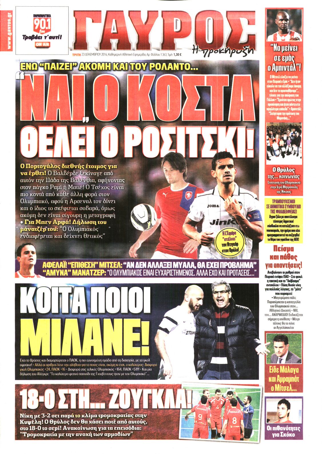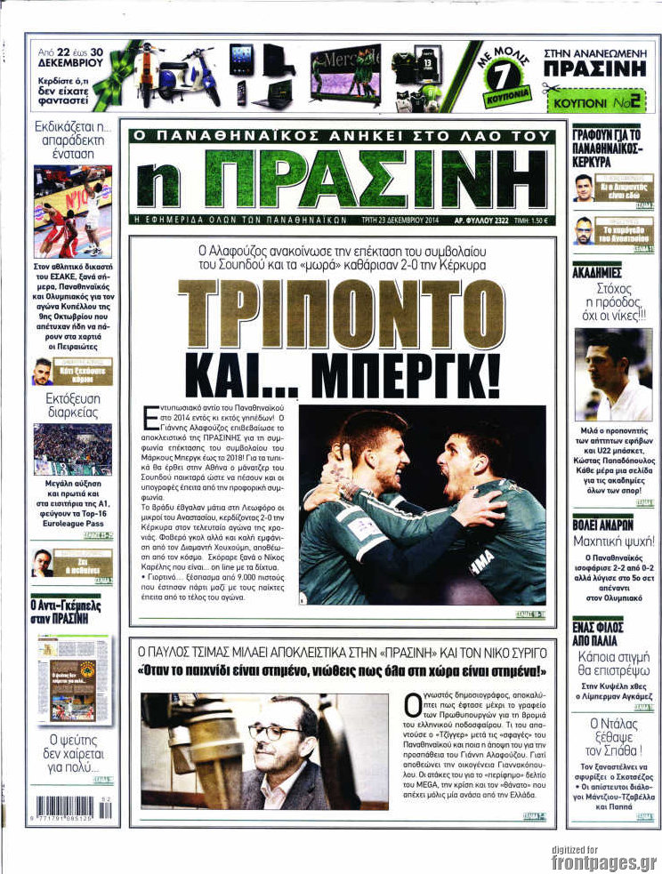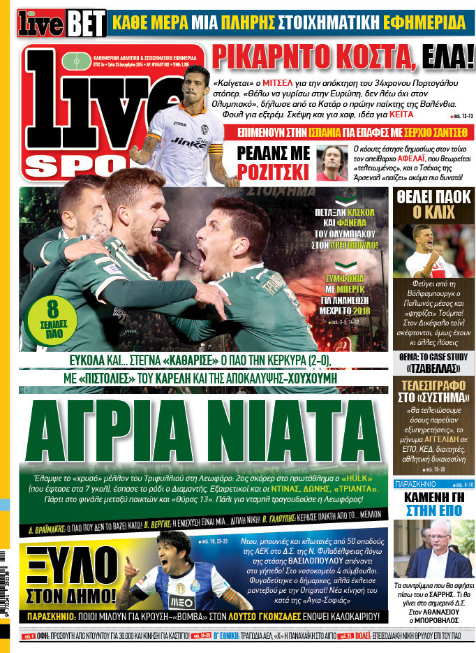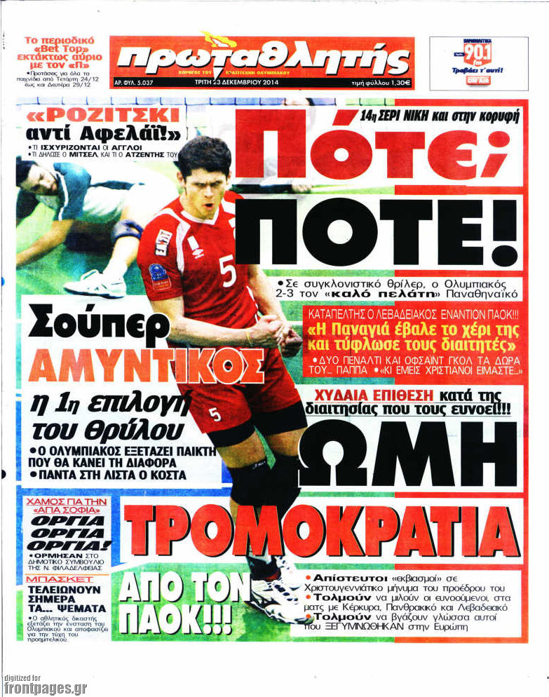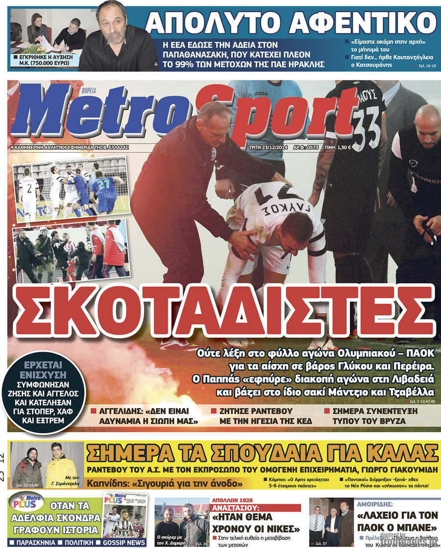 Οι αθλητικές εφημερίδες Enikos Newsroom 07:57, Τρίτη 23 Δεκεμβρίου 2014 Media Διαβάστε τα πρωτοσέλιδα των αθλητικών εφημερίδων: ΑΘΛΗΤΙΚΕΣ ΕΦΗΜΕΡΙΔΕΣ ΕΦΗΜΕΡΙΔΕΣ ΠΡΩΤΟΣΕΛΙΔΑ Μοιράσου το: σχολίασε κι εσύ (0 σχόλια) Ακολουθήστε το enikos.gr στο Google News και μάθετε πρώτοι όλες τις ειδήσεις Δείτε όλες τις τελευταίες ειδήσεις από την Ελλάδα και τον Κόσμο στο enikos.gr Ειδήσεις Ροή Ειδήσεων 2 ώρες πριν Αυξάνουν την πίεση προς την κυβέρνηση οι αγρότες: Κλείνουν παρακαμπτήριους και ανοίγουν διόδια – Τι θα γίνει τις γιορτές 45 λεπτά πριν ΟΠΕΚΕΠΕ: Προφυλακιστέος ο φερόμενος αρχηγός και ο λογιστής της εγκληματικής οργάνωσης 2 ώρες πριν Φοινικούντα: Το Σάββατο απολογείται ο 30χρονος γιος γνωστού επιχειρηματία της Πλάκας που παραδόθηκε – Όσα είπε στους αστυνομικούς και ο ρόλος του στο έγκλημα 1 ώρα πριν Μπορεί ο Μαδούρο να αντέξει τον αποκλεισμό του Τραμπ; Τι θα χρειαστεί η Ουάσινγκτον για να τον ανατρέψει 3 ώρες πριν Πρίγκιπας Ουίλιαμ – Κέιτ: Η νέα οικογενειακή φωτογραφία για τις Χριστουγεννιάτικες κάρτες του 2025 2 ώρες πριν Ύπνος: Η απλή βραδινή ρουτίνα για να προστατεύσετε τα μαλλιά σας από το κρύο κατά τη διάρκεια του χειμώνα 3 ώρες πριν Manifesting: Πώς να συναντήσετε τον σύντροφο της ζωής σας, ανάλογα με τον μήνα γέννησής σας 2 ημέρες πριν 20 χρόνια τα Χριστούγεννα ξεκινούν στα Public με μεγάλη ποικιλία σε δώρα! 1 ώρα πριν Αρχαιολόγοι ανακάλυψαν ρωμαϊκά τεχνουργήματα από μια πόλη που δεν υπήρξε ποτέ – Τα τρία εντυπωσιακά κτίρια και ο αμφορέας με τις… σαρδέλες 24 λεπτά πριν ΑΕΚ – Κραϊόβα 3-2: Επική ανατροπή και πρόκριση στους «16» του Conference League η Ένωση 45 λεπτά πριν ΟΠΕΚΕΠΕ: Προφυλακιστέος ο φερόμενος αρχηγός και ο λογιστής της εγκληματικής οργάνωσης 55 λεπτά πριν Αθηνά Μαξίμου: Η τρυφερή ανάρτηση για τα γενέθλια του Αιμίλιου Χειλάκη – «Είναι η εκλεκτική συγγένειά μου, η επιλογή και η ευθύνη μου» 1 ώρα πριν Παναθηναϊκός – Χάποελ Τελ Αβίβ 93-82: Με… φόρα από την Κωνσταντινούπολη 1 ώρα πριν Μπορεί ο Μαδούρο να αντέξει τον αποκλεισμό του Τραμπ; Τι θα χρειαστεί η Ουάσινγκτον για να τον ανατρέψει ENIKOS NETWORK Σε περίοδο αυξημένης δραστηριότητας η γρίπη στην Ελλάδα-Μέτρα προστασίας από τον ΕΟΔΥ Σκέφτεστε συνέχεια συζητήσεις που έχετε κάνει; Τι σημαίνει αυτό, σύμφωνα με ειδικό Στεγαστικό: Τι λέει η ΠΟΜΙΔΑ για τα νέα μέτρα που ανακοίνωσε ο Κυριάκος Μητσοτάκης Λαγκάρντ: Αισιόδοξη για την ανάπτυξη της Ευρωζώνης, αβέβαιη για τον πληθωρισμό Χαρτογραφώντας το «σημείο χωρίς επιστροφή»: Για πρώτη φορά αποκαλύπτεται με λεπτομέρεια το ακανθώδες όριο της ατμόσφαιρας τ... Η Google καταργεί τη λειτουργία «dark web report» – Πώς θα μπορούν οι χρήστες να διαγράφουν τα δεδομένα τους περισσότερα 17:45 , Πέμπτη 18 Δεκεμβρίου 2025 ROUK ZOUK: Εορταστικό επεισόδιο με καλεσμένους τους πρωταγωνιστές του «Γιατί ρε πατέρα» Το Σάββατο 20 Δεκεμβρίου στις 21:00, η Ζέτα Μακρυπούλια υποδέχεται εκλεκτούς ηθοποιούς που όλο... 17:20 , Πέμπτη 18 Δεκεμβρίου 2025 Άγιος έρωτας: Η Χριστίνα εξομολογείται στον πατέρα Νικόλαο, απόψε στις 21:00 στον Alpha Η Νότα αποφασίζει να εκδικηθεί τον Πέτρο και τον Στέφανο, για χάρη του Λούη, όμως τα πράγματα ... 16:50 , Πέμπτη 18 Δεκεμβρίου 2025 Να μ’ αγαπάς: Ζωή και Φωτεινή συμφιλιώνονται ως μάνα με κόρη, απόψε στις 20:00 Η ταυτότητα του Άγγελου αποκαλύπτεται στο νέο επεισόδιο της σειράς “Να μ’ αγαπάς... 15:52 , Πέμπτη 18 Δεκεμβρίου 2025 Το Σπίτι Δίπλα Στο Ποτάμι: Το καθηλωτικό τελευταίο επεισόδιο για το 2025 απόψε στις 22:30 Καθηλώνει το σημερινό επεισόδ