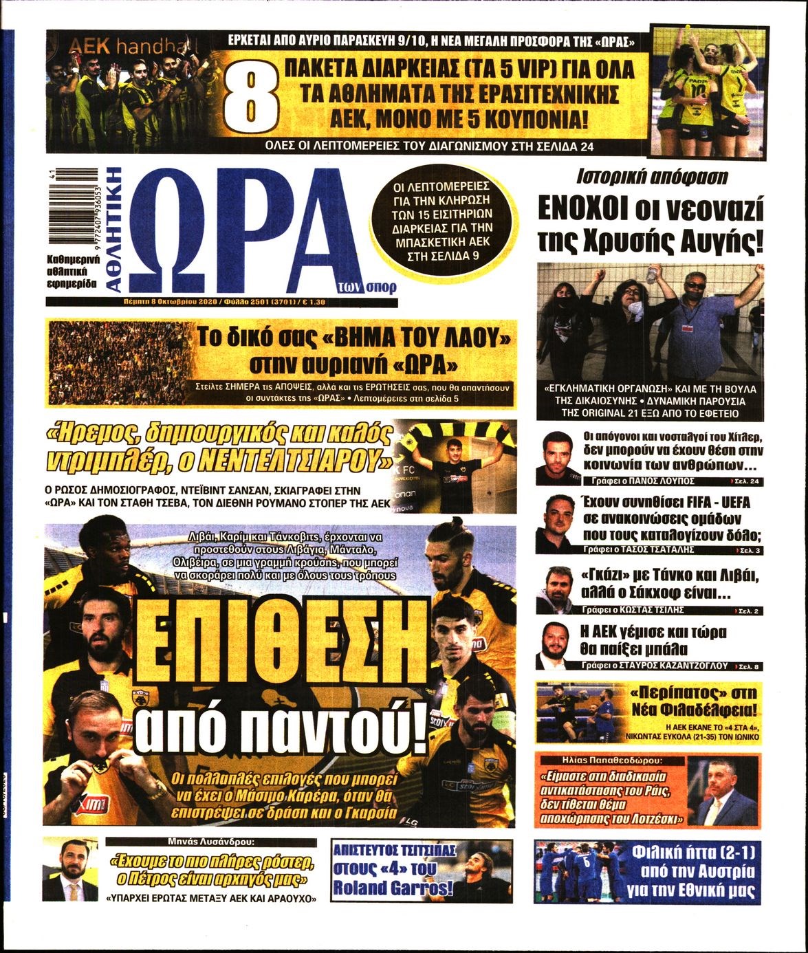 Οι αθλητικές εφημερίδες 8/10/2020 Διονύσης Νίκκας 06:40, Πέμπτη 08 Οκτωβρίου 2020 Media Διαβάστε τα πρωτοσέλιδα των αθλητικών εφημερίδων… ΑΘΛΗΤΙΚΕΣ ΕΦΗΜΕΡΙΔΕΣ Μοιράσου το: σχολίασε κι εσύ (0 σχόλια) Ακολουθήστε το enikos.gr στο Google News και μάθετε πρώτοι όλες τις ειδήσεις Δείτε όλες τις τελευταίες ειδήσεις από την Ελλάδα και τον Κόσμο στο enikos.gr Ειδήσεις Ροή Ειδήσεων 41 λεπτά πριν Χριστούγεννα στα μπλόκα: Επιμένουν στις κινητοποιήσεις τους οι αγρότες – Ανοίγουν τα διόδια το Σαββατοκύριακο 1 ώρα πριν Ουκρανία: Η άνευ προηγουμένου επίθεση σε ρωσικό τάνκερ στη Μεσόγειο και το μήνυμα προς στον Πούτιν – Το «μακρύ χέρι» του Κιέβου 19 λεπτά πριν Πούτιν: Τα μηνύματα σε Ευρώπη και ΝΑΤΟ από το μαραθώνιο «σόου» του – Η απαίτηση για «σεβασμό» και η ειρήνη «με τους όρους» της Μόσχας 1 ώρα πριν Τραμπ: Δεν αποκλείει την πιθανότητα ενός πολέμου στη Βενεζουέλα – «Ο Μαδούρο ξέρει καλύτερα από τον καθένα τι ακριβώς θέλω» 2 ώρες πριν Συνεχίζει να προκαλεί ο Μίτσκοσκι: «Για μένα το όνομα Μακεδονία είναι ιερό» 4 ώρες πριν Πούτιν: «Ναι, είμαι ερωτευμένος» – Βίντεο από τη σπάνια προσωπική παραδοχή του 2 ώρες πριν Αριθμολογία: Οι άνθρωποι που έχουν γεννηθεί αυτές τις 4 ημερομηνίες, συχνά παρεξηγούνται – «Η καλοσύνη τους κρύβει τεράστια δύναμη» 1 ώρα πριν Ύπνος: Μια κρυφή κατάσταση του εγκεφάλου πριν από τον ύπνο μπορεί να είναι το “κλειδί” για υψηλή ευφυΐα και δημιουργικότητα 3 ώρες πριν Ξεχάστε το καθάρισμα το Σαββατοκύριακο: Ο «κανόνας των 20 λεπτών» που θα σας λύσει τα χέρια 20 λεπτά πριν Ανακαλύφθηκαν αρχαία χρυσά νομίσματα 2.200 ετών που απεικονίζουν τον θεό Απόλλωνα – Η άγνωστη σύνδεση με τον Φίλιππο Β΄ της Μακεδονίας 4 λεπτά πριν Ολυμπιακός – Βιλερμπάν 107-84: Επιστροφή στις νίκες με… προπόνηση 10 λεπτά πριν Νέος Κόσμος: Συνελήφθη 41χρονος με ένταλμα από την Τουρκία για εμπόριο ναρκωτικών και ληστεία 19 λεπτά πριν Πούτιν: Τα μηνύματα σε Ευρώπη και ΝΑΤΟ από το μαραθώνιο «σόου» του – Η απαίτηση για «σεβασμό» και η ειρήνη «με τους όρους» της Μόσχας 20 λεπτά πριν Ανακαλύφθηκαν αρχαία χρυσά νομίσματα 2.200 ετών που απεικονίζουν τον θεό Απόλλωνα – Η άγνωστη σύνδεση με τον Φίλιππο Β΄ της Μακεδονίας 24 λεπτά πριν Νίκος Ξυλούρης: Συγκινεί η χήρα του σπουδαίου καλλιτέχνη – «Ευχαριστώ όλο τον κόσμο που τον κρατάει ζωντανό 45 χρόνια» ENIKOS NETWORK Το ΕΚΑΒ τιμήθηκε από την Ακαδημία Αθηνών για τα 40 χρόνια προσφοράς του Έχετε πραγματικά μεγάλη καρδιά; 10 χαρακτηριστικά όσων έχουν καλοσύνη Πλήρης επάρκεια προϊόντων στις λαϊκές της Αττικής, παρά τις αγροτικές κινητοποιήσεις – Τι απαντούν οι πωλητές ΑΑΔΕ: Νέες αναβαθμίσεις στο Ψηφιακό Πελατολόγιο και την εφαρμογή myDATAapp – Τι πρέπει να γνωρίζετε Χαρτογραφώντας το «σημείο χωρίς επιστροφή»: Για πρώτη φορά αποκαλύπτεται με λεπτομέρεια το ακανθώδες όριο της ατμόσφαιρας τ... Η Google καταργεί τη λειτουργία «dark web report» – Πώς θα μπορούν οι χρήστες να διαγράφουν τα δεδομένα τους περισσότερα 22:42 , Παρασκευή 19 Δεκεμβρίου 2025 Γιώργος Γιαννόπουλος για “Το σόι σου”: “Είναι ευτυχία και ευλογία αυτή η σειρά” «Είναι ευτυχία και ευλογία η συγκυρία αυτής της σειράς», θα πει ο Γιώργος Γιαννόπουλος -ο αγαπ... 20:37 , Παρασκευή 19 Δεκεμβρίου 2025 Don’t Forget The Lyrics: Η Έλλη Κοκκίνου υποδέχεται 4 παίκτες που θα κάνουν τα πάντα για να μη χάσουν ούτε… μισή λέξη από τους στίχους Το «Don’t Forget The Lyrics» επιστρέφει απόψε, Παρασκευή 19 Δεκεμβρίου, στις 21:00 με νέο επει... 19:31 , Παρασκευή 19 Δεκεμβρίου 2025 GNTM: Απόψ