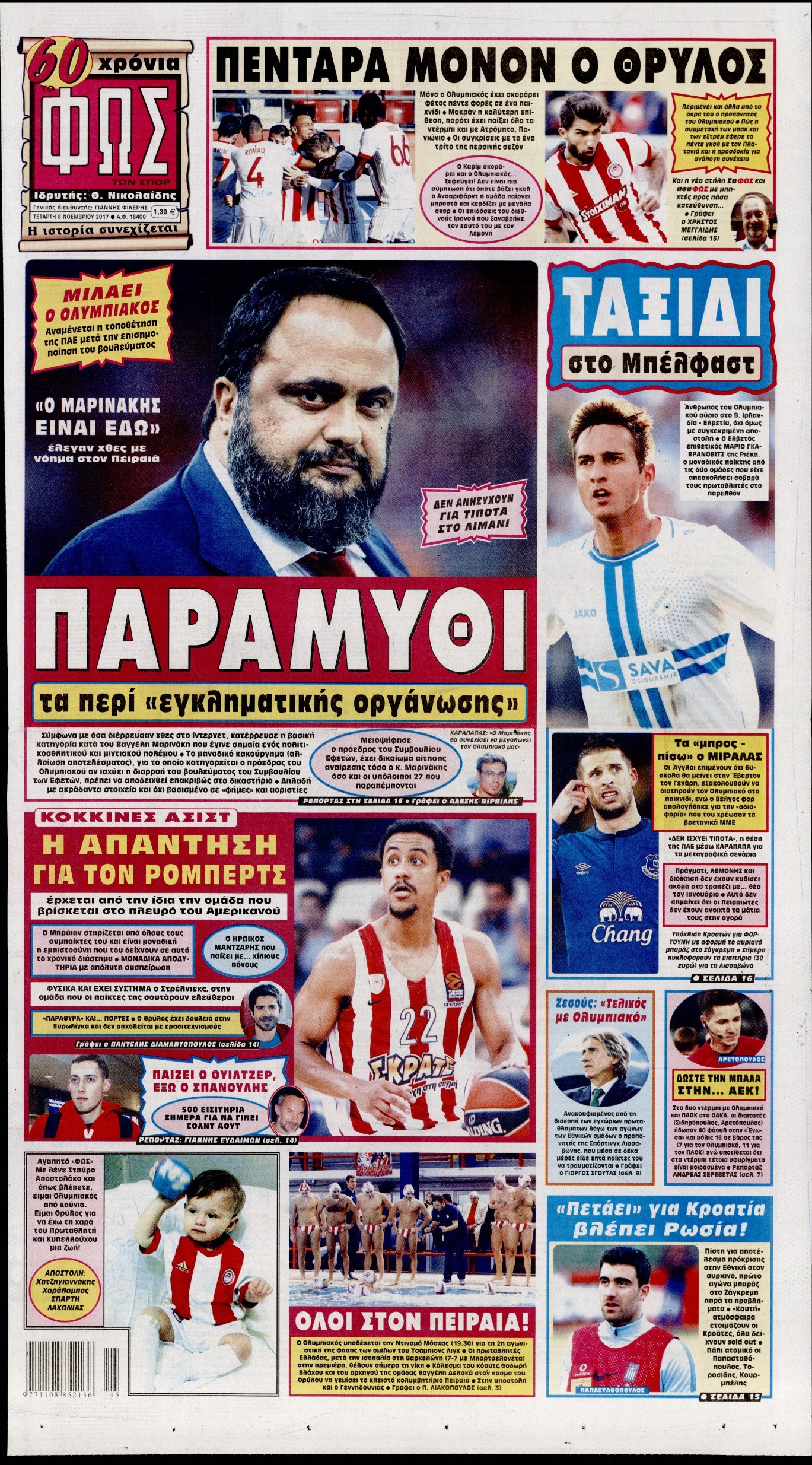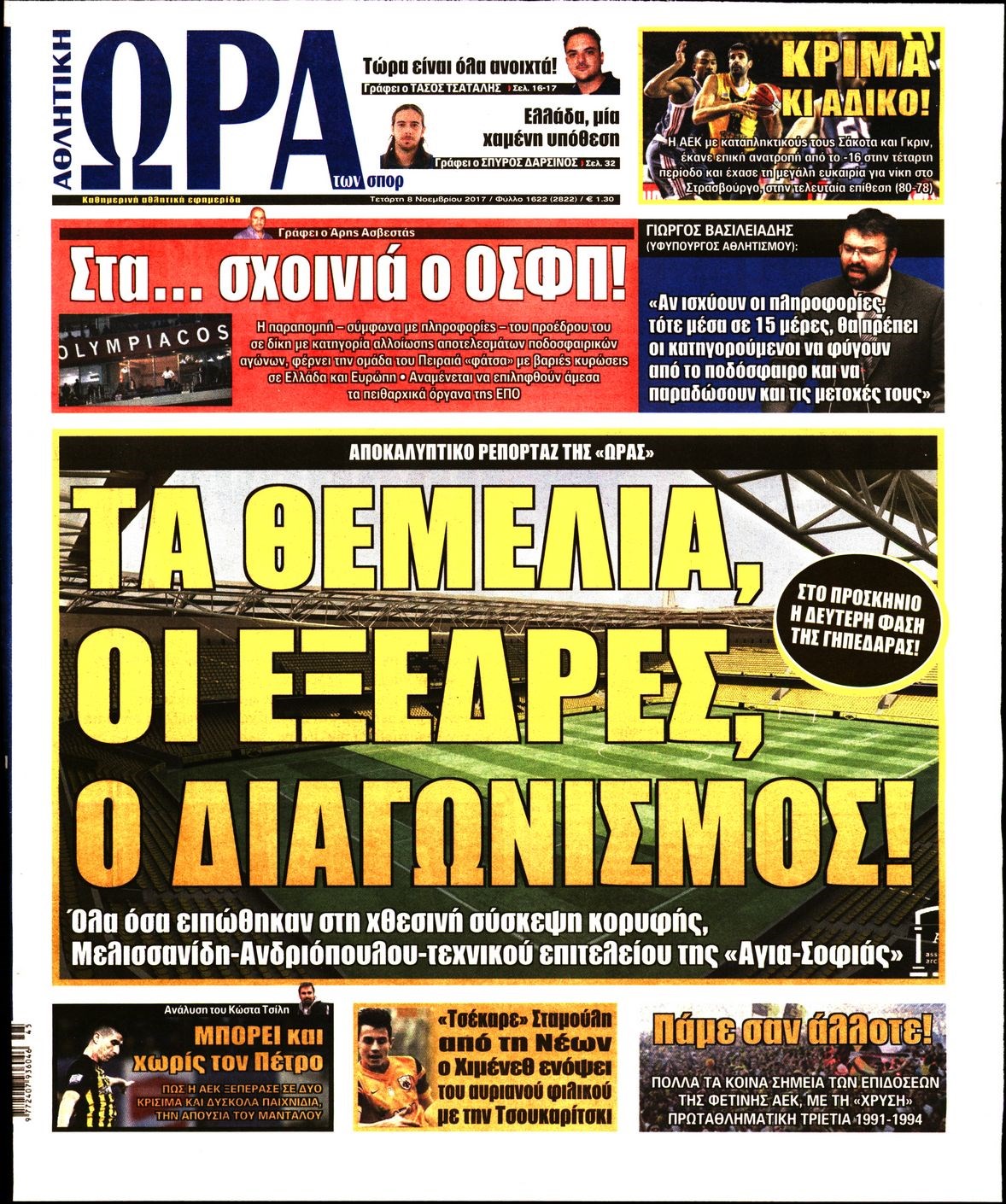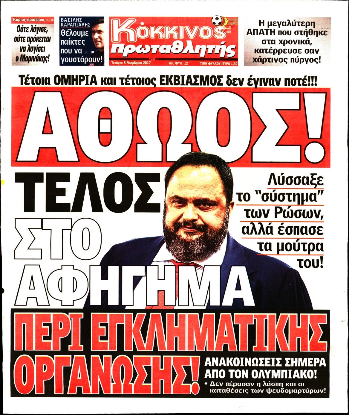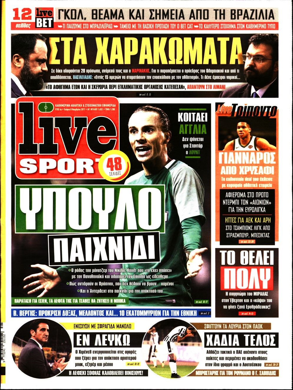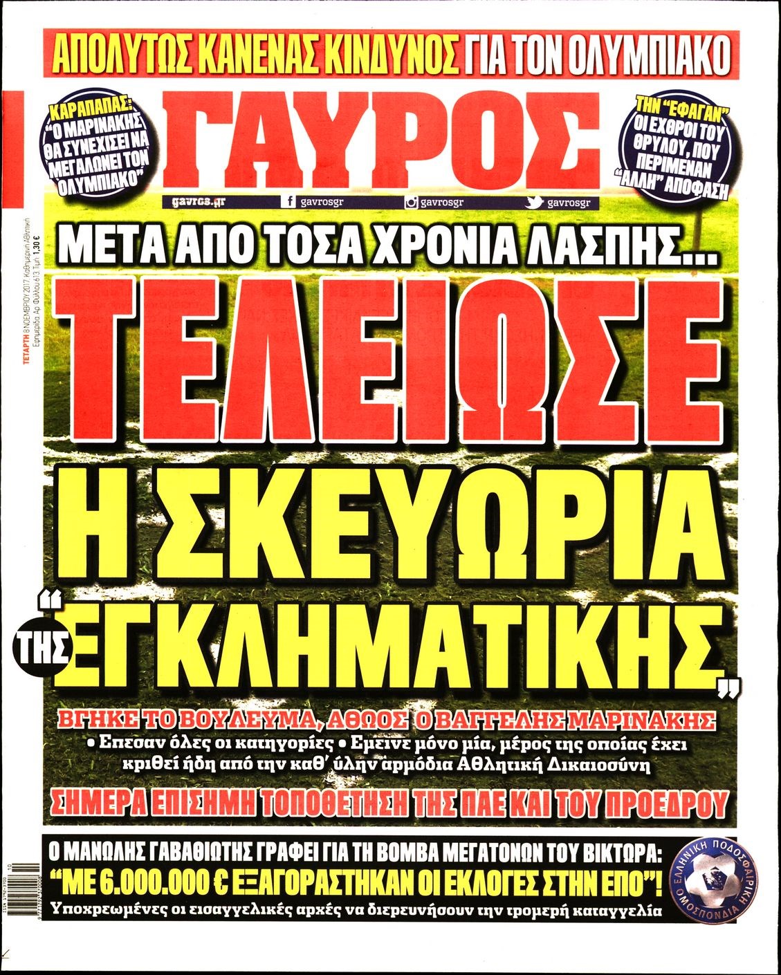 Οι αθλητικές εφημερίδες 8/11/2017 Enikos Newsroom 07:46, Τετάρτη 08 Νοεμβρίου 2017 Media Διαβάστε τα σημερινά πρωτοσέλιδα των αθλητικών εφημερίδων: ΑΘΛΗΤΙΚΕΣ ΕΦΗΜΕΡΙΔΕΣ ΠΡΩΤΟΣΕΛΙΔΑ Μοιράσου το: σχολίασε κι εσύ (0 σχόλια) Ακολουθήστε το enikos.gr στο Google News και μάθετε πρώτοι όλες τις ειδήσεις Δείτε όλες τις τελευταίες ειδήσεις από την Ελλάδα και τον Κόσμο στο enikos.gr Ειδήσεις Ροή Ειδήσεων 11 λεπτά πριν Χριστούγεννα στα μπλόκα: Επιμένουν στις κινητοποιήσεις τους οι αγρότες – Ανοίγουν τα διόδια το Σαββατοκύριακο 40 λεπτά πριν Τραμπ: Δεν αποκλείει την πιθανότητα ενός πολέμου στη Βενεζουέλα – «Ο Μαδούρο ξέρει καλύτερα από τον καθένα τι ακριβώς θέλω» 34 λεπτά πριν Ουκρανία: Η άνευ προηγουμένου επίθεση σε ρωσικό τάνκερ στη Μεσόγειο και το μήνυμα προς στον Πούτιν – Το «μακρύ χέρι» του Κιέβου 3 ώρες πριν Πούτιν: «Ναι, είμαι ερωτευμένος» – Βίντεο από τη σπάνια προσωπική παραδοχή του 1 ώρα πριν Συνεχίζει να προκαλεί ο Μίτσκοσκι: «Για μένα το όνομα Μακεδονία είναι ιερό» 2 ώρες πριν Αριθμολογία: Οι άνθρωποι που έχουν γεννηθεί αυτές τις 4 ημερομηνίες, συχνά παρεξηγούνται – «Η καλοσύνη τους κρύβει τεράστια δύναμη» 4 ώρες πριν Μήπως έχετε χάσει τον εαυτό σας στη σχέση σας; 7 «αθόρυβες» υποχωρήσεις που μάλλον κάνατε, χωρίς να το συνειδητοποιήσετε 3 ώρες πριν Ξεχάστε το καθάρισμα το Σαββατοκύριακο: Ο «κανόνας των 20 λεπτών» που θα σας λύσει τα χέρια 49 λεπτά πριν Ύπνος: Μια κρυφή κατάσταση του εγκεφάλου πριν από τον ύπνο μπορεί να είναι το “κλειδί” για υψηλή ευφυΐα και δημιουργικότητα 7 λεπτά πριν Γιώργος Γιαννόπουλος για “Το σόι σου”: “Είναι ευτυχία και ευλογία αυτή η σειρά” 11 λεπτά πριν Χριστούγεννα στα μπλόκα: Επιμένουν στις κινητοποιήσεις τους οι αγρότες – Ανοίγουν τα διόδια το Σαββατοκύριακο 23 λεπτά πριν Χάρι και Μέγκαν: Η σπάνια οικογενειακή φωτογραφία με τον Άρτσι και τη Λίλιμπετ – Τι σχεδιάζουν για τα Χριστούγεννα 30 λεπτά πριν Βασίλης Καρράς: «Είναι πάντα δίπλα μου, δεν έφυγε…», λέει ο αδελφός του 34 λεπτά πριν Ουκρανία: Η άνευ προηγουμένου επίθεση σε ρωσικό τάνκερ στη Μεσόγειο και το μήνυμα προς στον Πούτιν – Το «μακρύ χέρι» του Κιέβου ENIKOS NETWORK Το ΕΚΑΒ τιμήθηκε από την Ακαδημία Αθηνών για τα 40 χρόνια προσφοράς του Έχετε πραγματικά μεγάλη καρδιά; 10 χαρακτηριστικά όσων έχουν καλοσύνη Πλήρης επάρκεια προϊόντων στις λαϊκές της Αττικής, παρά τις αγροτικές κινητοποιήσεις – Τι απαντούν οι πωλητές ΑΑΔΕ: Νέες αναβαθμίσεις στο Ψηφιακό Πελατολόγιο και την εφαρμογή myDATAapp – Τι πρέπει να γνωρίζετε Χαρτογραφώντας το «σημείο χωρίς επιστροφή»: Για πρώτη φορά αποκαλύπτεται με λεπτομέρεια το ακανθώδες όριο της ατμόσφαιρας τ... Η Google καταργεί τη λειτουργία «dark web report» – Πώς θα μπορούν οι χρήστες να διαγράφουν τα δεδομένα τους περισσότερα 22:42 , Παρασκευή 19 Δεκεμβρίου 2025 Γιώργος Γιαννόπουλος για “Το σόι σου”: “Είναι ευτυχία και ευλογία αυτή η σειρά” «Είναι ευτυχία και ευλογία η συγκυρία αυτής της σειράς», θα πει ο Γιώργος Γιαννόπουλος -ο αγαπ... 20:37 , Παρασκευή 19 Δεκεμβρίου 2025 Don’t Forget The Lyrics: Η Έλλη Κοκκίνου υποδέχεται 4 παίκτες που θα κάνουν τα πάντα για να μη χάσουν ούτε… μισή λέξη από τους στίχους Το «Don’t Forget The Lyrics» επιστρέφει απόψε, Παρασκευή 19 Δεκεμβρίου, στις 21:00 με νέο επει... 19:31 , Παρασκευή 19 Δεκεμβρίου 2025 GNTM: Απόψε ο μεγάλος τελικός για τους 4 φιναλίστ Έπειτα από μήνες γεμάτους μόδα, δημιουργία και έντονες αναμετρήσεις, το GNTM 2025 κορυφώνεται,... 18:11 , Παρασκευή 19 Δεκεμβρίου 2025 Το σόι σου: Ο 