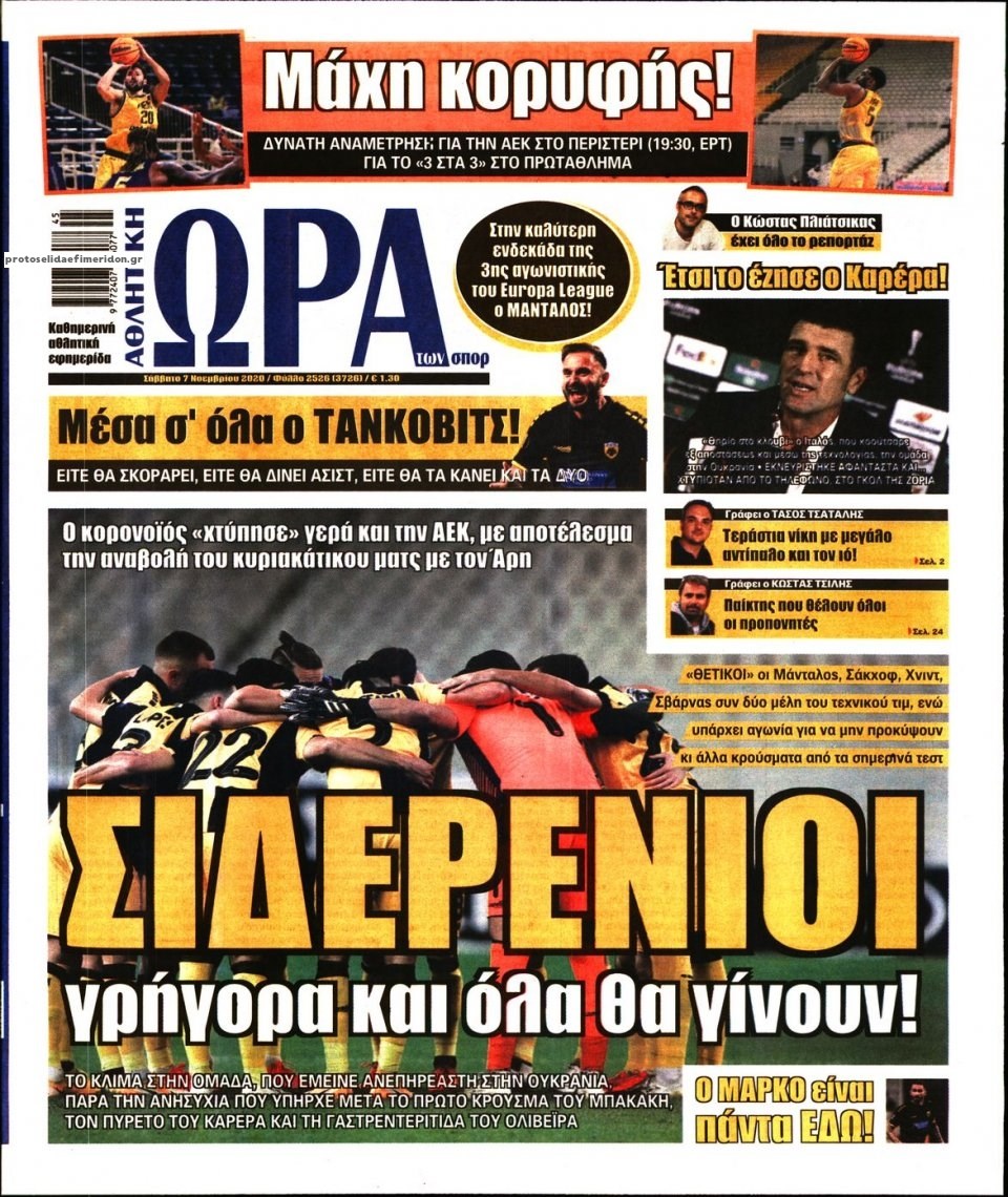 Οι αθλητικές εφημερίδες 8/11/2020 Σήφης Γαρυφαλάκης 07:33, Κυριακή 08 Νοεμβρίου 2020 Media Διαβάστε τα πρωτοσέλιδα των αθλητικών εφημερίδων… ΑΘΛΗΤΙΚΕΣ ΕΦΗΜΕΡΙΔΕΣ ΕΦΗΜΕΡΙΔΕΣ ΠΡΩΤΟΣΕΛΙΔΑ ΠΡΩΤΟΣΕΛΙΔΑ ΕΦΗΜΕΡΙΔΩΝ Μοιράσου το: σχολίασε κι εσύ (0 σχόλια) Ακολουθήστε το enikos.gr στο Google News και μάθετε πρώτοι όλες τις ειδήσεις Δείτε όλες τις τελευταίες ειδήσεις από την Ελλάδα και τον Κόσμο στο enikos.gr Ειδήσεις Ροή Ειδήσεων 37 λεπτά πριν ΣΥΡΙΖΑ: Διέγραψε τον ευρωβουλευτή Νίκο Παππά μετά την μήνυση δημοσιογράφου για ξυλοδαρμό 2 ώρες πριν Πώς στήθηκε η επιχείρηση «Ίπαλλος» που οδήγησε στη σύλληψη του «Έλληνα Εσκομπάρ» – «Ο πόλεμος ενάντια στους εμπόρους ναρκωτικών θα συνεχιστεί» 1 ώρα πριν Δίκη Χρυσής Αυγής: Την ενοχή και των 42 κατηγορουμένων ζητά η εισαγγελέας 2 ώρες πριν Κυψέλη: Στη φυλακή η 16χρονη που μαχαίρωσε συμμαθήτριά της 4 ώρες πριν Αμοργός: «Θα προσπαθήσω να το κάνω κάθε μέρα» – Ποιος είναι ο αγρότης που έστησε μόνος του το πρώτο μπλόκο στο νησί 2 ώρες πριν Τα 3 ζώδια που θα δουν τη ζωή τους να αλλάζει ριζικά το 2026 – «Όλα γίνονται καλύτερα σταδιακά» 7 ώρες πριν «Δεν είχα κλάψει από τότε που διαγνώστηκα με καρκίνο, ώσπου ένα τηλεφώνημα με έκανε να λυγίσω» – Η συγκλονιστική εξομολόγηση ενός άνδρα 3 ώρες πριν Ο σπάνιος σεισμός που έλυσε τα χέρια των επιστημόνων – Αποκάλυψε ακριβώς όσα αναζητούσαν 8 ώρες πριν 20 χρόνια τα Χριστούγεννα ξεκινούν στα Public με μεγάλη ποικιλία σε δώρα! 3 λεπτά πριν Βασιλιάς Κάρολος: Η κίνηση απομόνωσης προς τον αδελφό του Άντριου, στο γεύμα των Χριστουγέννων 8 λεπτά πριν Παύλος Μαρινάκης για Νίκο Παππά: Έπρεπε να χειροδικήσει για να αναγκαστεί ο ΣΥΡΙΖΑ να τον διαγράψει 15 λεπτά πριν Ελένη Βασάρα: Ανοιχτό το ενδεχόμενο καθαίρεσης της Καρυστιανού από την προεδρία του Συλλόγου Θυμάτων Τεμπών – Η ανάρτηση του Δημήτρη Πλακιά 20 λεπτά πριν Μαργαρίτα Θεοδωράκη για Γιώργο Χατζιδάκι: Προσβλητικό το εξώδικο – Ο Μίκης έγραψε «απαγορεύεται το απαγορεύεται» 26 λεπτά πριν Ρόδος: Ανήλικος που βρισκόταν σε σχολική εκδρομή μεταφέρθηκε μεθυσμένος στο νοσοκομείο – 2 συλλήψεις ENIKOS NETWORK Γιατί αναζητούμε τα Χριστούγεννα όλο και νωρίτερα; Ποιοι οι ψυχολογικοί και οι συναισθηματικοί λόγοι Σοβαροί κίνδυνοι από τη λάθος χορήγηση φαρμάκου για τις αιμορραγίες-Συστάσεις προς τους γιατρούς Δάνεια σε ελβετικό φράγκο: Αύριο η κατάθεση της τροπολογίας στη Βουλή – Όλες οι λεπτομέρειες Επίδομα παιδιού: Πότε θα δοθεί η τελευταία δόση για το 2025 από τον ΟΠΕΚΑ και τι πρέπει να γνωρίζετε Χαρτογραφώντας το «σημείο χωρίς επιστροφή»: Για πρώτη φορά αποκαλύπτεται με λεπτομέρεια το ακανθώδες όριο της ατμόσφαιρας τ... Η Google καταργεί τη λειτουργία «dark web report» – Πώς θα μπορούν οι χρήστες να διαγράφουν τα δεδομένα τους περισσότερα 12:35 , Τετάρτη 17 Δεκεμβρίου 2025 Μίρκα Παπακωνσταντίνου: «Δεν ήμουν αισιόδοξη για τα νούμερα – Είμαι ρεαλίστρια» Στα γυρίσματα του εορταστικού επεισοδίου της αγαπημένης σειράς “Το Σόι Σου”, βρέθηκε η κάμερα ... 12:12 , Τετάρτη 17 Δεκεμβρίου 2025 Ακούστε την εκπομπή του Νίκου Χατζηνικολάου 17/12/2025 Ακούστε την εκπομπή του Νίκου Χατζηνικολάου στον ραδιοφωνικό σταθμό RealFm 97,8, την Τετάρτη 1... 11:35 , Τετάρτη 17 Δεκεμβρίου 2025 Home Alone: Το σπίτι της ταινίας θα ανακαινιστεί – Επιστροφή στην αισθητική της δεκαετίας του ’90 Οι νέοι ιδιοκτήτες του πραγματικού σπιτιού που παρουσιάζεται στην κλασική ταινία του 1990 «Hom... 11:25 , Τετάρτη 17 Δεκεμβρίου 2025 Grand Hotel: Απόψε το τελευταίο επεισό