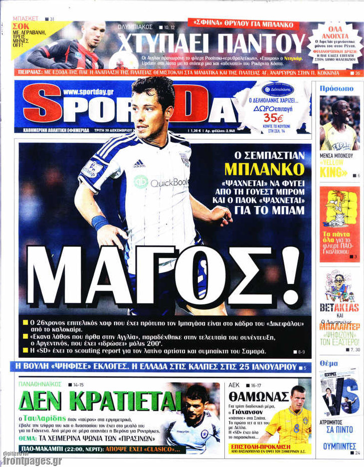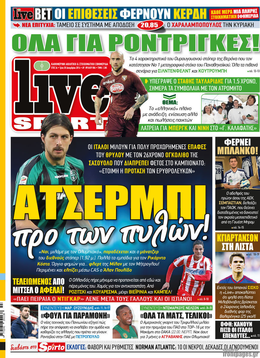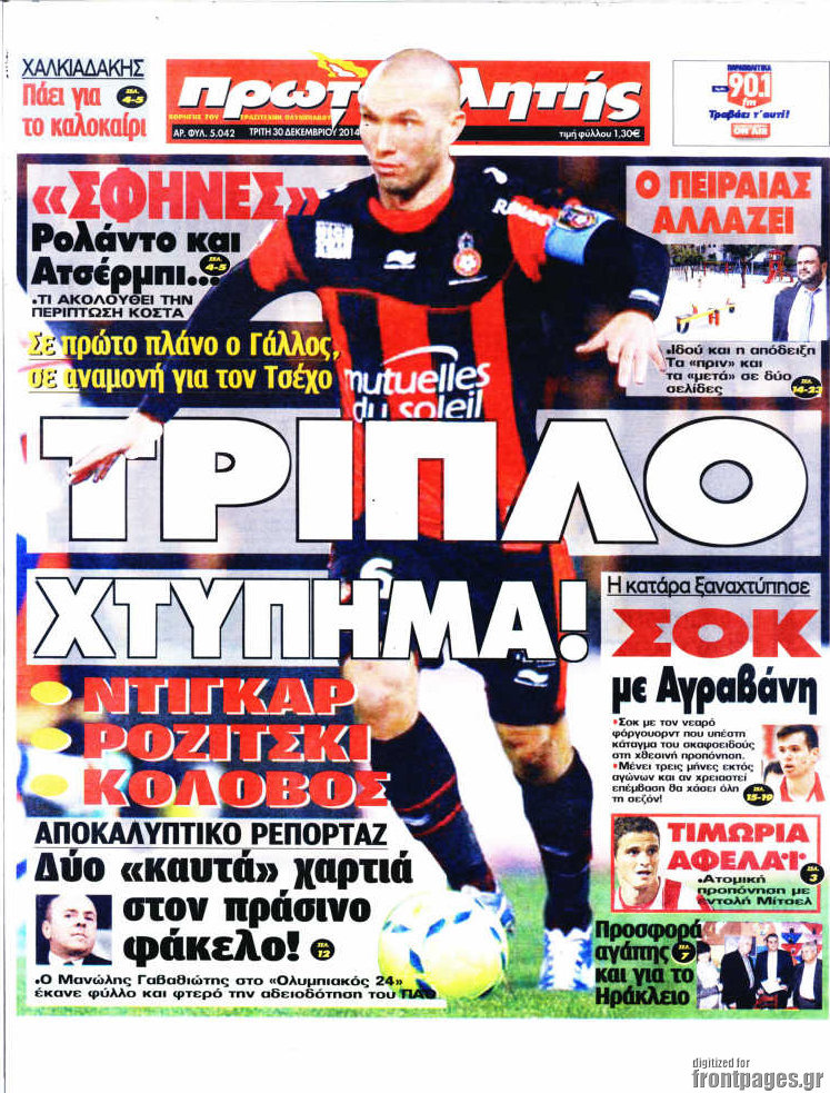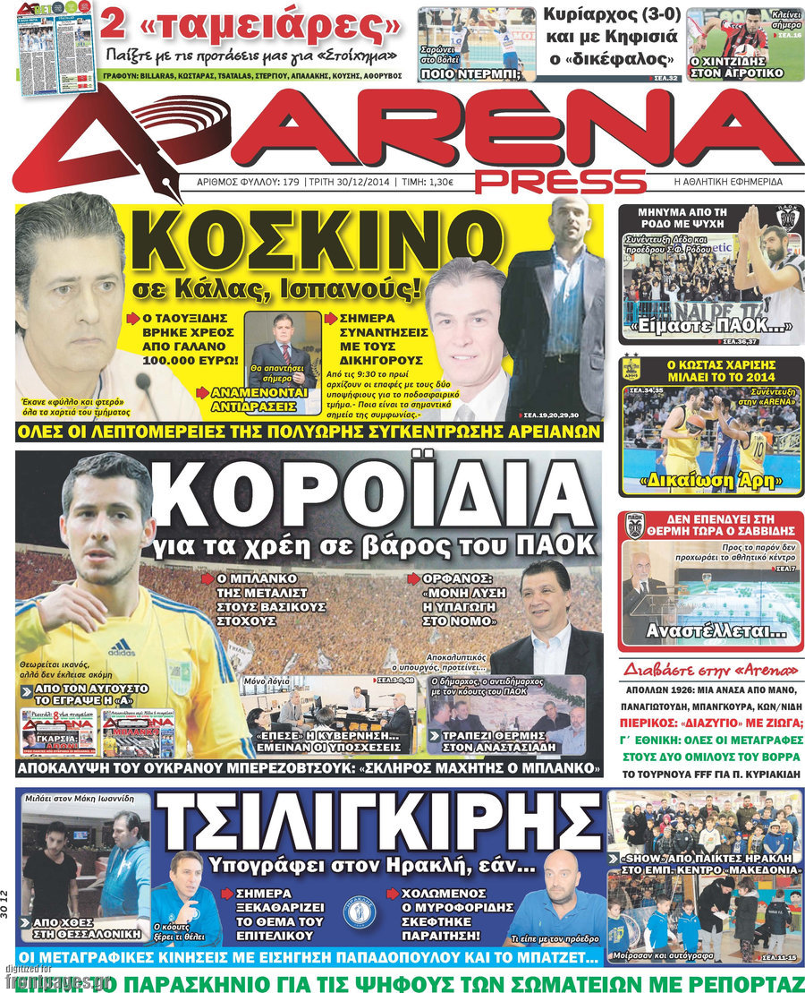 Οι αθλητικές εφημερίδες Enikos Newsroom 07:55, Τρίτη 30 Δεκεμβρίου 2014 Media Διαβάστε τα πρωτοσέλιδα των αθλητικών εφημερίδων: ΑΘΛΗΤΙΚΕΣ ΕΦΗΜΕΡΙΔΕΣ ΕΦΗΜΕΡΙΔΕΣ ΠΡΩΤΟΣΕΛΙΔΑ Μοιράσου το: σχολίασε κι εσύ (0 σχόλια) Ακολουθήστε το enikos.gr στο Google News και μάθετε πρώτοι όλες τις ειδήσεις Δείτε όλες τις τελευταίες ειδήσεις από την Ελλάδα και τον Κόσμο στο enikos.gr Ειδήσεις Ροή Ειδήσεων 5 ώρες πριν Εκτός ευρωομάδας ΣΥΡΙΖΑ ο Νίκος Παππάς μετά την επίθεση στον δημοσιογράφο Νίκο Γιαννόπουλο – Η μήνυση και οι νέες δηλώσεις 5 ώρες πριν «Αγριεύουν» οι αγρότες: «Δεν συντρέχει λόγος συνάντησης με τον πρωθυπουργό» – Ώρα αποφάσεων στη σύσκεψη της Πέμπτης 5 ώρες πριν Κυψέλη: Χωρίς την οικογένειά της δίπλα της απολογήθηκε η 16χρονη – «Της είχε επιτεθεί κάποιος για να την βιάσει, φοβήθηκε και κυκλοφορούσε με μαχαίρι» 5 ώρες πριν Politico: Το πρόβλημα της Ευρώπης δεν είναι το Βέλγιο αλλά ο Ντόναλντ Τραμπ 7 ώρες πριν Αλεξανδρούπολη: Πολυοργανική ανεπάρκεια λόγω υποσιτισμού η αιτία θανάτου του 3χρονου αγοριού 5 ώρες πριν Μυστήριο με τεράστιες κυκλικές πέτρες 200 κιλών – Ανακαλύφθηκαν τυχαία κατά τη διάρκεια οδικών έργων και κανείς δεν ξέρει από πού προέρχονται 6 ώρες πριν Ύπνος: Ειδικός εξηγεί τον πραγματικό λόγο που ξυπνάτε στις 4 τα ξημερώματα – Ο ρόλος των ορμονών και του κιρκάδιου ρυθμού 7 ώρες πριν Αριθμολογία: Οι άνθρωποι που έχουν γεννηθεί αυτές τις 4 ημερομηνίες, είναι τρυφεροί και αγαπούν ανιδιοτελώς 19 ώρες πριν 20 χρόνια τα Χριστούγεννα ξεκινούν στα Public με μεγάλη ποικιλία σε δώρα! 8 λεπτά πριν Αλ Τσαντίρι Νιουζ: «Λύγισε» ο Δημήτρης Λάλος για τον Δημήτρη Ήμελλο – «Τον μνημονεύω, να ‘ναι καλά εκεί που είναι» 23 λεπτά πριν GNTM: Με δάκρυα τον αποχαιρέτησε η Ηλιάνα Παπαγεωργίου πριν από τον ημιτελικό – «Αισθάνομαι πολύ παράξενα» 37 λεπτά πριν Αμερικανικά στρατεύματα στον Ισημερινό για «προσωρινή» επιχείρηση κατά των ναρκωτικών 53 λεπτά πριν Βραζιλία: Το Κογκρέσο ενέκρινε σχέδιο νόμου για τη μείωση της ποινής του πρώην προέδρου Μπολσονάρου 1 ώρα πριν Ένταση στο περιφερειακό συμβούλιο Δυτικής Μακεδονίας: Φωνές, σπρωξιές και διακοπή – Δείτε βίντεο ENIKOS NETWORK Αϋπνία: Το κόλπο που θα σας βοηθήσει να κοιμηθείτε απόψε – Είναι απλό και έχει αποτέλεσμα 2,6 εκατομμύρια πολίτες έχουν ήδη εμβολιαστεί κατά της γρίπης ΕΛΣΤΑΤ: Τι δείχνουν τα νέα στοιχεία για τις ηλεκτρονικές παραγγελίες των επιχειρήσεων ΚΕΠΕ: Οι 3 διακριτές συμβολές των ΜμΕ και της μεταποίησης στην ελληνική οικονομία Χαρτογραφώντας το «σημείο χωρίς επιστροφή»: Για πρώτη φορά αποκαλύπτεται με λεπτομέρεια το ακανθώδες όριο της ατμόσφαιρας τ... Η Google καταργεί τη λειτουργία «dark web report» – Πώς θα μπορούν οι χρήστες να διαγράφουν τα δεδομένα τους περισσότερα 02:30 , Πέμπτη 18 Δεκεμβρίου 2025 Αλ Τσαντίρι Νιουζ: Η κόρη της Πάολα στο κοινό – Η ατάκα Λαζόπουλου που την έκανε να «κοκκινήσει» Γιορτινή διάθεση και ευχάριστες στιγμές γέμισε η αποψινή, τελευταία για το 2025, εκπομπή του «... 22:24 , Τετάρτη 17 Δεκεμβρίου 2025 Το Σπίτι Δίπλα Στο Ποτάμι: Σε κίνδυνο η υγεία του Απόστολου – Τι θα δούμε απόψε “Το Σπίτι Δίπλα στο Ποτάμι” ξετυλίγει το νήμα της ζωής των πέντε αδελφών με καταισ... 21:14 , Τετάρτη 17 Δεκεμβρίου 2025 Παιχνίδια Εκδίκησης: Θα καταφέρει ο Χρήστος να κλονίσει την εμπιστοσύνη της Μάγιας απέναντι στον Άγη; Τα «Παιχνίδια Εκδίκησης» έρχονται απόψε στις 22:30, στον Αντ1, με το τελευταίο επεισόδιο της χ... 20:57 , Τετάρτη 17 Δεκεμβρίου 2025 Άγιος Έρωτας: Η Χλόη καταθ