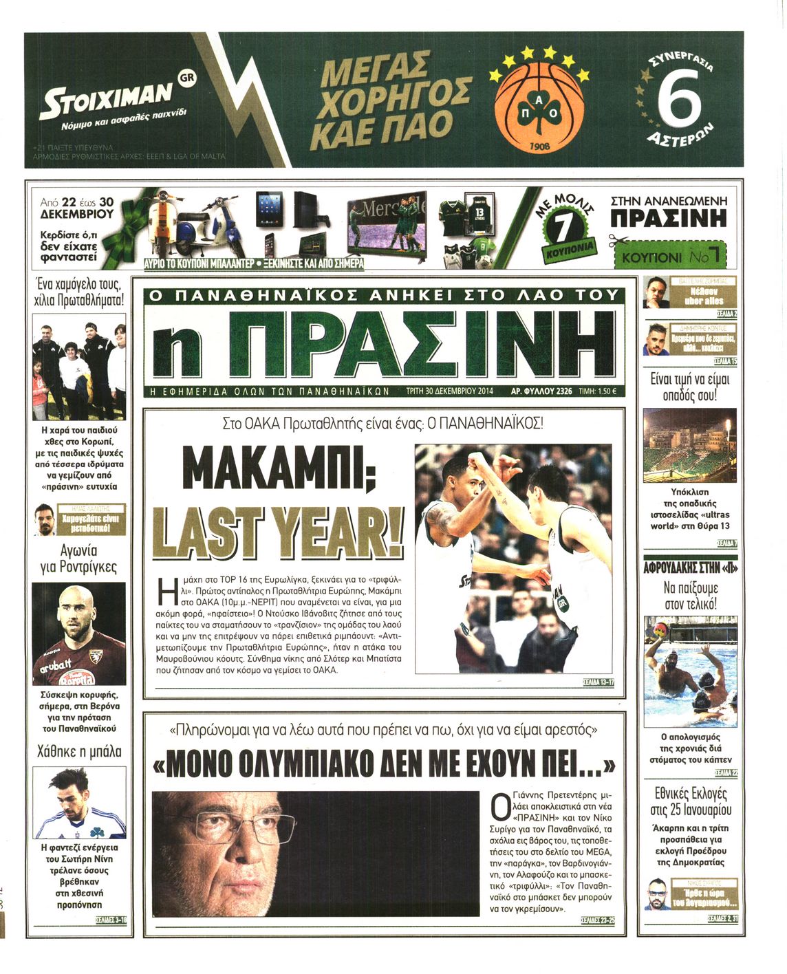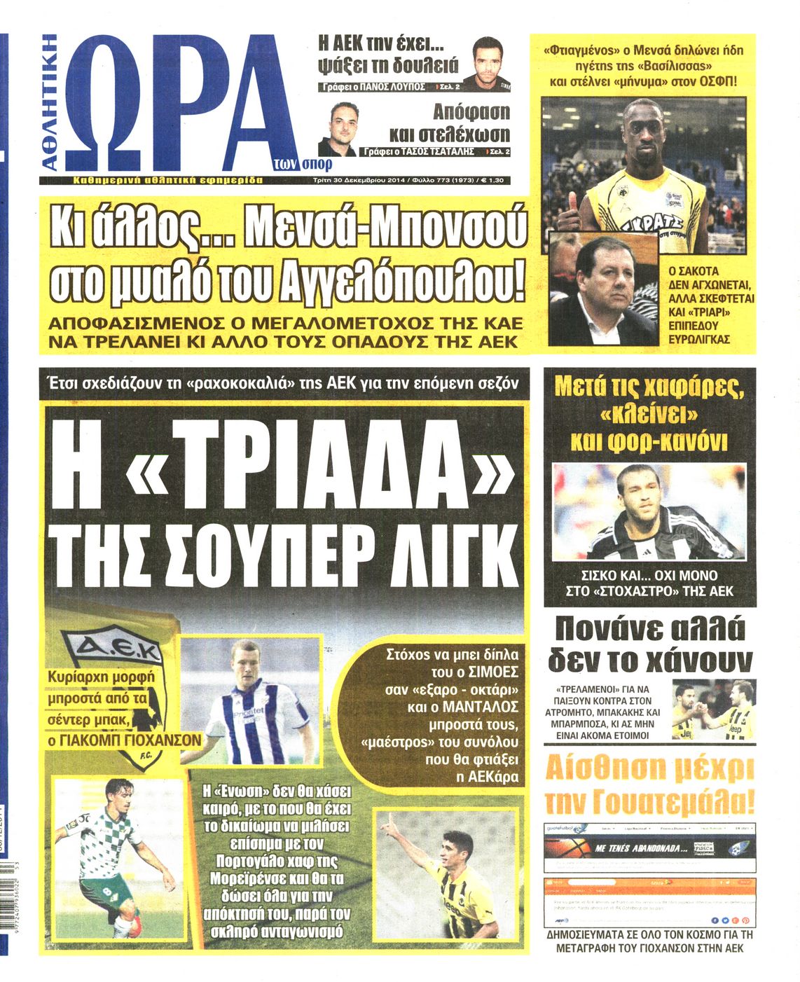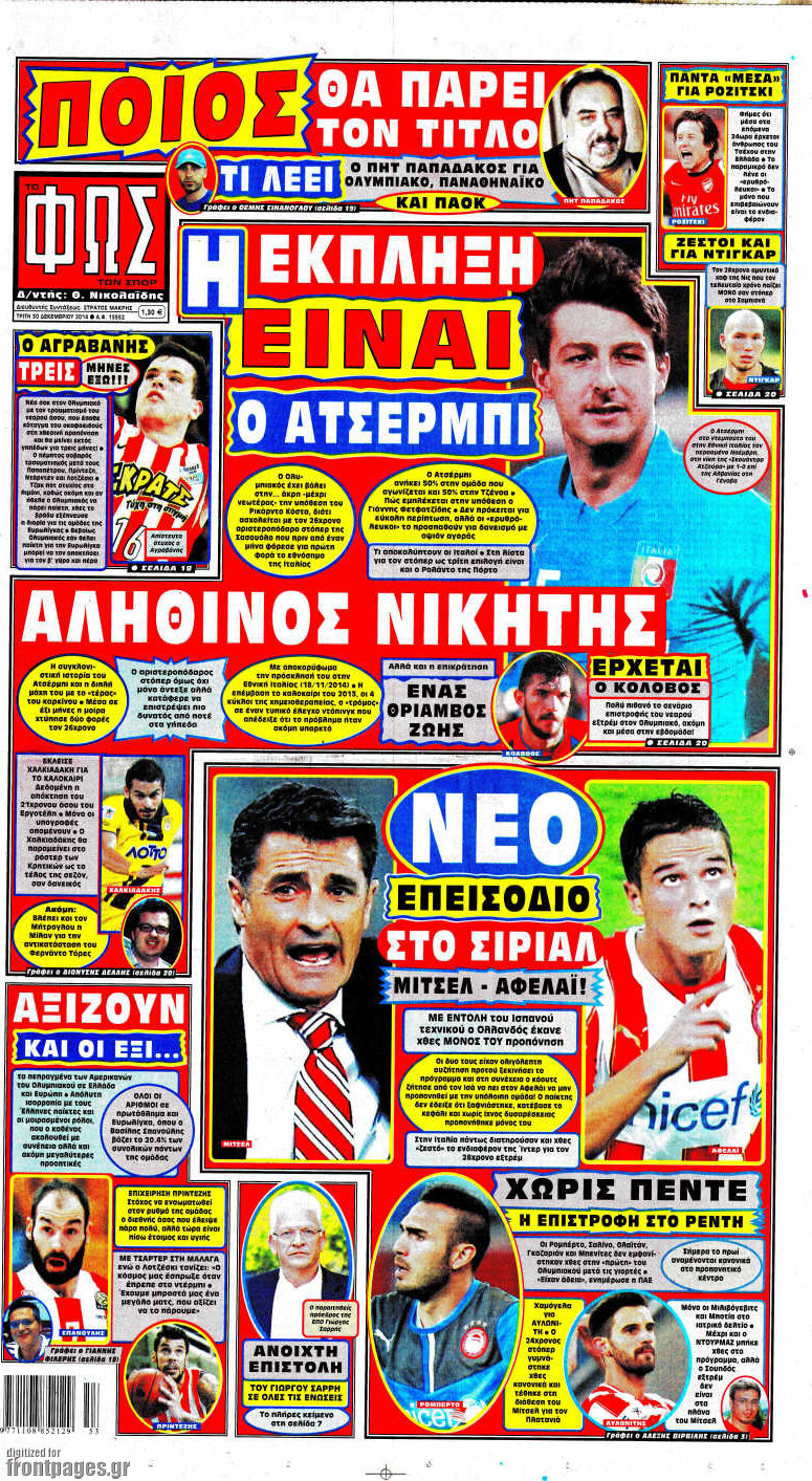Οι αθλητικές εφημερίδες Enikos Newsroom 07:55, Τρίτη 30 Δεκεμβρίου 2014 Media Διαβάστε τα πρωτοσέλιδα των αθλητικών εφημερίδων: ΑΘΛΗΤΙΚΕΣ ΕΦΗΜΕΡΙΔΕΣ ΕΦΗΜΕΡΙΔΕΣ ΠΡΩΤΟΣΕΛΙΔΑ Μοιράσου το: σχολίασε κι εσύ (0 σχόλια) Ακολουθήστε το enikos.gr στο Google News και μάθετε πρώτοι όλες τις ειδήσεις Δείτε όλες τις τελευταίες ειδήσεις από την Ελλάδα και τον Κόσμο στο enikos.gr Ειδήσεις Ροή Ειδήσεων 5 ώρες πριν Εκτός ευρωομάδας ΣΥΡΙΖΑ ο Νίκος Παππάς μετά την επίθεση στον δημοσιογράφο Νίκο Γιαννόπουλο – Η μήνυση και οι νέες δηλώσεις 5 ώρες πριν «Αγριεύουν» οι αγρότες: «Δεν συντρέχει λόγος συνάντησης με τον πρωθυπουργό» – Ώρα αποφάσεων στη σύσκεψη της Πέμπτης 5 ώρες πριν Κυψέλη: Χωρίς την οικογένειά της δίπλα της απολογήθηκε η 16χρονη – «Της είχε επιτεθεί κάποιος για να την βιάσει, φοβήθηκε και κυκλοφορούσε με μαχαίρι» 5 ώρες πριν Politico: Το πρόβλημα της Ευρώπης δεν είναι το Βέλγιο αλλά ο Ντόναλντ Τραμπ 7 ώρες πριν Αλεξανδρούπολη: Πολυοργανική ανεπάρκεια λόγω υποσιτισμού η αιτία θανάτου του 3χρονου αγοριού 5 ώρες πριν Μυστήριο με τεράστιες κυκλικές πέτρες 200 κιλών – Ανακαλύφθηκαν τυχαία κατά τη διάρκεια οδικών έργων και κανείς δεν ξέρει από πού προέρχονται 6 ώρες πριν Ύπνος: Ειδικός εξηγεί τον πραγματικό λόγο που ξυπνάτε στις 4 τα ξημερώματα – Ο ρόλος των ορμονών και του κιρκάδιου ρυθμού 7 ώρες πριν Αριθμολογία: Οι άνθρωποι που έχουν γεννηθεί αυτές τις 4 ημερομηνίες, είναι τρυφεροί και αγαπούν ανιδιοτελώς 19 ώρες πριν 20 χρόνια τα Χριστούγεννα ξεκινούν στα Public με μεγάλη ποικιλία σε δώρα! 8 λεπτά πριν Αλ Τσαντίρι Νιουζ: «Λύγισε» ο Δημήτρης Λάλος για τον Δημήτρη Ήμελλο – «Τον μνημονεύω, να ‘ναι καλά εκεί που είναι» 23 λεπτά πριν GNTM: Με δάκρυα τον αποχαιρέτησε η Ηλιάνα Παπαγεωργίου πριν από τον ημιτελικό – «Αισθάνομαι πολύ παράξενα» 37 λεπτά πριν Αμερικανικά στρατεύματα στον Ισημερινό για «προσωρινή» επιχείρηση κατά των ναρκωτικών 53 λεπτά πριν Βραζιλία: Το Κογκρέσο ενέκρινε σχέδιο νόμου για τη μείωση της ποινής του πρώην προέδρου Μπολσονάρου 1 ώρα πριν Ένταση στο περιφερειακό συμβούλιο Δυτικής Μακεδονίας: Φωνές, σπρωξιές και διακοπή – Δείτε βίντεο ENIKOS NETWORK Αϋπνία: Το κόλπο που θα σας βοηθήσει να κοιμηθείτε απόψε – Είναι απλό και έχει αποτέλεσμα 2,6 εκατομμύρια πολίτες έχουν ήδη εμβολιαστεί κατά της γρίπης ΕΛΣΤΑΤ: Τι δείχνουν τα νέα στοιχεία για τις ηλεκτρονικές παραγγελίες των επιχειρήσεων ΚΕΠΕ: Οι 3 διακριτές συμβολές των ΜμΕ και της μεταποίησης στην ελληνική οικονομία Χαρτογραφώντας το «σημείο χωρίς επιστροφή»: Για πρώτη φορά αποκαλύπτεται με λεπτομέρεια το ακανθώδες όριο της ατμόσφαιρας τ... Η Google καταργεί τη λειτουργία «dark web report» – Πώς θα μπορούν οι χρήστες να διαγράφουν τα δεδομένα τους περισσότερα 02:30 , Πέμπτη 18 Δεκεμβρίου 2025 Αλ Τσαντίρι Νιουζ: Η κόρη της Πάολα στο κοινό – Η ατάκα Λαζόπουλου που την έκανε να «κοκκινήσει» Γιορτινή διάθεση και ευχάριστες στιγμές γέμισε η αποψινή, τελευταία για το 2025, εκπομπή του «... 22:24 , Τετάρτη 17 Δεκεμβρίου 2025 Το Σπίτι Δίπλα Στο Ποτάμι: Σε κίνδυνο η υγεία του Απόστολου – Τι θα δούμε απόψε “Το Σπίτι Δίπλα στο Ποτάμι” ξετυλίγει το νήμα της ζωής των πέντε αδελφών με καταισ... 21:14 , Τετάρτη 17 Δεκεμβρίου 2025 Παιχνίδια Εκδίκησης: Θα καταφέρει ο Χρήστος να κλονίσει την εμπιστοσύνη της Μάγιας απέναντι στον Άγη; Τα «Παιχνίδια Εκδίκησης» έρχονται απόψε στις 22:30, στον Αντ1, με το τελευταίο επεισόδιο της χ... 20:57 , Τετάρτη 17 Δεκεμβρίου 2025 Άγιος Έρωτας: Η Χλόη καταθ