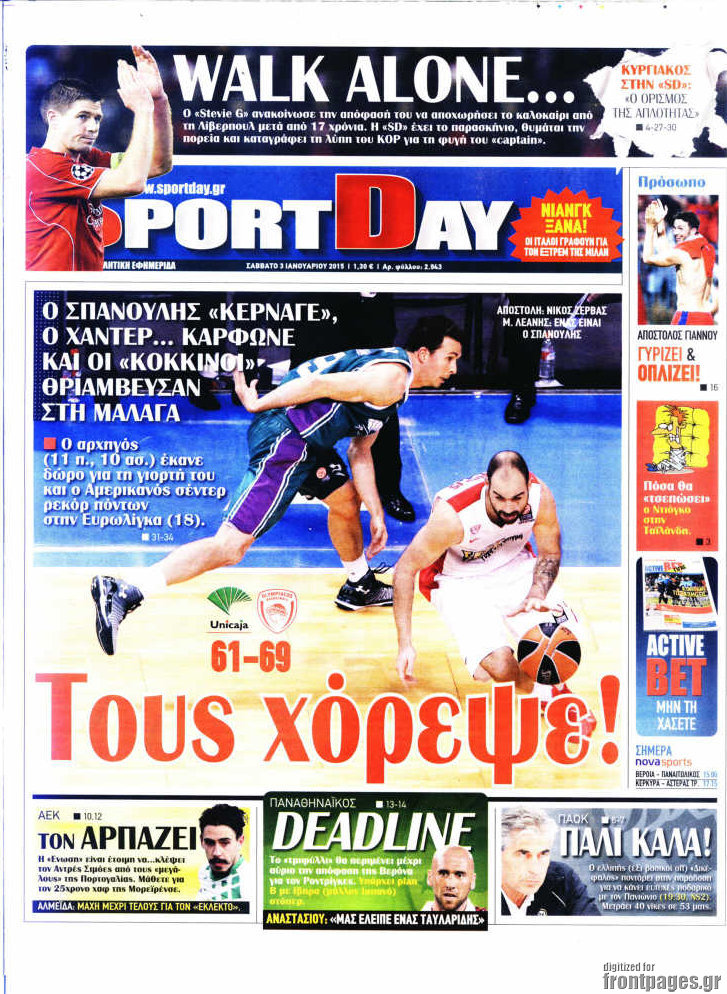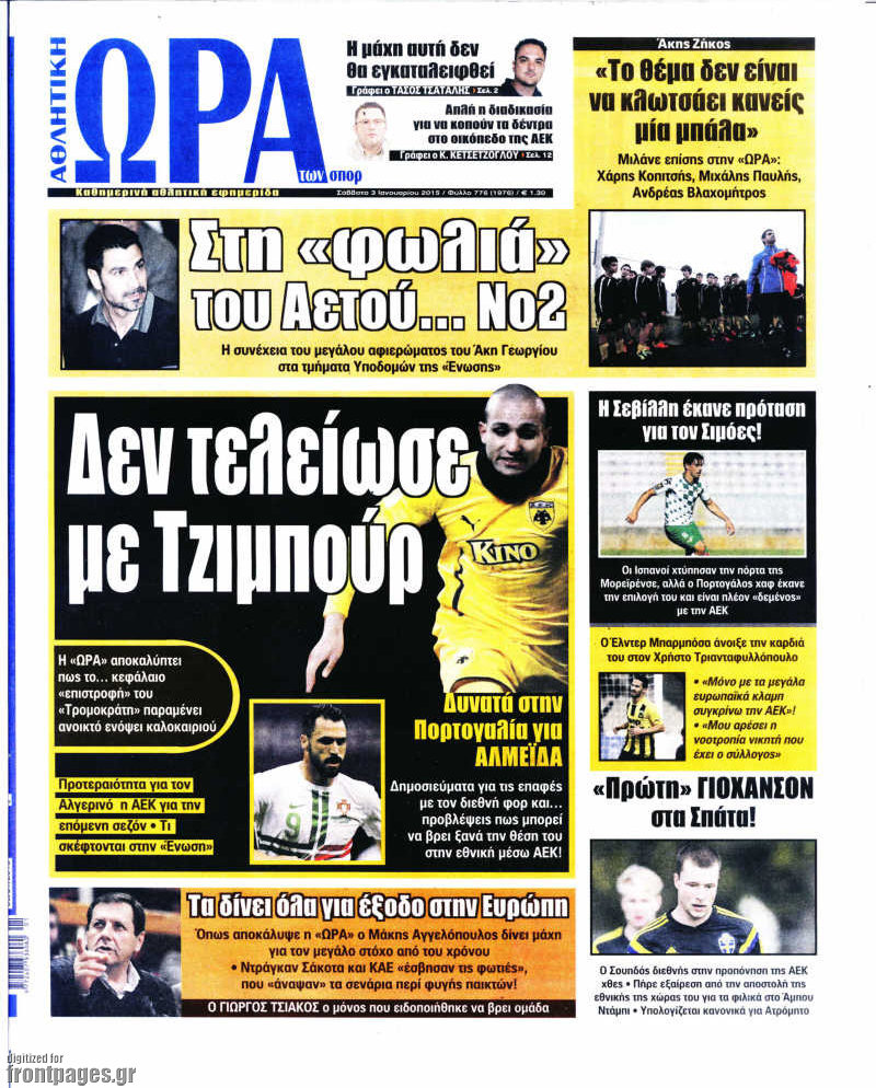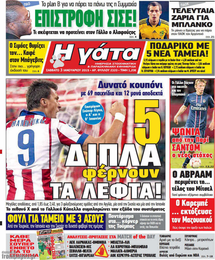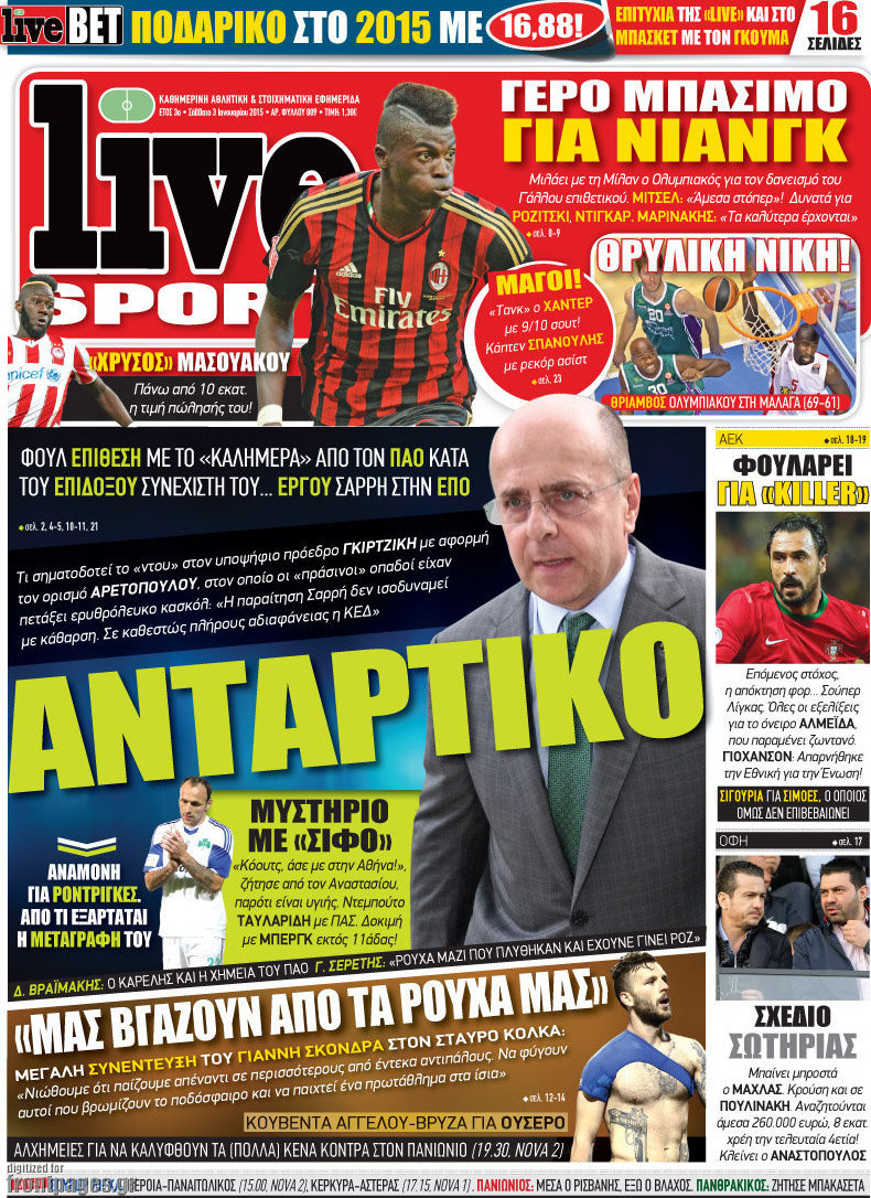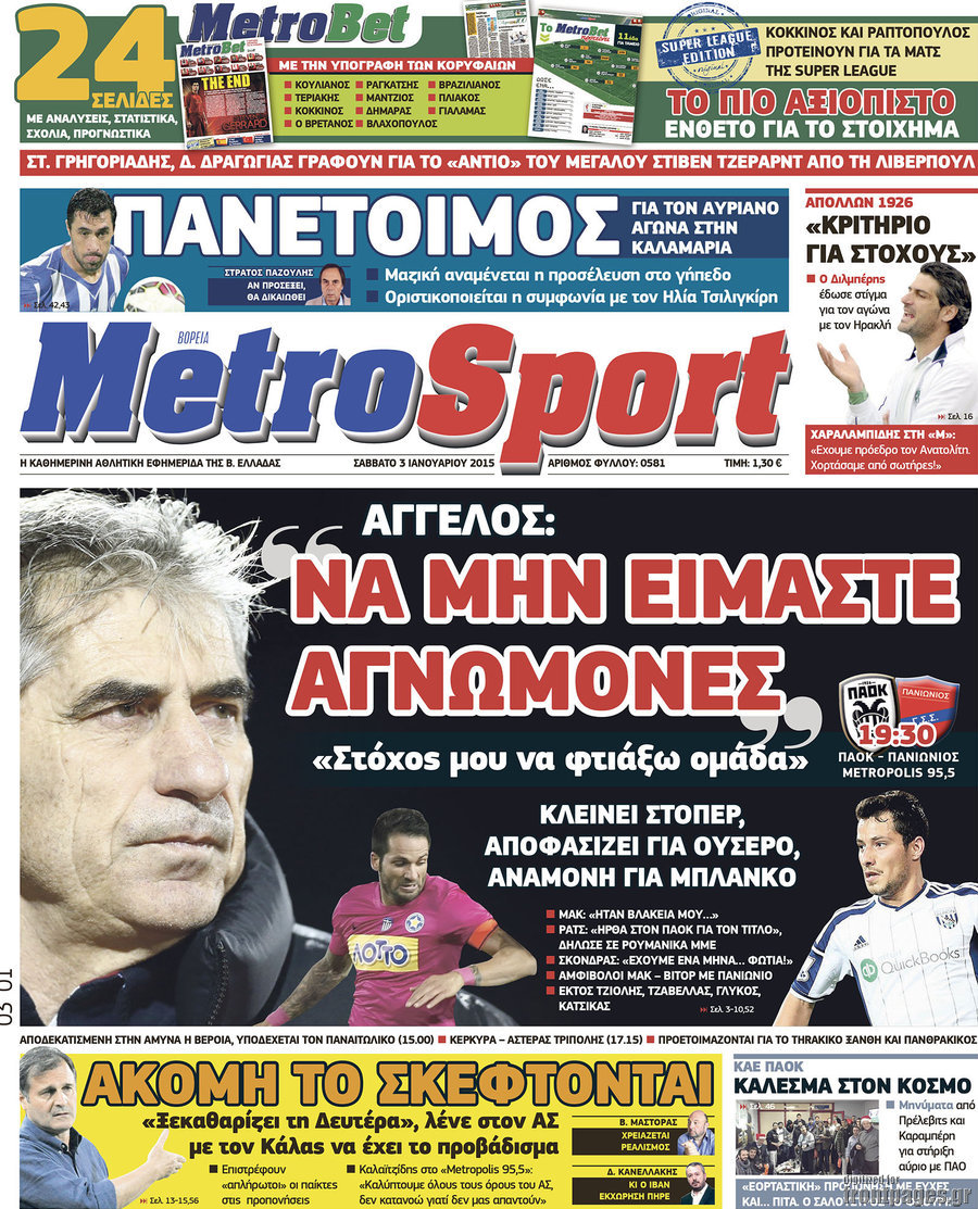 Οι αθλητικές εφημερίδες Enikos Newsroom 08:14, Σάββατο 03 Ιανουαρίου 2015 Media Διαβάστε τα πρωτοσέλιδα των αθλητικών εφημερίδων: ΑΘΛΗΤΙΚΕΣ ΕΦΗΜΕΡΙΔΕΣ ΕΦΗΜΕΡΙΔΕΣ ΠΡΩΤΟΣΕΛΙΔΑ Μοιράσου το: σχολίασε κι εσύ (0 σχόλια) Ακολουθήστε το enikos.gr στο Google News και μάθετε πρώτοι όλες τις ειδήσεις Δείτε όλες τις τελευταίες ειδήσεις από την Ελλάδα και τον Κόσμο στο enikos.gr Ειδήσεις Ροή Ειδήσεων 8 ώρες πριν Μητσοτάκης: Αναγκαία η μεταρρύθμιση του πρωτογενούς τομέα – Τα 6 νέα μέτρα για το στεγαστικό και οι αναφορές σε «Ιθάκη» και «πολιτικούς του καναπέ» 7 ώρες πριν Δάνεια σε ελβετικό φράγκο: Τα βασικά σημεία της ρύθμισης – ανάσας για 40.000 δανειολήπτες – Αναλυτικός οδηγός με ερωτήσεις και απαντήσεις 7 ώρες πριν Κυψέλη: Εξιτήριο πήρε η 14χρονη μαθήτρια που μαχαιρώθηκε από την 16χρονη σε σχολείο – «Θέλω να βοηθήσω το παιδί, έχει μπλέξει με κακές παρέες» 7 ώρες πριν Τραμπ: Γιατί κατέθεσε τώρα την αγωγή κατά του BBC – Πώς η κίνησή του εξυπηρετεί το νέο δόγμα του για «αντίσταση» στην Ευρώπη, υπέρ των συντηρητικών 7 ώρες πριν ΟΠΕΚΕΠΕ – Παράνομες επιδοτήσεις: Ελεύθεροι με περιοριστικούς όρους και οι 7 κατηγορούμενοι που απολογήθηκαν σήμερα 7 ώρες πριν Ανακαλύφθηκε βυθισμένη πέτρινη κατασκευή ανοιχτά της Κριμαίας – Αποτελεί μέρος αρχαίας ελληνικής αποικίας 8 ώρες πριν Ύπνος: Αυτό μπορεί να είναι το χειρότερο λάθος για το βιολογικό ρολόι σας, σύμφωνα με ειδικό 9 ώρες πριν Αριθμολογία: Οι άνθρωποι που έχουν γεννηθεί αυτές τις 3 ημερομηνίες, προσελκύουν μεγάλη τύχη πριν από το τέλος του 2025 11 ώρες πριν Οι 7 συμπεριφορές που μαρτυρούν ότι ένας άνδρας επενδύει μακροπρόθεσμα σε μια σχέση 6 λεπτά πριν Τα ζώδια σήμερα, Τετάρτη 17 Δεκεμβρίου: Κριοί, η αυτοπεποίθησή σας ενισχύεται 13 λεπτά πριν Εφημερεύοντα φαρμακεία σε Αθήνα και Θεσσαλονίκη (17/12) 19 λεπτά πριν Κόστα Ρίκα: Το Κογκρέσο απέρριψε το αίτημα για άρση της ασυλίας του προέδρου Τσάβες 27 λεπτά πριν Κολομβία: Νεκροί τέσσερις αστυνομικοί σε βομβιστικές επιθέσεις ανταρτών 35 λεπτά πριν Στάση εργασίας 11:00 – 17:00 σήμερα στα λεωφορεία του ΟΑΣΑ – Ποιες γραμμές θα λειτουργήσουν ENIKOS NETWORK Αίτημα ΙΣΑ για την εξαίρεση των προσωπικών γιατρών από τις κατ’ οίκον επισκέψεις Η σκανδιναβική μέθοδος στον ύπνο που μπορεί να σώσει έναν γάμο Πιερρακάκης: Ο προϋπολογισμός συμβάλλει ουσιαστικά στην ενίσχυση της αγοραστικής δύναμης της πλειονότητας των εργαζομένων e-ΕΦΚΑ: Παρατείνεται η προθεσμία για την υποβολή ΑΠΔ – Ποιους αφορά Σύγχρονος Νοστράδαμος: Προειδοποιεί για «μεγάλο γεγονός» τους επόμενους μήνες που θα συγκλονίσει τη Βρετανία και τον κόσμο Τεστ παρατηρητικότητας: Μπορείτε να βρείτε τις 3 διαφορές στις εικόνες με έναν πιγκουίνο σε 14 δευτερόλεπτα περισσότερα 20:06 , Τρίτη 16 Δεκεμβρίου 2025 Ο ΣΚΑΙ καταγγέλλει τον ΕΚΚΟΜΕΔ Επιστολή με την οποία καταγράφει την έντονη διαμαρτυρία του προς τον διευθύνοντα σύμβουλο του... 17:40 , Τρίτη 16 Δεκεμβρίου 2025 Eurovision: Στις 4 Ιανουαρίου αποκαλύπτονται τα 28 τραγούδια του ελληνικού τελικού Η αγωνία τελειώνει, η γιορτή της Eurovision αρχίζει στην ΕΡΤ από τις πρώτες ημέρες της νέας χρ... 17:09 , Τρίτη 16 Δεκεμβρίου 2025 Alter Ego Media: Βαθύτατη θλίψη και ειλικρινή συλλυπητήρια για την απώλεια της Ειρήνης Μαρινάκη Τη βαθύτατη θλίψη και τα ειλικρινή συλλυπητήριά της εκφράζει η Alter Ego Media για τον θάνατο ... 13:00 , Τρίτη 16 Δεκεμβρίου 2025 «Στο Παρά Πέντε – 20 Χρόνια Μετά»: Κυκλοφόρησε το τρέιλερ του επετειακού επεισοδίου της θρυλικής σειράς – Πότε θα προβληθε
