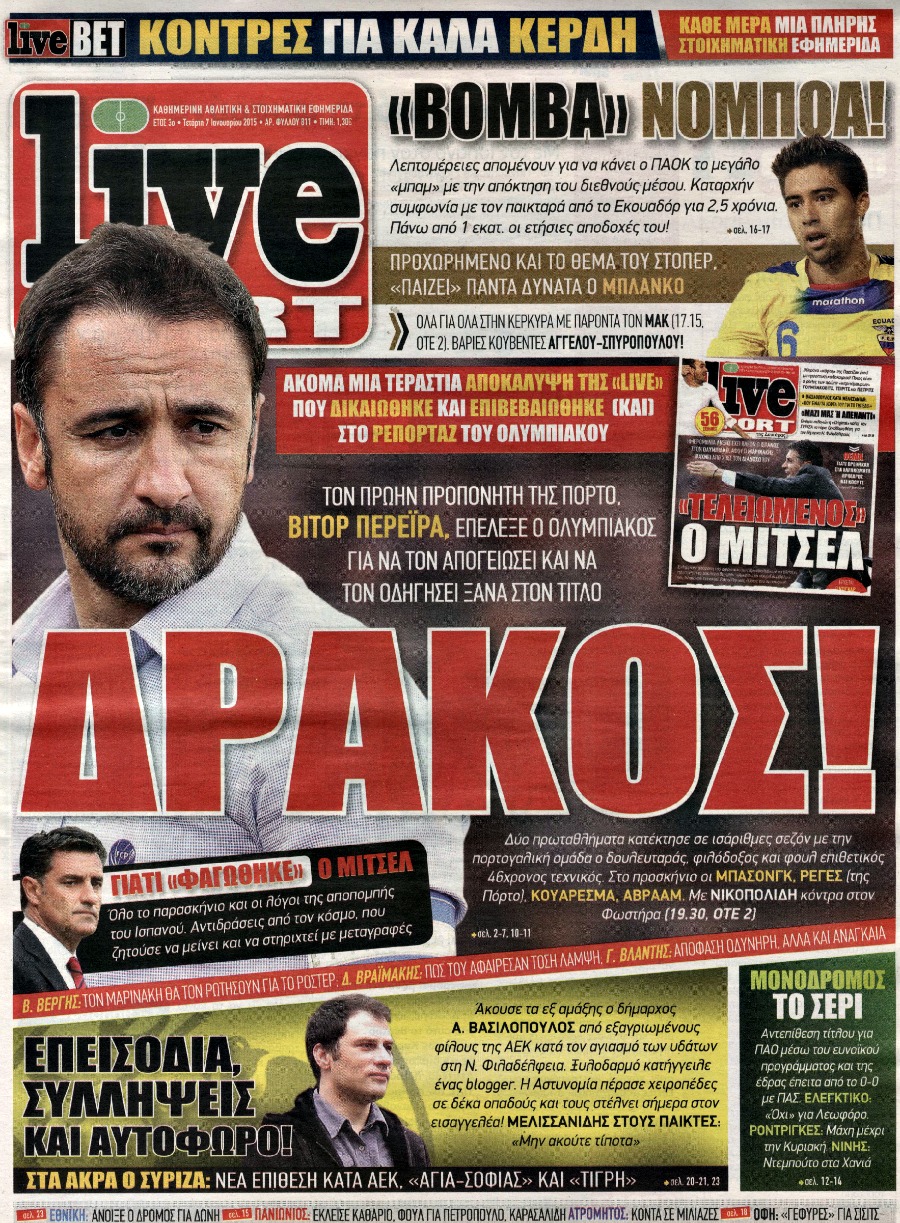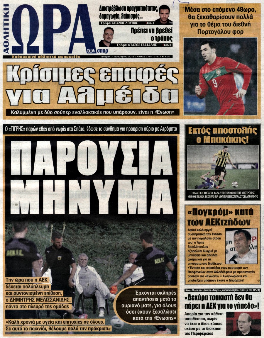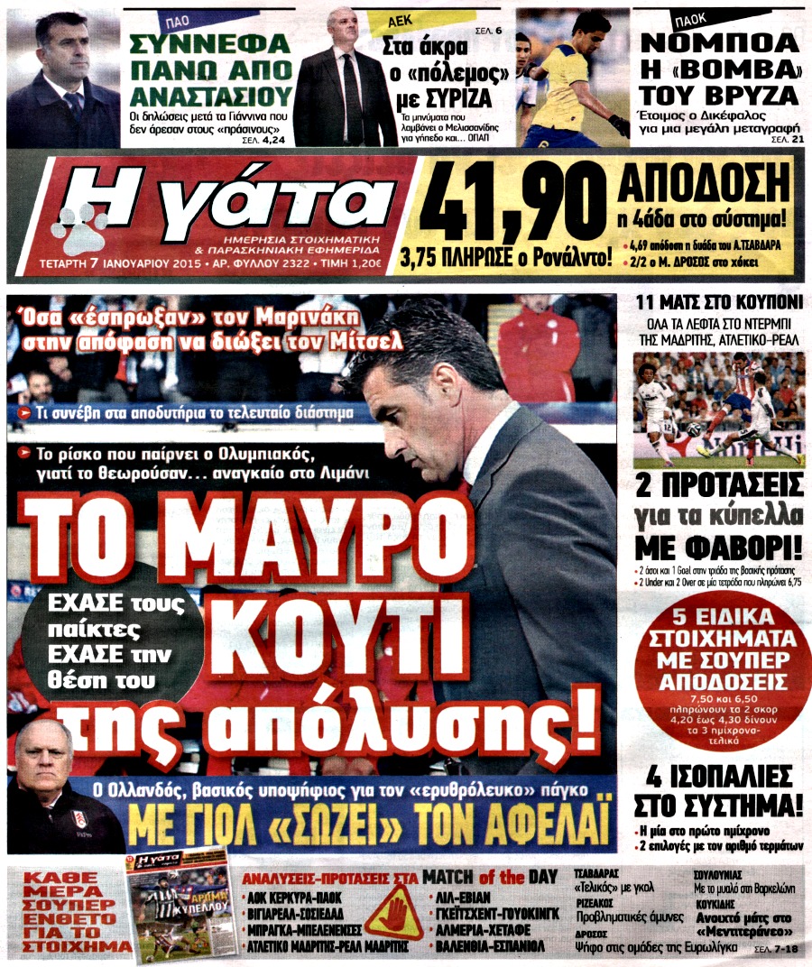 Οι αθλητικές εφημερίδες Enikos Newsroom 08:05, Τετάρτη 07 Ιανουαρίου 2015 Media Διαβάστε τα πρωτοσέλιδα των αθλητικών εφημερίδων: ΑΘΛΗΤΙΚΕΣ ΕΦΗΜΕΡΙΔΕΣ ΕΦΗΜΕΡΙΔΕΣ ΠΡΩΤΟΣΕΛΙΔΑ Μοιράσου το: σχολίασε κι εσύ (0 σχόλια) Ακολουθήστε το enikos.gr στο Google News και μάθετε πρώτοι όλες τις ειδήσεις Δείτε όλες τις τελευταίες ειδήσεις από την Ελλάδα και τον Κόσμο στο enikos.gr Ειδήσεις Ροή Ειδήσεων 7 ώρες πριν Χριστούγεννα στα μπλόκα: Επιμένουν στις κινητοποιήσεις τους οι αγρότες – Ανοίγουν τα διόδια το Σαββατοκύριακο 8 ώρες πριν Ουκρανία: Η άνευ προηγουμένου επίθεση σε ρωσικό τάνκερ στη Μεσόγειο και το μήνυμα προς στον Πούτιν – Το «μακρύ χέρι» του Κιέβου 7 ώρες πριν Πούτιν: Τα μηνύματα σε Ευρώπη και ΝΑΤΟ από το μαραθώνιο «σόου» του – Η απαίτηση για «σεβασμό» και η ειρήνη «με τους όρους» της Μόσχας 8 ώρες πριν Τραμπ: Δεν αποκλείει την πιθανότητα ενός πολέμου στη Βενεζουέλα – «Ο Μαδούρο ξέρει καλύτερα από τον καθένα τι ακριβώς θέλω» 9 ώρες πριν Συνεχίζει να προκαλεί ο Μίτσκοσκι: «Για μένα το όνομα Μακεδονία είναι ιερό» 30 λεπτά πριν Τα ζώδια σήμερα, Σάββατο 20 Δεκεμβρίου: Παρθένοι, το σύμπαν σας δίνει το κλειδί 7 ώρες πριν Ανακαλύφθηκαν αρχαία χρυσά νομίσματα 2.200 ετών που απεικονίζουν τον θεό Απόλλωνα – Η άγνωστη σύνδεση με τον Φίλιππο Β΄ της Μακεδονίας 8 ώρες πριν Ύπνος: Μια κρυφή κατάσταση του εγκεφάλου πριν από τον ύπνο μπορεί να είναι το “κλειδί” για υψηλή ευφυΐα και δημιουργικότητα 9 ώρες πριν Αριθμολογία: Οι άνθρωποι που έχουν γεννηθεί αυτές τις 4 ημερομηνίες, συχνά παρεξηγούνται – «Η καλοσύνη τους κρύβει τεράστια δύναμη» 7 λεπτά πριν Σαν σήμερα 20 Δεκεμβρίου: Τα σημαντικότερα γεγονότα της ημέρας 12 λεπτά πριν Οι οικονομικές εφημερίδες 20/12/2025 17 λεπτά πριν Οι αθλητικές εφημερίδες 20/12/2025 22 λεπτά πριν Οι πολιτικές εφημερίδες 20/12/2025 30 λεπτά πριν Τα ζώδια σήμερα, Σάββατο 20 Δεκεμβρίου: Παρθένοι, το σύμπαν σας δίνει το κλειδί ENIKOS NETWORK Το ΕΚΑΒ τιμήθηκε από την Ακαδημία Αθηνών για τα 40 χρόνια προσφοράς του Έχετε πραγματικά μεγάλη καρδιά; 10 χαρακτηριστικά όσων έχουν καλοσύνη Αναστολή μέτρων αναγκαστικής εκτέλεσης για κτηνοτρόφους που πλήττονται από την ευλογιά των αιγοπροβάτων Πλήρης επάρκεια προϊόντων στις λαϊκές της Αττικής, παρά τις αγροτικές κινητοποιήσεις – Τι απαντούν οι πωλητές Χαρτογραφώντας το «σημείο χωρίς επιστροφή»: Για πρώτη φορά αποκαλύπτεται με λεπτομέρεια το ακανθώδες όριο της ατμόσφαιρας τ... Η Google καταργεί τη λειτουργία «dark web report» – Πώς θα μπορούν οι χρήστες να διαγράφουν τα δεδομένα τους περισσότερα 05:48 , Σάββατο 20 Δεκεμβρίου 2025 Οι οικονομικές εφημερίδες 20/12/2025 Διαβάστε τα πρωτοσέλιδα από τις οικονομικές εφημερίδες, σήμερα 20/12/2025. 05:43 , Σάββατο 20 Δεκεμβρίου 2025 Οι αθλητικές εφημερίδες 20/12/2025 Διαβάστε τα πρωτοσέλιδα από τις αθλητικές εφημερίδες, σήμερα 20/12/2025. 05:38 , Σάββατο 20 Δεκεμβρίου 2025 Οι πολιτικές εφημερίδες 20/12/2025 Διαβάστε τα πρωτοσέλιδα από τις πολιτικές εφημερίδες, σήμερα 20/12/2025. 04:20 , Σάββατο 20 Δεκεμβρίου 2025 Αγγελική Νικολούλη: Τα συλλυπητήρια για την απώλεια της Ειρήνης Μαρινάκη Τα συλληπητήρια στον πρόεδρο του Mega, τον Βαγγέλη Μαρινάκη, για την απώλεια της μητέρας του Ε... ΤΕΛΕΥΤΑΙΕΣ ΕΙΔΗΣΕΙΣ 7 λεπτά πριν Σαν σήμερα 20 Δεκεμβρίου: Τα σημαντικότερα γεγονότα... 12 λεπτά πριν Οι οικονομικές εφημερίδες 20/12/2025 17 λεπτά πριν Οι αθλητικές εφημερίδες 20/12/2025 22 λεπτά πριν Οι πολιτικές εφημερίδες 20/12/2025 30 λεπτά πριν Τα ζώδια σήμερα, Σάββατο 20 Δεκεμβρίου: Παρθένοι, το... 35 λεπτά 