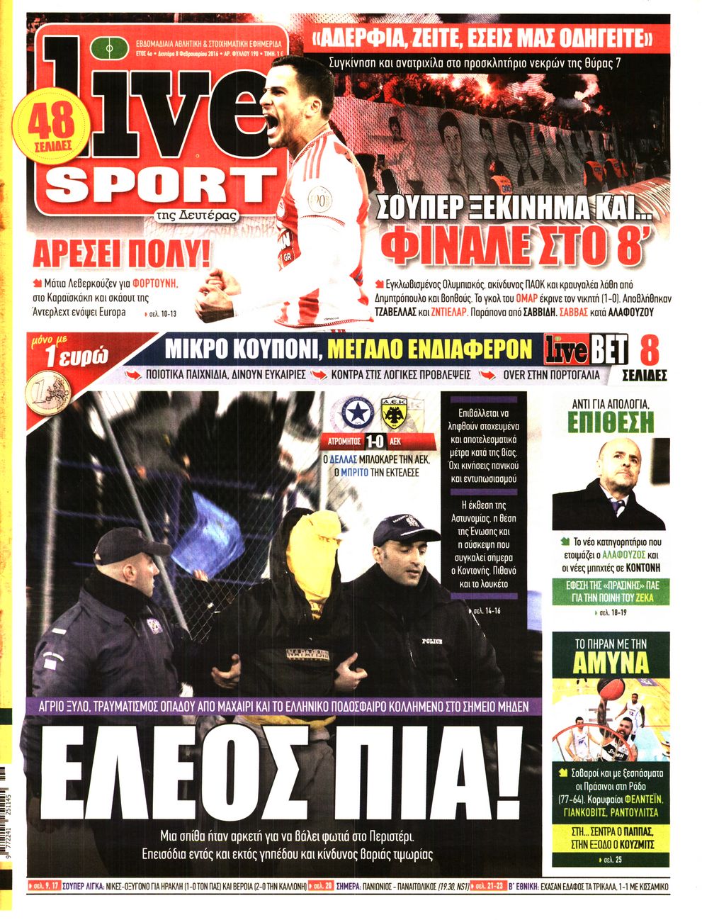 Οι αθλητικές εφημερίδες 8/2/2016 Enikos Newsroom 05:45, Δευτέρα 08 Φεβρουαρίου 2016 Media Διαβάστε τα σημερινά πρωτοσέλιδα των αθλητικών εφημερίδων: ΑΘΛΗΤΙΚΕΣ ΕΦΗΜΕΡΙΔΕΣ ΠΡΩΤΟΣΕΛΙΔΑ Μοιράσου το: σχολίασε κι εσύ (0 σχόλια) Ακολουθήστε το enikos.gr στο Google News και μάθετε πρώτοι όλες τις ειδήσεις Δείτε όλες τις τελευταίες ειδήσεις από την Ελλάδα και τον Κόσμο στο enikos.gr Ειδήσεις Ροή Ειδήσεων 1 ώρα πριν Αυξάνουν την πίεση προς την κυβέρνηση οι αγρότες: Κλείνουν παρακαμπτήριους και ανοίγουν διόδια – Τι θα γίνει τις γιορτές 15 λεπτά πριν ΟΠΕΚΕΠΕ: Προφυλακιστέος ο φερόμενος αρχηγός και ο λογιστής της εγκληματικής οργάνωσης 1 ώρα πριν Φοινικούντα: Το Σάββατο απολογείται ο 30χρονος γιος γνωστού επιχειρηματία της Πλάκας που παραδόθηκε – Όσα είπε στους αστυνομικούς και ο ρόλος του στο έγκλημα 56 λεπτά πριν Μπορεί ο Μαδούρο να αντέξει τον αποκλεισμό του Τραμπ; Τι θα χρειαστεί η Ουάσινγκτον για να τον ανατρέψει 2 ώρες πριν Πρίγκιπας Ουίλιαμ – Κέιτ: Η νέα οικογενειακή φωτογραφία για τις Χριστουγεννιάτικες κάρτες του 2025 2 ώρες πριν Ύπνος: Η απλή βραδινή ρουτίνα για να προστατεύσετε τα μαλλιά σας από το κρύο κατά τη διάρκεια του χειμώνα 3 ώρες πριν Manifesting: Πώς να συναντήσετε τον σύντροφο της ζωής σας, ανάλογα με τον μήνα γέννησής σας 2 ημέρες πριν 20 χρόνια τα Χριστούγεννα ξεκινούν στα Public με μεγάλη ποικιλία σε δώρα! 59 λεπτά πριν Αρχαιολόγοι ανακάλυψαν ρωμαϊκά τεχνουργήματα από μια πόλη που δεν υπήρξε ποτέ – Τα τρία εντυπωσιακά κτίρια και ο αμφορέας με τις… σαρδέλες 15 λεπτά πριν ΟΠΕΚΕΠΕ: Προφυλακιστέος ο φερόμενος αρχηγός και ο λογιστής της εγκληματικής οργάνωσης 25 λεπτά πριν Αθηνά Μαξίμου: Η τρυφερή ανάρτηση για τα γενέθλια του Αιμίλιου Χειλάκη – «Είναι η εκλεκτική συγγένειά μου, η επιλογή και η ευθύνη μου» 40 λεπτά πριν Παναθηναϊκός – Χάποελ Τελ Αβίβ 93-82: Με… φόρα από την Κωνσταντινούπολη 56 λεπτά πριν Μπορεί ο Μαδούρο να αντέξει τον αποκλεισμό του Τραμπ; Τι θα χρειαστεί η Ουάσινγκτον για να τον ανατρέψει 59 λεπτά πριν Αρχαιολόγοι ανακάλυψαν ρωμαϊκά τεχνουργήματα από μια πόλη που δεν υπήρξε ποτέ – Τα τρία εντυπωσιακά κτίρια και ο αμφορέας με τις… σαρδέλες ENIKOS NETWORK Σε περίοδο αυξημένης δραστηριότητας η γρίπη στην Ελλάδα-Μέτρα προστασίας από τον ΕΟΔΥ Σκέφτεστε συνέχεια συζητήσεις που έχετε κάνει; Τι σημαίνει αυτό, σύμφωνα με ειδικό Στεγαστικό: Τι λέει η ΠΟΜΙΔΑ για τα νέα μέτρα που ανακοίνωσε ο Κυριάκος Μητσοτάκης Λαγκάρντ: Αισιόδοξη για την ανάπτυξη της Ευρωζώνης, αβέβαιη για τον πληθωρισμό Χαρτογραφώντας το «σημείο χωρίς επιστροφή»: Για πρώτη φορά αποκαλύπτεται με λεπτομέρεια το ακανθώδες όριο της ατμόσφαιρας τ... Η Google καταργεί τη λειτουργία «dark web report» – Πώς θα μπορούν οι χρήστες να διαγράφουν τα δεδομένα τους περισσότερα 17:45 , Πέμπτη 18 Δεκεμβρίου 2025 ROUK ZOUK: Εορταστικό επεισόδιο με καλεσμένους τους πρωταγωνιστές του «Γιατί ρε πατέρα» Το Σάββατο 20 Δεκεμβρίου στις 21:00, η Ζέτα Μακρυπούλια υποδέχεται εκλεκτούς ηθοποιούς που όλο... 17:20 , Πέμπτη 18 Δεκεμβρίου 2025 Άγιος έρωτας: Η Χριστίνα εξομολογείται στον πατέρα Νικόλαο, απόψε στις 21:00 στον Alpha Η Νότα αποφασίζει να εκδικηθεί τον Πέτρο και τον Στέφανο, για χάρη του Λούη, όμως τα πράγματα ... 16:50 , Πέμπτη 18 Δεκεμβρίου 2025 Να μ’ αγαπάς: Ζωή και Φωτεινή συμφιλιώνονται ως μάνα με κόρη, απόψε στις 20:00 Η ταυτότητα του Άγγελου αποκαλύπτεται στο νέο επεισόδιο της σειράς “Να μ’ αγαπάς... 15:52 , Πέμπτη 18 Δεκεμβρίου 2025 Το Σπίτι Δίπλα Στο Ποτάμι: Το καθηλω