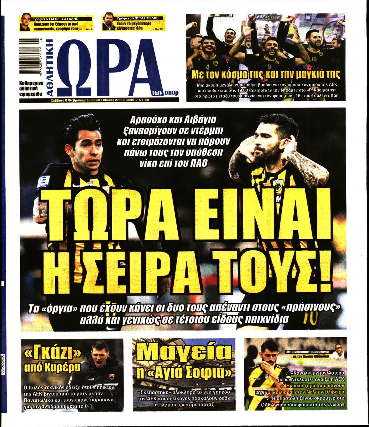 Οι αθλητικές εφημερίδες 8/2/2020 Διονύσης Νίκκας 08:05, Σάββατο 08 Φεβρουαρίου 2020 Media Διαβάστε τα πρωτοσέλιδα των αθλητικών εφημερίδων… ΑΘΛΗΤΙΚΕΣ ΕΦΗΜΕΡΙΔΕΣ ΠΡΩΤΟΣΕΛΙΔΑ Μοιράσου το: σχολίασε κι εσύ (0 σχόλια) Ακολουθήστε το enikos.gr στο Google News και μάθετε πρώτοι όλες τις ειδήσεις Δείτε όλες τις τελευταίες ειδήσεις από την Ελλάδα και τον Κόσμο στο enikos.gr Ειδήσεις Ροή Ειδήσεων 2 ώρες πριν Χριστούγεννα στα μπλόκα: Επιμένουν στις κινητοποιήσεις τους οι αγρότες – Ανοίγουν τα διόδια το Σαββατοκύριακο 3 ώρες πριν Ουκρανία: Η άνευ προηγουμένου επίθεση σε ρωσικό τάνκερ στη Μεσόγειο και το μήνυμα προς στον Πούτιν – Το «μακρύ χέρι» του Κιέβου 2 ώρες πριν Πούτιν: Τα μηνύματα σε Ευρώπη και ΝΑΤΟ από το μαραθώνιο «σόου» του – Η απαίτηση για «σεβασμό» και η ειρήνη «με τους όρους» της Μόσχας 3 ώρες πριν Τραμπ: Δεν αποκλείει την πιθανότητα ενός πολέμου στη Βενεζουέλα – «Ο Μαδούρο ξέρει καλύτερα από τον καθένα τι ακριβώς θέλω» 3 ώρες πριν Συνεχίζει να προκαλεί ο Μίτσκοσκι: «Για μένα το όνομα Μακεδονία είναι ιερό» 2 ώρες πριν Ανακαλύφθηκαν αρχαία χρυσά νομίσματα 2.200 ετών που απεικονίζουν τον θεό Απόλλωνα – Η άγνωστη σύνδεση με τον Φίλιππο Β΄ της Μακεδονίας 3 ώρες πριν Ύπνος: Μια κρυφή κατάσταση του εγκεφάλου πριν από τον ύπνο μπορεί να είναι το “κλειδί” για υψηλή ευφυΐα και δημιουργικότητα 4 ώρες πριν Αριθμολογία: Οι άνθρωποι που έχουν γεννηθεί αυτές τις 4 ημερομηνίες, συχνά παρεξηγούνται – «Η καλοσύνη τους κρύβει τεράστια δύναμη» 5 ώρες πριν Ξεχάστε το καθάρισμα το Σαββατοκύριακο: Ο «κανόνας των 20 λεπτών» που θα σας λύσει τα χέρια 13 λεπτά πριν Μπαρτσελόνα – Μπασκόνια 134-124: Οι «μπλαουγκράνα» πήραν το ματς της χρονιάς ύστερα από τρεις παρατάσεις 28 λεπτά πριν Φαίη Σκορδά: «Παλιότερα τα κομπλιμέντα τα προσπερνούσα, τώρα τα έχω ανάγκη» 44 λεπτά πριν Βασίλης Σπανούλης: Δεν εμφανίστηκε ούτε ένας δημοσιογράφος στην συνέντευξη Τύπου – «Καλησπέρα στον… κανέναν», δείτε βίντεο 55 λεπτά πριν Πόλεμος στην Ουκρανία: Εφτά νεκροί από ρωσική πυραυλική επίθεση στο λιμάνι της Οδησσού 59 λεπτά πριν ΗΠΑ: Η κυβέρνηση του Ντόναλντ Τραμπ άρχισε να δημοσιοποιεί τα αρχεία Έπσταϊν ENIKOS NETWORK Το ΕΚΑΒ τιμήθηκε από την Ακαδημία Αθηνών για τα 40 χρόνια προσφοράς του Έχετε πραγματικά μεγάλη καρδιά; 10 χαρακτηριστικά όσων έχουν καλοσύνη Αναστολή μέτρων αναγκαστικής εκτέλεσης για κτηνοτρόφους που πλήττονται από την ευλογιά των αιγοπροβάτων Πλήρης επάρκεια προϊόντων στις λαϊκές της Αττικής, παρά τις αγροτικές κινητοποιήσεις – Τι απαντούν οι πωλητές Χαρτογραφώντας το «σημείο χωρίς επιστροφή»: Για πρώτη φορά αποκαλύπτεται με λεπτομέρεια το ακανθώδες όριο της ατμόσφαιρας τ... Η Google καταργεί τη λειτουργία «dark web report» – Πώς θα μπορούν οι χρήστες να διαγράφουν τα δεδομένα τους περισσότερα 22:42 , Παρασκευή 19 Δεκεμβρίου 2025 Γιώργος Γιαννόπουλος για “Το σόι σου”: “Είναι ευτυχία και ευλογία αυτή η σειρά” «Είναι ευτυχία και ευλογία η συγκυρία αυτής της σειράς», θα πει ο Γιώργος Γιαννόπουλος -ο αγαπ... 20:37 , Παρασκευή 19 Δεκεμβρίου 2025 Don’t Forget The Lyrics: Η Έλλη Κοκκίνου υποδέχεται 4 παίκτες που θα κάνουν τα πάντα για να μη χάσουν ούτε… μισή λέξη από τους στίχους Το «Don’t Forget The Lyrics» επιστρέφει απόψε, Παρασκευή 19 Δεκεμβρίου, στις 21:00 με νέο επει... 19:31 , Παρασκευή 19 Δεκεμβρίου 2025 GNTM: Απόψε ο μεγάλος τελικός για τους 4 φιναλίστ Έπειτα από μήνες γεμάτους μόδα, δημιουργία και έντονες αναμετρήσεις, το GNTM 2025 κορυφώνεται,... 18:11 , Παρα