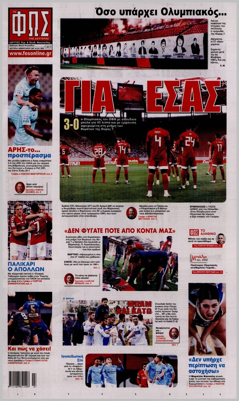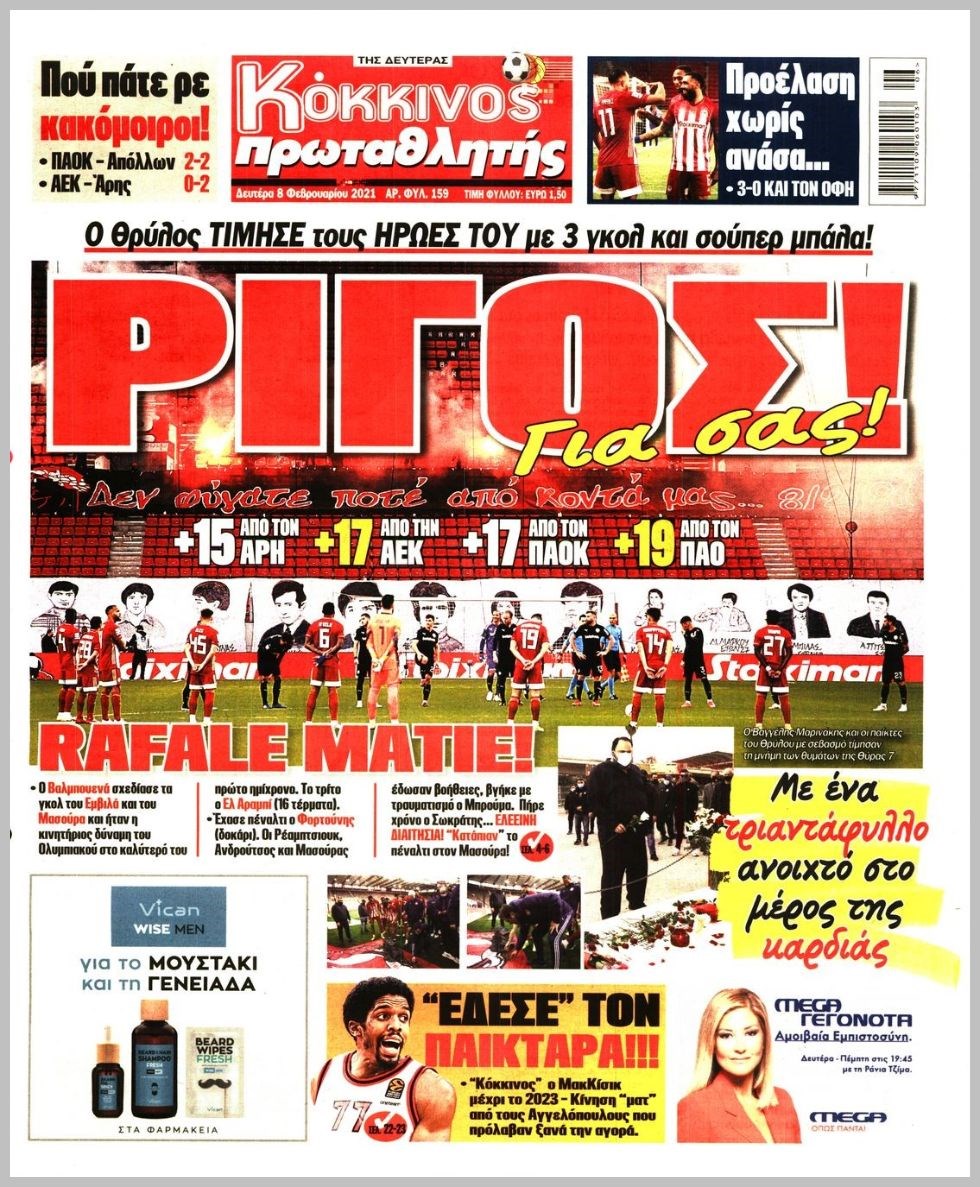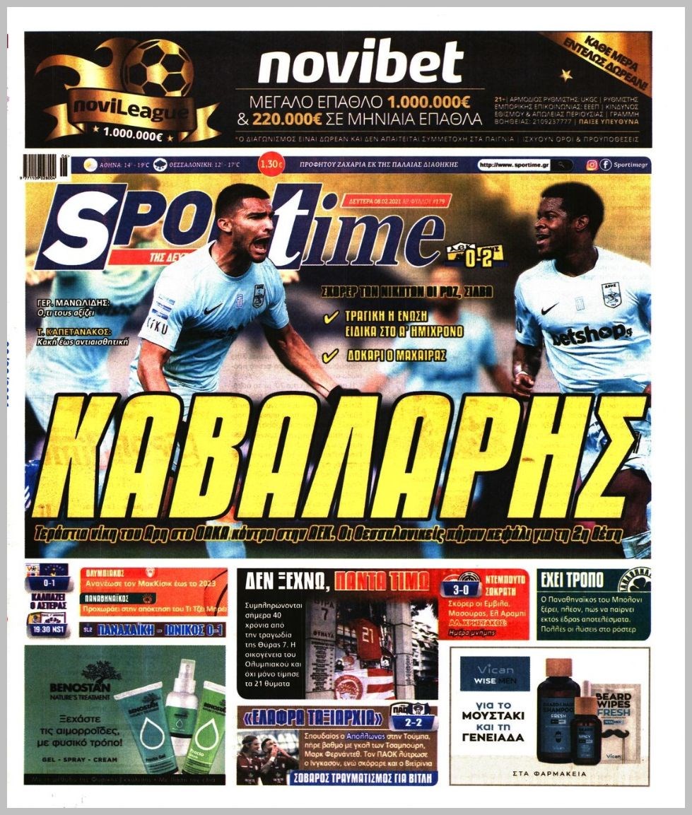 Οι αθλητικές εφημερίδες 8/2/2021 Διονύσης Νίκκας 06:28, Δευτέρα 08 Φεβρουαρίου 2021 Media Διαβάστε τα πρωτοσέλιδα των αθλητικών εφημερίδων… ΑΘΛΗΤΙΚΕΣ ΕΦΗΜΕΡΙΔΕΣ Μοιράσου το: σχολίασε κι εσύ (0 σχόλια) Ακολουθήστε το enikos.gr στο Google News και μάθετε πρώτοι όλες τις ειδήσεις Δείτε όλες τις τελευταίες ειδήσεις από την Ελλάδα και τον Κόσμο στο enikos.gr Ειδήσεις Ροή Ειδήσεων 7 ώρες πριν Χριστούγεννα στα μπλόκα: Επιμένουν στις κινητοποιήσεις τους οι αγρότες – Ανοίγουν τα διόδια το Σαββατοκύριακο 7 ώρες πριν Ουκρανία: Η άνευ προηγουμένου επίθεση σε ρωσικό τάνκερ στη Μεσόγειο και το μήνυμα προς στον Πούτιν – Το «μακρύ χέρι» του Κιέβου 7 ώρες πριν Πούτιν: Τα μηνύματα σε Ευρώπη και ΝΑΤΟ από το μαραθώνιο «σόου» του – Η απαίτηση για «σεβασμό» και η ειρήνη «με τους όρους» της Μόσχας 7 ώρες πριν Τραμπ: Δεν αποκλείει την πιθανότητα ενός πολέμου στη Βενεζουέλα – «Ο Μαδούρο ξέρει καλύτερα από τον καθένα τι ακριβώς θέλω» 8 ώρες πριν Συνεχίζει να προκαλεί ο Μίτσκοσκι: «Για μένα το όνομα Μακεδονία είναι ιερό» 7 ώρες πριν Ανακαλύφθηκαν αρχαία χρυσά νομίσματα 2.200 ετών που απεικονίζουν τον θεό Απόλλωνα – Η άγνωστη σύνδεση με τον Φίλιππο Β΄ της Μακεδονίας 8 ώρες πριν Ύπνος: Μια κρυφή κατάσταση του εγκεφάλου πριν από τον ύπνο μπορεί να είναι το “κλειδί” για υψηλή ευφυΐα και δημιουργικότητα 9 ώρες πριν Αριθμολογία: Οι άνθρωποι που έχουν γεννηθεί αυτές τις 4 ημερομηνίες, συχνά παρεξηγούνται – «Η καλοσύνη τους κρύβει τεράστια δύναμη» 10 ώρες πριν Ξεχάστε το καθάρισμα το Σαββατοκύριακο: Ο «κανόνας των 20 λεπτών» που θα σας λύσει τα χέρια 4 λεπτά πριν Τα ζώδια σήμερα, Σάββατο 20 Δεκεμβρίου: Παρθένοι, το σύμπαν σας δίνει το κλειδί 9 λεπτά πριν Παιανία: Δυο αυτοκίνητα τυλίχτηκαν στις φλόγες – Συναγερμός στην Πυροσβεστική 12 λεπτά πριν Εφημερεύοντα φαρμακεία σε Αθήνα και Θεσσαλονίκη (20/12) 18 λεπτά πριν Γιώργος Μπαρτζώκας: «Για εμένα σημαίνει πάρα πολλά να ακούω το όνομά μου από τον κόσμο του Ολυμπιακού» 28 λεπτά πριν ΟΗΕ: Το Συμβούλιο Ασφαλείας παρατείνει για έναν χρόνο την εντολή της ειρηνευτικής δύναμης στο Κονγκό ENIKOS NETWORK Το ΕΚΑΒ τιμήθηκε από την Ακαδημία Αθηνών για τα 40 χρόνια προσφοράς του Έχετε πραγματικά μεγάλη καρδιά; 10 χαρακτηριστικά όσων έχουν καλοσύνη Αναστολή μέτρων αναγκαστικής εκτέλεσης για κτηνοτρόφους που πλήττονται από την ευλογιά των αιγοπροβάτων Πλήρης επάρκεια προϊόντων στις λαϊκές της Αττικής, παρά τις αγροτικές κινητοποιήσεις – Τι απαντούν οι πωλητές Χαρτογραφώντας το «σημείο χωρίς επιστροφή»: Για πρώτη φορά αποκαλύπτεται με λεπτομέρεια το ακανθώδες όριο της ατμόσφαιρας τ... Η Google καταργεί τη λειτουργία «dark web report» – Πώς θα μπορούν οι χρήστες να διαγράφουν τα δεδομένα τους περισσότερα 04:20 , Σάββατο 20 Δεκεμβρίου 2025 Αγγελική Νικολούλη: Τα συλλυπητήρια για την απώλεια της Ειρήνης Μαρινάκη Τα συλληπητήρια στον πρόεδρο του Mega, τον Βαγγέλη Μαρινάκη, για την απώλεια της μητέρας του Ε... 02:50 , Σάββατο 20 Δεκεμβρίου 2025 GNTM: Η Ξένια Τσίρκοβα αναδείχθηκε μεγάλη νικήτρια και πήρε τις 50.000 ευρώ – Ποιος βρέθηκε σε απόσταση αναπνοής; Με φαντασμαγορικό τρόπο ολοκληρώθηκε το βράδυ της Παρασκευής ο μεγάλος τελικός του GNTM, μέσα ... 22:42 , Παρασκευή 19 Δεκεμβρίου 2025 Γιώργος Γιαννόπουλος για “Το σόι σου”: “Είναι ευτυχία και ευλογία αυτή η σειρά” «Είναι ευτυχία και ευλογία η συγκυρία αυτής της σειράς», θα πει ο Γιώργος Γιαννόπουλος -ο αγαπ... 20:37 , Παρασκευή 19 Δεκεμβρίου 2025 Don’t Forget The Lyrics: Η Έλλη Κο