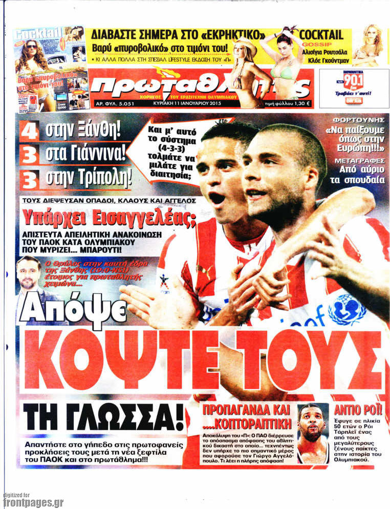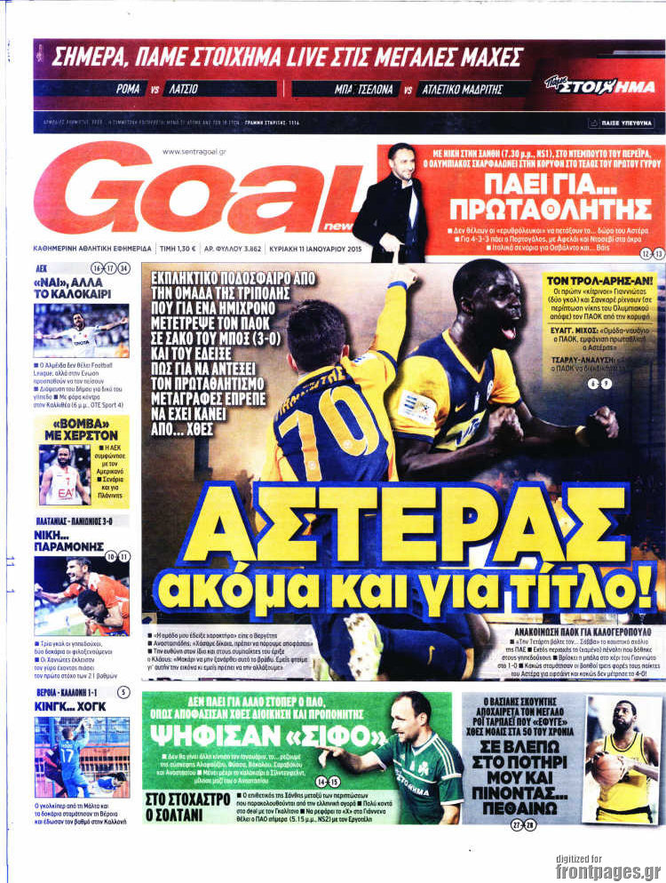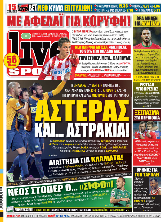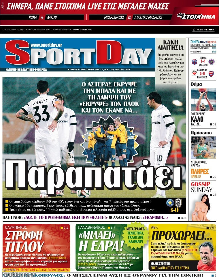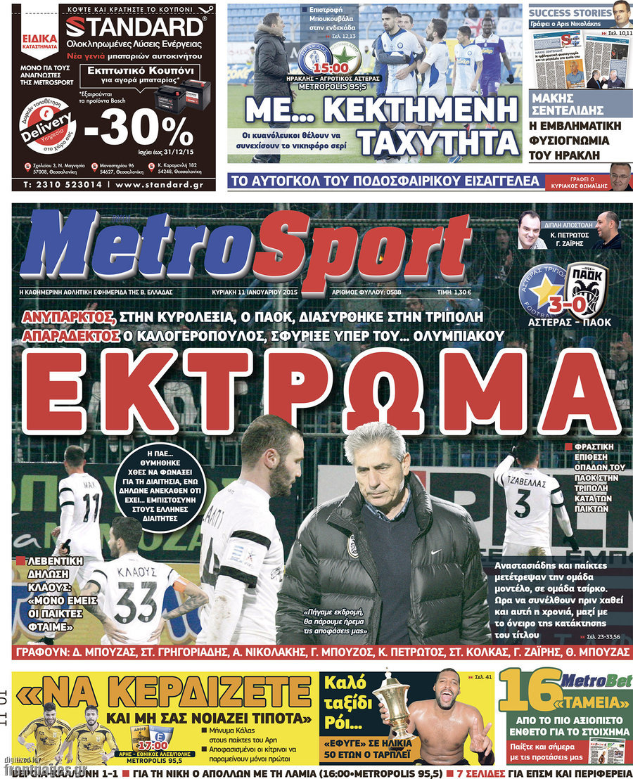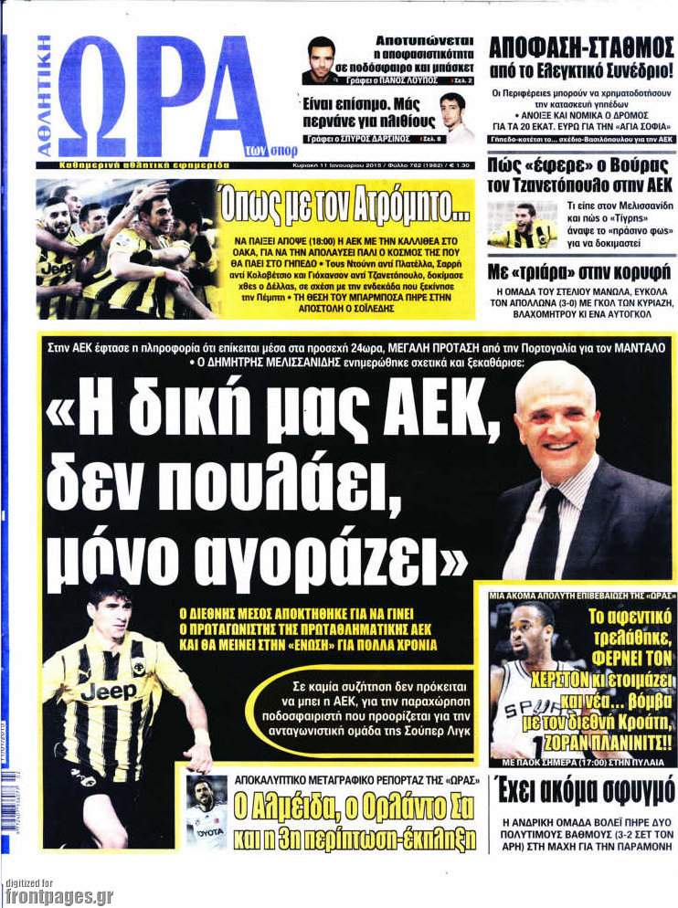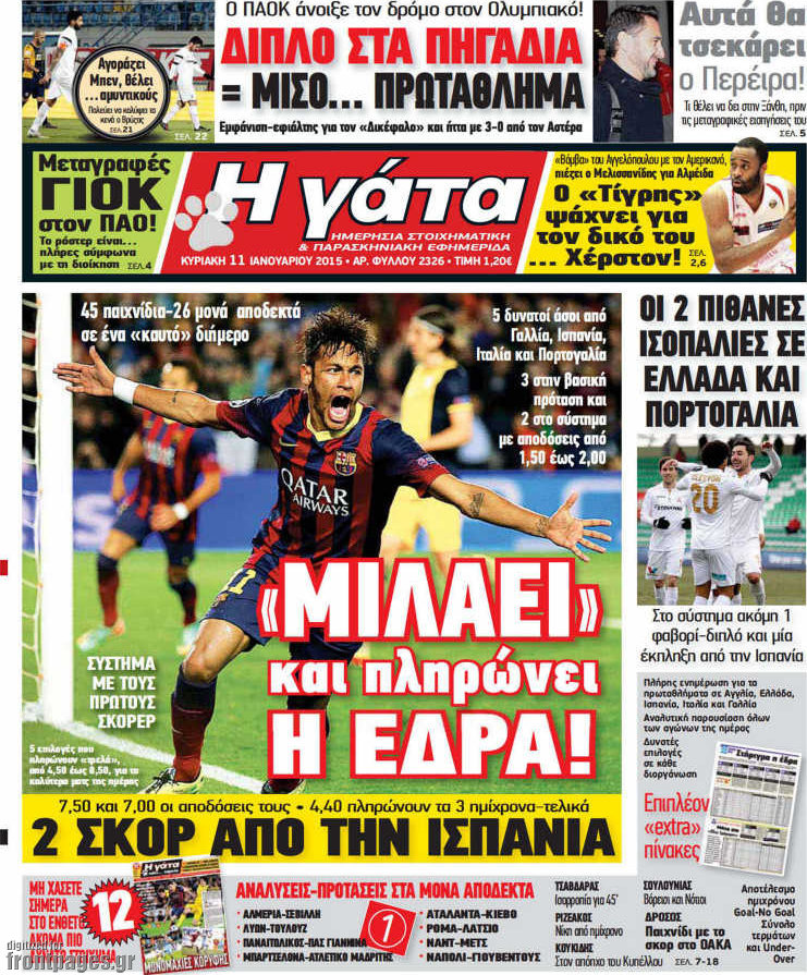 Οι αθλητικές εφημερίδες Enikos Newsroom 08:08, Κυριακή 11 Ιανουαρίου 2015 Media ΑΘΛΗΤΙΚΕΣ ΕΦΗΜΕΡΙΔΕΣ ΠΡΩΤΟΣΕΛΙΔΑ Μοιράσου το: σχολίασε κι εσύ (0 σχόλια) Ακολουθήστε το enikos.gr στο Google News και μάθετε πρώτοι όλες τις ειδήσεις Δείτε όλες τις τελευταίες ειδήσεις από την Ελλάδα και τον Κόσμο στο enikos.gr Ειδήσεις Ροή Ειδήσεων 50 λεπτά πριν Πώς στήθηκε η επιχείρηση «Ίπαλλος» που οδήγησε στη σύλληψη του «Έλληνα Εσκομπάρ» – «Ο πόλεμος ενάντια στους εμπόρους ναρκωτικών θα συνεχιστεί» 35 λεπτά πριν Δίκη Χρυσής Αυγής: Την ενοχή και των 42 κατηγορουμένων ζητά η εισαγγελέας 55 λεπτά πριν Κυψέλη: Στη φυλακή η 16χρονη που μαχαίρωσε συμμαθήτριά της 4 ώρες πριν Αμοργός: «Θα προσπαθήσω να το κάνω κάθε μέρα» – Ποιος είναι ο αγρότης που έστησε μόνος του το πρώτο μπλόκο στο νησί 2 ώρες πριν Τραγωδία στην Αλεξανδρούπολη: Παιδάκι 3 ετών μεταφέρθηκε νεκρό από τη μητέρα του στο νοσοκομείο 1 ώρα πριν Τα 3 ζώδια που θα δουν τη ζωή τους να αλλάζει ριζικά το 2026 – «Όλα γίνονται καλύτερα σταδιακά» 6 ώρες πριν «Δεν είχα κλάψει από τότε που διαγνώστηκα με καρκίνο, ώσπου ένα τηλεφώνημα με έκανε να λυγίσω» – Η συγκλονιστική εξομολόγηση ενός άνδρα 2 ώρες πριν Ο σπάνιος σεισμός που έλυσε τα χέρια των επιστημόνων – Αποκάλυψε ακριβώς όσα αναζητούσαν 8 ώρες πριν 20 χρόνια τα Χριστούγεννα ξεκινούν στα Public με μεγάλη ποικιλία σε δώρα! 6 λεπτά πριν ΥΠΕΞ σε Μίτσκοσκι: «Κάθε προσπάθεια αλλοίωσης της Συμφωνίας των Πρεσπών δεν πρόκειται να γίνει αποδεκτή» 10 λεπτά πριν Θεσσαλονίκη: Επίθεση αδέσποτου σκύλου σε κάτοικο στον Χορτιάτη – Διακομίστηκε στο νοσοκομείο 22 λεπτά πριν Θεσσαλονίκη: Ακυρώνονται τρεις παραστάσεις του ΚΘΒΕ λόγω στάσης εργασίας των εργαζομένων 29 λεπτά πριν Τραγωδία στην Αχαΐα: 48χρονος κατέρρευσε στο κυνήγι μπροστά στα μάτια του πατέρα του 35 λεπτά πριν Δίκη Χρυσής Αυγής: Την ενοχή και των 42 κατηγορουμένων ζητά η εισαγγελέας ENIKOS NETWORK Γιατί αναζητούμε τα Χριστούγεννα όλο και νωρίτερα; Ποιοι οι ψυχολογικοί και οι συναισθηματικοί λόγοι Σοβαροί κίνδυνοι από τη λάθος χορήγηση φαρμάκου για τις αιμορραγίες-Συστάσεις προς τους γιατρούς Επίδομα παιδιού: Πότε θα δοθεί η τελευταία δόση για το 2025 από τον ΟΠΕΚΑ και τι πρέπει να γνωρίζετε Eurostat: Κάτω από την αρχική εκτίμηση της Υπηρεσίας ο πληθωρισμός στην Ελλάδα τον Νοέμβριο του 2025 – Tα στοιχεία για την ... Χαρτογραφώντας το «σημείο χωρίς επιστροφή»: Για πρώτη φορά αποκαλύπτεται με λεπτομέρεια το ακανθώδες όριο της ατμόσφαιρας τ... Η Google καταργεί τη λειτουργία «dark web report» – Πώς θα μπορούν οι χρήστες να διαγράφουν τα δεδομένα τους περισσότερα 12:35 , Τετάρτη 17 Δεκεμβρίου 2025 Μίρκα Παπακωνσταντίνου: «Δεν ήμουν αισιόδοξη για τα νούμερα – Είμαι ρεαλίστρια» Στα γυρίσματα του εορταστικού επεισοδίου της αγαπημένης σειράς “Το Σόι Σου”, βρέθηκε η κάμερα ... 12:12 , Τετάρτη 17 Δεκεμβρίου 2025 Ακούστε την εκπομπή του Νίκου Χατζηνικολάου 17/12/2025 Ακούστε την εκπομπή του Νίκου Χατζηνικολάου στον ραδιοφωνικό σταθμό RealFm 97,8, την Τετάρτη 1... 11:35 , Τετάρτη 17 Δεκεμβρίου 2025 Home Alone: Το σπίτι της ταινίας θα ανακαινιστεί – Επιστροφή στην αισθητική της δεκαετίας του ’90 Οι νέοι ιδιοκτήτες του πραγματικού σπιτιού που παρουσιάζεται στην κλασική ταινία του 1990 «Hom... 11:25 , Τετάρτη 17 Δεκεμβρίου 2025 Grand Hotel: Απόψε το τελευταίο επεισόδιο της χρονιάς – Όλα τα μυστικά μένουν εδώ Το τελευταίο επεισόδιο της χρονιάς της σειράς «Grand Hotel» θα προβληθεί απόψε στις 21:00. Ο Ά... ΤΕΛΕΥΤΑΙΕΣ ΕΙΔΗΣΕΙΣ 6 λεπτά πριν ΥΠΕΞ σε Μ