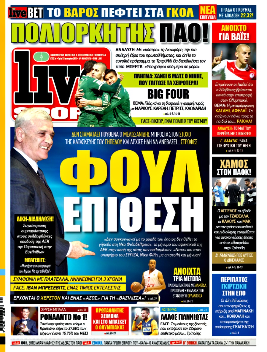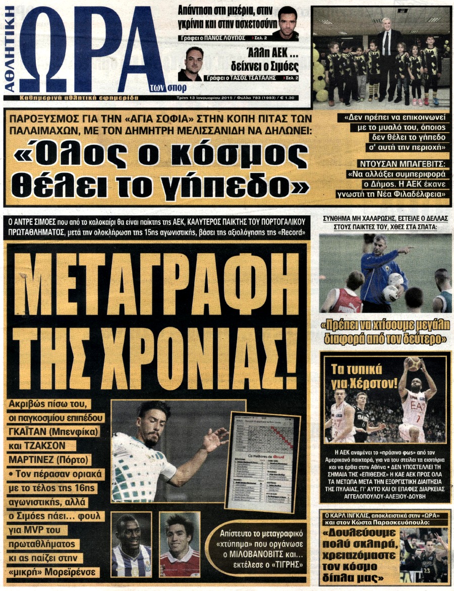 Οι αθλητικές εφημερίδες Enikos Newsroom 07:55, Τρίτη 13 Ιανουαρίου 2015 Media Διαβάστε τα πρωτοσέλιδα των αθλητικών εφημερίδων: ΑΘΛΗΤΙΚΕΣ ΕΦΗΜΕΡΙΔΕΣ ΕΦΗΜΕΡΙΔΕΣ ΠΡΩΤΟΣΕΛΙΔΑ Μοιράσου το: σχολίασε κι εσύ (0 σχόλια) Ακολουθήστε το enikos.gr στο Google News και μάθετε πρώτοι όλες τις ειδήσεις Δείτε όλες τις τελευταίες ειδήσεις από την Ελλάδα και τον Κόσμο στο enikos.gr Ειδήσεις Ροή Ειδήσεων 2 ώρες πριν Ευρωπαϊκή Ένωση: Συμφωνία για δάνειο 90 δισ. ευρώ στην Ουκρανία τη διετία 2026-2027 7 ώρες πριν ΟΠΕΚΕΠΕ: Προφυλακιστέος ο φερόμενος αρχηγός και ο λογιστής της εγκληματικής οργάνωσης 8 ώρες πριν Αυξάνουν την πίεση προς την κυβέρνηση οι αγρότες: Κλείνουν παρακαμπτήριους και ανοίγουν διόδια – Τι θα γίνει τις γιορτές 8 ώρες πριν Φοινικούντα: Το Σάββατο απολογείται ο 30χρονος γιος γνωστού επιχειρηματία της Πλάκας που παραδόθηκε – Όσα είπε στους αστυνομικούς και ο ρόλος του στο έγκλημα 6 ώρες πριν ΑΕΚ – Κραϊόβα 3-2: Επική ανατροπή και πρόκριση στους «16» του Conference League η Ένωση 8 ώρες πριν Αρχαιολόγοι ανακάλυψαν ρωμαϊκά τεχνουργήματα από μια πόλη που δεν υπήρξε ποτέ – Τα τρία εντυπωσιακά κτίρια και ο αμφορέας με τις… σαρδέλες 9 ώρες πριν Ύπνος: Η απλή βραδινή ρουτίνα για να προστατεύσετε τα μαλλιά σας από το κρύο κατά τη διάρκεια του χειμώνα 10 ώρες πριν Manifesting: Πώς να συναντήσετε τον σύντροφο της ζωής σας, ανάλογα με τον μήνα γέννησής σας 2 ημέρες πριν 20 χρόνια τα Χριστούγεννα ξεκινούν στα Public με μεγάλη ποικιλία σε δώρα! 3 λεπτά πριν Πέντε νεκροί σε πλήγματα των ΗΠΑ κατά δύο σκαφών που φέρεται να μετέφεραν ναρκωτικά στον Ανατολικό Ειρηνικό 11 λεπτά πριν ΕΥΔΑΠ: Αλλάζουν τα τιμολόγια του νερού 19 λεπτά πριν Οπτική ψευδαίσθηση: Μόνο αν έχεις αετίσια ματιά θα βρεις τον παπαγάλο σε 12 δευτερόλεπτα 26 λεπτά πριν Αθήνα: Βρέθηκε η 16χρονη που είχε εξαφανιστεί από τις 6 Δεκεμβρίου – Η ανακοίνωση από το «Χαμόγελο του Παιδιού» 34 λεπτά πριν Κρύα χέρια και πόδια: Γιατρός εξηγεί ποια είναι η αίτια και πότε πρέπει να ανησυχήσετε ENIKOS NETWORK Σε περίοδο αυξημένης δραστηριότητας η γρίπη στην Ελλάδα-Μέτρα προστασίας από τον ΕΟΔΥ Σκέφτεστε συνέχεια συζητήσεις που έχετε κάνει; Τι σημαίνει αυτό, σύμφωνα με ειδικό Στεγαστικό: Τι λέει η ΠΟΜΙΔΑ για τα νέα μέτρα που ανακοίνωσε ο Κυριάκος Μητσοτάκης Λαγκάρντ: Αισιόδοξη για την ανάπτυξη της Ευρωζώνης, αβέβαιη για τον πληθωρισμό Χαρτογραφώντας το «σημείο χωρίς επιστροφή»: Για πρώτη φορά αποκαλύπτεται με λεπτομέρεια το ακανθώδες όριο της ατμόσφαιρας τ... Η Google καταργεί τη λειτουργία «dark web report» – Πώς θα μπορούν οι χρήστες να διαγράφουν τα δεδομένα τους περισσότερα 05:48 , Παρασκευή 19 Δεκεμβρίου 2025 Οι οικονομικές εφημερίδες 19/12/2025 Διαβάστε τα πρωτοσέλιδα από τις οικονομικές εφημερίδες, σήμερα 19/12/2025. 05:43 , Παρασκευή 19 Δεκεμβρίου 2025 Οι αθλητικές εφημερίδες 19/12/2025 Διαβάστε τα πρωτοσέλιδα από τις αθλητικές εφημερίδες, σήμερα 19/12/2025. 05:38 , Παρασκευή 19 Δεκεμβρίου 2025 Οι πολιτικές εφημερίδες 19/12/2025 Διαβάστε τα πρωτοσέλιδα από τις πολιτικές εφημερίδες, σήμερα 19/12/2025. 02:50 , Παρασκευή 19 Δεκεμβρίου 2025 GNTM: «Κλείδωσαν» οι τέσσερις φιναλίστ – Μεγάλη ανατροπή στις τελευταίες αποχωρήσεις Για προτελευταία φορά εμφανίστηκαν στο πλατό του GNTM οι φιναλίστ του φετινού κύκλου, το βράδυ... ΤΕΛΕΥΤΑΙΕΣ ΕΙΔΗΣΕΙΣ 3 λεπτά πριν Πέντε νεκροί σε πλήγματα των ΗΠΑ κατά δύο σκαφών που... 11 λεπτά πριν ΕΥΔΑΠ: Αλλάζουν τα τιμολόγια του νερού 19 λεπτά πριν Οπτική ψευδαίσθηση: Μόνο αν έχεις αετίσια ματιά θα... 26 λεπτά πριν Αθή