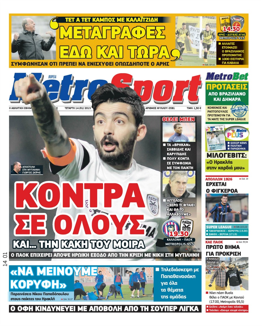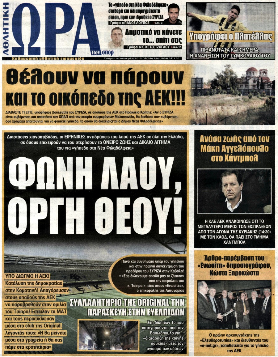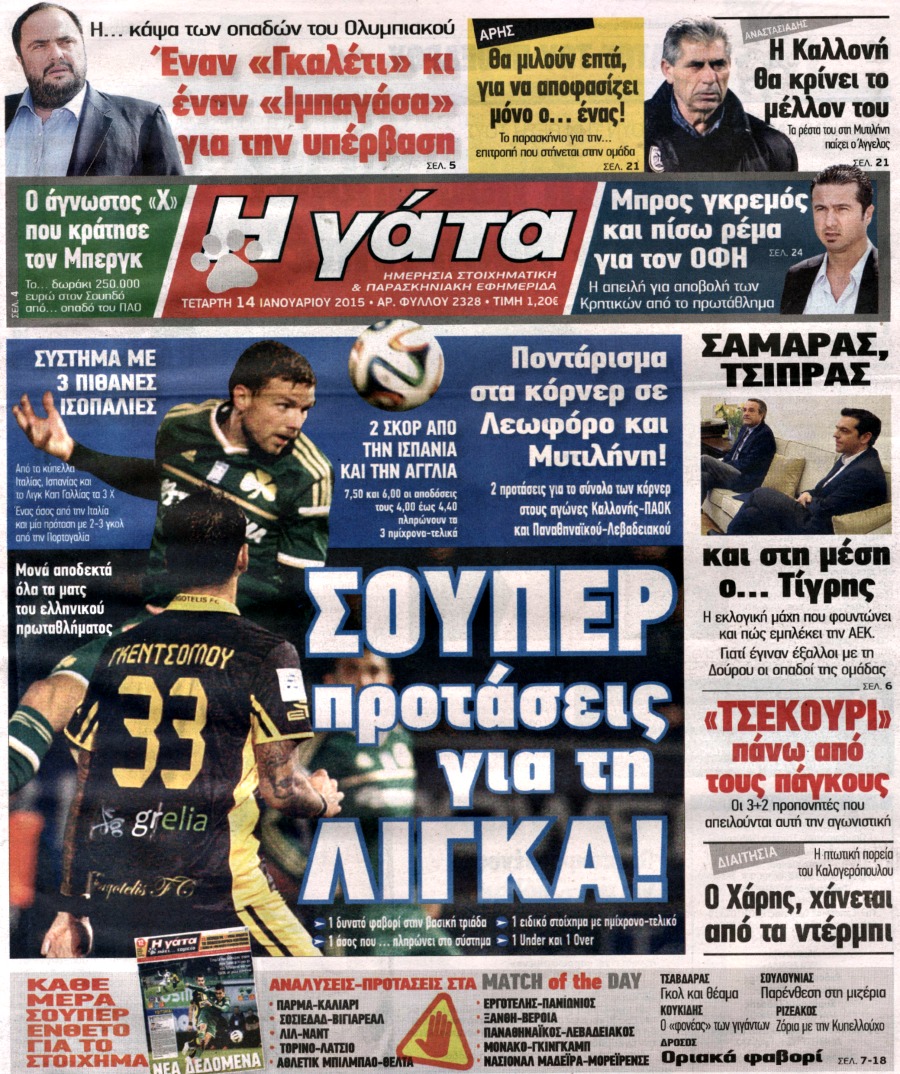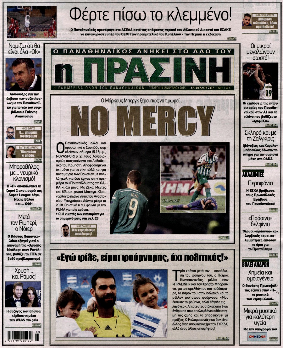 Οι αθλητικές εφημερίδες Enikos Newsroom 07:49, Τετάρτη 14 Ιανουαρίου 2015 Media Διαβάστε τα πρωτοσέλιδα των αθλητικών εφημερίδων: ΑΘΛΗΤΙΚΕΣ ΕΦΗΜΕΡΙΔΕΣ ΕΦΗΜΕΡΙΔΕΣ ΠΡΩΤΟΣΕΛΙΔΑ Μοιράσου το: σχολίασε κι εσύ (0 σχόλια) Ακολουθήστε το enikos.gr στο Google News και μάθετε πρώτοι όλες τις ειδήσεις Δείτε όλες τις τελευταίες ειδήσεις από την Ελλάδα και τον Κόσμο στο enikos.gr Ειδήσεις Ροή Ειδήσεων 2 ώρες πριν Μητσοτάκης για αγρότες: Ελπίζω πως θα απομακρυνθούν σύντομα από τα μπλόκα 3 ώρες πριν Έρευνα MRB: Η πρόθεση ψήφου και τα σημαντικότερα προβλήματα – Οι «λέξεις» που εκφράζουν τους πολίτες 15 λεπτά πριν Αμοργός: «Θα προσπαθήσω να το κάνω κάθε μέρα» – Ποιος είναι ο αγρότης που έστησε μόνος του το πρώτο μπλόκο στο νησί 51 λεπτά πριν Μισέλ Ομπάμα: Εμφανώς αδυνατισμένη στην εκπομπή του Τζίμι Κίμελ – Οι φήμες για τη χρήση Ozempic και η «φιλία» της με τον Ρομπ Ράινερ 45 λεπτά πριν Αγρότες: Επ’ αόριστον μπλόκο στον σταθμό στον Προμαχώνα για τα φορτηγά – Κλείνει το ρεύμα εισόδου στα Μάλγαρα 3 ώρες πριν Τα 4 ζώδια που ξαναβρίσκουν τον εαυτό τους – «Μπαίνετε επιτέλους στην ουσία των πραγμάτων» 4 ώρες πριν 20 χρόνια τα Χριστούγεννα ξεκινούν στα Public με μεγάλη ποικιλία σε δώρα! 3 ώρες πριν «Δεν είχα κλάψει από τότε που διαγνώστηκα με καρκίνο, ώσπου ένα τηλεφώνημα με έκανε να λυγίσω» – Η συγκλονιστική εξομολόγηση ενός άνδρα 2 ώρες πριν Τα 7 σπάνια χαρακτηριστικά που κάνουν κάποιους ανθρώπους ακαταμάχητους 2 λεπτά πριν Λάκης Γαβαλάς, Σουζάνα Κεγγίτση και Έλενα Γαλύφα μας περιμένουν σήμερα στο πιο stylish Χριστουγεννιάτικο ραντεβού στο Athens Metro Mall – Το Madwalk Gifting Lounge by ΣΚΡΑΤΣ επιστρέφει σήμερα από τις 14:00 έως τις 18:30 7 λεπτά πριν Αγρίνιο: Συνελήφθη μαθητής που απείλησε τον διευθυντή και εκπαιδευτικούς – Χειροπέδες και στη μητέρα του 12 λεπτά πριν Bloomberg: Οι ΗΠΑ ετοιμάζουν νέες κυρώσεις σε βάρος της Ρωσίας εάν ο Πούτιν απορρίψει μια ειρηνευτική συμφωνία 15 λεπτά πριν Αμοργός: «Θα προσπαθήσω να το κάνω κάθε μέρα» – Ποιος είναι ο αγρότης που έστησε μόνος του το πρώτο μπλόκο στο νησί 18 λεπτά πριν Βίντεο: Με γερανό απομακρύνθηκε αυτοκίνητο στο Μαρούσι – Η οδηγός… είχε αργήσει σε ραντεβού ENIKOS NETWORK Ανησυχητική αύξηση της υπέρτασης στα παιδιά – Πώς θα τα προστατέψουμε; Αδενώματα Υπόφυσης: Μια πάθηση καλοήθης, αλλά όχι αθώα Διεθνής Οργανισμός Ενέργειας (ΔΟΕ, IEA): Τι δείχνουν τα νέα στοιχεία για την παγκόσμια κατανάλωση άνθρακα Διευκρινίσεις από το ΥΠΑΑΤ και τον ΟΠΕΚΕΠΕ για την εξόφληση της βασικής ενίσχυσης στους αγρότες Σύγχρονος Νοστράδαμος: Προειδοποιεί για «μεγάλο γεγονός» τους επόμενους μήνες που θα συγκλονίσει τη Βρετανία και τον κόσμο Τεστ παρατηρητικότητας: Μπορείτε να βρείτε τις 3 διαφορές στις εικόνες με έναν πιγκουίνο σε 14 δευτερόλεπτα περισσότερα 12:35 , Τετάρτη 17 Δεκεμβρίου 2025 Μίρκα Παπακωνσταντίνου: «Δεν ήμουν αισιόδοξη για τα νούμερα – Είμαι ρεαλίστρια» Στα γυρίσματα του εορταστικού επεισοδίου της αγαπημένης σειράς “Το Σόι Σου”, βρέθηκε η κάμερα ... 12:12 , Τετάρτη 17 Δεκεμβρίου 2025 Ακούστε την εκπομπή του Νίκου Χατζηνικολάου 17/12/2025 Ακούστε την εκπομπή του Νίκου Χατζηνικολάου στον ραδιοφωνικό σταθμό RealFm 97,8, την Τετάρτη 1... 11:35 , Τετάρτη 17 Δεκεμβρίου 2025 Home Alone: Το σπίτι της ταινίας θα ανακαινιστεί – Επιστροφή στην αισθητική της δεκαετίας του ’90 Οι νέοι ιδιοκτήτες του πραγματικού σπιτιού που παρουσιάζεται στην κλασική ταινία του 1990 «Hom... 11:25 , Τετάρτη 17 Δεκεμβρίου 2025 Grand Hotel: Απόψε το τελευταίο επεισόδιο τη