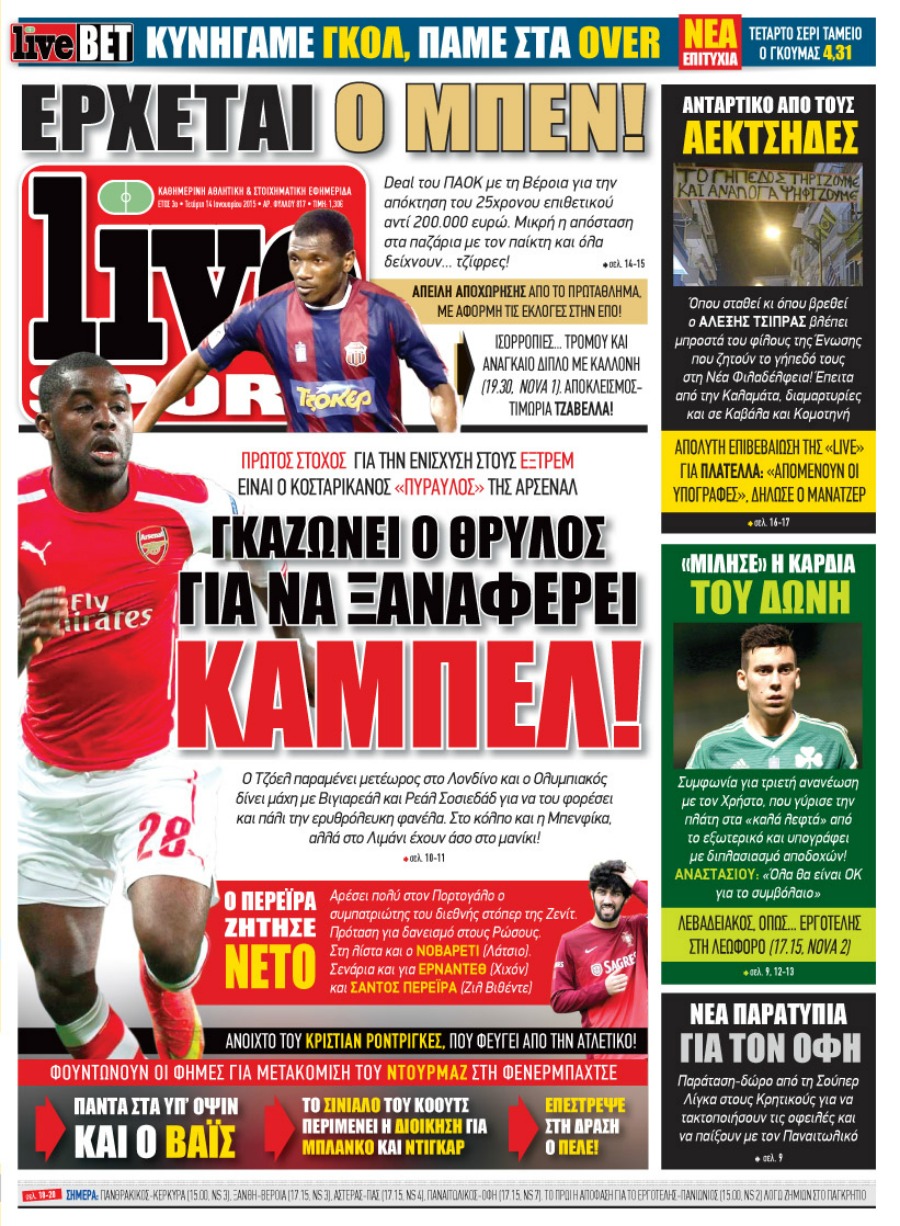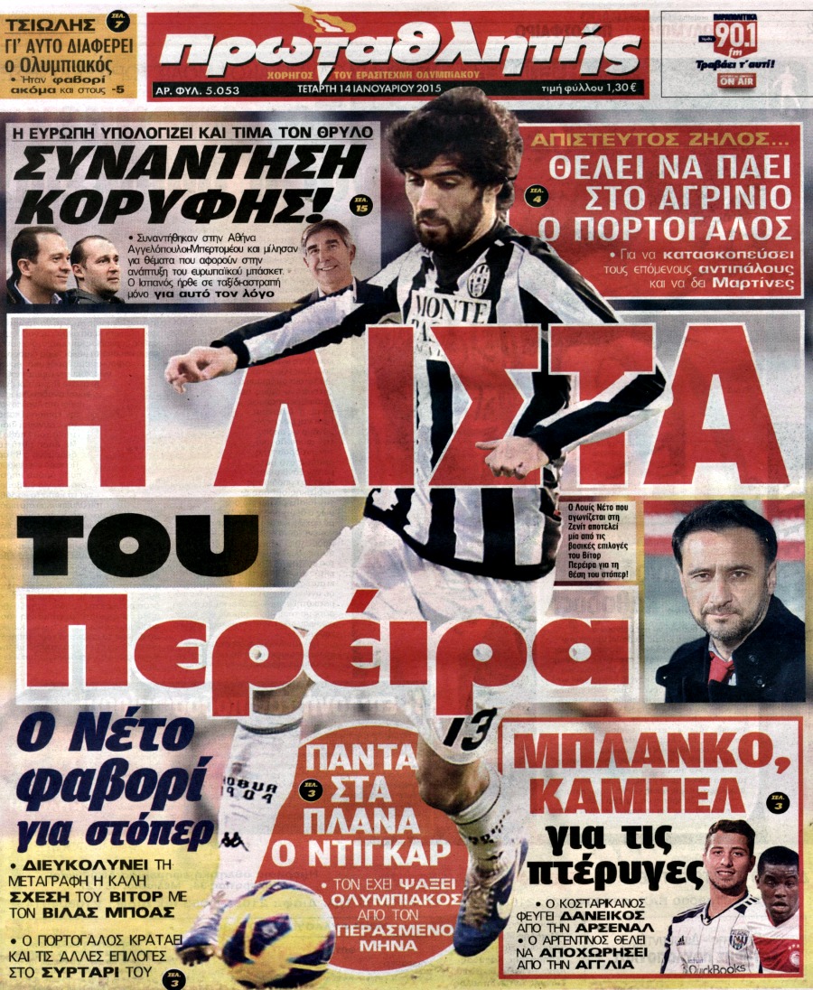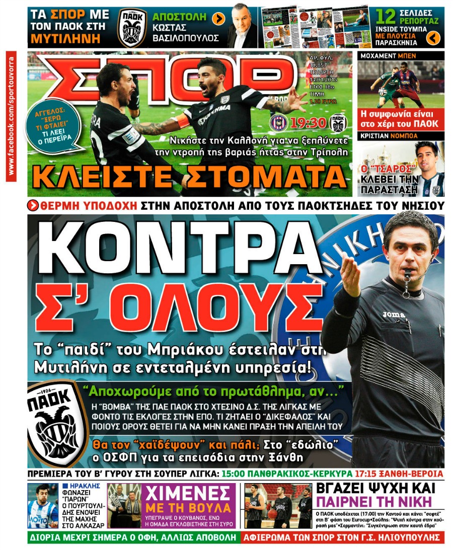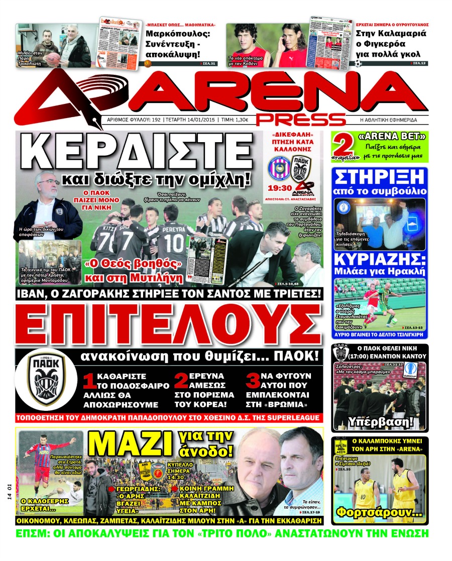 Οι αθλητικές εφημερίδες Enikos Newsroom 07:49, Τετάρτη 14 Ιανουαρίου 2015 Media Διαβάστε τα πρωτοσέλιδα των αθλητικών εφημερίδων: ΑΘΛΗΤΙΚΕΣ ΕΦΗΜΕΡΙΔΕΣ ΕΦΗΜΕΡΙΔΕΣ ΠΡΩΤΟΣΕΛΙΔΑ Μοιράσου το: σχολίασε κι εσύ (0 σχόλια) Ακολουθήστε το enikos.gr στο Google News και μάθετε πρώτοι όλες τις ειδήσεις Δείτε όλες τις τελευταίες ειδήσεις από την Ελλάδα και τον Κόσμο στο enikos.gr Ειδήσεις Ροή Ειδήσεων 2 ώρες πριν Μητσοτάκης για αγρότες: Ελπίζω πως θα απομακρυνθούν σύντομα από τα μπλόκα 3 ώρες πριν Έρευνα MRB: Η πρόθεση ψήφου και τα σημαντικότερα προβλήματα – Οι «λέξεις» που εκφράζουν τους πολίτες 15 λεπτά πριν Αμοργός: «Θα προσπαθήσω να το κάνω κάθε μέρα» – Ποιος είναι ο αγρότης που έστησε μόνος του το πρώτο μπλόκο στο νησί 51 λεπτά πριν Μισέλ Ομπάμα: Εμφανώς αδυνατισμένη στην εκπομπή του Τζίμι Κίμελ – Οι φήμες για τη χρήση Ozempic και η «φιλία» της με τον Ρομπ Ράινερ 45 λεπτά πριν Αγρότες: Επ’ αόριστον μπλόκο στον σταθμό στον Προμαχώνα για τα φορτηγά – Κλείνει το ρεύμα εισόδου στα Μάλγαρα 3 ώρες πριν Τα 4 ζώδια που ξαναβρίσκουν τον εαυτό τους – «Μπαίνετε επιτέλους στην ουσία των πραγμάτων» 4 ώρες πριν 20 χρόνια τα Χριστούγεννα ξεκινούν στα Public με μεγάλη ποικιλία σε δώρα! 3 ώρες πριν «Δεν είχα κλάψει από τότε που διαγνώστηκα με καρκίνο, ώσπου ένα τηλεφώνημα με έκανε να λυγίσω» – Η συγκλονιστική εξομολόγηση ενός άνδρα 2 ώρες πριν Τα 7 σπάνια χαρακτηριστικά που κάνουν κάποιους ανθρώπους ακαταμάχητους 2 λεπτά πριν Λάκης Γαβαλάς, Σουζάνα Κεγγίτση και Έλενα Γαλύφα μας περιμένουν σήμερα στο πιο stylish Χριστουγεννιάτικο ραντεβού στο Athens Metro Mall – Το Madwalk Gifting Lounge by ΣΚΡΑΤΣ επιστρέφει σήμερα από τις 14:00 έως τις 18:30 7 λεπτά πριν Αγρίνιο: Συνελήφθη μαθητής που απείλησε τον διευθυντή και εκπαιδευτικούς – Χειροπέδες και στη μητέρα του 12 λεπτά πριν Bloomberg: Οι ΗΠΑ ετοιμάζουν νέες κυρώσεις σε βάρος της Ρωσίας εάν ο Πούτιν απορρίψει μια ειρηνευτική συμφωνία 15 λεπτά πριν Αμοργός: «Θα προσπαθήσω να το κάνω κάθε μέρα» – Ποιος είναι ο αγρότης που έστησε μόνος του το πρώτο μπλόκο στο νησί 18 λεπτά πριν Βίντεο: Με γερανό απομακρύνθηκε αυτοκίνητο στο Μαρούσι – Η οδηγός… είχε αργήσει σε ραντεβού ENIKOS NETWORK Ανησυχητική αύξηση της υπέρτασης στα παιδιά – Πώς θα τα προστατέψουμε; Αδενώματα Υπόφυσης: Μια πάθηση καλοήθης, αλλά όχι αθώα Διεθνής Οργανισμός Ενέργειας (ΔΟΕ, IEA): Τι δείχνουν τα νέα στοιχεία για την παγκόσμια κατανάλωση άνθρακα Διευκρινίσεις από το ΥΠΑΑΤ και τον ΟΠΕΚΕΠΕ για την εξόφληση της βασικής ενίσχυσης στους αγρότες Σύγχρονος Νοστράδαμος: Προειδοποιεί για «μεγάλο γεγονός» τους επόμενους μήνες που θα συγκλονίσει τη Βρετανία και τον κόσμο Τεστ παρατηρητικότητας: Μπορείτε να βρείτε τις 3 διαφορές στις εικόνες με έναν πιγκουίνο σε 14 δευτερόλεπτα περισσότερα 12:35 , Τετάρτη 17 Δεκεμβρίου 2025 Μίρκα Παπακωνσταντίνου: «Δεν ήμουν αισιόδοξη για τα νούμερα – Είμαι ρεαλίστρια» Στα γυρίσματα του εορταστικού επεισοδίου της αγαπημένης σειράς “Το Σόι Σου”, βρέθηκε η κάμερα ... 12:12 , Τετάρτη 17 Δεκεμβρίου 2025 Ακούστε την εκπομπή του Νίκου Χατζηνικολάου 17/12/2025 Ακούστε την εκπομπή του Νίκου Χατζηνικολάου στον ραδιοφωνικό σταθμό RealFm 97,8, την Τετάρτη 1... 11:35 , Τετάρτη 17 Δεκεμβρίου 2025 Home Alone: Το σπίτι της ταινίας θα ανακαινιστεί – Επιστροφή στην αισθητική της δεκαετίας του ’90 Οι νέοι ιδιοκτήτες του πραγματικού σπιτιού που παρουσιάζεται στην κλασική ταινία του 1990 «Hom... 11:25 , Τετάρτη 17 Δεκεμβρίου 2025 Grand Hotel: Απόψε το τελευταίο επεισόδιο τη