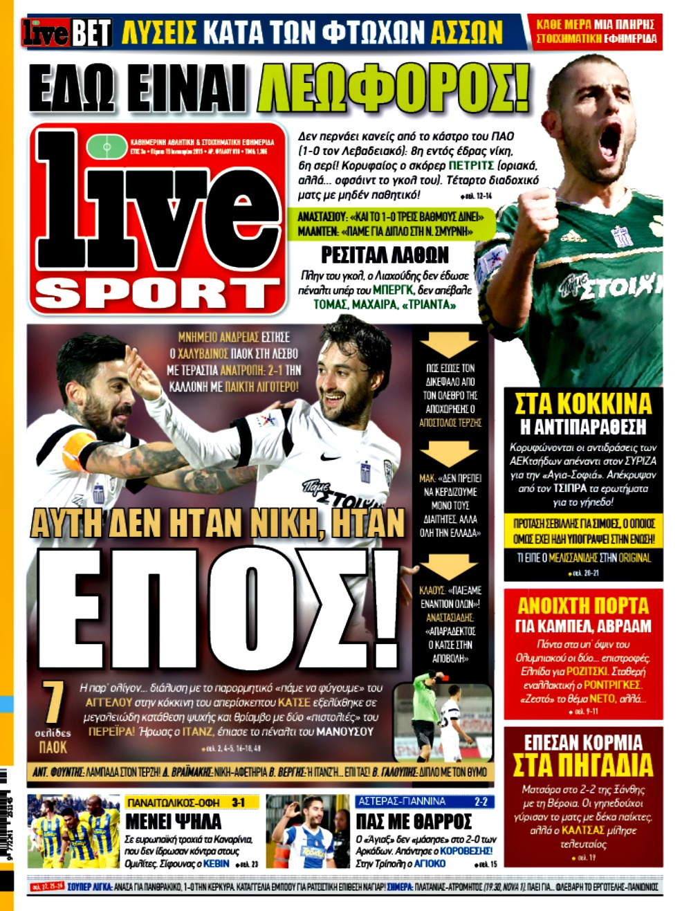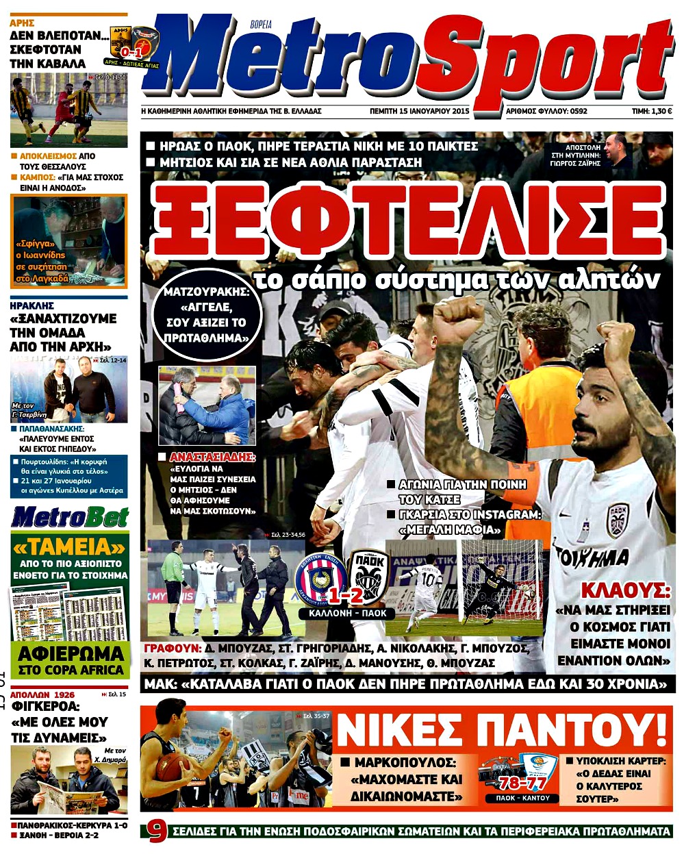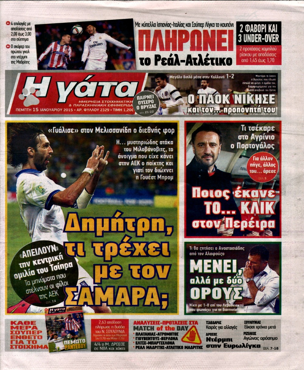 Οι αθλητικές εφημερίδες Enikos Newsroom 07:52, Πέμπτη 15 Ιανουαρίου 2015 Media Διαβάστε τα πρωτοσέλιδα των αθλητικών εφημερίδων: ΑΘΛΗΤΙΚΕΣ ΕΦΗΜΕΡΙΔΕΣ ΕΦΗΜΕΡΙΔΕΣ ΠΡΩΤΟΣΕΛΙΔΑ Μοιράσου το: σχολίασε κι εσύ (0 σχόλια) Ακολουθήστε το enikos.gr στο Google News και μάθετε πρώτοι όλες τις ειδήσεις Δείτε όλες τις τελευταίες ειδήσεις από την Ελλάδα και τον Κόσμο στο enikos.gr Ειδήσεις Ροή Ειδήσεων 7 ώρες πριν Μητσοτάκης: Αναγκαία η μεταρρύθμιση του πρωτογενούς τομέα – Τα 6 νέα μέτρα για το στεγαστικό και οι αναφορές σε «Ιθάκη» και «πολιτικούς του καναπέ» 6 ώρες πριν Δάνεια σε ελβετικό φράγκο: Τα βασικά σημεία της ρύθμισης – ανάσας για 40.000 δανειολήπτες – Αναλυτικός οδηγός με ερωτήσεις και απαντήσεις 6 ώρες πριν Κυψέλη: Εξιτήριο πήρε η 14χρονη μαθήτρια που μαχαιρώθηκε από την 16χρονη σε σχολείο – «Θέλω να βοηθήσω το παιδί, έχει μπλέξει με κακές παρέες» 6 ώρες πριν Τραμπ: Γιατί κατέθεσε τώρα την αγωγή κατά του BBC – Πώς η κίνησή του εξυπηρετεί το νέο δόγμα του για «αντίσταση» στην Ευρώπη, υπέρ των συντηρητικών 7 ώρες πριν ΟΠΕΚΕΠΕ – Παράνομες επιδοτήσεις: Ελεύθεροι με περιοριστικούς όρους και οι 7 κατηγορούμενοι που απολογήθηκαν σήμερα 6 ώρες πριν Ανακαλύφθηκε βυθισμένη πέτρινη κατασκευή ανοιχτά της Κριμαίας – Αποτελεί μέρος αρχαίας ελληνικής αποικίας 7 ώρες πριν Ύπνος: Αυτό μπορεί να είναι το χειρότερο λάθος για το βιολογικό ρολόι σας, σύμφωνα με ειδικό 8 ώρες πριν Αριθμολογία: Οι άνθρωποι που έχουν γεννηθεί αυτές τις 3 ημερομηνίες, προσελκύουν μεγάλη τύχη πριν από το τέλος του 2025 10 ώρες πριν Οι 7 συμπεριφορές που μαρτυρούν ότι ένας άνδρας επενδύει μακροπρόθεσμα σε μια σχέση 8 λεπτά πριν Παλαιστινιακό: «Η λύση των δύο κρατών είναι ο μόνος βιώσιμος δρόμος», τόνισε η Ελλάδα στο Συμβούλιο Ασφαλείας του ΟΗΕ 16 λεπτά πριν Ελένη Καρακάση: «Ένιωθα πολύ αδικημένη, δεν μπορούσα να ελέγξω τον εαυτό μου σε δύσκολες στιγμές» 24 λεπτά πριν Κλαούδια Σέινμπαουμ προς Ντόναλντ Τραμπ για φαιντανύλη: Να επιτεθούμε στα αίτια κατανάλωσης αντί να την κατατάσσουμε στα «όπλα μαζικής καταστροφής» 32 λεπτά πριν Ρωσία: Ουκρανική επίθεση με drones στο Κρασνοντάρ – Δύο τραυματίες, ζημιές σε σπίτια και διακοπή ρεύματος 40 λεπτά πριν Αντόνιο Ταγιάνι: Νομικά εμπόδια για τη χρήση των ρωσικών κεφαλαίων υπέρ της Ουκρανίας ENIKOS NETWORK Αίτημα ΙΣΑ για την εξαίρεση των προσωπικών γιατρών από τις κατ’ οίκον επισκέψεις Η σκανδιναβική μέθοδος στον ύπνο που μπορεί να σώσει έναν γάμο Πιερρακάκης: Ο προϋπολογισμός συμβάλλει ουσιαστικά στην ενίσχυση της αγοραστικής δύναμης της πλειονότητας των εργαζομένων e-ΕΦΚΑ: Παρατείνεται η προθεσμία για την υποβολή ΑΠΔ – Ποιους αφορά Σύγχρονος Νοστράδαμος: Προειδοποιεί για «μεγάλο γεγονός» τους επόμενους μήνες που θα συγκλονίσει τη Βρετανία και τον κόσμο Τεστ παρατηρητικότητας: Μπορείτε να βρείτε τις 3 διαφορές στις εικόνες με έναν πιγκουίνο σε 14 δευτερόλεπτα περισσότερα 20:06 , Τρίτη 16 Δεκεμβρίου 2025 Ο ΣΚΑΙ καταγγέλλει τον ΕΚΚΟΜΕΔ Επιστολή με την οποία καταγράφει την έντονη διαμαρτυρία του προς τον διευθύνοντα σύμβουλο του... 17:40 , Τρίτη 16 Δεκεμβρίου 2025 Eurovision: Στις 4 Ιανουαρίου αποκαλύπτονται τα 28 τραγούδια του ελληνικού τελικού Η αγωνία τελειώνει, η γιορτή της Eurovision αρχίζει στην ΕΡΤ από τις πρώτες ημέρες της νέας χρ... 17:09 , Τρίτη 16 Δεκεμβρίου 2025 Alter Ego Media: Βαθύτατη θλίψη και ειλικρινή συλλυπητήρια για την απώλεια της Ειρήνης Μαρινάκη Τη βαθύτατη θλίψη και τα ειλικρινή συλλυπητήριά της εκφράζ