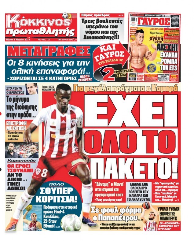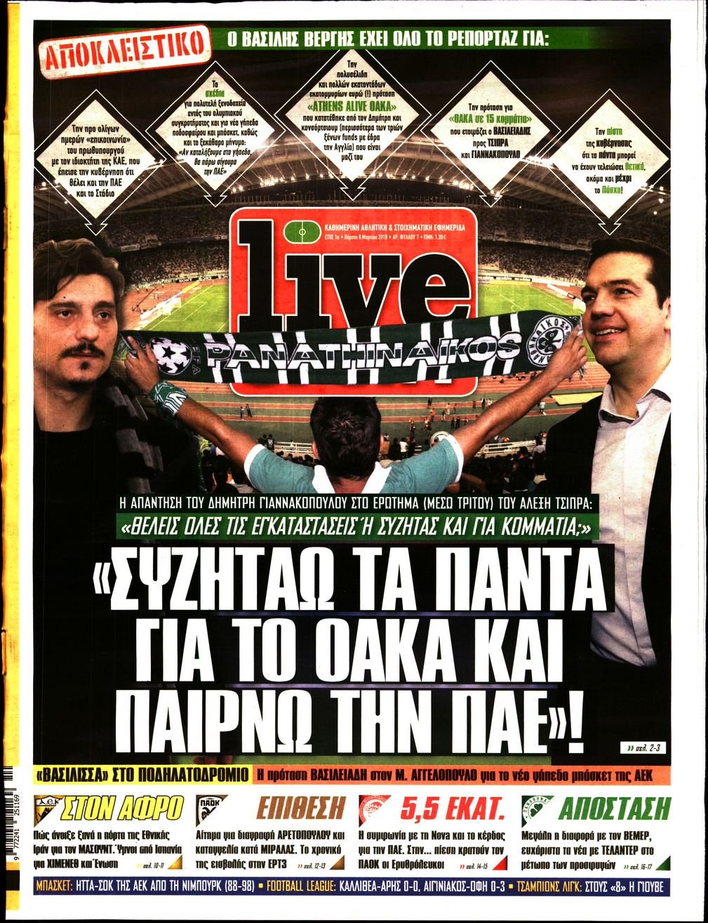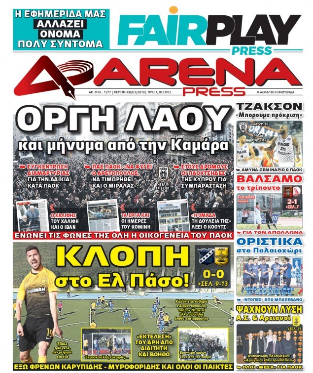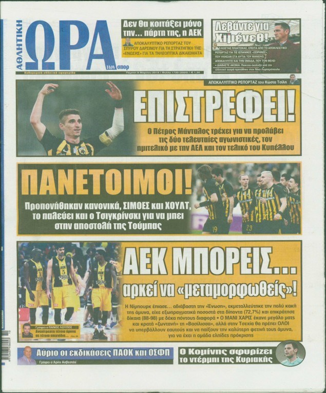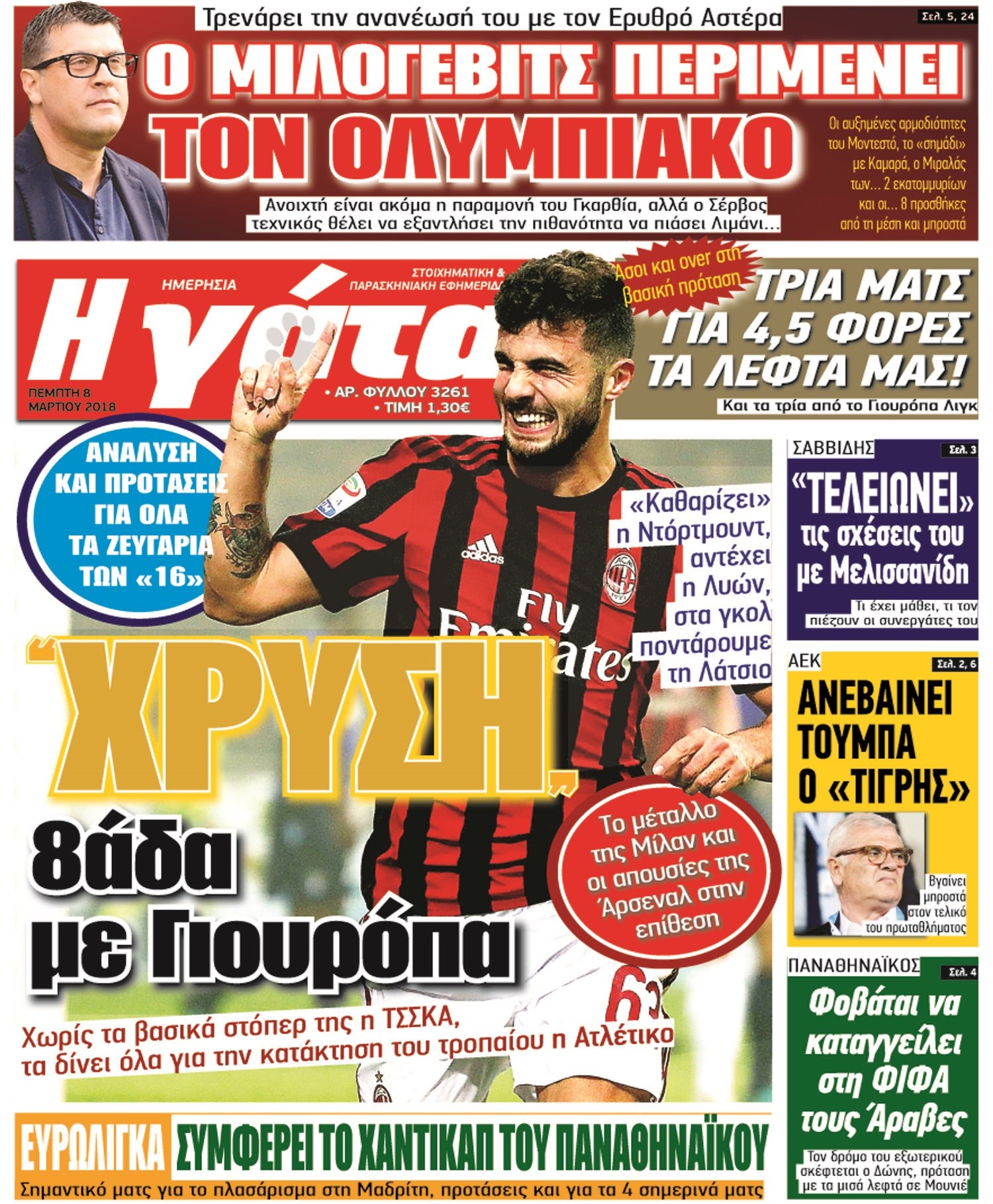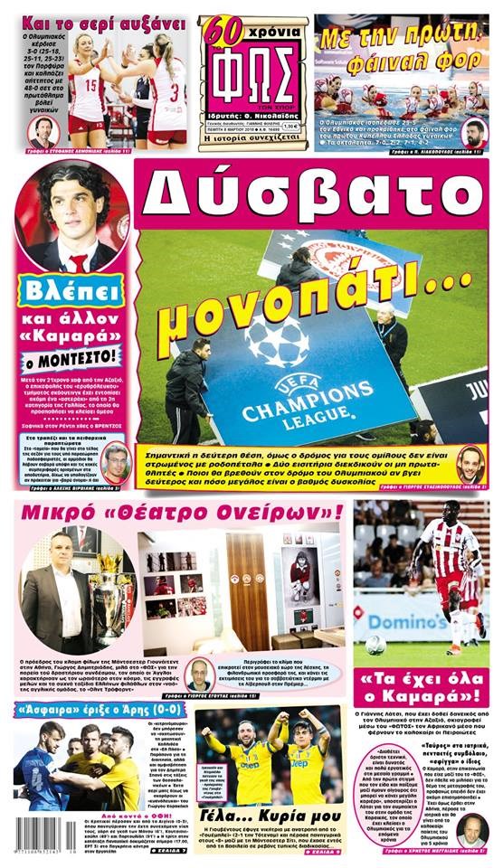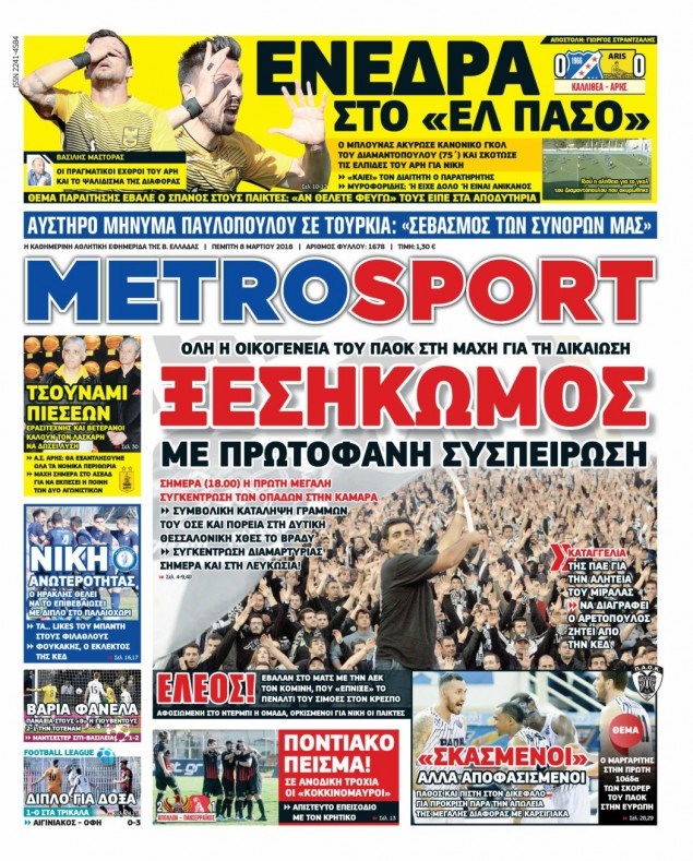 Οι αθλητικές εφημερίδες 8/3/2018 Κώστας Τεό 06:22, Πέμπτη 08 Μαρτίου 2018 Media Διαβάστε τα σημερινά πρωτοσέλιδα των αθλητικών εφημερίδων: ΑΘΛΗΤΙΚΕΣ ΕΦΗΜΕΡΙΔΕΣ ΠΡΩΤΟΣΕΛΙΔΑ Μοιράσου το: σχολίασε κι εσύ (0 σχόλια) Ακολουθήστε το enikos.gr στο Google News και μάθετε πρώτοι όλες τις ειδήσεις Δείτε όλες τις τελευταίες ειδήσεις από την Ελλάδα και τον Κόσμο στο enikos.gr Ειδήσεις Ροή Ειδήσεων 4 ώρες πριν Χριστούγεννα στα μπλόκα: Επιμένουν στις κινητοποιήσεις τους οι αγρότες – Ανοίγουν τα διόδια το Σαββατοκύριακο 4 ώρες πριν Ουκρανία: Η άνευ προηγουμένου επίθεση σε ρωσικό τάνκερ στη Μεσόγειο και το μήνυμα προς στον Πούτιν – Το «μακρύ χέρι» του Κιέβου 4 ώρες πριν Πούτιν: Τα μηνύματα σε Ευρώπη και ΝΑΤΟ από το μαραθώνιο «σόου» του – Η απαίτηση για «σεβασμό» και η ειρήνη «με τους όρους» της Μόσχας 5 ώρες πριν Τραμπ: Δεν αποκλείει την πιθανότητα ενός πολέμου στη Βενεζουέλα – «Ο Μαδούρο ξέρει καλύτερα από τον καθένα τι ακριβώς θέλω» 5 ώρες πριν Συνεχίζει να προκαλεί ο Μίτσκοσκι: «Για μένα το όνομα Μακεδονία είναι ιερό» 4 ώρες πριν Ανακαλύφθηκαν αρχαία χρυσά νομίσματα 2.200 ετών που απεικονίζουν τον θεό Απόλλωνα – Η άγνωστη σύνδεση με τον Φίλιππο Β΄ της Μακεδονίας 5 ώρες πριν Ύπνος: Μια κρυφή κατάσταση του εγκεφάλου πριν από τον ύπνο μπορεί να είναι το “κλειδί” για υψηλή ευφυΐα και δημιουργικότητα 6 ώρες πριν Αριθμολογία: Οι άνθρωποι που έχουν γεννηθεί αυτές τις 4 ημερομηνίες, συχνά παρεξηγούνται – «Η καλοσύνη τους κρύβει τεράστια δύναμη» 7 ώρες πριν Ξεχάστε το καθάρισμα το Σαββατοκύριακο: Ο «κανόνας των 20 λεπτών» που θα σας λύσει τα χέρια 8 λεπτά πριν Θεσσαλονίκη: Εξαφανίστηκε 13χρονος από χώρο φιλοξενίας ασυνόδευτων ανηλίκων στο Ωραιόκαστρο 19 λεπτά πριν Ντόναλντ Τραμπ: «Πολύ βαριά αντίποινα» στη Συρία – «Πλήττουμε πολύ δυνατά οχυρά του Ισλαμικού Κράτους» 33 λεπτά πριν Εξάρχεια: Ένταση με μολότοφ, χημικά και κρότου λάμψης 49 λεπτά πριν ΗΠΑ: Τραγωδία στην Αλαμπάμα – Σκότωσε την δημοσιογράφο σύζυγό του και αυτοκτόνησε μπροστά στον 3χρονο γιο τους 1 ώρα πριν Πρόταση γάμου στο ΣΕΦ κατά την διάρκεια του αγώνα Ολυμπιακός-Βιλερμπάν – Δείτε βίντεο ENIKOS NETWORK Το ΕΚΑΒ τιμήθηκε από την Ακαδημία Αθηνών για τα 40 χρόνια προσφοράς του Έχετε πραγματικά μεγάλη καρδιά; 10 χαρακτηριστικά όσων έχουν καλοσύνη Αναστολή μέτρων αναγκαστικής εκτέλεσης για κτηνοτρόφους που πλήττονται από την ευλογιά των αιγοπροβάτων Πλήρης επάρκεια προϊόντων στις λαϊκές της Αττικής, παρά τις αγροτικές κινητοποιήσεις – Τι απαντούν οι πωλητές Χαρτογραφώντας το «σημείο χωρίς επιστροφή»: Για πρώτη φορά αποκαλύπτεται με λεπτομέρεια το ακανθώδες όριο της ατμόσφαιρας τ... Η Google καταργεί τη λειτουργία «dark web report» – Πώς θα μπορούν οι χρήστες να διαγράφουν τα δεδομένα τους περισσότερα 22:42 , Παρασκευή 19 Δεκεμβρίου 2025 Γιώργος Γιαννόπουλος για “Το σόι σου”: “Είναι ευτυχία και ευλογία αυτή η σειρά” «Είναι ευτυχία και ευλογία η συγκυρία αυτής της σειράς», θα πει ο Γιώργος Γιαννόπουλος -ο αγαπ... 20:37 , Παρασκευή 19 Δεκεμβρίου 2025 Don’t Forget The Lyrics: Η Έλλη Κοκκίνου υποδέχεται 4 παίκτες που θα κάνουν τα πάντα για να μη χάσουν ούτε… μισή λέξη από τους στίχους Το «Don’t Forget The Lyrics» επιστρέφει απόψε, Παρασκευή 19 Δεκεμβρίου, στις 21:00 με νέο επει... 19:31 , Παρασκευή 19 Δεκεμβρίου 2025 GNTM: Απόψε ο μεγάλος τελικός για τους 4 φιναλίστ Έπειτα από μήνες γεμάτους μόδα, δημιουργία και έντονες αναμετρήσεις, το GNTM 2025 κορυφώνεται,... 18:11 , Παρασκευή 19 Δεκεμβρίου 2025 Το 