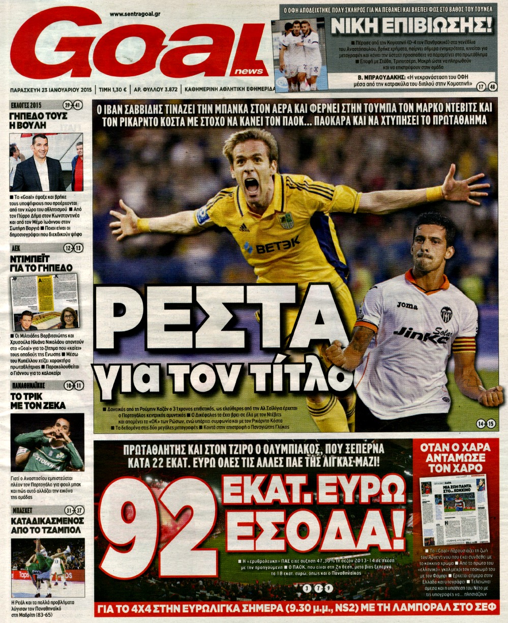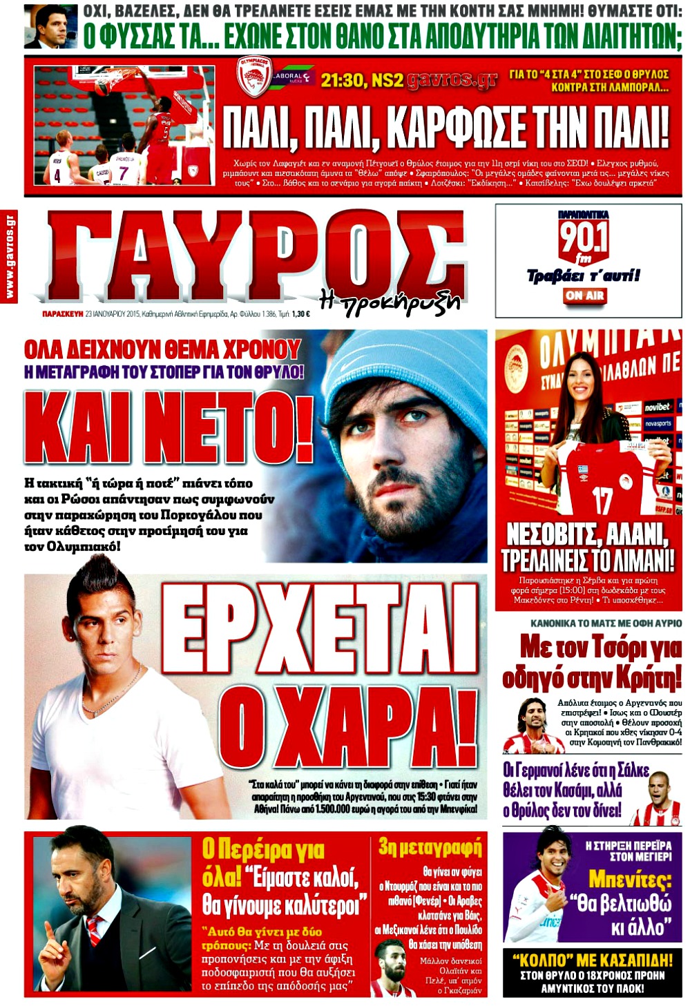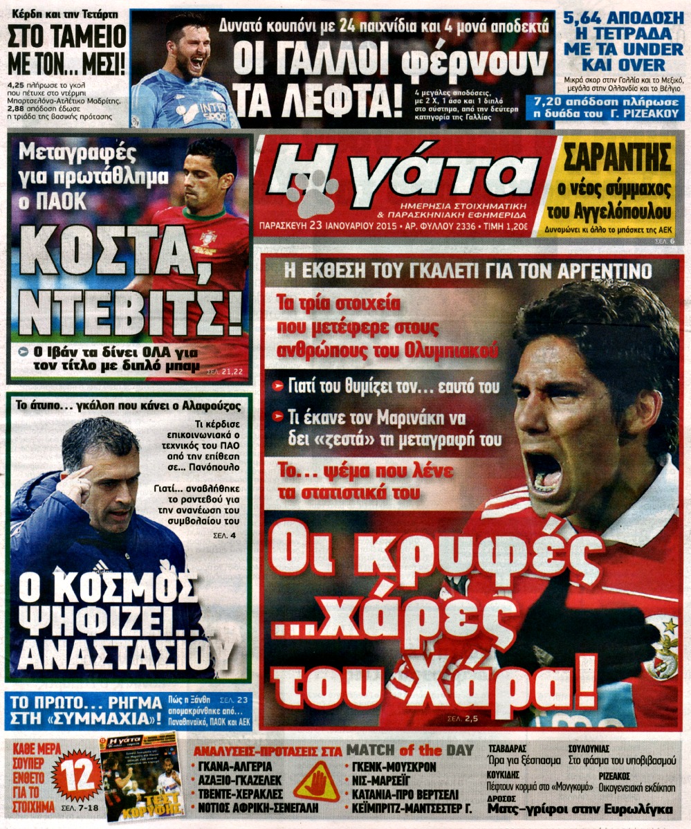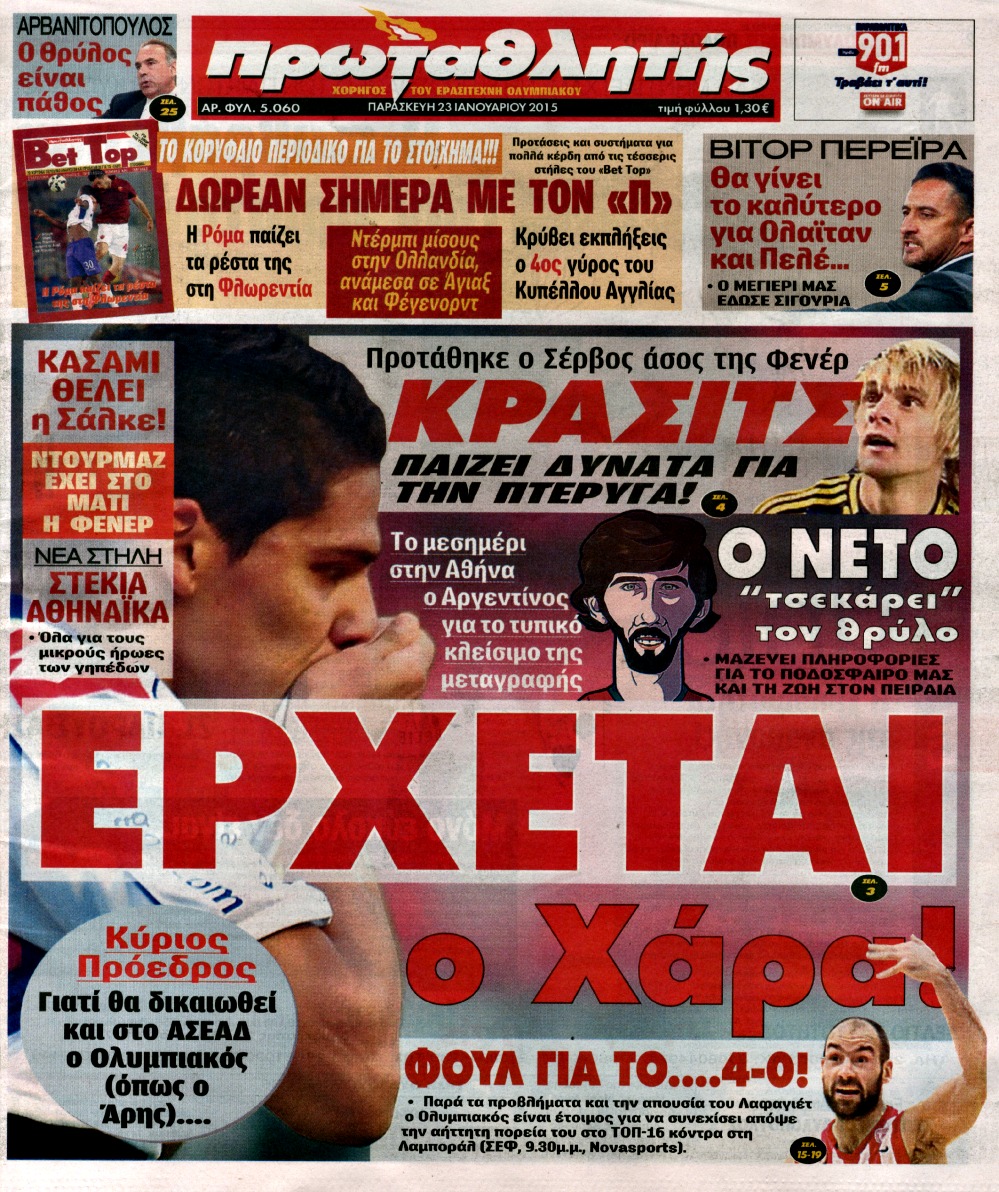Οι αθλητικές εφημερίδες Enikos Newsroom 07:56, Παρασκευή 23 Ιανουαρίου 2015 Media Διαβάστε τα πρωτοσέλιδα των αθλητικών εφημερίδων: ΑΘΛΗΤΙΚΕΣ ΕΦΗΜΕΡΙΔΕΣ ΕΦΗΜΕΡΙΔΕΣ ΠΡΩΤΟΣΕΛΙΔΑ Μοιράσου το: σχολίασε κι εσύ (0 σχόλια) Ακολουθήστε το enikos.gr στο Google News και μάθετε πρώτοι όλες τις ειδήσεις Δείτε όλες τις τελευταίες ειδήσεις από την Ελλάδα και τον Κόσμο στο enikos.gr Ειδήσεις Ροή Ειδήσεων 8 ώρες πριν Μητσοτάκης: Αναγκαία η μεταρρύθμιση του πρωτογενούς τομέα – Τα 6 νέα μέτρα για το στεγαστικό και οι αναφορές σε «Ιθάκη» και «πολιτικούς του καναπέ» 7 ώρες πριν Δάνεια σε ελβετικό φράγκο: Τα βασικά σημεία της ρύθμισης – ανάσας για 40.000 δανειολήπτες – Αναλυτικός οδηγός με ερωτήσεις και απαντήσεις 7 ώρες πριν Κυψέλη: Εξιτήριο πήρε η 14χρονη μαθήτρια που μαχαιρώθηκε από την 16χρονη σε σχολείο – «Θέλω να βοηθήσω το παιδί, έχει μπλέξει με κακές παρέες» 6 ώρες πριν Τραμπ: Γιατί κατέθεσε τώρα την αγωγή κατά του BBC – Πώς η κίνησή του εξυπηρετεί το νέο δόγμα του για «αντίσταση» στην Ευρώπη, υπέρ των συντηρητικών 7 ώρες πριν ΟΠΕΚΕΠΕ – Παράνομες επιδοτήσεις: Ελεύθεροι με περιοριστικούς όρους και οι 7 κατηγορούμενοι που απολογήθηκαν σήμερα 7 ώρες πριν Ανακαλύφθηκε βυθισμένη πέτρινη κατασκευή ανοιχτά της Κριμαίας – Αποτελεί μέρος αρχαίας ελληνικής αποικίας 8 ώρες πριν Ύπνος: Αυτό μπορεί να είναι το χειρότερο λάθος για το βιολογικό ρολόι σας, σύμφωνα με ειδικό 9 ώρες πριν Αριθμολογία: Οι άνθρωποι που έχουν γεννηθεί αυτές τις 3 ημερομηνίες, προσελκύουν μεγάλη τύχη πριν από το τέλος του 2025 11 ώρες πριν Οι 7 συμπεριφορές που μαρτυρούν ότι ένας άνδρας επενδύει μακροπρόθεσμα σε μια σχέση 4 λεπτά πριν Τα ζώδια σήμερα, Τετάρτη 17 Δεκεμβρίου: Κριοί, η αυτοπεποίθησή σας ενισχύεται 12 λεπτά πριν Εφημερεύοντα φαρμακεία σε Αθήνα και Θεσσαλονίκη (17/12) 18 λεπτά πριν Κόστα Ρίκα: Το Κογκρέσο απέρριψε το αίτημα για άρση της ασυλίας του προέδρου Τσάβες 26 λεπτά πριν Κολομβία: Νεκροί τέσσερις αστυνομικοί σε βομβιστικές επιθέσεις ανταρτών 34 λεπτά πριν Στάση εργασίας 11:00 – 17:00 σήμερα στα λεωφορεία του ΟΑΣΑ – Ποιες γραμμές θα λειτουργήσουν ENIKOS NETWORK Αίτημα ΙΣΑ για την εξαίρεση των προσωπικών γιατρών από τις κατ’ οίκον επισκέψεις Η σκανδιναβική μέθοδος στον ύπνο που μπορεί να σώσει έναν γάμο Πιερρακάκης: Ο προϋπολογισμός συμβάλλει ουσιαστικά στην ενίσχυση της αγοραστικής δύναμης της πλειονότητας των εργαζομένων e-ΕΦΚΑ: Παρατείνεται η προθεσμία για την υποβολή ΑΠΔ – Ποιους αφορά Σύγχρονος Νοστράδαμος: Προειδοποιεί για «μεγάλο γεγονός» τους επόμενους μήνες που θα συγκλονίσει τη Βρετανία και τον κόσμο Τεστ παρατηρητικότητας: Μπορείτε να βρείτε τις 3 διαφορές στις εικόνες με έναν πιγκουίνο σε 14 δευτερόλεπτα περισσότερα 20:06 , Τρίτη 16 Δεκεμβρίου 2025 Ο ΣΚΑΙ καταγγέλλει τον ΕΚΚΟΜΕΔ Επιστολή με την οποία καταγράφει την έντονη διαμαρτυρία του προς τον διευθύνοντα σύμβουλο του... 17:40 , Τρίτη 16 Δεκεμβρίου 2025 Eurovision: Στις 4 Ιανουαρίου αποκαλύπτονται τα 28 τραγούδια του ελληνικού τελικού Η αγωνία τελειώνει, η γιορτή της Eurovision αρχίζει στην ΕΡΤ από τις πρώτες ημέρες της νέας χρ... 17:09 , Τρίτη 16 Δεκεμβρίου 2025 Alter Ego Media: Βαθύτατη θλίψη και ειλικρινή συλλυπητήρια για την απώλεια της Ειρήνης Μαρινάκη Τη βαθύτατη θλίψη και τα ειλικρινή συλλυπητήριά της εκφράζει η Alter Ego Media για τον θάνατο ... 13:00 , Τρίτη 16 Δεκεμβρίου 2025 «Στο Παρά Πέντε – 20 Χρόνια Μετά»: Κυκλοφόρησε το τρέιλερ του επετειακού επεισοδίου της θρυλικής σειράς – Πότε θα προβλη