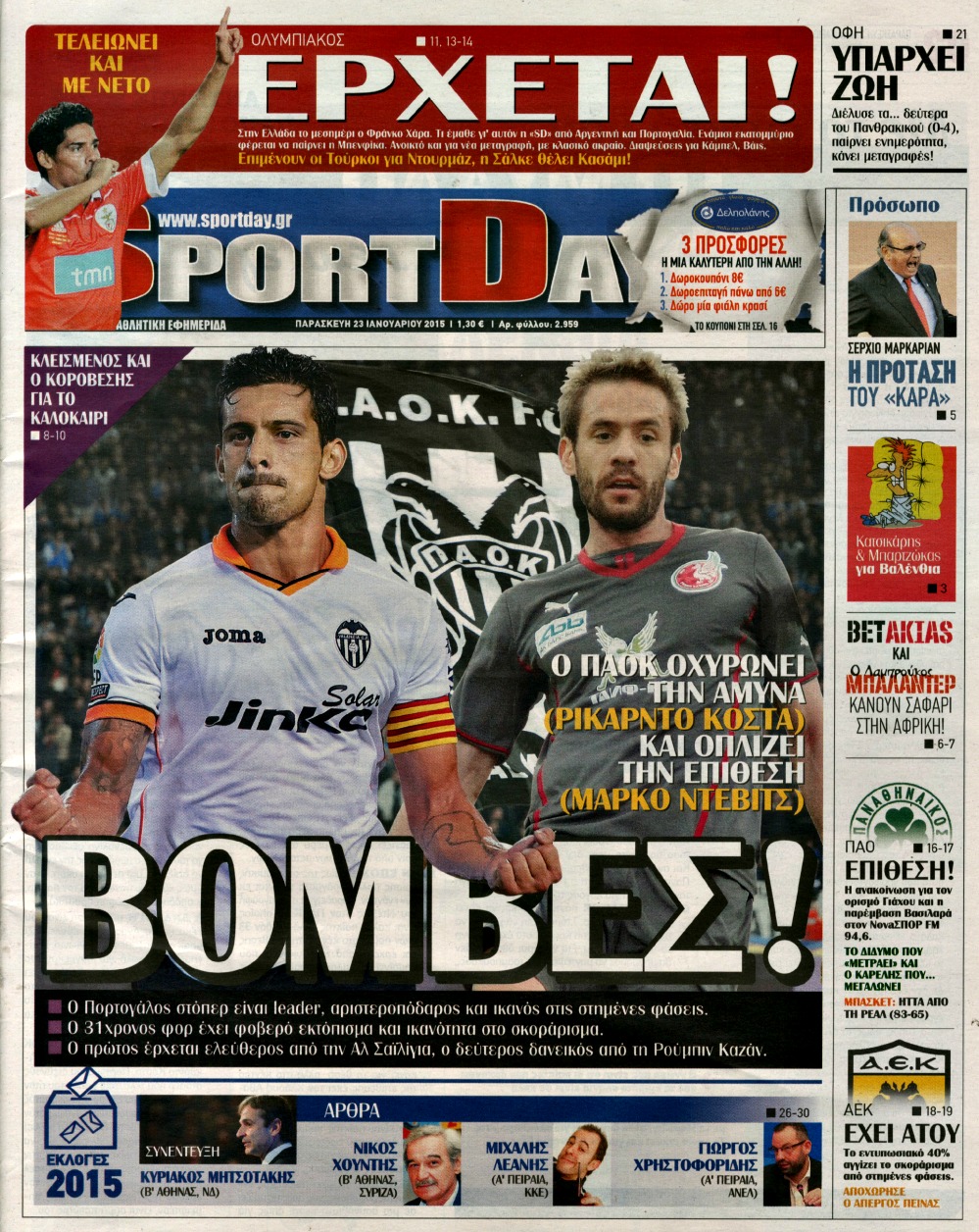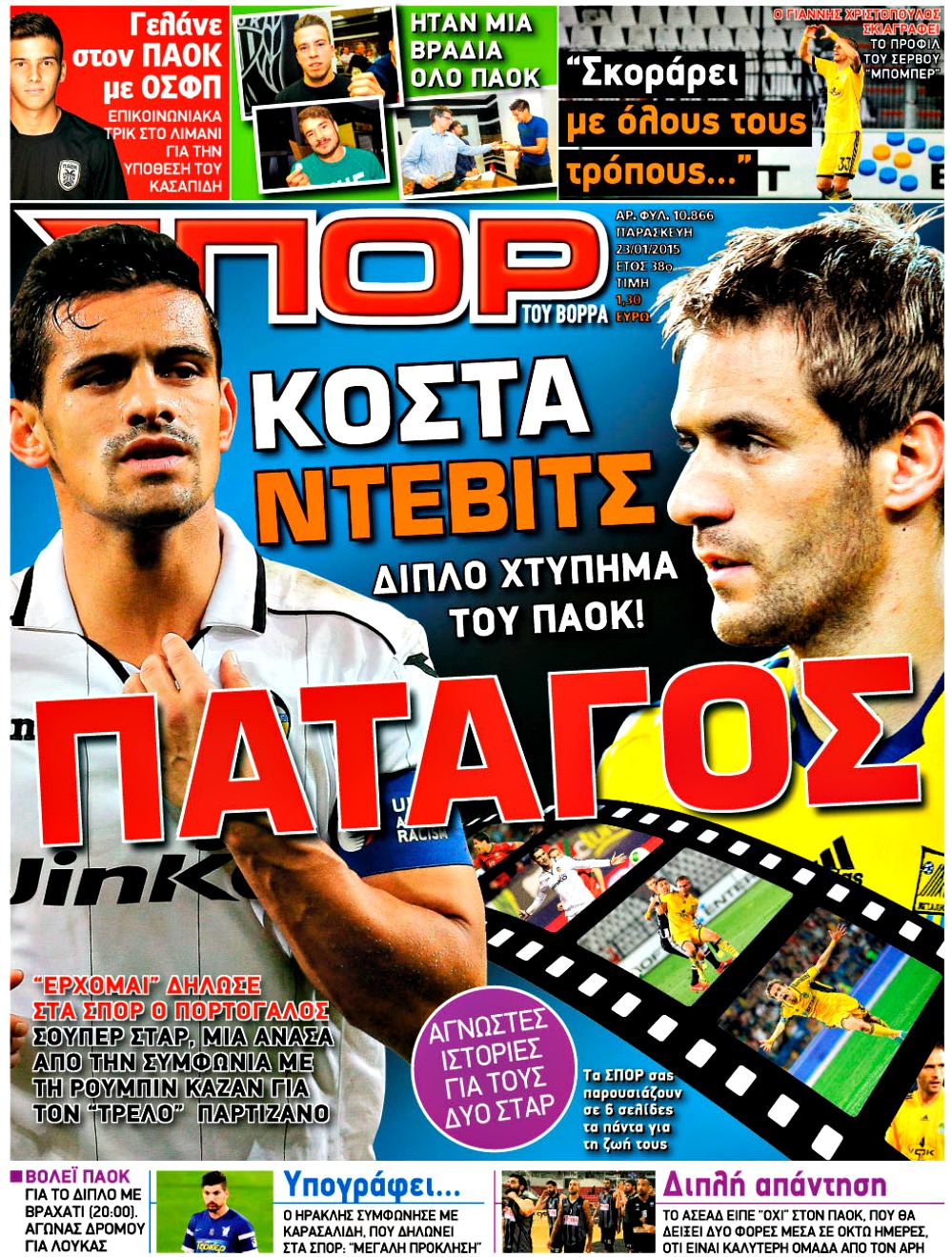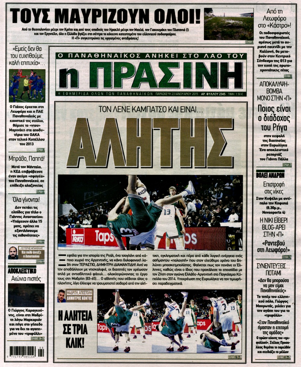 Οι αθλητικές εφημερίδες Enikos Newsroom 07:56, Παρασκευή 23 Ιανουαρίου 2015 Media Διαβάστε τα πρωτοσέλιδα των αθλητικών εφημερίδων: ΑΘΛΗΤΙΚΕΣ ΕΦΗΜΕΡΙΔΕΣ ΕΦΗΜΕΡΙΔΕΣ ΠΡΩΤΟΣΕΛΙΔΑ Μοιράσου το: σχολίασε κι εσύ (0 σχόλια) Ακολουθήστε το enikos.gr στο Google News και μάθετε πρώτοι όλες τις ειδήσεις Δείτε όλες τις τελευταίες ειδήσεις από την Ελλάδα και τον Κόσμο στο enikos.gr Ειδήσεις Ροή Ειδήσεων 8 ώρες πριν Μητσοτάκης: Αναγκαία η μεταρρύθμιση του πρωτογενούς τομέα – Τα 6 νέα μέτρα για το στεγαστικό και οι αναφορές σε «Ιθάκη» και «πολιτικούς του καναπέ» 7 ώρες πριν Δάνεια σε ελβετικό φράγκο: Τα βασικά σημεία της ρύθμισης – ανάσας για 40.000 δανειολήπτες – Αναλυτικός οδηγός με ερωτήσεις και απαντήσεις 7 ώρες πριν Κυψέλη: Εξιτήριο πήρε η 14χρονη μαθήτρια που μαχαιρώθηκε από την 16χρονη σε σχολείο – «Θέλω να βοηθήσω το παιδί, έχει μπλέξει με κακές παρέες» 6 ώρες πριν Τραμπ: Γιατί κατέθεσε τώρα την αγωγή κατά του BBC – Πώς η κίνησή του εξυπηρετεί το νέο δόγμα του για «αντίσταση» στην Ευρώπη, υπέρ των συντηρητικών 7 ώρες πριν ΟΠΕΚΕΠΕ – Παράνομες επιδοτήσεις: Ελεύθεροι με περιοριστικούς όρους και οι 7 κατηγορούμενοι που απολογήθηκαν σήμερα 7 ώρες πριν Ανακαλύφθηκε βυθισμένη πέτρινη κατασκευή ανοιχτά της Κριμαίας – Αποτελεί μέρος αρχαίας ελληνικής αποικίας 8 ώρες πριν Ύπνος: Αυτό μπορεί να είναι το χειρότερο λάθος για το βιολογικό ρολόι σας, σύμφωνα με ειδικό 9 ώρες πριν Αριθμολογία: Οι άνθρωποι που έχουν γεννηθεί αυτές τις 3 ημερομηνίες, προσελκύουν μεγάλη τύχη πριν από το τέλος του 2025 11 ώρες πριν Οι 7 συμπεριφορές που μαρτυρούν ότι ένας άνδρας επενδύει μακροπρόθεσμα σε μια σχέση 4 λεπτά πριν Τα ζώδια σήμερα, Τετάρτη 17 Δεκεμβρίου: Κριοί, η αυτοπεποίθησή σας ενισχύεται 12 λεπτά πριν Εφημερεύοντα φαρμακεία σε Αθήνα και Θεσσαλονίκη (17/12) 18 λεπτά πριν Κόστα Ρίκα: Το Κογκρέσο απέρριψε το αίτημα για άρση της ασυλίας του προέδρου Τσάβες 26 λεπτά πριν Κολομβία: Νεκροί τέσσερις αστυνομικοί σε βομβιστικές επιθέσεις ανταρτών 34 λεπτά πριν Στάση εργασίας 11:00 – 17:00 σήμερα στα λεωφορεία του ΟΑΣΑ – Ποιες γραμμές θα λειτουργήσουν ENIKOS NETWORK Αίτημα ΙΣΑ για την εξαίρεση των προσωπικών γιατρών από τις κατ’ οίκον επισκέψεις Η σκανδιναβική μέθοδος στον ύπνο που μπορεί να σώσει έναν γάμο Πιερρακάκης: Ο προϋπολογισμός συμβάλλει ουσιαστικά στην ενίσχυση της αγοραστικής δύναμης της πλειονότητας των εργαζομένων e-ΕΦΚΑ: Παρατείνεται η προθεσμία για την υποβολή ΑΠΔ – Ποιους αφορά Σύγχρονος Νοστράδαμος: Προειδοποιεί για «μεγάλο γεγονός» τους επόμενους μήνες που θα συγκλονίσει τη Βρετανία και τον κόσμο Τεστ παρατηρητικότητας: Μπορείτε να βρείτε τις 3 διαφορές στις εικόνες με έναν πιγκουίνο σε 14 δευτερόλεπτα περισσότερα 20:06 , Τρίτη 16 Δεκεμβρίου 2025 Ο ΣΚΑΙ καταγγέλλει τον ΕΚΚΟΜΕΔ Επιστολή με την οποία καταγράφει την έντονη διαμαρτυρία του προς τον διευθύνοντα σύμβουλο του... 17:40 , Τρίτη 16 Δεκεμβρίου 2025 Eurovision: Στις 4 Ιανουαρίου αποκαλύπτονται τα 28 τραγούδια του ελληνικού τελικού Η αγωνία τελειώνει, η γιορτή της Eurovision αρχίζει στην ΕΡΤ από τις πρώτες ημέρες της νέας χρ... 17:09 , Τρίτη 16 Δεκεμβρίου 2025 Alter Ego Media: Βαθύτατη θλίψη και ειλικρινή συλλυπητήρια για την απώλεια της Ειρήνης Μαρινάκη Τη βαθύτατη θλίψη και τα ειλικρινή συλλυπητήριά της εκφράζει η Alter Ego Media για τον θάνατο ... 13:00 , Τρίτη 16 Δεκεμβρίου 2025 «Στο Παρά Πέντε – 20 Χρόνια Μετά»: Κυκλοφόρησε το τρέιλερ του επετειακού επεισοδίου της θρυλικής σειράς – Πότε θα προβλη