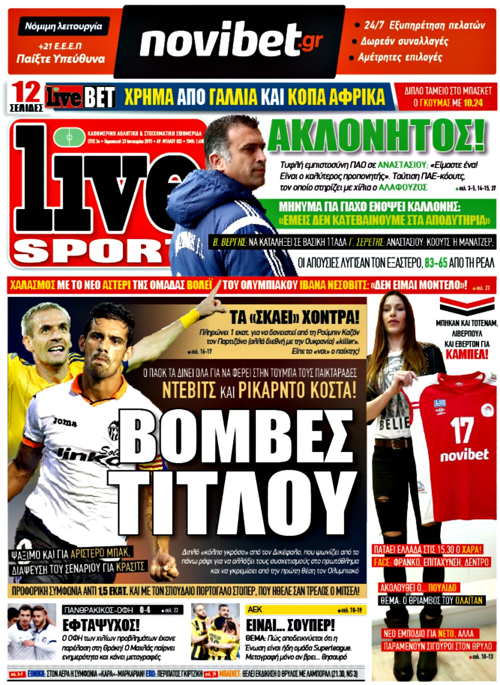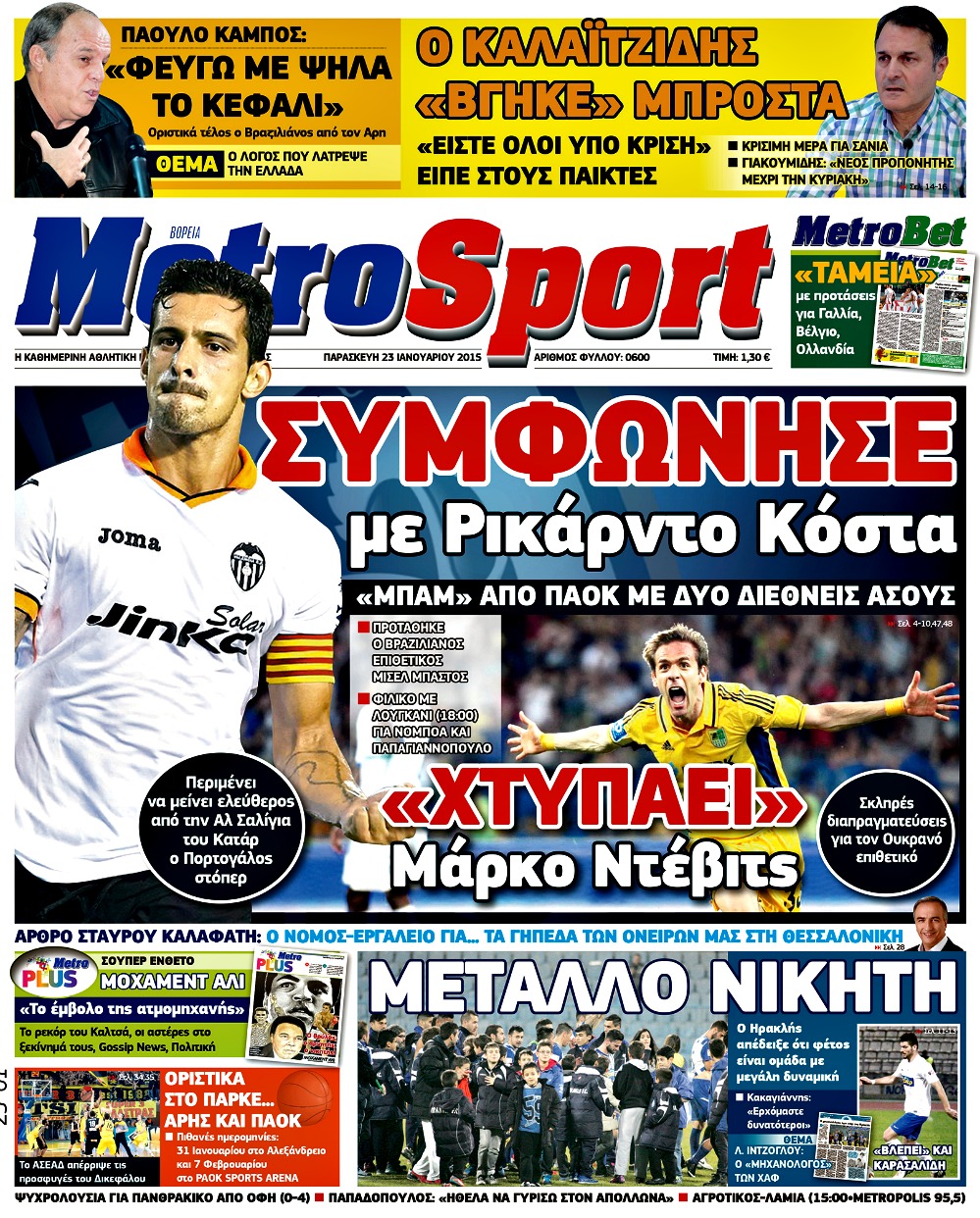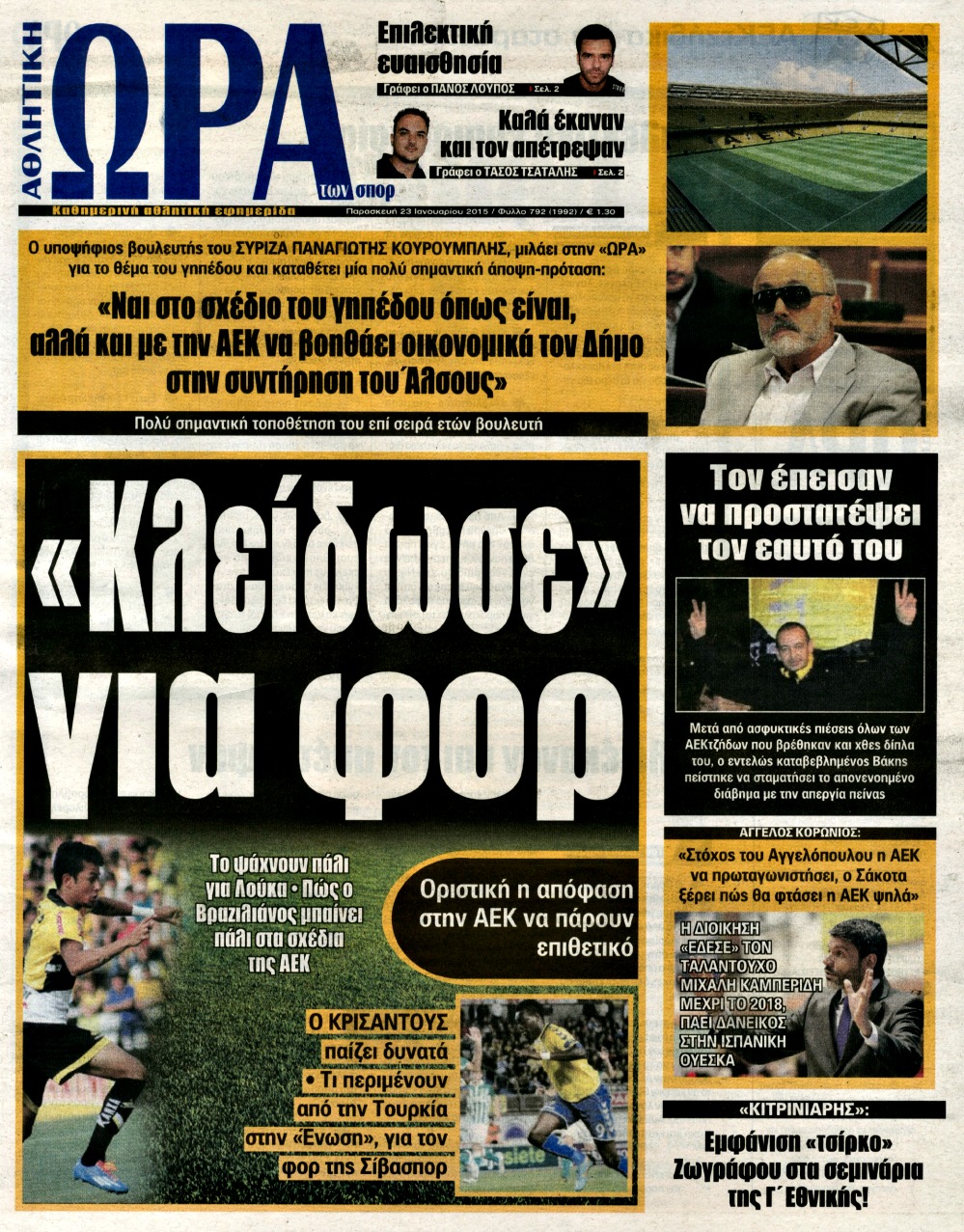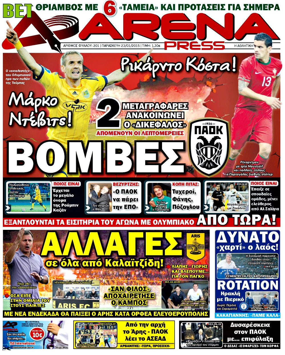 Οι αθλητικές εφημερίδες Enikos Newsroom 07:56, Παρασκευή 23 Ιανουαρίου 2015 Media Διαβάστε τα πρωτοσέλιδα των αθλητικών εφημερίδων: ΑΘΛΗΤΙΚΕΣ ΕΦΗΜΕΡΙΔΕΣ ΕΦΗΜΕΡΙΔΕΣ ΠΡΩΤΟΣΕΛΙΔΑ Μοιράσου το: σχολίασε κι εσύ (0 σχόλια) Ακολουθήστε το enikos.gr στο Google News και μάθετε πρώτοι όλες τις ειδήσεις Δείτε όλες τις τελευταίες ειδήσεις από την Ελλάδα και τον Κόσμο στο enikos.gr Ειδήσεις Ροή Ειδήσεων 8 ώρες πριν Μητσοτάκης: Αναγκαία η μεταρρύθμιση του πρωτογενούς τομέα – Τα 6 νέα μέτρα για το στεγαστικό και οι αναφορές σε «Ιθάκη» και «πολιτικούς του καναπέ» 7 ώρες πριν Δάνεια σε ελβετικό φράγκο: Τα βασικά σημεία της ρύθμισης – ανάσας για 40.000 δανειολήπτες – Αναλυτικός οδηγός με ερωτήσεις και απαντήσεις 7 ώρες πριν Κυψέλη: Εξιτήριο πήρε η 14χρονη μαθήτρια που μαχαιρώθηκε από την 16χρονη σε σχολείο – «Θέλω να βοηθήσω το παιδί, έχει μπλέξει με κακές παρέες» 6 ώρες πριν Τραμπ: Γιατί κατέθεσε τώρα την αγωγή κατά του BBC – Πώς η κίνησή του εξυπηρετεί το νέο δόγμα του για «αντίσταση» στην Ευρώπη, υπέρ των συντηρητικών 7 ώρες πριν ΟΠΕΚΕΠΕ – Παράνομες επιδοτήσεις: Ελεύθεροι με περιοριστικούς όρους και οι 7 κατηγορούμενοι που απολογήθηκαν σήμερα 7 ώρες πριν Ανακαλύφθηκε βυθισμένη πέτρινη κατασκευή ανοιχτά της Κριμαίας – Αποτελεί μέρος αρχαίας ελληνικής αποικίας 8 ώρες πριν Ύπνος: Αυτό μπορεί να είναι το χειρότερο λάθος για το βιολογικό ρολόι σας, σύμφωνα με ειδικό 9 ώρες πριν Αριθμολογία: Οι άνθρωποι που έχουν γεννηθεί αυτές τις 3 ημερομηνίες, προσελκύουν μεγάλη τύχη πριν από το τέλος του 2025 11 ώρες πριν Οι 7 συμπεριφορές που μαρτυρούν ότι ένας άνδρας επενδύει μακροπρόθεσμα σε μια σχέση 4 λεπτά πριν Τα ζώδια σήμερα, Τετάρτη 17 Δεκεμβρίου: Κριοί, η αυτοπεποίθησή σας ενισχύεται 12 λεπτά πριν Εφημερεύοντα φαρμακεία σε Αθήνα και Θεσσαλονίκη (17/12) 18 λεπτά πριν Κόστα Ρίκα: Το Κογκρέσο απέρριψε το αίτημα για άρση της ασυλίας του προέδρου Τσάβες 26 λεπτά πριν Κολομβία: Νεκροί τέσσερις αστυνομικοί σε βομβιστικές επιθέσεις ανταρτών 34 λεπτά πριν Στάση εργασίας 11:00 – 17:00 σήμερα στα λεωφορεία του ΟΑΣΑ – Ποιες γραμμές θα λειτουργήσουν ENIKOS NETWORK Αίτημα ΙΣΑ για την εξαίρεση των προσωπικών γιατρών από τις κατ’ οίκον επισκέψεις Η σκανδιναβική μέθοδος στον ύπνο που μπορεί να σώσει έναν γάμο Πιερρακάκης: Ο προϋπολογισμός συμβάλλει ουσιαστικά στην ενίσχυση της αγοραστικής δύναμης της πλειονότητας των εργαζομένων e-ΕΦΚΑ: Παρατείνεται η προθεσμία για την υποβολή ΑΠΔ – Ποιους αφορά Σύγχρονος Νοστράδαμος: Προειδοποιεί για «μεγάλο γεγονός» τους επόμενους μήνες που θα συγκλονίσει τη Βρετανία και τον κόσμο Τεστ παρατηρητικότητας: Μπορείτε να βρείτε τις 3 διαφορές στις εικόνες με έναν πιγκουίνο σε 14 δευτερόλεπτα περισσότερα 20:06 , Τρίτη 16 Δεκεμβρίου 2025 Ο ΣΚΑΙ καταγγέλλει τον ΕΚΚΟΜΕΔ Επιστολή με την οποία καταγράφει την έντονη διαμαρτυρία του προς τον διευθύνοντα σύμβουλο του... 17:40 , Τρίτη 16 Δεκεμβρίου 2025 Eurovision: Στις 4 Ιανουαρίου αποκαλύπτονται τα 28 τραγούδια του ελληνικού τελικού Η αγωνία τελειώνει, η γιορτή της Eurovision αρχίζει στην ΕΡΤ από τις πρώτες ημέρες της νέας χρ... 17:09 , Τρίτη 16 Δεκεμβρίου 2025 Alter Ego Media: Βαθύτατη θλίψη και ειλικρινή συλλυπητήρια για την απώλεια της Ειρήνης Μαρινάκη Τη βαθύτατη θλίψη και τα ειλικρινή συλλυπητήριά της εκφράζει η Alter Ego Media για τον θάνατο ... 13:00 , Τρίτη 16 Δεκεμβρίου 2025 «Στο Παρά Πέντε – 20 Χρόνια Μετά»: Κυκλοφόρησε το τρέιλερ του επετειακού επεισοδίου της θρυλικής σειράς – Πότε θα προβλη