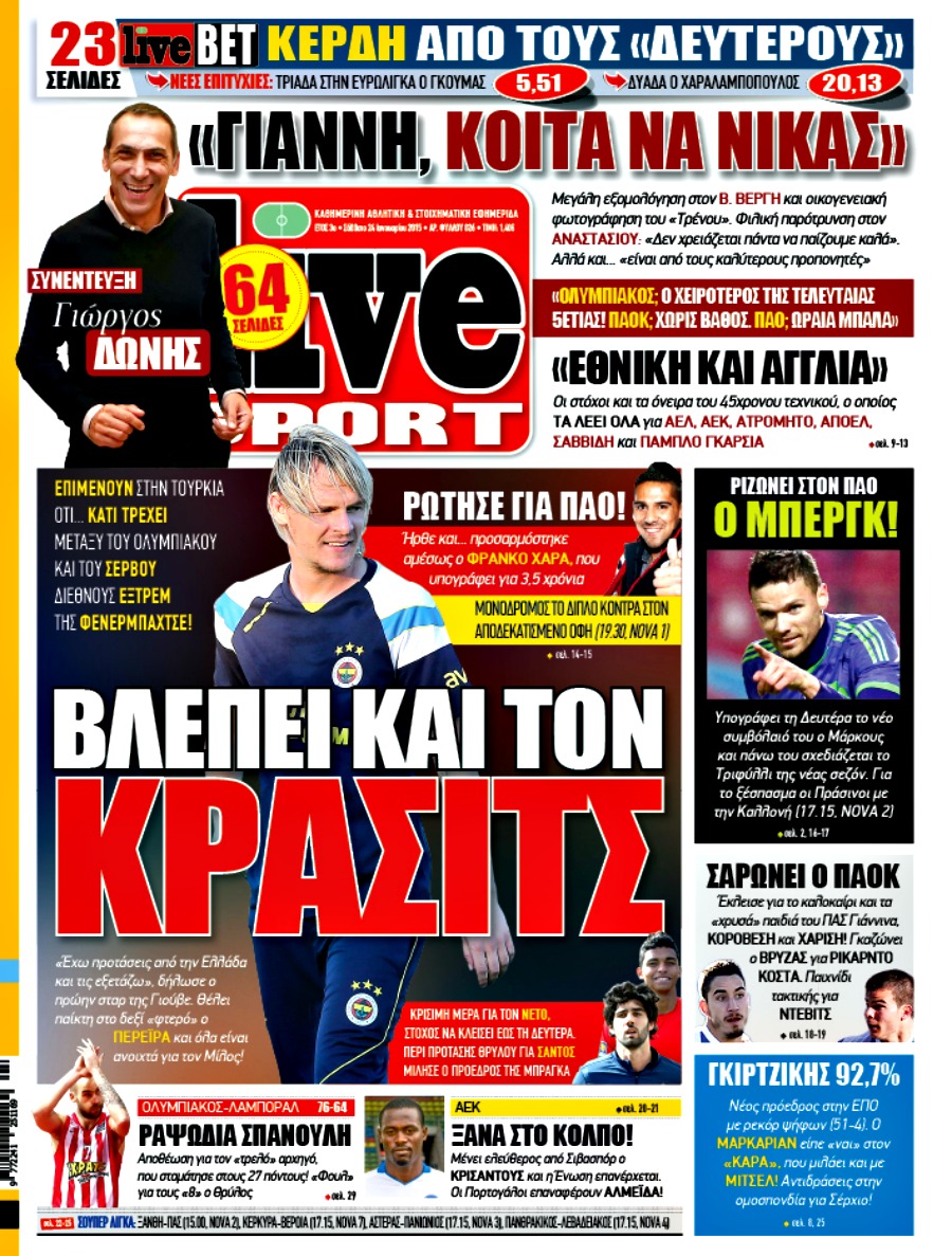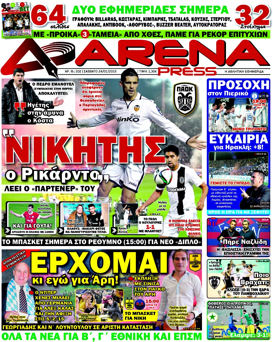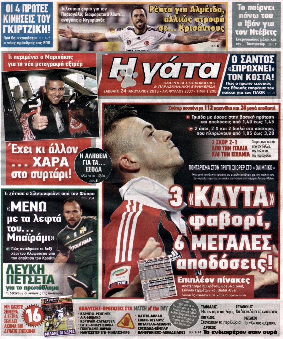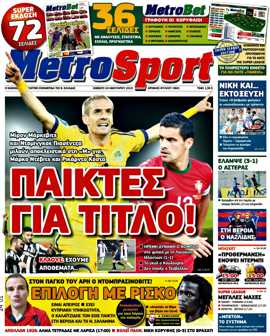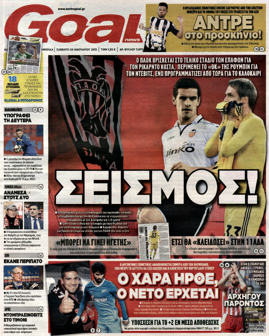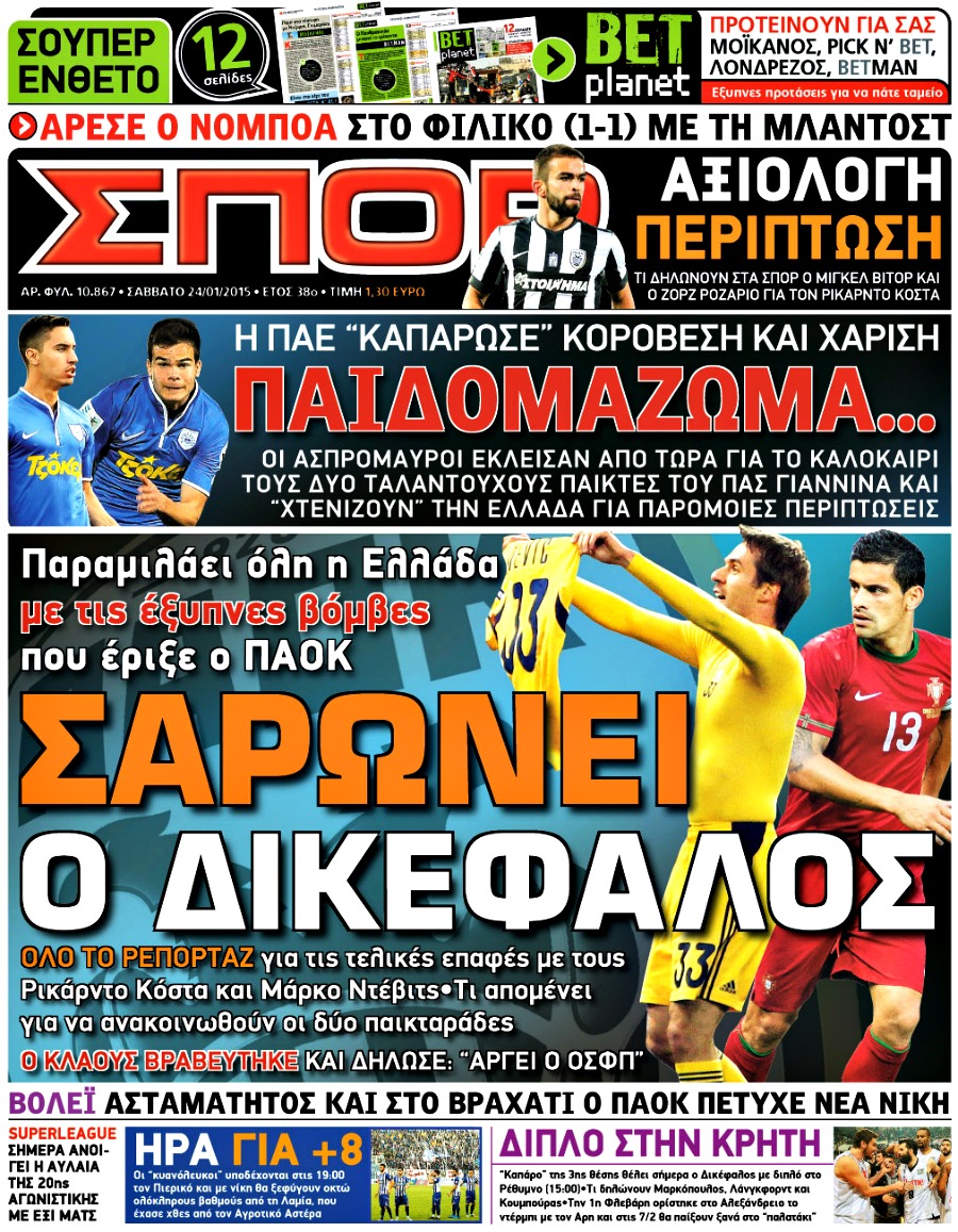 Οι αθλητικές εφημερίδες Enikos Newsroom 07:37, Σάββατο 24 Ιανουαρίου 2015 Media Διαβάστε τα πρωτοσέλιδα των αθλητικών εφημερίδων: ΑΘΛΗΤΙΚΕΣ ΕΦΗΜΕΡΙΔΕΣ ΕΦΗΜΕΡΙΔΕΣ ΠΡΩΤΟΣΕΛΙΔΑ Μοιράσου το: σχολίασε κι εσύ (0 σχόλια) Ακολουθήστε το enikos.gr στο Google News και μάθετε πρώτοι όλες τις ειδήσεις Δείτε όλες τις τελευταίες ειδήσεις από την Ελλάδα και τον Κόσμο στο enikos.gr Ειδήσεις Ροή Ειδήσεων 1 ώρα πριν ΣΥΡΙΖΑ: Διαγράφεται ο ευρωβουλευτής Νίκος Παππάς μετά την μήνυση δημοσιογράφου για ξυλοδαρμό 2 ώρες πριν Πώς στήθηκε η επιχείρηση «Ίπαλλος» που οδήγησε στη σύλληψη του «Έλληνα Εσκομπάρ» – «Ο πόλεμος ενάντια στους εμπόρους ναρκωτικών θα συνεχιστεί» 2 ώρες πριν Δίκη Χρυσής Αυγής: Την ενοχή και των 42 κατηγορουμένων ζητά η εισαγγελέας 2 ώρες πριν Κυψέλη: Στη φυλακή η 16χρονη που μαχαίρωσε συμμαθήτριά της 5 ώρες πριν Αμοργός: «Θα προσπαθήσω να το κάνω κάθε μέρα» – Ποιος είναι ο αγρότης που έστησε μόνος του το πρώτο μπλόκο στο νησί 2 ώρες πριν Τα 3 ζώδια που θα δουν τη ζωή τους να αλλάζει ριζικά το 2026 – «Όλα γίνονται καλύτερα σταδιακά» 7 ώρες πριν «Δεν είχα κλάψει από τότε που διαγνώστηκα με καρκίνο, ώσπου ένα τηλεφώνημα με έκανε να λυγίσω» – Η συγκλονιστική εξομολόγηση ενός άνδρα 3 ώρες πριν Ο σπάνιος σεισμός που έλυσε τα χέρια των επιστημόνων – Αποκάλυψε ακριβώς όσα αναζητούσαν 9 ώρες πριν 20 χρόνια τα Χριστούγεννα ξεκινούν στα Public με μεγάλη ποικιλία σε δώρα! 5 λεπτά πριν Στις Βρυξέλλες ο Κυριάκος Μητσοτάκης για τη Σύνοδο Κορυφής ΕΕ-Δυτικών Βαλκανίων και τη συνεδρίαση του Ευρωπαϊκού Συμβουλίου 11 λεπτά πριν ΟΠΕΚΕΠΕ: Ελεύθερες με όρους η σύζυγος και η αδελφή του φερόμενου αρχηγού – Τι υποστήριξαν 13 λεπτά πριν Υπουργείο Εργασίας: Οι 5 άξονες του σχεδίου δράσης για την ενίσχυση των συλλογικών συμβάσεων – Δείτε την Υπουργική Απόφαση 17 λεπτά πριν Καβάλα: Βίντεο ντοκουμέντο από διάρρηξη σε καφετέρια – Έσπασαν την τζαμαρία, άρπαξαν το συρτάρι του ταμείου και έγιναν καπνός 22 λεπτά πριν ΑΣΕΠ: Οι προσωρινοί πίνακες για 4.276 θέσεις επιτυχόντων του πρώτου γραπτού διαγωνισμού – Η διαδικασία για τις ενστάσεις ENIKOS NETWORK Γιατί αναζητούμε τα Χριστούγεννα όλο και νωρίτερα; Ποιοι οι ψυχολογικοί και οι συναισθηματικοί λόγοι Σοβαροί κίνδυνοι από τη λάθος χορήγηση φαρμάκου για τις αιμορραγίες-Συστάσεις προς τους γιατρούς «Αναταράξεις» στην εφοδιαστική αλυσίδα από τα μπλόκα: Επιστολή του Συνδέσμου Θεσσαλικών Βιομηχανιών στον πρωθυπουργό -Τι αν... Δάνεια σε ελβετικό φράγκο: Αύριο η κατάθεση της τροπολογίας στη Βουλή – Όλες οι λεπτομέρειες Χαρτογραφώντας το «σημείο χωρίς επιστροφή»: Για πρώτη φορά αποκαλύπτεται με λεπτομέρεια το ακανθώδες όριο της ατμόσφαιρας τ... Η Google καταργεί τη λειτουργία «dark web report» – Πώς θα μπορούν οι χρήστες να διαγράφουν τα δεδομένα τους περισσότερα 12:35 , Τετάρτη 17 Δεκεμβρίου 2025 Μίρκα Παπακωνσταντίνου: «Δεν ήμουν αισιόδοξη για τα νούμερα – Είμαι ρεαλίστρια» Στα γυρίσματα του εορταστικού επεισοδίου της αγαπημένης σειράς “Το Σόι Σου”, βρέθηκε η κάμερα ... 12:12 , Τετάρτη 17 Δεκεμβρίου 2025 Ακούστε την εκπομπή του Νίκου Χατζηνικολάου 17/12/2025 Ακούστε την εκπομπή του Νίκου Χατζηνικολάου στον ραδιοφωνικό σταθμό RealFm 97,8, την Τετάρτη 1... 11:35 , Τετάρτη 17 Δεκεμβρίου 2025 Home Alone: Το σπίτι της ταινίας θα ανακαινιστεί – Επιστροφή στην αισθητική της δεκαετίας του ’90 Οι νέοι ιδιοκτήτες του πραγματικού σπιτιού που παρουσιάζεται στην κλασική ταινία του 1990 «Hom... 11:25 , Τετάρτη 17 Δεκεμβρίου 2025 Grand Hotel: 