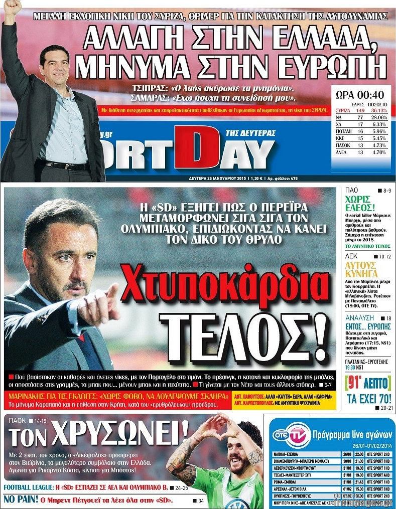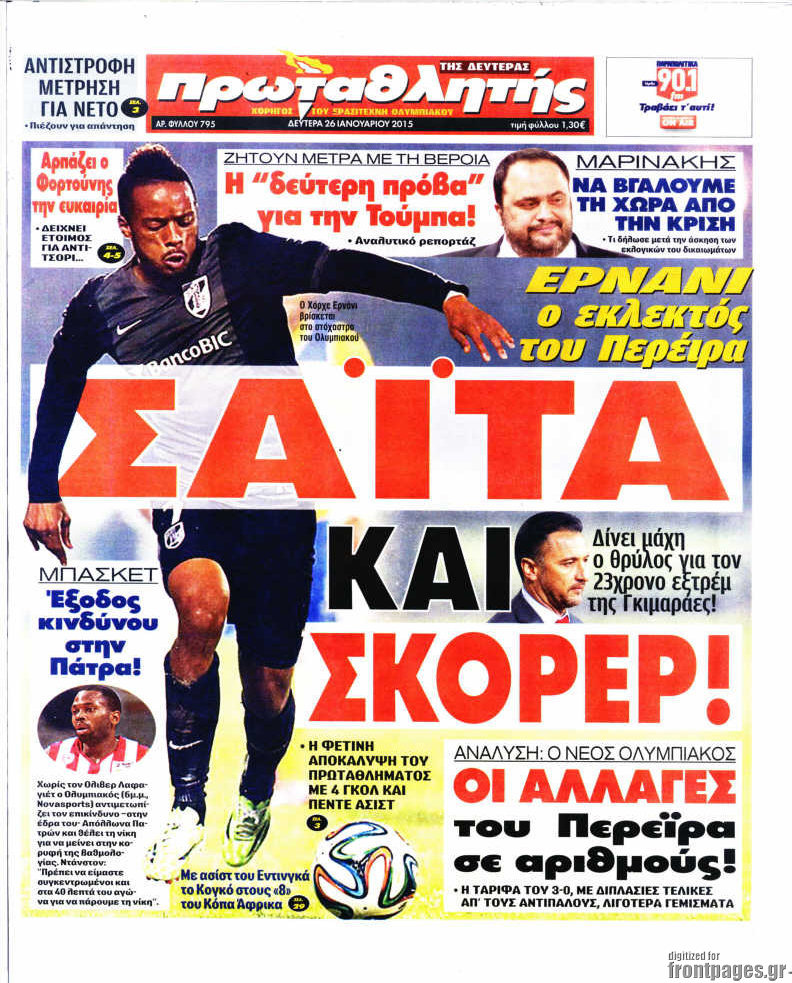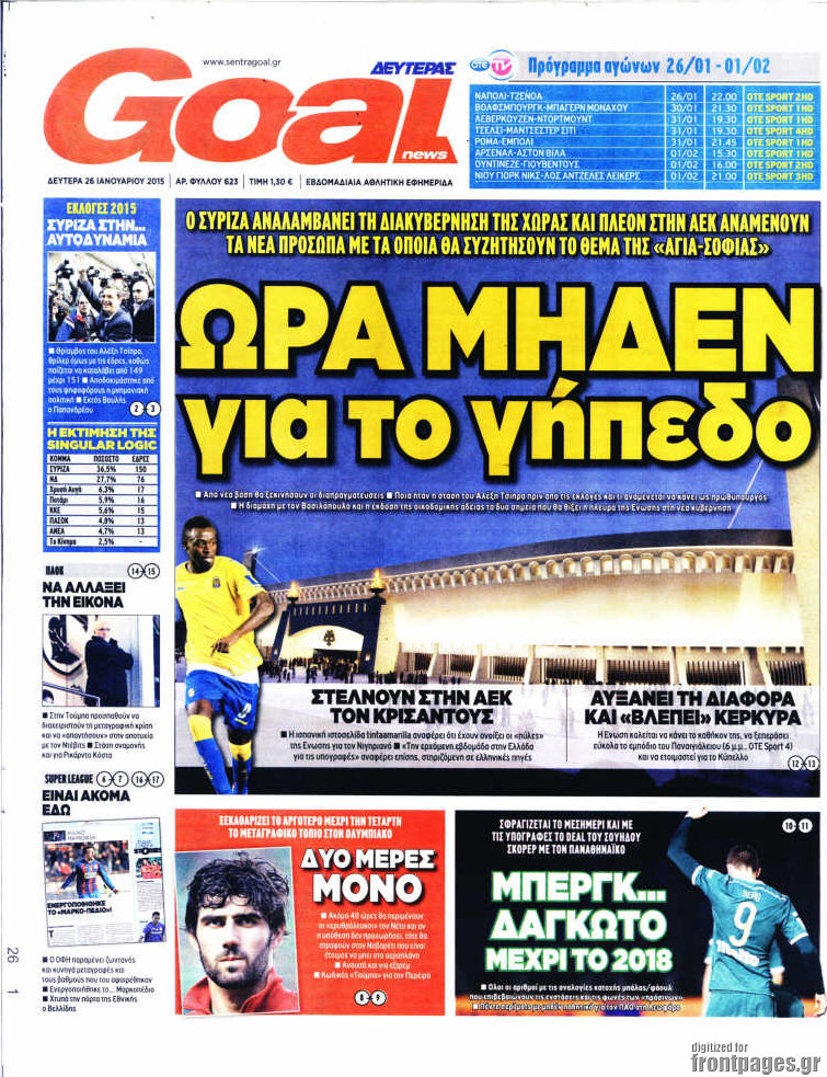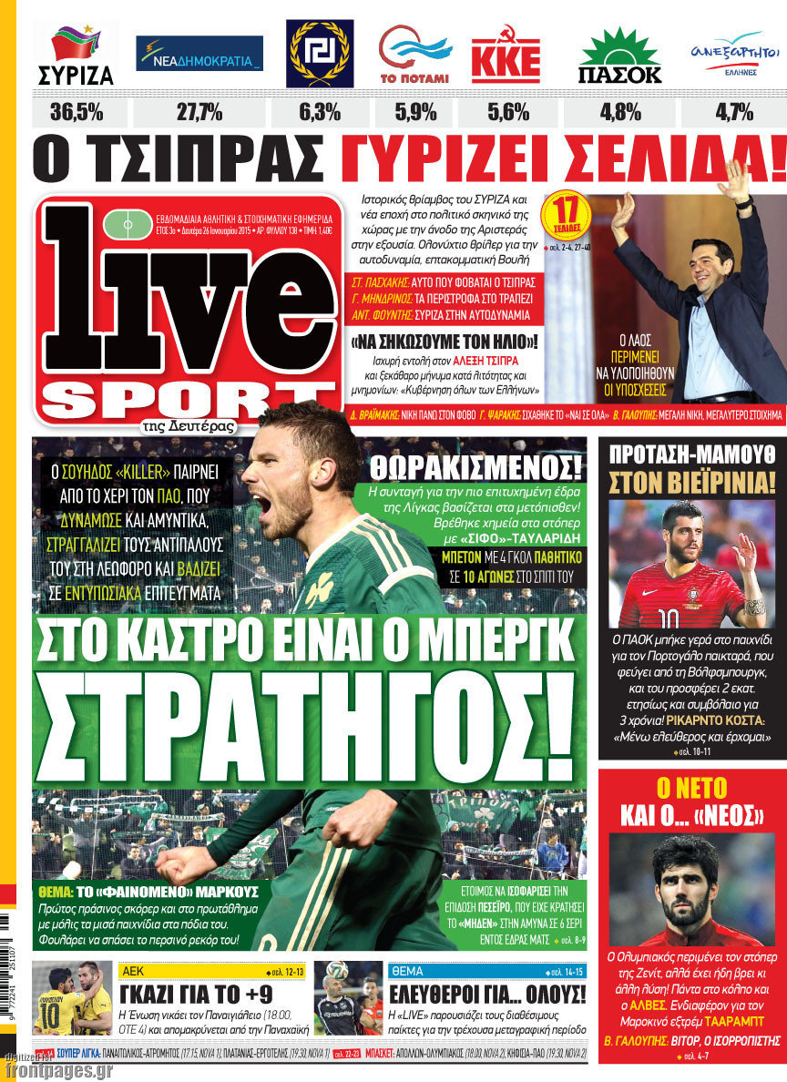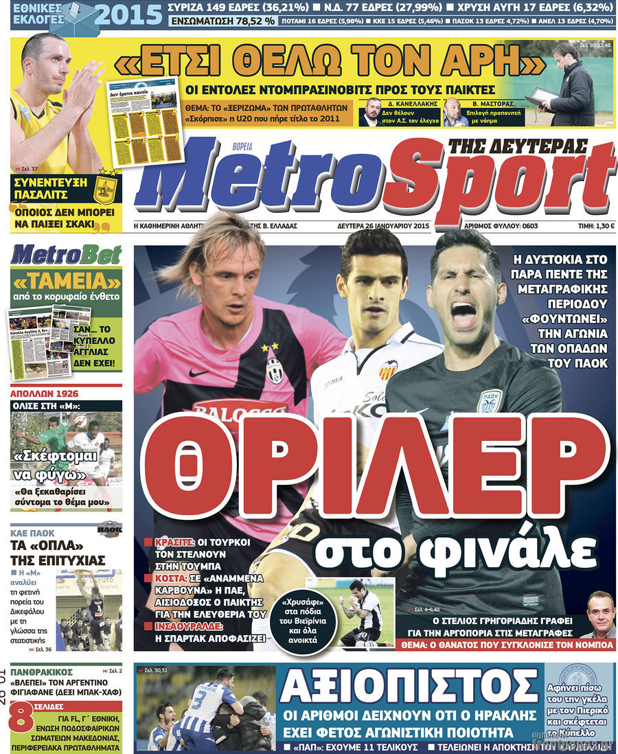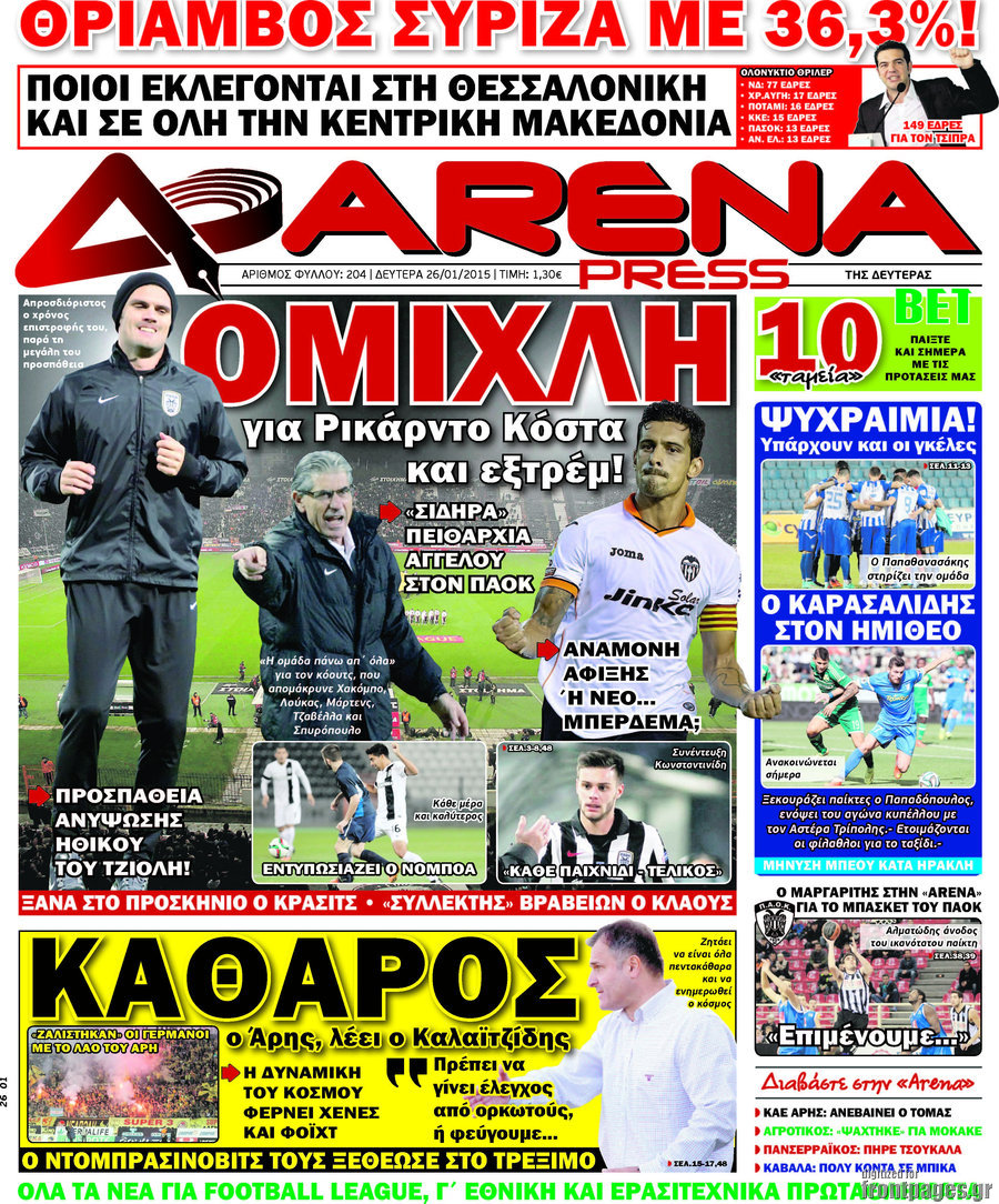 Οι αθλητικές εφημερίδες Enikos Newsroom 08:36, Δευτέρα 26 Ιανουαρίου 2015 Media Διαβάστε τα πρωτοσέλιδα των αθλητικών εφημερίδων: ΑΘΛΗΤΙΚΕΣ ΕΦΗΜΕΡΙΔΕΣ ΕΦΗΜΕΡΙΔΕΣ ΠΡΩΤΟΣΕΛΙΔΑ Μοιράσου το: σχολίασε κι εσύ (0 σχόλια) Ακολουθήστε το enikos.gr στο Google News και μάθετε πρώτοι όλες τις ειδήσεις Δείτε όλες τις τελευταίες ειδήσεις από την Ελλάδα και τον Κόσμο στο enikos.gr Ειδήσεις Ροή Ειδήσεων 15 λεπτά πριν Η Ουκρανία χτύπησε τάνκερ του σκιώδους στόλου της Ρωσίας στη Μεσόγειο – Έπλεε νότια της Κρήτης 2 ώρες πριν Πούτιν: Η Ουκρανία δεν είναι έτοιμη για ειρηνευτικές συνομιλίες – ο ρωσικός στρατός προελαύνει σε όλα τα μέτωπα 3 ώρες πριν Νίκος Παππάς: Ζητώ συγγνώμη για αυτό το επεισόδιο – Δεν τον γρονθοκόπησα 57 λεπτά πριν Θεσσαλονίκη: Άφησαν τα ανήλικα παιδιά τους να κοιμούνται στην αυλή – Κάτοικος ειδοποίησε το «Χαμόγελο του Παιδιού» 18 λεπτά πριν Βουλή: Υπερψηφίστηκε το νομοσχέδιο για την ένταξη του ΟΠΕΚΕΠΕ στην ΑΑΔΕ 4 ώρες πριν Αλλαγή σελίδας για 3 ζώδια – «Μία δύσκολη περίοδος φτάνει στο τέλος της» 2 ημέρες πριν 20 χρόνια τα Χριστούγεννα ξεκινούν στα Public με μεγάλη ποικιλία σε δώρα! 3 ώρες πριν Γεμάτος νεροχύτης; 5 σοβαρές ευθύνες που «φοβίζουν» όσους αφήνουν άπλυτα πιάτα 2 ώρες πριν Ειδικός μοιράζεται 6 κόλπα για να διατηρείστε σε φόρμα με πάνω από 40 ώρες εργασίας την εβδομάδα: «Προπονηθείτε πριν από τη δουλειά, όχι μετά» 2 λεπτά πριν Κουτσούμπας: Οι αγρότες «ανοίγουν δρόμους» για να δυναμώσει ο αγώνας για το δίκιο και την επιβίωση όλου του λαού 6 λεπτά πριν Οι αγρότες έκλεισαν και τα δύο ρεύματα κυκλοφορίας στα διόδια των Μαλγάρων 11 λεπτά πριν Ανδρουλάκης για ΕΛΤΑ: Το σκάνδαλο αυτό είναι η ωμή εκδοχή του κράτους-λάφυρου 15 λεπτά πριν Η Ουκρανία χτύπησε τάνκερ του σκιώδους στόλου της Ρωσίας στη Μεσόγειο – Έπλεε νότια της Κρήτης 16 λεπτά πριν Βουλή: Εγκρίθηκε ο διορισμός της νέας διοικήτριας της Ανεξάρτητης Αρχής Ελέγχου της Αγοράς και Προστασίας του Καταναλωτή ENIKOS NETWORK Τάξη στις ιατρικές διαφημίσεις για την προστασία των πολιτών βάζει ο ΙΣΑ Μακροζωία: Τι παίζει πιο σημαντικό ρόλο ακόμα και από την διατροφή και την άσκηση, σύμφωνα με μελέτη e-ΕΦΚΑ: Νέα παράταση της προθεσμίας υποβολής για τις ΑΠΔ – Ποιες επιχειρήσεις αφορά Αγορά πολυτελών κατοικιών: Αυτές είναι οι προτεραιότητες των αγοραστών – Σε ποιες περιοχές στρέφονται και τι επιλέγουν Χαρτογραφώντας το «σημείο χωρίς επιστροφή»: Για πρώτη φορά αποκαλύπτεται με λεπτομέρεια το ακανθώδες όριο της ατμόσφαιρας τ... Η Google καταργεί τη λειτουργία «dark web report» – Πώς θα μπορούν οι χρήστες να διαγράφουν τα δεδομένα τους περισσότερα 08:00 , Παρασκευή 19 Δεκεμβρίου 2025 Την Κυριακή με τη Realnews: Δωροεπιταγή 10€ Δωροεπιταγή αξίας 10€ για αγορές άνω των 60€ από τα πολυκαταστήματα FactoryOutlet H προσφορά ι... 05:48 , Παρασκευή 19 Δεκεμβρίου 2025 Οι οικονομικές εφημερίδες 19/12/2025 Διαβάστε τα πρωτοσέλιδα από τις οικονομικές εφημερίδες, σήμερα 19/12/2025. 05:43 , Παρασκευή 19 Δεκεμβρίου 2025 Οι αθλητικές εφημερίδες 19/12/2025 Διαβάστε τα πρωτοσέλιδα από τις αθλητικές εφημερίδες, σήμερα 19/12/2025. 05:38 , Παρασκευή 19 Δεκεμβρίου 2025 Οι πολιτικές εφημερίδες 19/12/2025 Διαβάστε τα πρωτοσέλιδα από τις πολιτικές εφημερίδες, σήμερα 19/12/2025. ΤΕΛΕΥΤΑΙΕΣ ΕΙΔΗΣΕΙΣ 6 λεπτά πριν Οι αγρότες έκλεισαν και τα δύο ρεύματα κυκλοφορίας... 11 λεπτά πριν Ανδρουλάκης για ΕΛΤΑ: Το σκάνδαλο αυτό είναι η ωμή... 15 λεπτά πριν Η Ουκρανία χτύπησε τάνκερ του σκιώδους στόλου της... 16 λεπτά πριν Βουλή: Εγκρίθηκε ο διορισμός τη