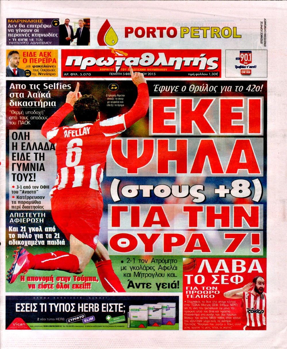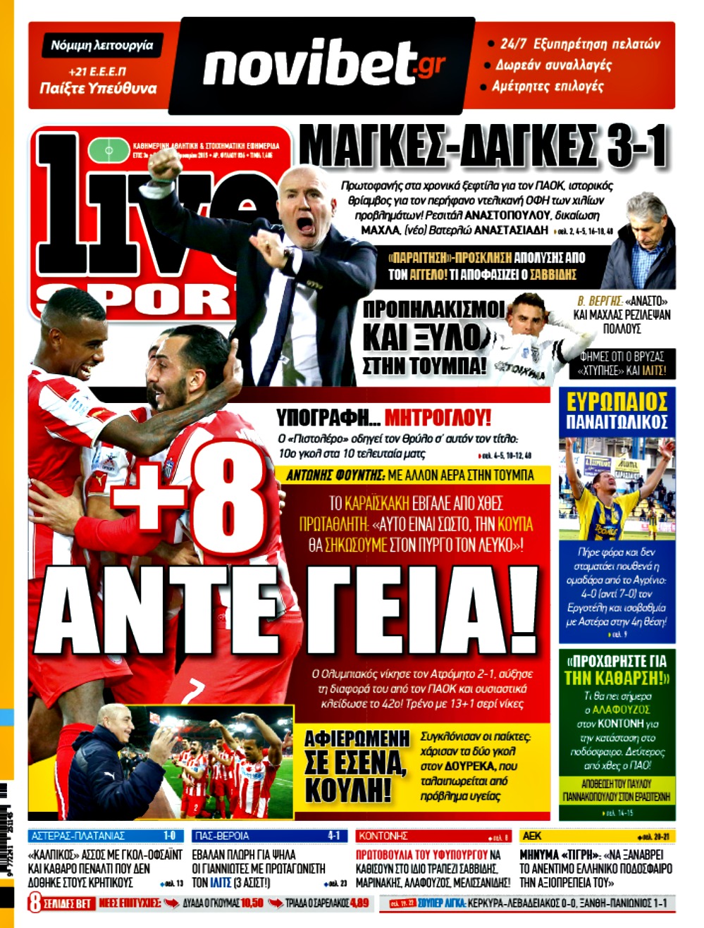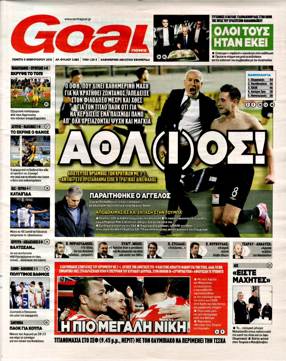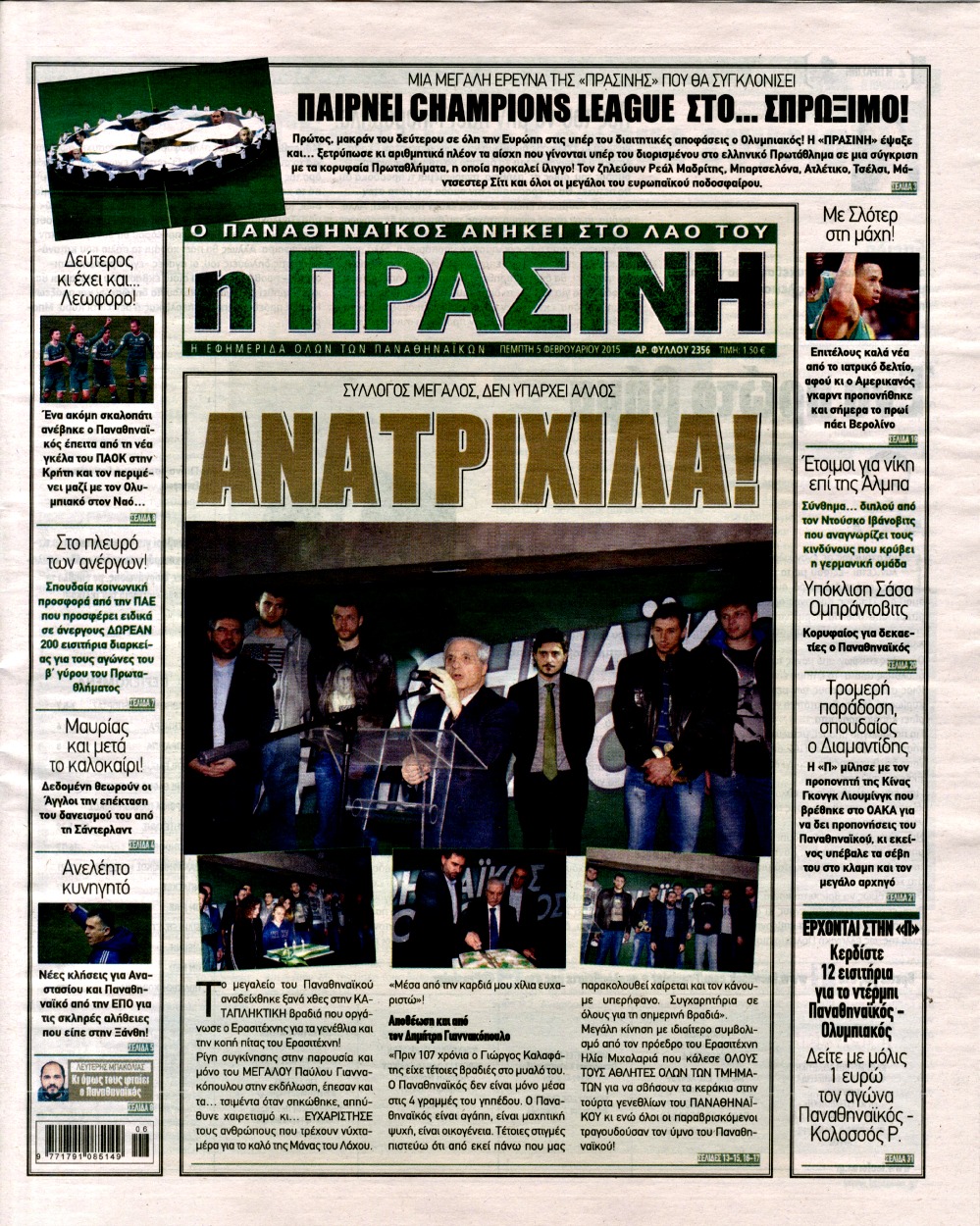 Οι αθλητικές εφημερίδες Enikos Newsroom 08:11, Πέμπτη 05 Φεβρουαρίου 2015 Media Διαβάστε τα πρωτοσέλιδα των αθλητικών εφημερίδων: ΑΘΛΗΤΙΚΕΣ ΕΦΗΜΕΡΙΔΕΣ ΕΦΗΜΕΡΙΔΕΣ ΠΡΩΤΟΣΕΛΙΔΑ Μοιράσου το: σχολίασε κι εσύ (0 σχόλια) Ακολουθήστε το enikos.gr στο Google News και μάθετε πρώτοι όλες τις ειδήσεις Δείτε όλες τις τελευταίες ειδήσεις από την Ελλάδα και τον Κόσμο στο enikos.gr Ειδήσεις Ροή Ειδήσεων 5 ώρες πριν Εκτός ευρωομάδας ΣΥΡΙΖΑ ο Νίκος Παππάς μετά την επίθεση στον δημοσιογράφο Νίκο Γιαννόπουλο – Η μήνυση και οι νέες δηλώσεις 6 ώρες πριν «Αγριεύουν» οι αγρότες: «Δεν συντρέχει λόγος συνάντησης με τον πρωθυπουργό» – Ώρα αποφάσεων στη σύσκεψη της Πέμπτης 5 ώρες πριν Κυψέλη: Χωρίς την οικογένειά της δίπλα της απολογήθηκε η 16χρονη – «Της είχε επιτεθεί κάποιος για να την βιάσει, φοβήθηκε και κυκλοφορούσε με μαχαίρι» 5 ώρες πριν Politico: Το πρόβλημα της Ευρώπης δεν είναι το Βέλγιο αλλά ο Ντόναλντ Τραμπ 7 ώρες πριν Αλεξανδρούπολη: Πολυοργανική ανεπάρκεια λόγω υποσιτισμού η αιτία θανάτου του 3χρονου αγοριού 5 ώρες πριν Μυστήριο με τεράστιες κυκλικές πέτρες 200 κιλών – Ανακαλύφθηκαν τυχαία κατά τη διάρκεια οδικών έργων και κανείς δεν ξέρει από πού προέρχονται 6 ώρες πριν Ύπνος: Ειδικός εξηγεί τον πραγματικό λόγο που ξυπνάτε στις 4 τα ξημερώματα – Ο ρόλος των ορμονών και του κιρκάδιου ρυθμού 7 ώρες πριν Αριθμολογία: Οι άνθρωποι που έχουν γεννηθεί αυτές τις 4 ημερομηνίες, είναι τρυφεροί και αγαπούν ανιδιοτελώς 19 ώρες πριν 20 χρόνια τα Χριστούγεννα ξεκινούν στα Public με μεγάλη ποικιλία σε δώρα! 3 λεπτά πριν Νέο αμερικανικό πλήγμα σε σκάφος που φέρεται να μετέφερε ναρκωτικά στον Ειρηνικό – Τέσσερις νεκροί 18 λεπτά πριν Αλ Τσαντίρι Νιουζ: «Λύγισε» ο Δημήτρης Λάλος για τον Δημήτρη Ήμελλο – «Τον μνημονεύω, να ‘ναι καλά εκεί που είναι» 33 λεπτά πριν GNTM: Με δάκρυα τον αποχαιρέτησε η Ηλιάνα Παπαγεωργίου πριν από τον ημιτελικό – «Αισθάνομαι πολύ παράξενα» 48 λεπτά πριν Αμερικανικά στρατεύματα στον Ισημερινό για «προσωρινή» επιχείρηση κατά των ναρκωτικών 1 ώρα πριν Βραζιλία: Το Κογκρέσο ενέκρινε σχέδιο νόμου για τη μείωση της ποινής του πρώην προέδρου Μπολσονάρου ENIKOS NETWORK Αϋπνία: Το κόλπο που θα σας βοηθήσει να κοιμηθείτε απόψε – Είναι απλό και έχει αποτέλεσμα 2,6 εκατομμύρια πολίτες έχουν ήδη εμβολιαστεί κατά της γρίπης ΕΛΣΤΑΤ: Τι δείχνουν τα νέα στοιχεία για τις ηλεκτρονικές παραγγελίες των επιχειρήσεων ΚΕΠΕ: Οι 3 διακριτές συμβολές των ΜμΕ και της μεταποίησης στην ελληνική οικονομία Χαρτογραφώντας το «σημείο χωρίς επιστροφή»: Για πρώτη φορά αποκαλύπτεται με λεπτομέρεια το ακανθώδες όριο της ατμόσφαιρας τ... Η Google καταργεί τη λειτουργία «dark web report» – Πώς θα μπορούν οι χρήστες να διαγράφουν τα δεδομένα τους περισσότερα 02:30 , Πέμπτη 18 Δεκεμβρίου 2025 Αλ Τσαντίρι Νιουζ: Η κόρη της Πάολα στο κοινό – Η ατάκα Λαζόπουλου που την έκανε να «κοκκινήσει» Γιορτινή διάθεση και ευχάριστες στιγμές γέμισε η αποψινή, τελευταία για το 2025, εκπομπή του «... 22:24 , Τετάρτη 17 Δεκεμβρίου 2025 Το Σπίτι Δίπλα Στο Ποτάμι: Σε κίνδυνο η υγεία του Απόστολου – Τι θα δούμε απόψε “Το Σπίτι Δίπλα στο Ποτάμι” ξετυλίγει το νήμα της ζωής των πέντε αδελφών με καταισ... 21:14 , Τετάρτη 17 Δεκεμβρίου 2025 Παιχνίδια Εκδίκησης: Θα καταφέρει ο Χρήστος να κλονίσει την εμπιστοσύνη της Μάγιας απέναντι στον Άγη; Τα «Παιχνίδια Εκδίκησης» έρχονται απόψε στις 22:30, στον Αντ1, με το τελευταίο επεισόδιο της χ... 20:57 , Τετάρτη 17 Δεκεμβρίου 2025 Άγιος Έρωτας: Η Χλόη κ
