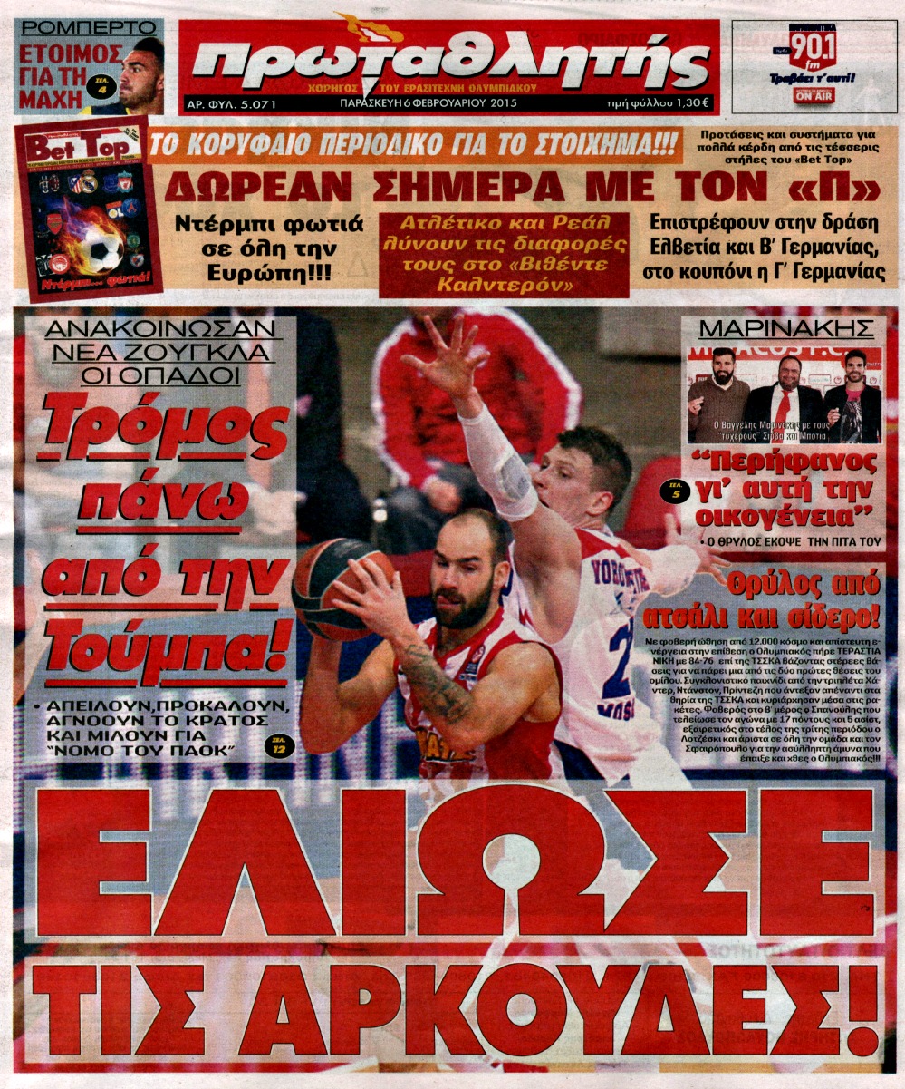 Οι αθλητικές εφημερίδες Enikos Newsroom 08:04, Παρασκευή 06 Φεβρουαρίου 2015 Media Διαβάστε τα πρωτοσέλιδα των αθλητικών εφημερίδων: ΑΘΛΗΤΙΚΕΣ ΕΦΗΜΕΡΙΔΕΣ ΕΦΗΜΕΡΙΔΕΣ ΠΡΩΤΟΣΕΛΙΔΑ Μοιράσου το: σχολίασε κι εσύ (0 σχόλια) Ακολουθήστε το enikos.gr στο Google News και μάθετε πρώτοι όλες τις ειδήσεις Δείτε όλες τις τελευταίες ειδήσεις από την Ελλάδα και τον Κόσμο στο enikos.gr Ειδήσεις Ροή Ειδήσεων 2 ώρες πριν Αναθεώρηση του Συντάγματος: Οι 8 μεταρρυθμίσεις για την Ελλάδα του 2030 – Ο οδικός άξονας και το μήνυμα Μητσοτάκη 1 ώρα πριν Δολοφονία στη Νέα Πέραμο: Η διαδρομή που φέρεται να ακολούθησαν οι δράστες-απαγωγείς – «Θέλω να τους βρουν και να μου πουν γιατί τον σκότωσαν» 4 ώρες πριν Γροιλανδία: Το γεωπολιτικό «φιλέτο» που προκαλεί τριγμούς στο ΝΑΤΟ και στις σχέσεις ΗΠΑ – ΕΕ 22 λεπτά πριν Κεκλεισμένων των θυρών η δίκη του πρώην αστυνομικού της Βουλής και της εν διαστάσει συζύγου του – Αρνείται τις κατηγορίες ο 46χρονος 2 ώρες πριν Ιαπωνία: Ακραίο κύμα ψύχους με 30 νεκρούς και τείχη χιονιού μέτρων – Δείτε βίντεο 5 ώρες πριν Οπτική ψευδαίσθηση: Μόνο όσοι έχουν τέλεια όραση μπορούν να εντοπίσουν την τίγρη μέσα σε 14 δευτερόλεπτα 3 ώρες πριν Λατινικές χύτρες και ελληνικές κατσαρόλες: Τα κεραμικά αποκαλύπτουν τη συνύπαρξη της ρωμαϊκής και ελληνικής μαγειρικής σε ιταλική αποικία 2 ώρες πριν Ο πατέρας του ανακάλυψε πως δεν είναι το βιολογικό του παιδί – «Ελπίζαμε να ήταν ψέμα» 33 λεπτά πριν Τα 3 ζώδια που ευνοούνται στα ερωτικά τους – «Ανοίγει η πόρτα για μία ουσιαστική αγάπη και είστε έτοιμοι να ανταποκριθείτε σε αυτή την πρόκληση» 22 δευτερόλεπτα πριν Προσαγωγή μέλους του Ρουβίκωνα για την επίθεση σε επιχείρηση στις Αχαρνές – Τι είπε ο ιδιοκτήτης 5 λεπτά πριν Τηλεθέαση (2/2): Ανατροπή στους πίνακες για την πρωινή ψυχαγωγική ζώνη 10 λεπτά πριν Ένωση Δικαστών και Εισαγγελέων: Ώριμες οι συνθήκες για τη Συνταγματική Αναθεώρηση του άρθρου για τον τρόπο επιλογής της ηγεσίας της Δικαιοσύνης 15 λεπτά πριν Euroleague: Την 6η σερί νίκη θέλει στο Ντουμπάι ο Ολυμπιακός 20 λεπτά πριν Θεσσαλονίκη: 54χρονη περιέλουσε αυτοκίνητο με οινόπνευμα και επιχείρησε να βάλει φωτιά – Την έπιασε στα πράσα ο ιδιοκτήτης ENIKOS NETWORK ΕΙΝΑΠ: Καταγγελίες για απαράδεκτες συνθήκες νοσηλείας στο Ιπποκράτειο νοσοκομείο Ξεκινά την επόμενη εβδομάδα η διάθεση Φαρμάκων Υψηλού Κόστους από τα ιδιωτικά φαρμακεία Τι αλλάζει το 2026 για τις επιχειρήσεις – Οι 6 προκλήσεις Ελαιόλαδο: Πότε αναμένεται να αλλάξει η τιμή του- Πόσο πωλείται σήμερα ο «ελληνικός χρυσός» Ευπάθεια στο moltbook ai αποκαλύπτει email, tokens σύνδεσης και api keys Αυτός είναι ο ρόλος της μικρής τρύπας στους νυχοκόπτες – «Είμαι ο μόνος που δεν το ήξερε;»» περισσότερα 10:42 , Τρίτη 03 Φεβρουαρίου 2026 Τηλεθέαση (2/2): Ανατροπή στους πίνακες για την πρωινή ψυχαγωγική ζώνη Στις πρωινές εκπομπές, οι «Αταίριαστοι» του ΣΚΑΪ βρέθηκαν στην κορυφή της τηλεθέασης τόσο στο ... 05:48 , Τρίτη 03 Φεβρουαρίου 2026 Οι οικονομικές εφημερίδες 3/2/2026 Διαβάστε τα πρωτοσέλιδα από τις οικονομικές εφημερίδες, σήμερα 3/2/2026. 05:38 , Τρίτη 03 Φεβρουαρίου 2026 Οι πολιτικές εφημερίδες 3/2/2026 Διαβάστε τα πρωτοσέλιδα από τις πολιτικές εφημερίδες, σήμερα 3/2/2026. 18:18 , Δευτέρα 02 Φεβρουαρίου 2026 Άγιος Έρωτας: Η μικρή Ελευθερία δεν θέλει τους νέους της γονείς και η Χλόη καταφεύγει στον πατέρα Νικόλαο Όσα θα δούμε απόψε στο νέο επεισόδιο της σειράς “Άγιος Έρωτας” στις 22:00 στον Alp... ΤΕΛΕΥΤΑΙΕΣ ΕΙΔΗΣΕΙΣ 5 λεπτά πριν Τηλεθέαση (2/2): Ανατροπή στους πί