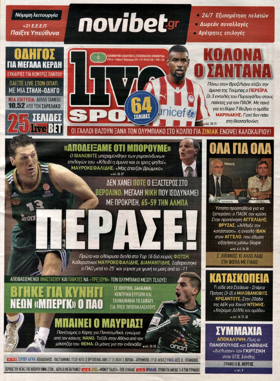 Οι αθλητικές εφημερίδες Enikos Newsroom 07:39, Σάββατο 07 Φεβρουαρίου 2015 Media Διαβάστε τα πρωτοσέλιδα των αθλητικών εφημερίδων: ΑΘΛΗΤΙΚΕΣ ΕΦΗΜΕΡΙΔΕΣ ΕΦΗΜΕΡΙΔΕΣ ΠΡΩΤΟΣΕΛΙΔΑ Μοιράσου το: σχολίασε κι εσύ (0 σχόλια) Ακολουθήστε το enikos.gr στο Google News και μάθετε πρώτοι όλες τις ειδήσεις Δείτε όλες τις τελευταίες ειδήσεις από την Ελλάδα και τον Κόσμο στο enikos.gr Ειδήσεις Ροή Ειδήσεων 8 ώρες πριν Μητσοτάκης: Αναγκαία η μεταρρύθμιση του πρωτογενούς τομέα – Τα 6 νέα μέτρα για το στεγαστικό και οι αναφορές σε «Ιθάκη» και «πολιτικούς του καναπέ» 7 ώρες πριν Δάνεια σε ελβετικό φράγκο: Τα βασικά σημεία της ρύθμισης – ανάσας για 40.000 δανειολήπτες – Αναλυτικός οδηγός με ερωτήσεις και απαντήσεις 7 ώρες πριν Κυψέλη: Εξιτήριο πήρε η 14χρονη μαθήτρια που μαχαιρώθηκε από την 16χρονη σε σχολείο – «Θέλω να βοηθήσω το παιδί, έχει μπλέξει με κακές παρέες» 6 ώρες πριν Τραμπ: Γιατί κατέθεσε τώρα την αγωγή κατά του BBC – Πώς η κίνησή του εξυπηρετεί το νέο δόγμα του για «αντίσταση» στην Ευρώπη, υπέρ των συντηρητικών 7 ώρες πριν ΟΠΕΚΕΠΕ – Παράνομες επιδοτήσεις: Ελεύθεροι με περιοριστικούς όρους και οι 7 κατηγορούμενοι που απολογήθηκαν σήμερα 6 ώρες πριν Ανακαλύφθηκε βυθισμένη πέτρινη κατασκευή ανοιχτά της Κριμαίας – Αποτελεί μέρος αρχαίας ελληνικής αποικίας 7 ώρες πριν Ύπνος: Αυτό μπορεί να είναι το χειρότερο λάθος για το βιολογικό ρολόι σας, σύμφωνα με ειδικό 8 ώρες πριν Αριθμολογία: Οι άνθρωποι που έχουν γεννηθεί αυτές τις 3 ημερομηνίες, προσελκύουν μεγάλη τύχη πριν από το τέλος του 2025 10 ώρες πριν Οι 7 συμπεριφορές που μαρτυρούν ότι ένας άνδρας επενδύει μακροπρόθεσμα σε μια σχέση 4 λεπτά πριν Κόστα Ρίκα: Το Κογκρέσο απέρριψε το αίτημα για άρση της ασυλίας του προέδρου Τσάβες 12 λεπτά πριν Κολομβία: Νεκροί τέσσερις αστυνομικοί σε βομβιστικές επιθέσεις ανταρτών 20 λεπτά πριν Στάση εργασίας 11:00 – 17:00 σήμερα στα λεωφορεία του ΟΑΣΑ – Ποιες γραμμές θα λειτουργήσουν 36 λεπτά πριν Παλαιστινιακό: «Η λύση των δύο κρατών είναι ο μόνος βιώσιμος δρόμος», τόνισε η Ελλάδα στο Συμβούλιο Ασφαλείας του ΟΗΕ 43 λεπτά πριν Ελένη Καρακάση: «Ένιωθα πολύ αδικημένη, δεν μπορούσα να ελέγξω τον εαυτό μου σε δύσκολες στιγμές» ENIKOS NETWORK Αίτημα ΙΣΑ για την εξαίρεση των προσωπικών γιατρών από τις κατ’ οίκον επισκέψεις Η σκανδιναβική μέθοδος στον ύπνο που μπορεί να σώσει έναν γάμο Πιερρακάκης: Ο προϋπολογισμός συμβάλλει ουσιαστικά στην ενίσχυση της αγοραστικής δύναμης της πλειονότητας των εργαζομένων e-ΕΦΚΑ: Παρατείνεται η προθεσμία για την υποβολή ΑΠΔ – Ποιους αφορά Σύγχρονος Νοστράδαμος: Προειδοποιεί για «μεγάλο γεγονός» τους επόμενους μήνες που θα συγκλονίσει τη Βρετανία και τον κόσμο Τεστ παρατηρητικότητας: Μπορείτε να βρείτε τις 3 διαφορές στις εικόνες με έναν πιγκουίνο σε 14 δευτερόλεπτα περισσότερα 20:06 , Τρίτη 16 Δεκεμβρίου 2025 Ο ΣΚΑΙ καταγγέλλει τον ΕΚΚΟΜΕΔ Επιστολή με την οποία καταγράφει την έντονη διαμαρτυρία του προς τον διευθύνοντα σύμβουλο του... 17:40 , Τρίτη 16 Δεκεμβρίου 2025 Eurovision: Στις 4 Ιανουαρίου αποκαλύπτονται τα 28 τραγούδια του ελληνικού τελικού Η αγωνία τελειώνει, η γιορτή της Eurovision αρχίζει στην ΕΡΤ από τις πρώτες ημέρες της νέας χρ... 17:09 , Τρίτη 16 Δεκεμβρίου 2025 Alter Ego Media: Βαθύτατη θλίψη και ειλικρινή συλλυπητήρια για την απώλεια της Ειρήνης Μαρινάκη Τη βαθύτατη θλίψη και τα ειλικρινή συλλυπητήριά της εκφράζει η Alter Ego Media για τον θάνατο ... 13:00 , Τρίτη 16 Δεκεμβρίου 2025 «Στο Παρά Πέντε – 20 Χρόνια Μετά»: Κυ