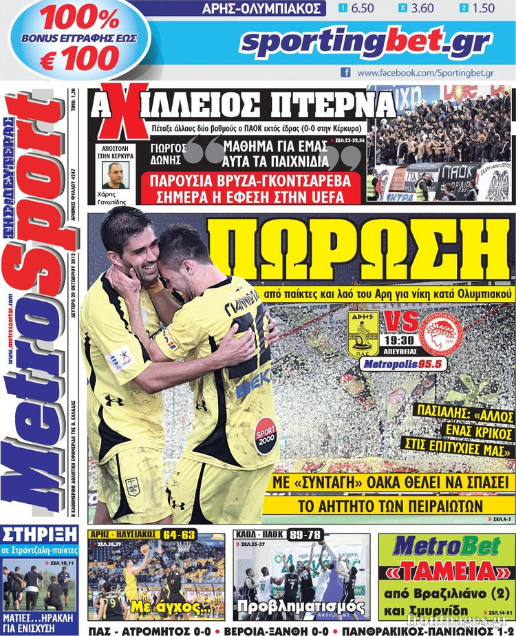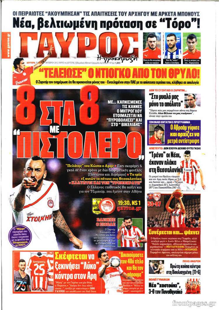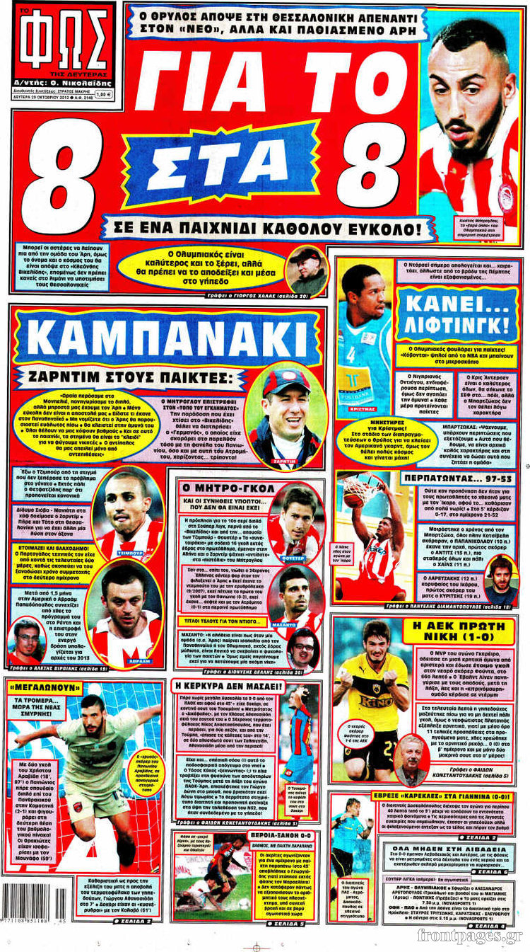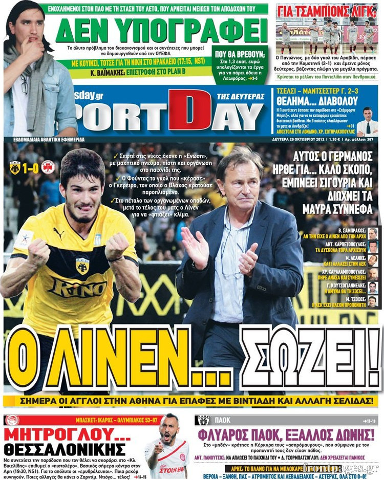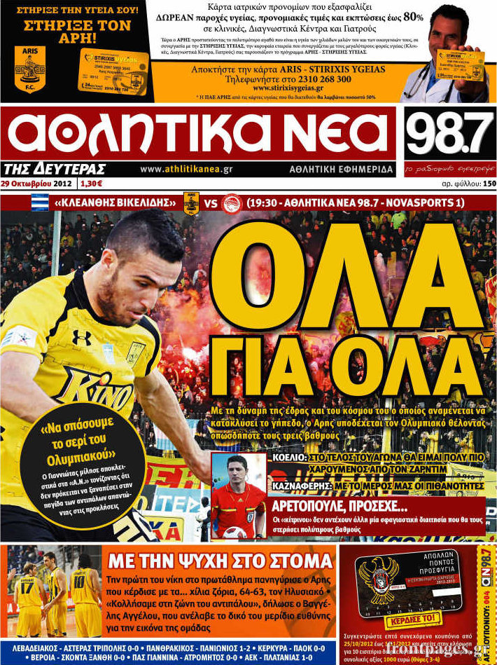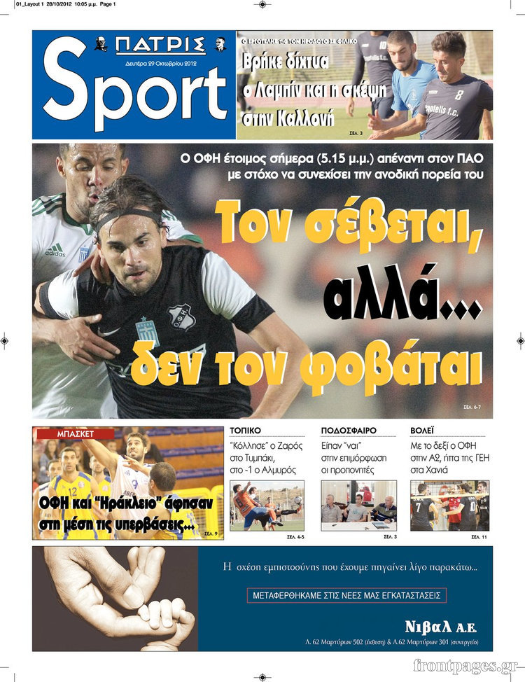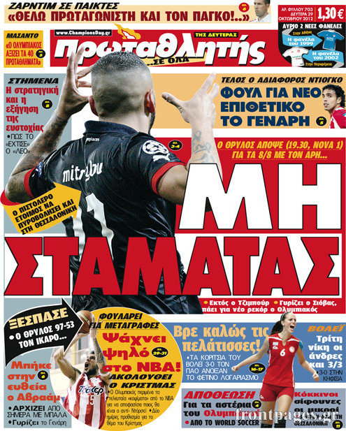 Οι αθλητικές εφημερίδες Enikos Newsroom 09:12, Δευτέρα 29 Οκτωβρίου 2012 Media Οι αθλητικές εφημερίδες Τα σημερινά πρωτοσέλιδα των αθλητικών εφημερίδων. ΑΘΛΗΤΙΚΑ ΑΘΛΗΤΙΚΕΣ ΕΦΗΜΕΡΙΔΕΣ ΠΡΩΤΟΣΕΛΙΔΑ Μοιράσου το: σχολίασε κι εσύ (0 σχόλια) Ακολουθήστε το enikos.gr στο Google News και μάθετε πρώτοι όλες τις ειδήσεις Δείτε όλες τις τελευταίες ειδήσεις από την Ελλάδα και τον Κόσμο στο enikos.gr Ειδήσεις Ροή Ειδήσεων 3 ώρες πριν Ακίλα Σάλεχ: «Άκυρο» το τουρκολιβυκό μνημόνιο λέει ο πρόεδρος της λιβυκής Βουλής – Ανοίγει ο διάλογος με Ελλάδα, Αίγυπτο και Τουρκία 7 ώρες πριν Αγρότες: Την Τρίτη η απόφαση για διάλογο ή κλιμάκωση των κινητοποιήσεών τους – Πώς χαρακτηρίζουν τις ανακοινώσεις Τσιάρα και οι επόμενες κινήσεις 7 ώρες πριν Τραμπ για Ουκρανία: «Είμαστε πιο κοντά σε συμφωνία από ποτέ» – «Πολυεθνική δύναμη» προτείνουν οι Ευρωπαίοι 7 ώρες πριν Κυψέλη: Η 16χρονη που μαχαίρωσε την 14χρονη είχε συλληφθεί 3 φορές στο παρελθόν – Έβριζε καθηγητές, έβαζε φωτιές σε κάδους και εκβίαζε συμμαθητές της 6 ώρες πριν Τρομοκρατική επίθεση στο Σίδνεϊ: Θλίψη για τα 15 θύματα – Οργή στην εβραϊκή κοινότητα που προειδοποιούσε επί δύο χρόνια 7 ώρες πριν Επιστήμονες ίσως έλυσαν το μυστήριο γύρω από τα Χόμπιτ – Νέα έρευνα αποκαλύπτει πώς εξαφανίστηκαν 8 ώρες πριν Ύπνος: Η αρχαία μορφή άσκησης που αποδεικνύεται αποτελεσματική στην αντιμετώπιση της αϋπνίας, σύμφωνα με μελέτη 9 ώρες πριν Αριθμολογία: Ο τυχερός σας αριθμός, ανάλογα με τον μήνα γέννησής σας 10 ώρες πριν Πώς να μην μαραίνονται γρήγορα τα κομμένα λουλούδια: Το λάθος στην τοποθέτηση του βάζου που πρέπει να αποφεύγετε 3 λεπτά πριν Οι αθλητικές εφημερίδες 16/12/2025 8 λεπτά πριν Οι πολιτικές εφημερίδες 16/12/2025 16 λεπτά πριν Τα ζώδια σήμερα, Τρίτη 16 Δεκεμβρίου: Ιχθύες, δεν χρειάζεται να έχετε όλες τις απαντήσεις 24 λεπτά πριν Εφημερεύοντα φαρμακεία σε Αθήνα και Θεσσαλονίκη (16/12) 31 λεπτά πριν Οκτώ νεκροί σε πλήγματα των ΗΠΑ κατά τριών σκαφών που φέρεται να μετέφεραν ναρκωτικά στον Ανατολικό Ειρηνικό ENIKOS NETWORK Πότε το χρόνιο ροχαλητό να αποτελέσει ένδειξη κινδύνου για την καρδιά; Τι λένε οι ειδικοί Μάριος Θεμιστοκλέους: Το ΕΣΥ ενισχύεται, εκσυγχρονίζεται, αλλάζει ΕΒΕΠ για αγροτικές κινητοποιήσεις: Κάθε επιπλέον εβδομάδα προσθέτει περίπου 200 εκατ. ευρώ ζημιά Τι προβλέπει το νομοσχέδιο του υπουργείου Εθνικής Άμυνας – Oι αλλαγές στους μισθούς Σύγχρονος Νοστράδαμος: Προειδοποιεί για «μεγάλο γεγονός» τους επόμενους μήνες που θα συγκλονίσει τη Βρετανία και τον κόσμο Τεστ παρατηρητικότητας: Μπορείτε να βρείτε τις 3 διαφορές στις εικόνες με έναν πιγκουίνο σε 14 δευτερόλεπτα περισσότερα 05:43 , Τρίτη 16 Δεκεμβρίου 2025 Οι αθλητικές εφημερίδες 16/12/2025 Διαβάστε τα πρωτοσέλιδα από τις αθλητικές εφημερίδες, σήμερα 16/12/2025. 05:38 , Τρίτη 16 Δεκεμβρίου 2025 Οι πολιτικές εφημερίδες 16/12/2025 Διαβάστε τα πρωτοσέλιδα από τις πολιτικές εφημερίδες, σήμερα 16/12/2025. 21:35 , Δευτέρα 15 Δεκεμβρίου 2025 Το Σπίτι Δίπλα Στο Ποτάμι: Η Ιουλία και ο Φωκάς μετακομίζουν στη Ρόδο – Δύο νέοι χαρακτήρες μπαίνουν στη σειρά Δύο νέοι, κομβικοί χαρακτήρες κάνουν την εμφάνισή τους αυτή την εβδομάδα στην αγαπημένη σειρά ... 19:46 , Δευτέρα 15 Δεκεμβρίου 2025 Άγιος έρωτας: Η Χριστίνα λέει την αλήθεια στον Αντρέα Ο Βασίλης δέχεται επίθεση από τους συμμαθητές του, η Αναστασία είναι συντετριμμένη με την απώλ... ΤΕΛΕΥΤΑΙΕΣ ΕΙΔΗΣΕΙΣ 3 λεπτά πριν Οι αθλητικές εφημερίδες 16/12/2025 8 λεπτά πριν Οι πολιτικές εφημερίδες 16/12/2025 16 λεπτά πριν