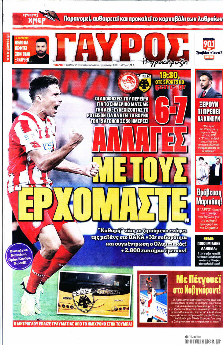 Οι αθλητικές εφημερίδες Enikos Newsroom 07:51, Τετάρτη 11 Φεβρουαρίου 2015 Media Δείτε τα σημερινά πρωτοσέλιδα των αθλητικών εφημερίδων: ΑΘΛΗΤΙΚΕΣ ΕΦΗΜΕΡΙΔΕΣ Μοιράσου το: σχολίασε κι εσύ (0 σχόλια) Ακολουθήστε το enikos.gr στο Google News και μάθετε πρώτοι όλες τις ειδήσεις Δείτε όλες τις τελευταίες ειδήσεις από την Ελλάδα και τον Κόσμο στο enikos.gr Ειδήσεις Ροή Ειδήσεων 1 ώρα πριν Πούτιν: «Ανοησίες» και «υστερίες» οι ισχυρισμοί της Ευρώπης για πιθανή σύγκρουση με τη Ρωσία – «Κάνουν πλύση εγκεφάλου» 5 ώρες πριν Έρευνα MRB: Η πρόθεση ψήφου και τα σημαντικότερα προβλήματα – Οι «λέξεις» που εκφράζουν τους πολίτες 2 ώρες πριν Αμοργός: «Θα προσπαθήσω να το κάνω κάθε μέρα» – Ποιος είναι ο αγρότης που έστησε μόνος του το πρώτο μπλόκο στο νησί 15 λεπτά πριν Τραγωδία στην Αλεξανδρούπολη: Παιδάκι 3 ετών μεταφέρθηκε νεκρό από τη μητέρα του στο νοσοκομείο 56 λεπτά πριν Συνάντηση Μητσοτάκη με την Κ.Ο. της ΝΔ: Οι αφίξεις των βουλευτών, τα γλυκά και τα «πηγαδάκια» 5 ώρες πριν Τα 4 ζώδια που ξαναβρίσκουν τον εαυτό τους – «Μπαίνετε επιτέλους στην ουσία των πραγμάτων» 6 ώρες πριν 20 χρόνια τα Χριστούγεννα ξεκινούν στα Public με μεγάλη ποικιλία σε δώρα! 4 ώρες πριν «Δεν είχα κλάψει από τότε που διαγνώστηκα με καρκίνο, ώσπου ένα τηλεφώνημα με έκανε να λυγίσω» – Η συγκλονιστική εξομολόγηση ενός άνδρα 3 ώρες πριν Τα 7 σπάνια χαρακτηριστικά που κάνουν κάποιους ανθρώπους ακαταμάχητους 3 λεπτά πριν Παραμένουν στα μπλόκα οι αγρότες της Μεσσηνίας – Κλειστή η εθνική οδός Καλαμάτας- Αθήνας 9 λεπτά πριν Φον ντερ Λάιεν: Επιστολή για το μεταναστευτικό ενόψει της Συνόδου Κορυφής – «Υπήρξε πρόοδος, αλλά έχουμε σημαντική δουλειά μπροστά μας» 14 λεπτά πριν Χριστουγεννιάτικη γιορτή με τον Σάκη Ρούβα στον ξενώνα «Μαριάννα Β. Βαρδινογιάννη-ΕΛΠΙΔΑ» 15 λεπτά πριν Τραγωδία στην Αλεξανδρούπολη: Παιδάκι 3 ετών μεταφέρθηκε νεκρό από τη μητέρα του στο νοσοκομείο 16 λεπτά πριν Βουλή: Άρση της ασυλίας της Ζωής Κωνσταντοπούλου για μήνυση συκοφαντικής δυσφήμισης ENIKOS NETWORK 5 πράγματα που αποφεύγει γαστρεντερολόγος για να μειώσει τον κίνδυνο καρκίνου του εντέρου Ανησυχητική αύξηση της υπέρτασης στα παιδιά – Πώς θα τα προστατέψουμε; ΕΛΕΤΑΕΝ: Πόσα χρήματα θα δοθούν σε δήμους και νοικοκυριά από τις ΑΠΕ «IRIS Παντού»: Στην κορυφή της Ευρώπης η Ελλάδα με 120 εκατ. ευρώ συναλλαγές το 2025 – Η σύγκριση με τις άλλες χώρες της Ευ... Σύγχρονος Νοστράδαμος: Προειδοποιεί για «μεγάλο γεγονός» τους επόμενους μήνες που θα συγκλονίσει τη Βρετανία και τον κόσμο Τεστ παρατηρητικότητας: Μπορείτε να βρείτε τις 3 διαφορές στις εικόνες με έναν πιγκουίνο σε 14 δευτερόλεπτα περισσότερα 12:35 , Τετάρτη 17 Δεκεμβρίου 2025 Μίρκα Παπακωνσταντίνου: «Δεν ήμουν αισιόδοξη για τα νούμερα – Είμαι ρεαλίστρια» Στα γυρίσματα του εορταστικού επεισοδίου της αγαπημένης σειράς “Το Σόι Σου”, βρέθηκε η κάμερα ... 12:12 , Τετάρτη 17 Δεκεμβρίου 2025 Ακούστε την εκπομπή του Νίκου Χατζηνικολάου 17/12/2025 Ακούστε την εκπομπή του Νίκου Χατζηνικολάου στον ραδιοφωνικό σταθμό RealFm 97,8, την Τετάρτη 1... 11:35 , Τετάρτη 17 Δεκεμβρίου 2025 Home Alone: Το σπίτι της ταινίας θα ανακαινιστεί – Επιστροφή στην αισθητική της δεκαετίας του ’90 Οι νέοι ιδιοκτήτες του πραγματικού σπιτιού που παρουσιάζεται στην κλασική ταινία του 1990 «Hom... 11:25 , Τετάρτη 17 Δεκεμβρίου 2025 Grand Hotel: Απόψε το τελευταίο επεισόδιο της χρονιάς – Όλα τα μυστικά μένουν εδώ Το τελευταίο επεισόδιο της χρονιάς της σειράς «Grand Hotel» θα προβληθεί απόψε στις 2